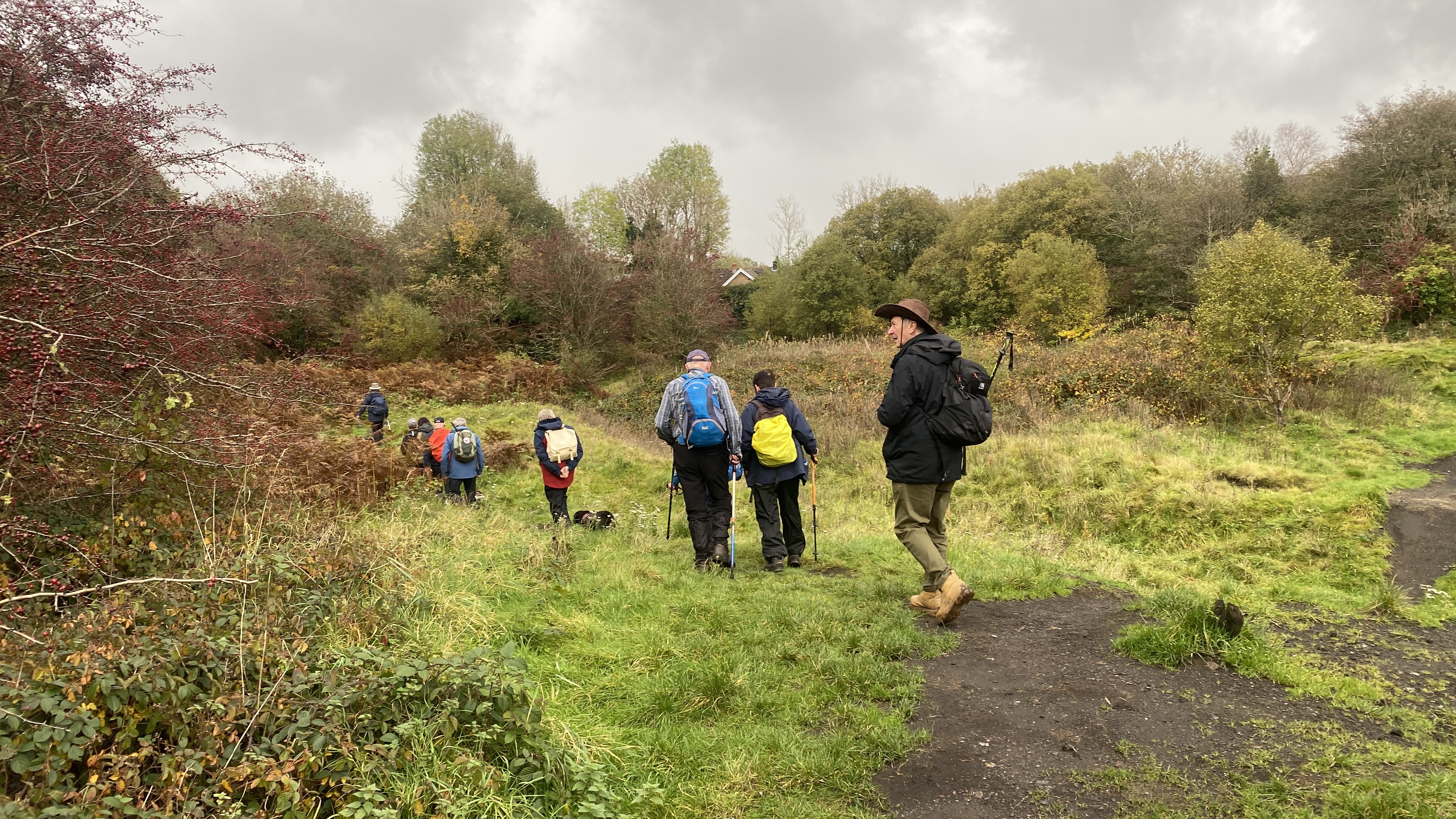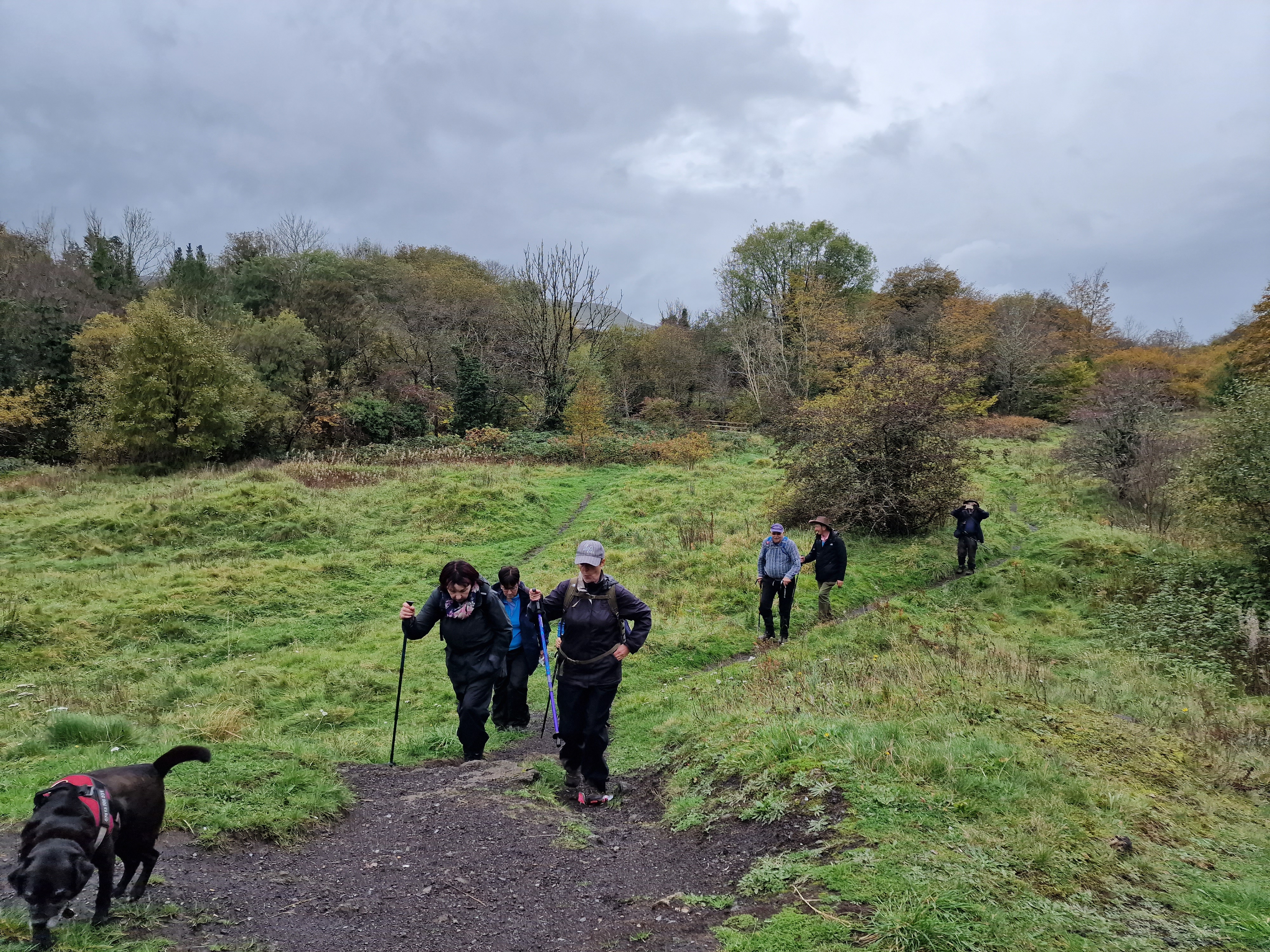 Today, 11 hardy Merthyr Valley Ramblers convened at the car park in Hirwaun for this morning’s group walk. The original plan was to “Stroll to the Foel” but this week’s weather and how things were looking meant a change of plan for first time leader Jenny. This may have been Jenny’s first walk lead for the group but by already having a backup walk in reserve we knew we were in safe hands. We made our way toward the new A465 before heading north towards Penderyn and a loop taking in St Cynog’s church. We then made our way back towards Hirwaun along the Mineral Line, cutting through the old Iron Works before returning to the car park. We covered 8 miles in total and the weather was mostly kind to us, the walk was made even more interesting by the many historical facts Jenny bestowed upon us, with additional facts added by Morfydd who was also very familiar with the area. We had a great time and enjoyed the company of our fellow ramblers. We hope to see you all again soon for another adventure!.