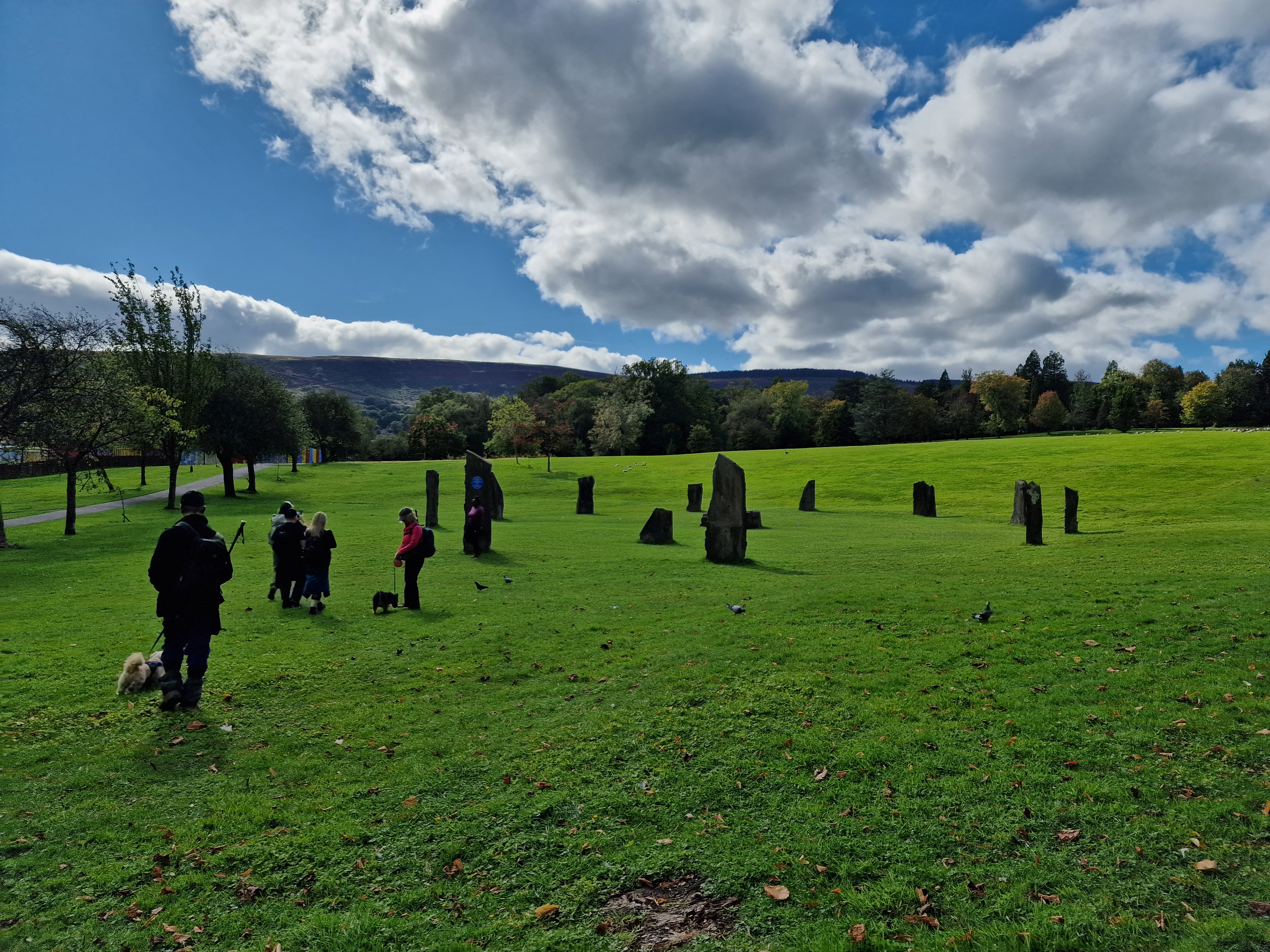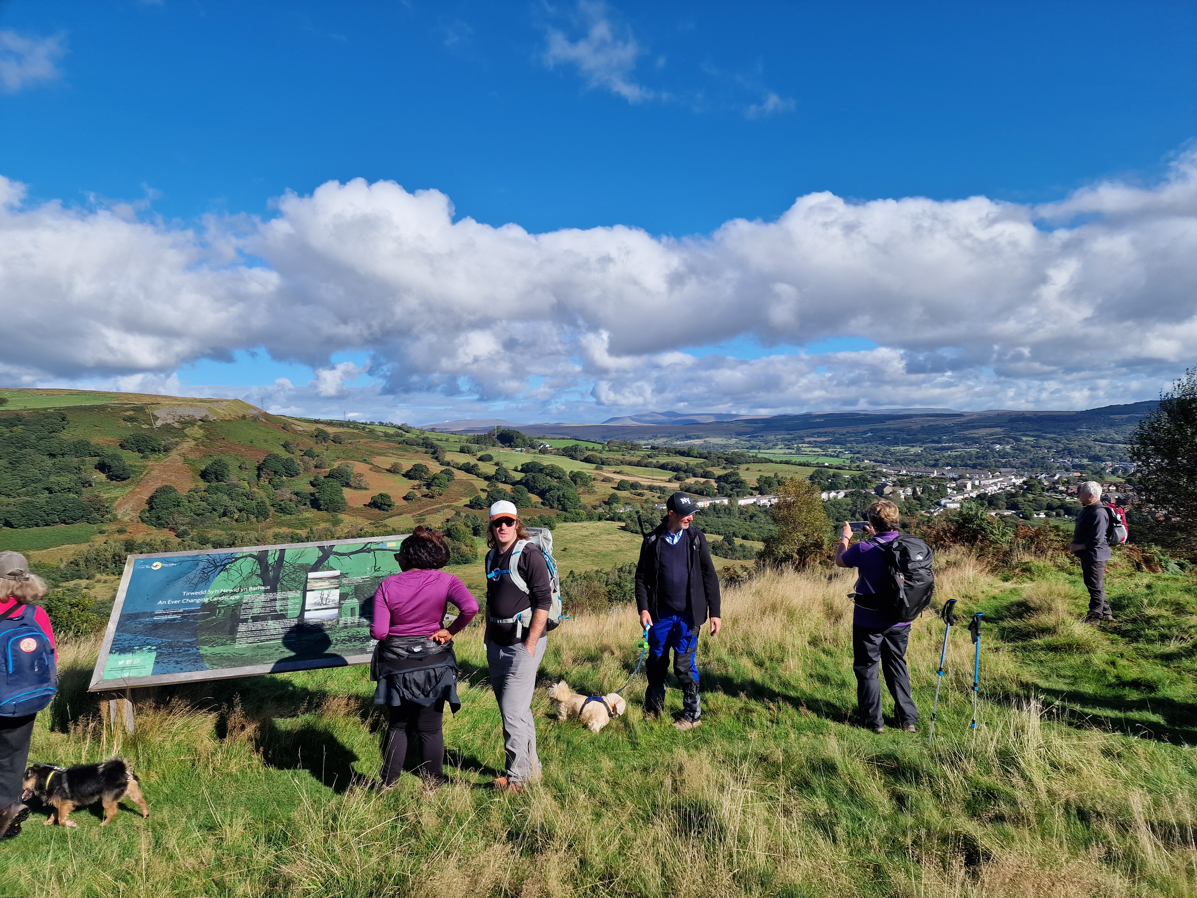 On a rare dry and sunny day, 13 of us gathered at Dare Valley Country Park for a delightful walk titled “Around The Parks of Aberdare.” Led by the wonderful Jenny, we were thrilled to welcome four new walkers to our group: Andrea, Stuart, Catherine, and Ron. Our adventure began with a steady climb to the top of the Daren, where we were rewarded with breathtaking views over the park, Cynon Valley, and as far as Pen Y Fan. We couldn’t resist stopping for the obligatory photo at the Welsh flag high on the mountainside! We then retraced our steps and followed the path along the Dare River to the Tarren y Bwllfa viewpoint. This spot offers stunning views of the Brecon Beacons and is known for its 8,000-year-old glacial formation, one of Britain’s most southerly and spectacular glacial cwms. Next, we headed towards the beautiful Aberdare Park, which opened on July 27, 1869. The park was landscaped by William Barron and has been a cherished green space ever since. In the park, we admired the Gorsedd Stones, erected for the National Eisteddfod of Wales, which was held in Aberdare in 1956. These stones are an integral part of the druidic Gorsedd ceremonies. We also marvelled at the 3 Bears carving and the statue of Lord Merthyr before arriving at the bandstand, where we enjoyed a lovely lunch. To top it off, group member Alan treated us to a song! Suitably refreshed, we headed south and picked up the trail alongside the Dare River, which led us back to the country park. It was a fantastic 7-mile walk on a beautiful day with great company, as always.