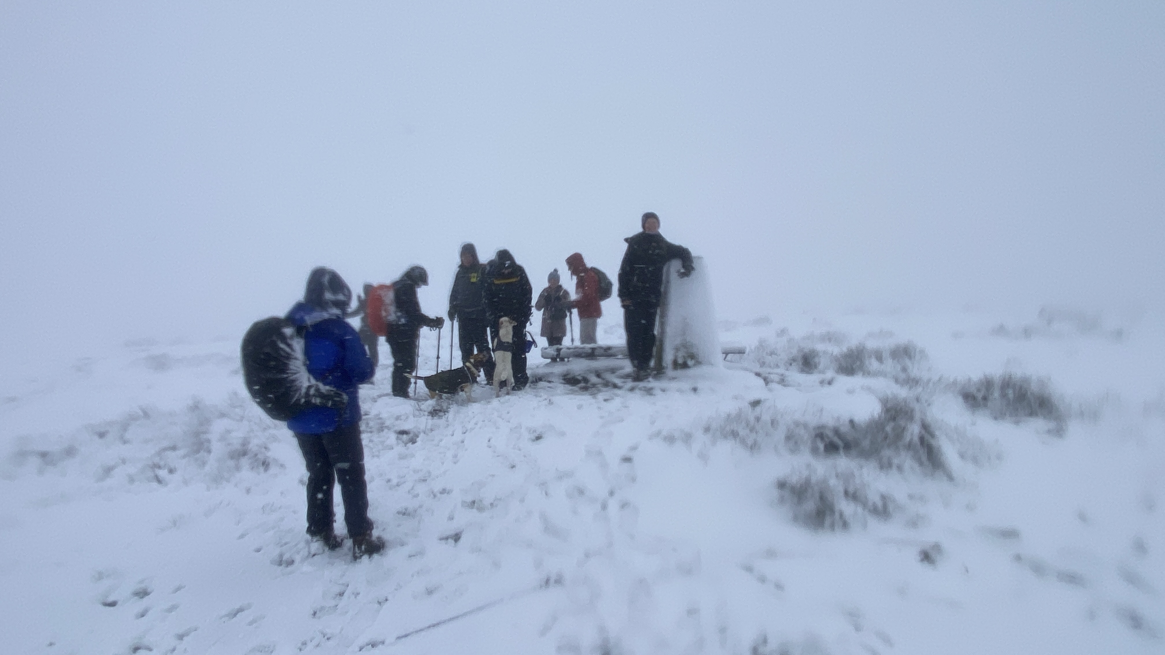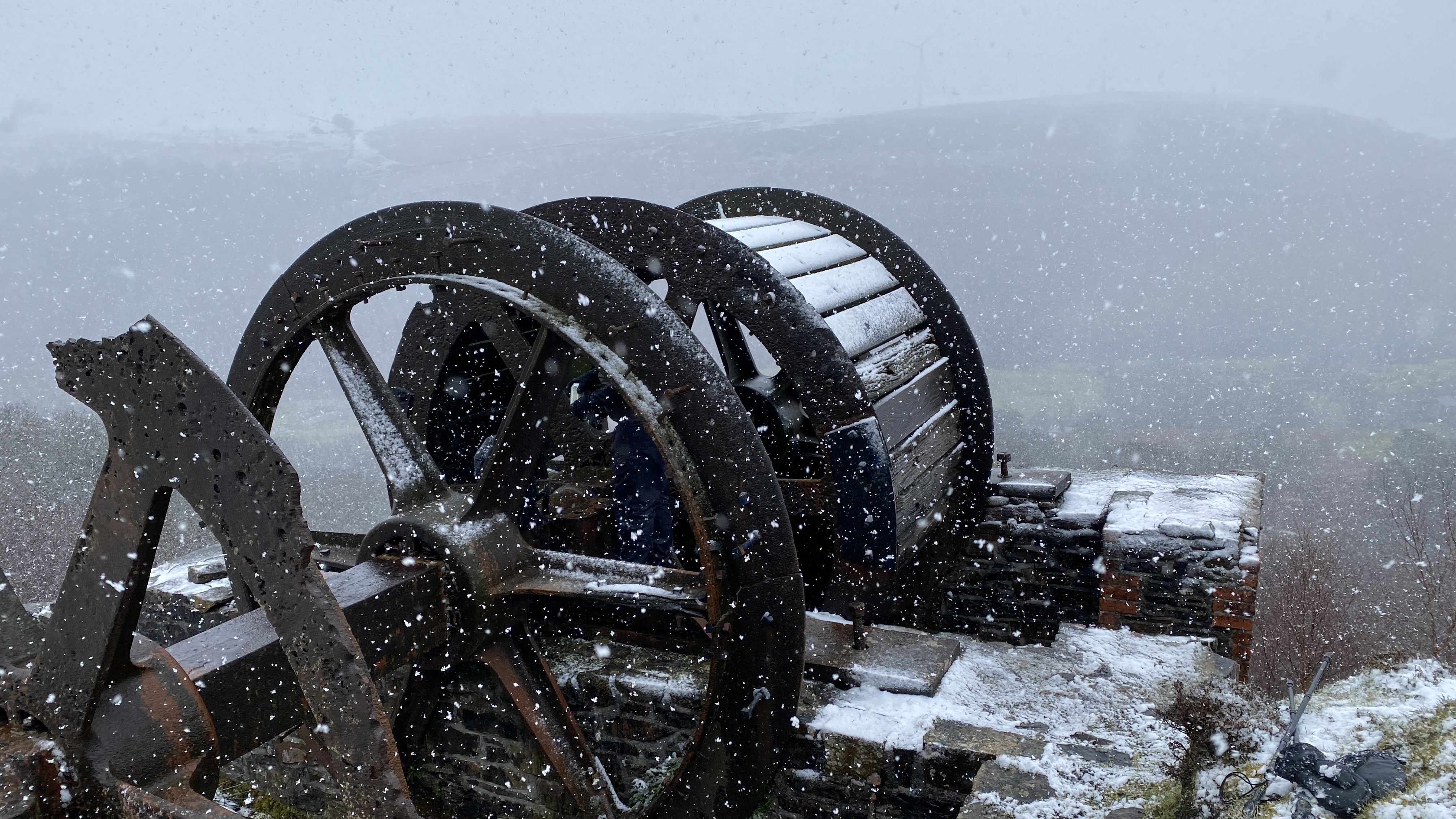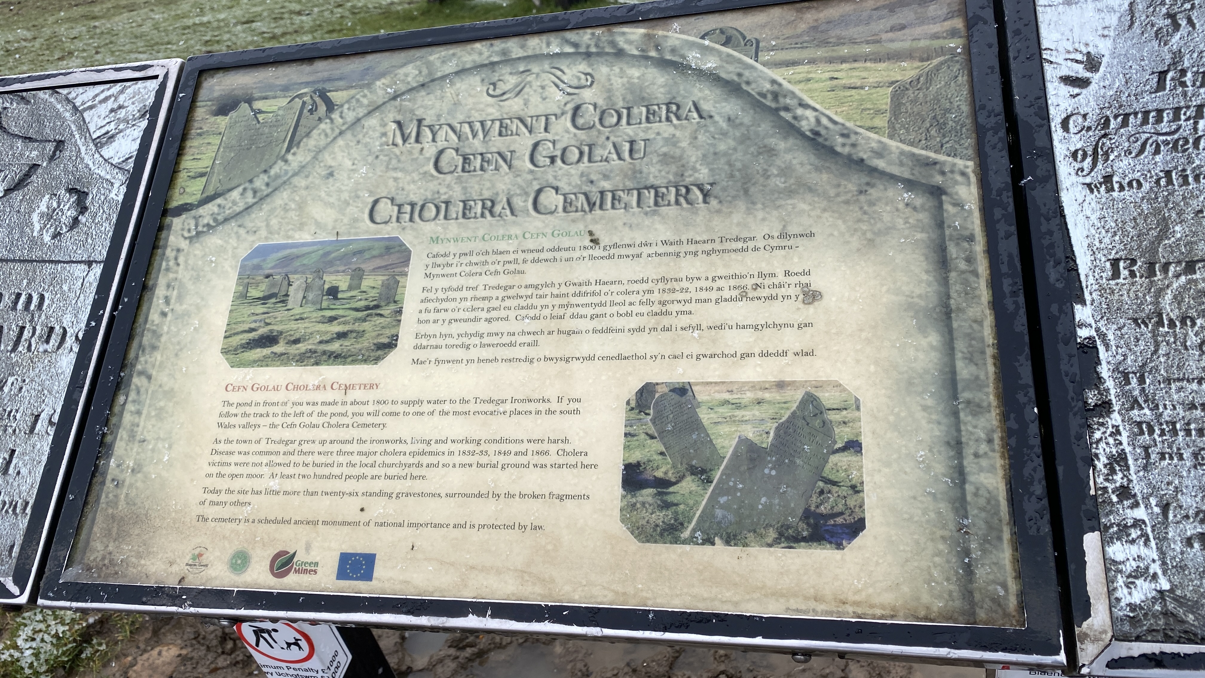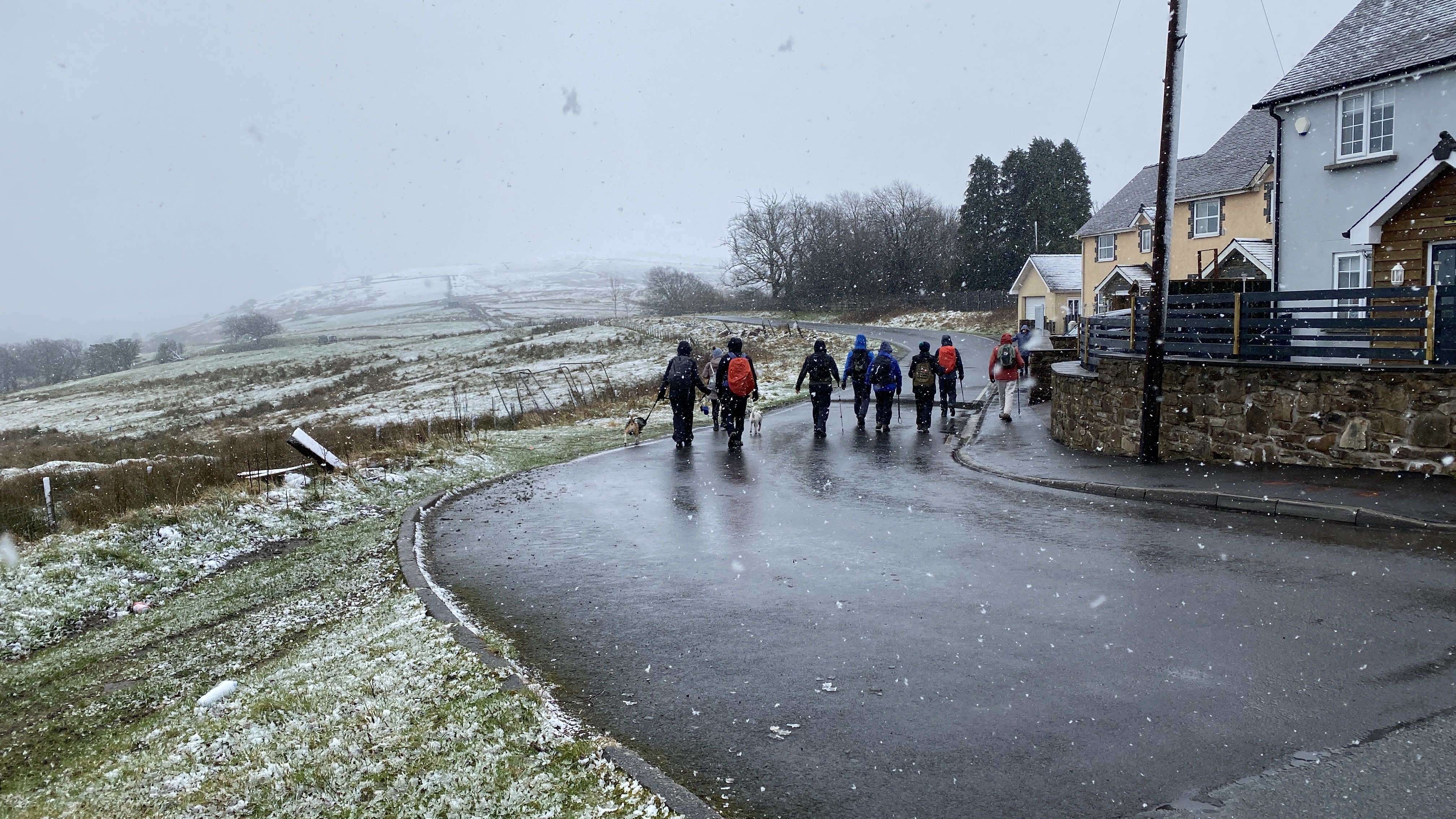 So today was my Bedwellty circular, a watered down version of a much more challenging route we undertook a few years back, the route then started near my home in Ebbw Vale, so started with a steep descent and then after the main part of walk completed, a tiring steep ascent, such is the way with valleys walks. Today 10 Merthyr Valley Ramblers including welcome first time rambler Stacey Fiona White and her 2 terriers Ronnie & Phoebe embarked on the route from the centre of Tredegar. We took a leisurely stroll through the town towards the impressive clock, built in 1858 and a reminder of the towns rich iron heritage. We then made our way through Bedwellty Park, A listed Regency villa surrounded by a historic garden established in 19th century for the famous Homfray Ironmaster dynasty. Bedwellty House and Park are intimately linked with the early social history of Industrial Wales. Its relevance continued when the house and park were given to the people of Tredegar and consequently became a centre of the Labour movement in Wales, and Britain at large. Probably the most famous name associated with Bedwellty House and Park is Aneurin Bevan, credited as the founder of the National Health Service. The park contains an arboretum, tea rooms and the biggest block of coal in the world! (which we didn't see today, my bad as leader!). Our climb then began by road towards the Cefn Golau pond and the Cholera Cemetery, weather conditions had changed significantly by this point so we did not fully explore the cemetery and admire it's views (non existent today!). We made our way to the Cairn for our first very welcome and warming tea break. Unbeknown to the rest of the group, it was at this point (as leader) I was strongly considering a route change, avoiding the trig at Mynydd Bedwellte, visibility was poor, and the snow was heavy, I was confident with my navigation though and decided to proceed to the highest point of our walk, the challenge was gratefully accepted by the group and we reached the trig for another group photo opportunity before retracing some steps to drop out of the wind on a lower path, this path would take us to the Bedwellty Quarry incline winding wheel, something I discovered in lockdown in 2020 by accident! It is a scheduled monument but is somewhat in decline and I wonder why steps have not been taken to firstly preserve it and secondly promote it, it is quite an outstanding feature of local industrial heritage. We made it our lunch spot before descending down to Bedwellty Pits, from here we were able to take the cycle route back to the main road, we followed the road for a while before crossing the bridge towards Tredegar Leisure Centre and its welcome community toilets! It was then just a short walk back, again through Bedwellty Park, past the clock and back to the cars. The difference back down in the town was quite staggering, not a sign of snow as we experienced up high. Huge thanks to all that braved the elements today, it was one of my most enjoyable walks as a leader I think!