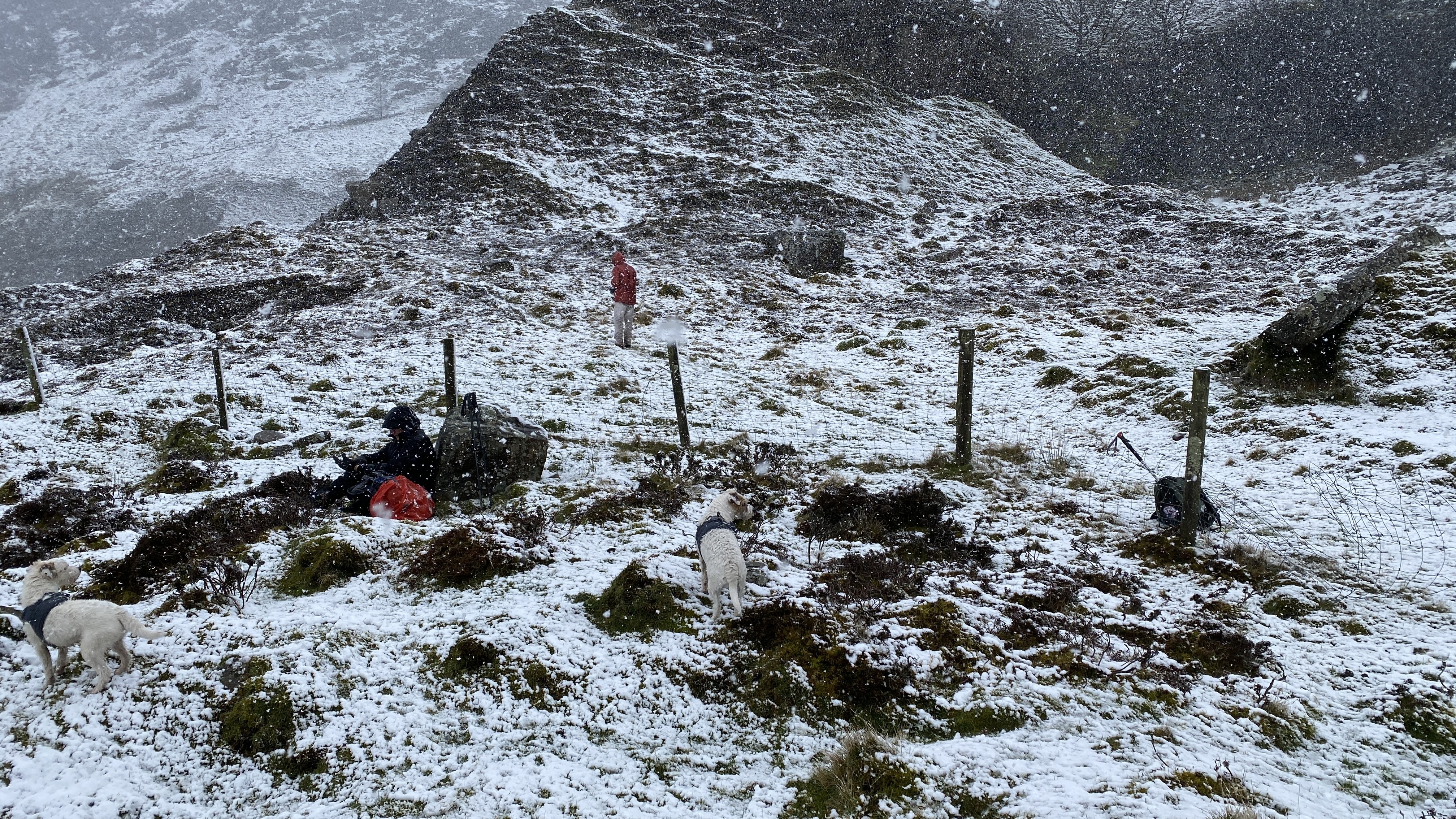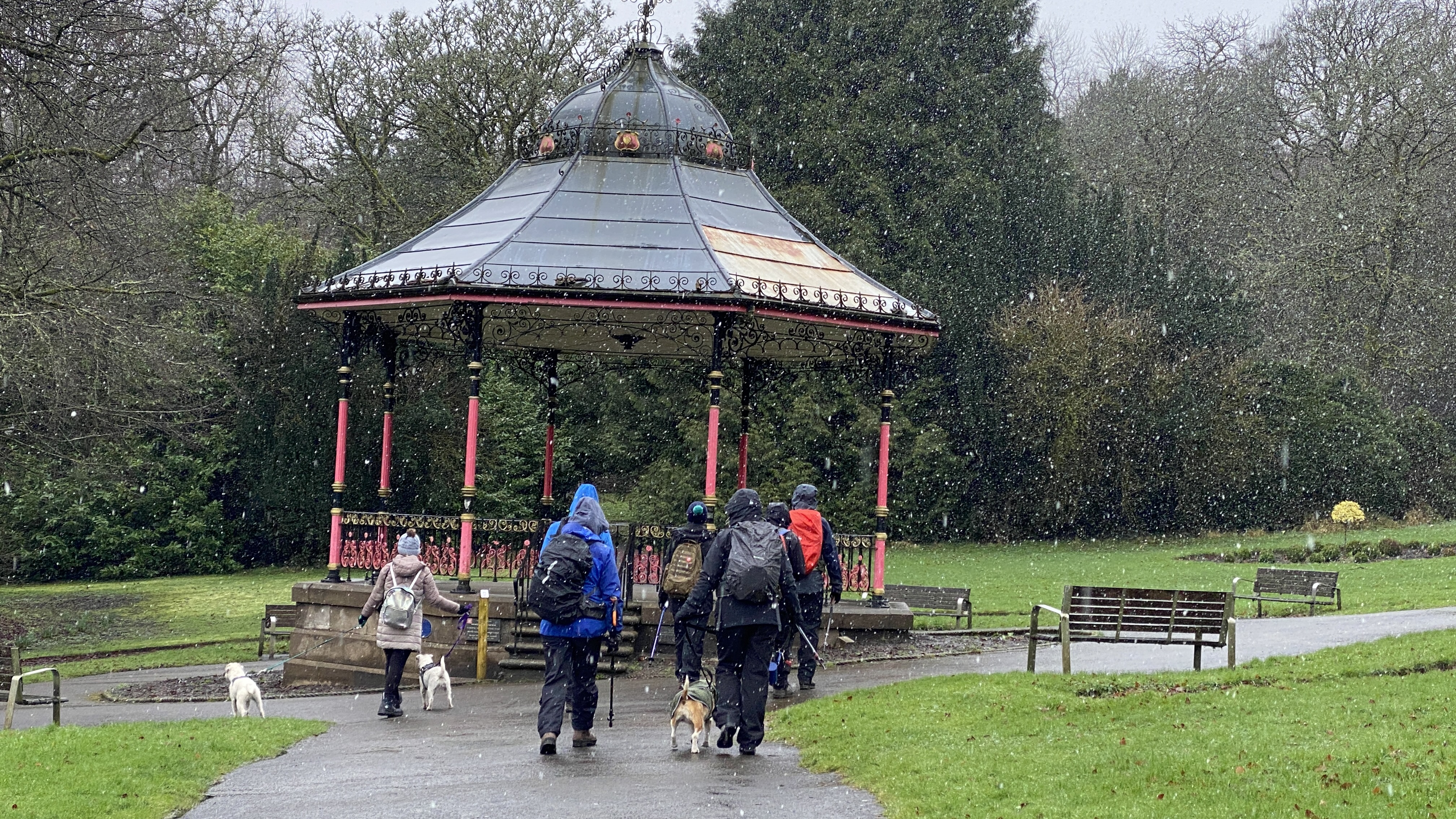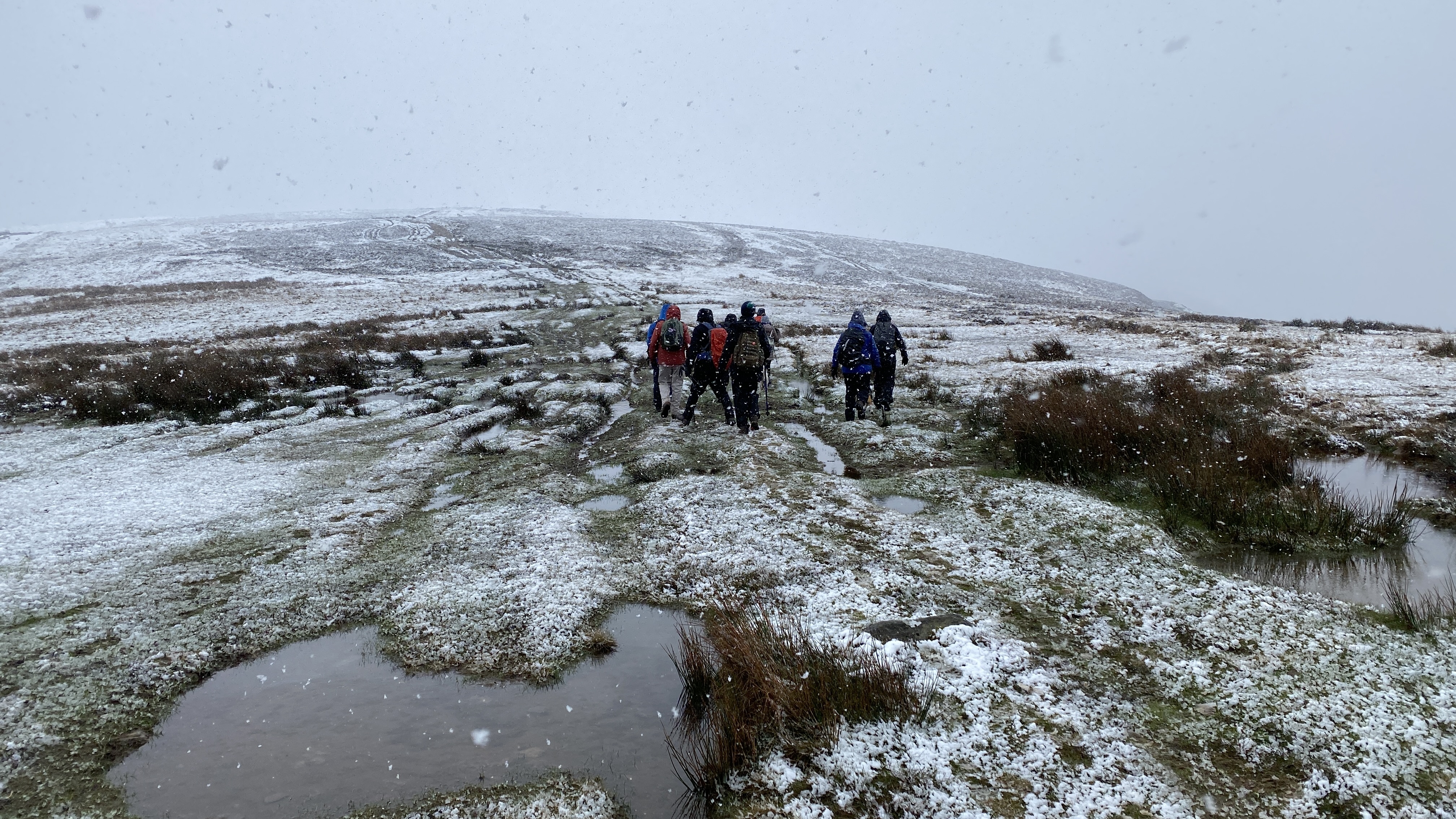 So today was my Bedwellty circular, a watered down version of a much more challenging route we undertook a few years back, the route then started near my home in Ebbw Vale, so started with a steep descent and then after the main part of walk completed, a tiring steep ascent, such is the way with valleys walks. Today 10 Merthyr Valley Ramblers including welcome first time rambler Stacey Fiona White and her 2 terriers Ronnie & Phoebe embarked on the route from the centre of Tredegar. We took a leisurely stroll through the town towards the impressive clock, built in 1858 and a reminder of the towns rich iron heritage. We then made our way through Bedwellty Park, A listed Regency villa surrounded by a historic garden established in 19th century for the famous Homfray Ironmaster dynasty. Bedwellty House and Park are intimately linked with the early social history of Industrial Wales. Its relevance continued when the house and park were given to the people of Tredegar and consequently became a centre of the Labour movement in Wales, and Britain at large. Probably the most famous name associated with Bedwellty House and Park is Aneurin Bevan, credited as the founder of the National Health Service. The park contains an arboretum, tea rooms and the biggest block of coal in the world! (which we didn't see today, my bad as leader!). Our climb then began by road towards the Cefn Golau pond and the Cholera Cemetery, weather conditions had changed significantly by this point so we did not fully explore the cemetery and admire it's views (non existent today!). We made our way to the Cairn for our first very welcome and warming tea break. Unbeknown to the rest of the group, it was at this point (as leader) I was strongly considering a route change, avoiding the trig at Mynydd Bedwellte, visibility was poor, and the snow was heavy, I was confident with my navigation though and decided to proceed to the highest point of our walk, the challenge was gratefully accepted by the group and we reached the trig for another group photo opportunity before retracing some steps to drop out of the wind on a lower path, this path would take us to the Bedwellty Quarry incline winding wheel, something I discovered in lockdown in 2020 by accident! It is a scheduled monument but is somewhat in decline and I wonder why steps have not been taken to firstly preserve it and secondly promote it, it is quite an outstanding feature of local industrial heritage. We made it our lunch spot before descending down to Bedwellty Pits, from here we were able to take the cycle route back to the main road, we followed the road for a while before crossing the bridge towards Tredegar Leisure Centre and its welcome community toilets! It was then just a short walk back, again through Bedwellty Park, past the clock and back to the cars. The difference back down in the town was quite staggering, not a sign of snow as we experienced up high. Huge thanks to all that braved the elements today, it was one of my most enjoyable walks as a leader I think!