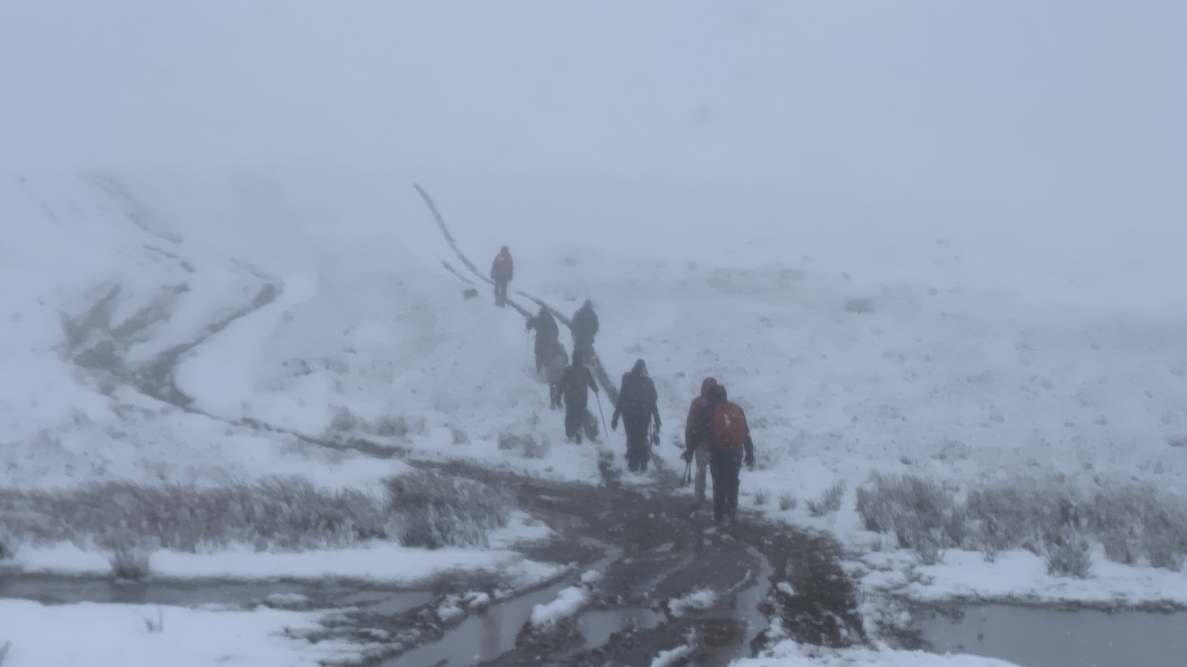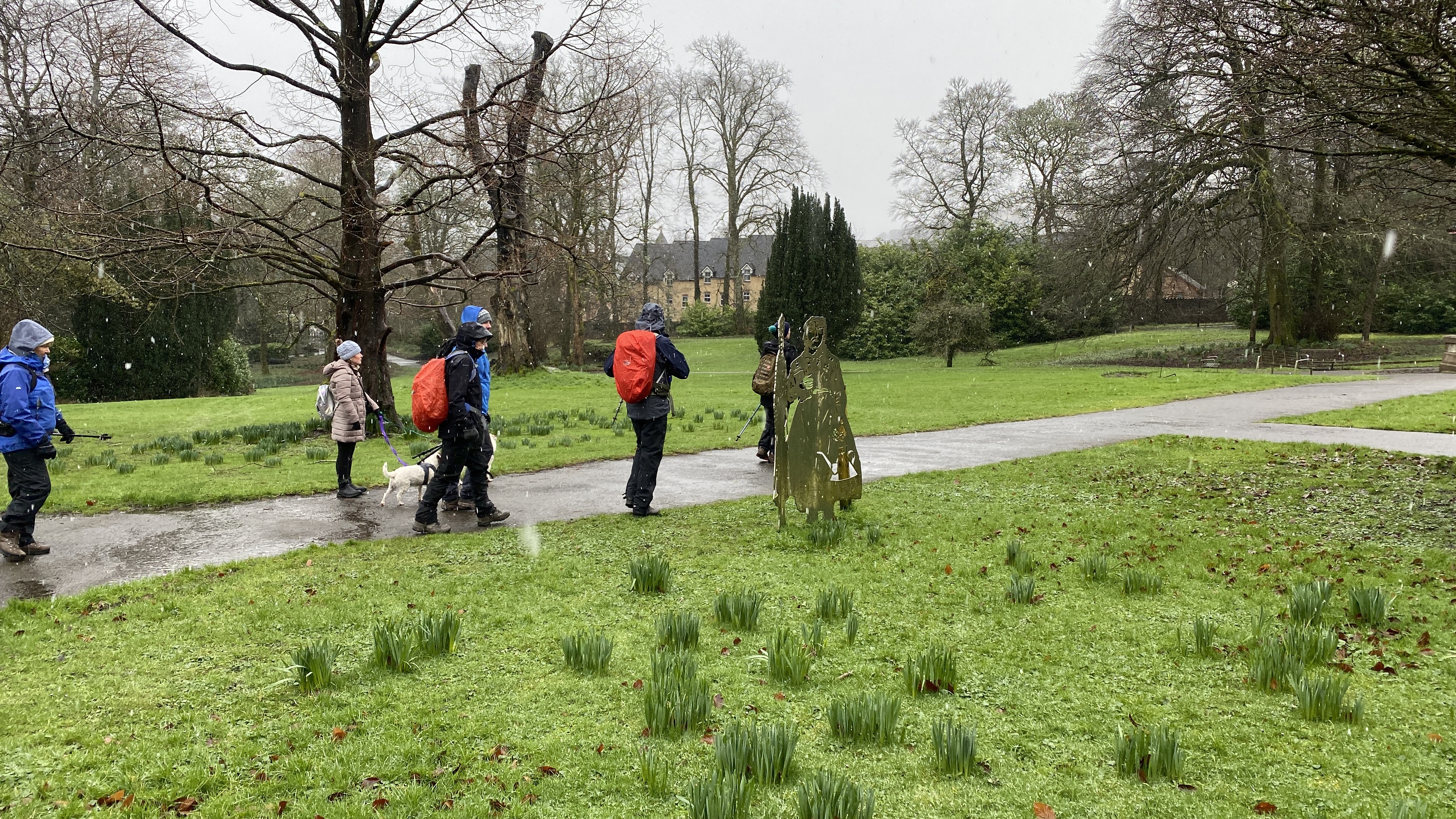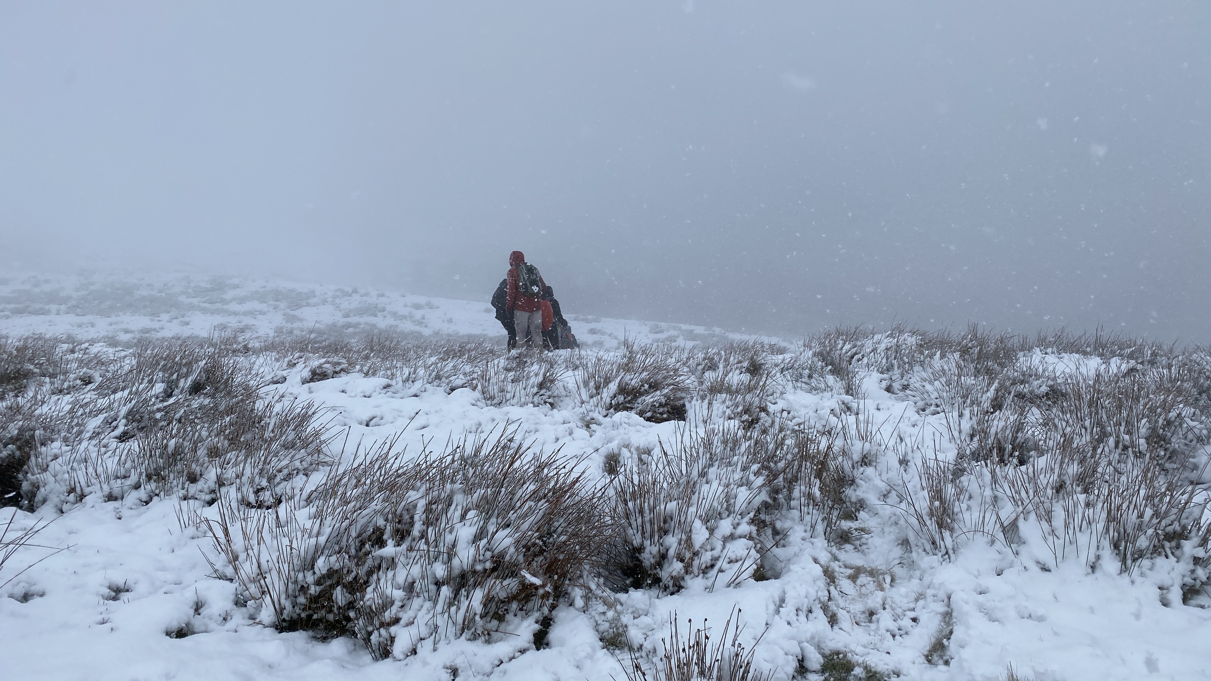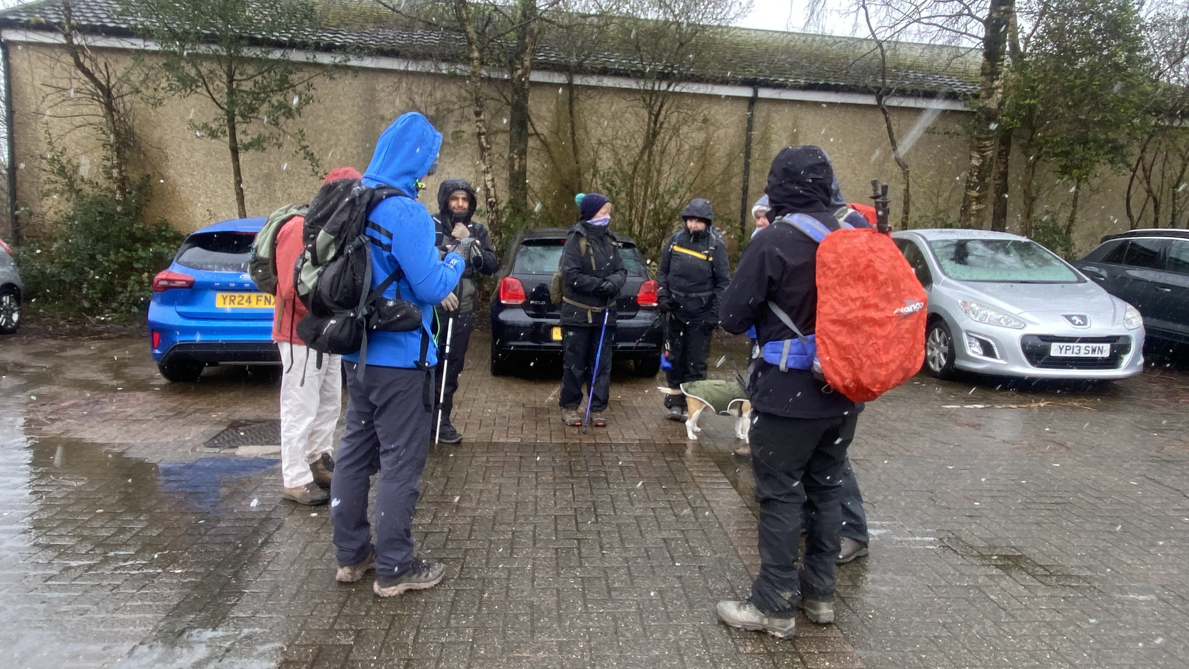 So today was my Bedwellty circular, a watered down version of a much more challenging route we undertook a few years back, the route then started near my home in Ebbw Vale, so started with a steep descent and then after the main part of walk completed, a tiring steep ascent, such is the way with valleys walks. Today 10 Merthyr Valley Ramblers including welcome first time rambler Stacey Fiona White and her 2 terriers Ronnie & Phoebe embarked on the route from the centre of Tredegar. We took a leisurely stroll through the town towards the impressive clock, built in 1858 and a reminder of the towns rich iron heritage. We then made our way through Bedwellty Park, A listed Regency villa surrounded by a historic garden established in 19th century for the famous Homfray Ironmaster dynasty. Bedwellty House and Park are intimately linked with the early social history of Industrial Wales. Its relevance continued when the house and park were given to the people of Tredegar and consequently became a centre of the Labour movement in Wales, and Britain at large. Probably the most famous name associated with Bedwellty House and Park is Aneurin Bevan, credited as the founder of the National Health Service. The park contains an arboretum, tea rooms and the biggest block of coal in the world! (which we didn't see today, my bad as leader!). Our climb then began by road towards the Cefn Golau pond and the Cholera Cemetery, weather conditions had changed significantly by this point so we did not fully explore the cemetery and admire it's views (non existent today!). We made our way to the Cairn for our first very welcome and warming tea break. Unbeknown to the rest of the group, it was at this point (as leader) I was strongly considering a route change, avoiding the trig at Mynydd Bedwellte, visibility was poor, and the snow was heavy, I was confident with my navigation though and decided to proceed to the highest point of our walk, the challenge was gratefully accepted by the group and we reached the trig for another group photo opportunity before retracing some steps to drop out of the wind on a lower path, this path would take us to the Bedwellty Quarry incline winding wheel, something I discovered in lockdown in 2020 by accident! It is a scheduled monument but is somewhat in decline and I wonder why steps have not been taken to firstly preserve it and secondly promote it, it is quite an outstanding feature of local industrial heritage. We made it our lunch spot before descending down to Bedwellty Pits, from here we were able to take the cycle route back to the main road, we followed the road for a while before crossing the bridge towards Tredegar Leisure Centre and its welcome community toilets! It was then just a short walk back, again through Bedwellty Park, past the clock and back to the cars. The difference back down in the town was quite staggering, not a sign of snow as we experienced up high. Huge thanks to all that braved the elements today, it was one of my most enjoyable walks as a leader I think!
