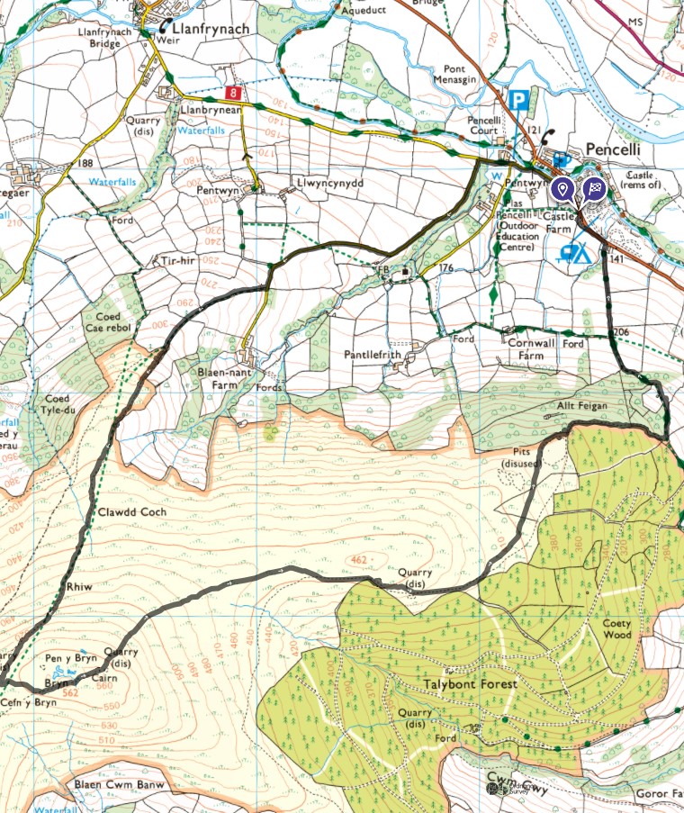 6 of the bravest ramblers set out on our walk to the Bryn. The weather was kind as the rain stopped just as we started off and stayed away for the rest of the walk. A coffee beak was welcome half way up as we then continued across the mountain, towards Talybont forest which we skirted around and picked up a stoney track as we descended. The route was shortened as a local farmer was getting more aggresive towards walkers and Geoff thought best we avoid his land. We then picked up a lane that led us back to the carp park, completing a pleaseant 6.3 miles. We then headed down into the village for that wecoming pint to finish off a pleasant day.