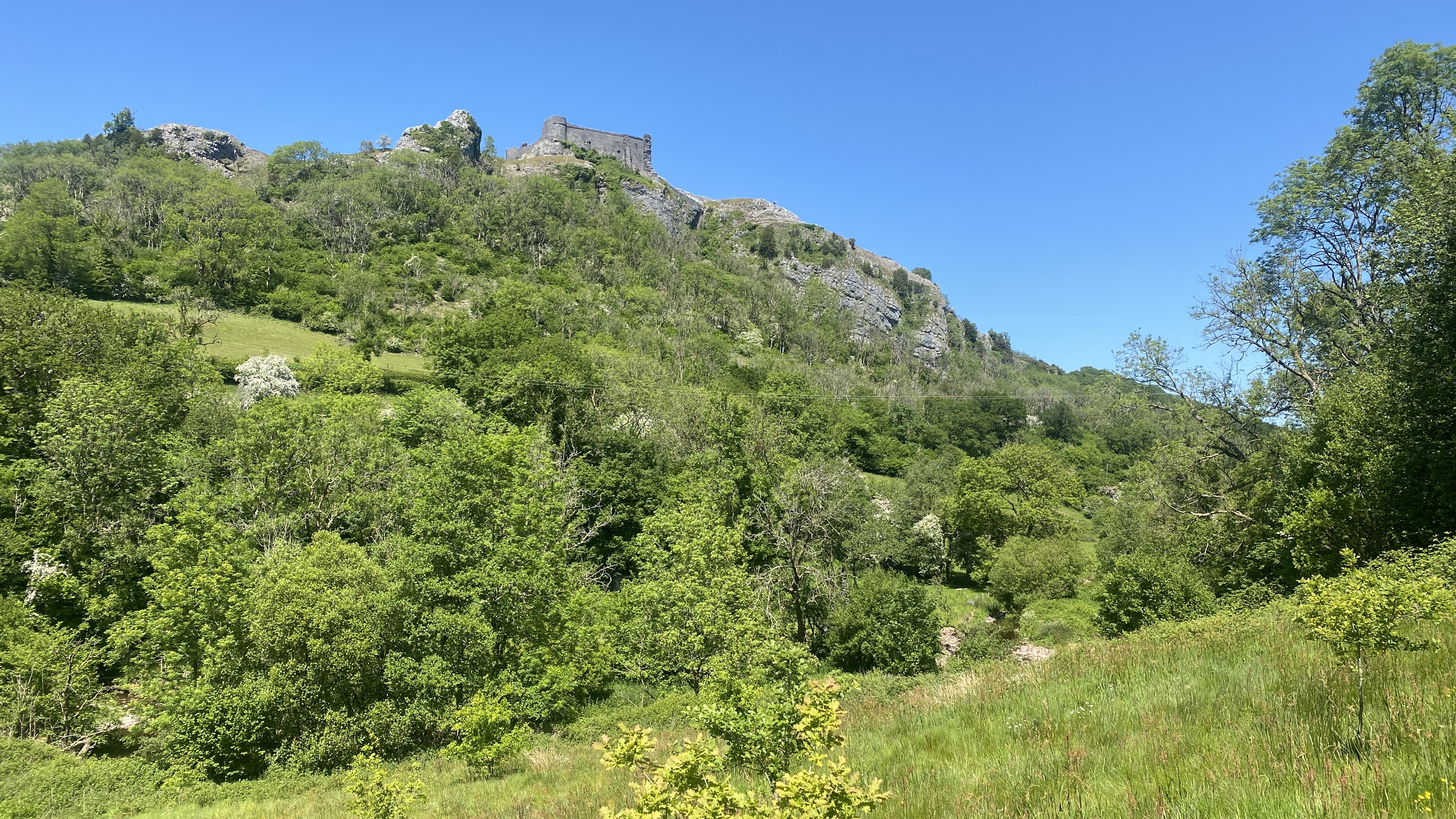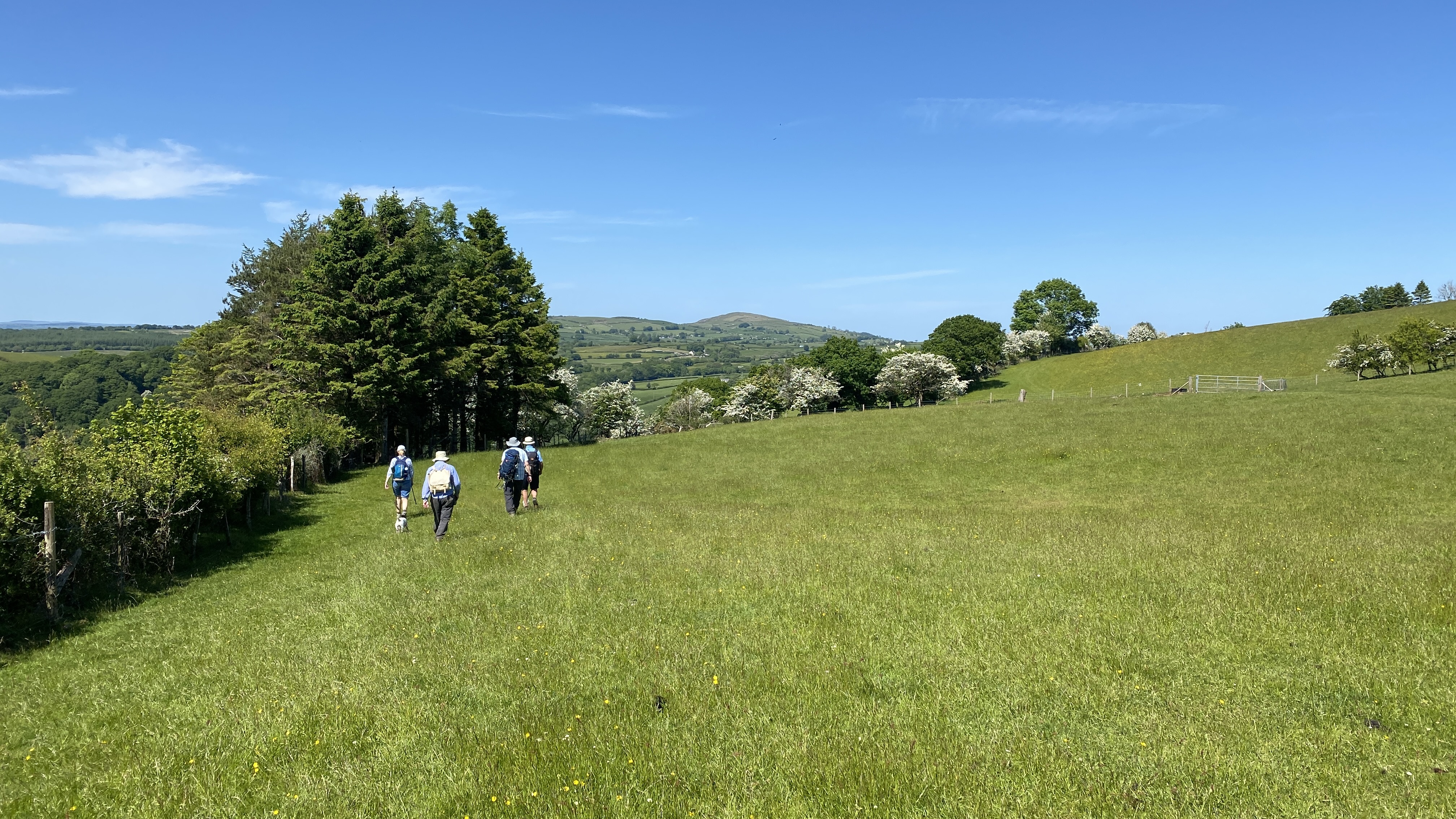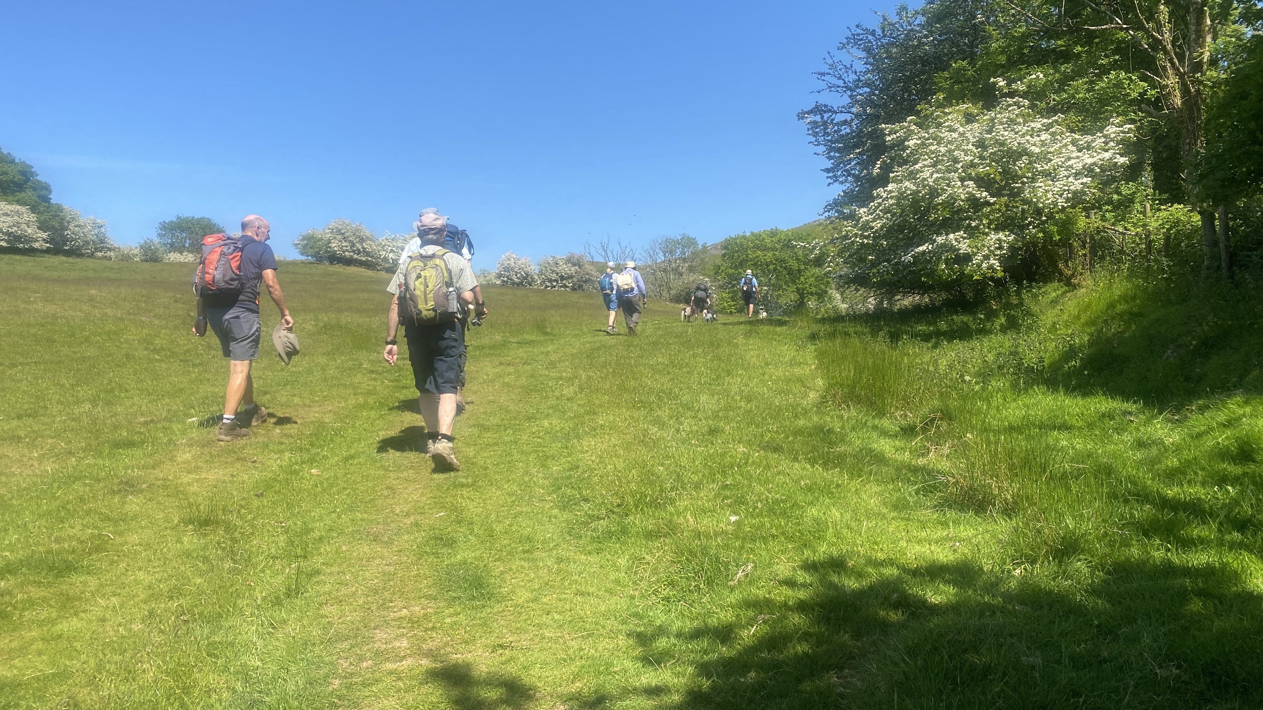 Bright, sunny weather greeted 8 lucky Merthyr Valley Ramblers (including welcome guest and new group member Mark) on today’s walk from Carreg Cennen Castle. From the carpark, we climbed steadily to castle view where, after the obligatory pictures were taken, we continued to Gelli-groes where we turned Westwards. At Grip-Fach, we headed South to Blaencwm where we had our first cuppa on the banks of the Afon Cennen. We then followed the river past Trap to Cwmcennan where we found a nice, shady spot to have our lunch. Heading South, we picked up the Beacons Way and made a big loop back to the castle and a welcome cool drink in the lovely cafe. A big thanks to John for an unusual and splendid scenic walk and to all for the great company.