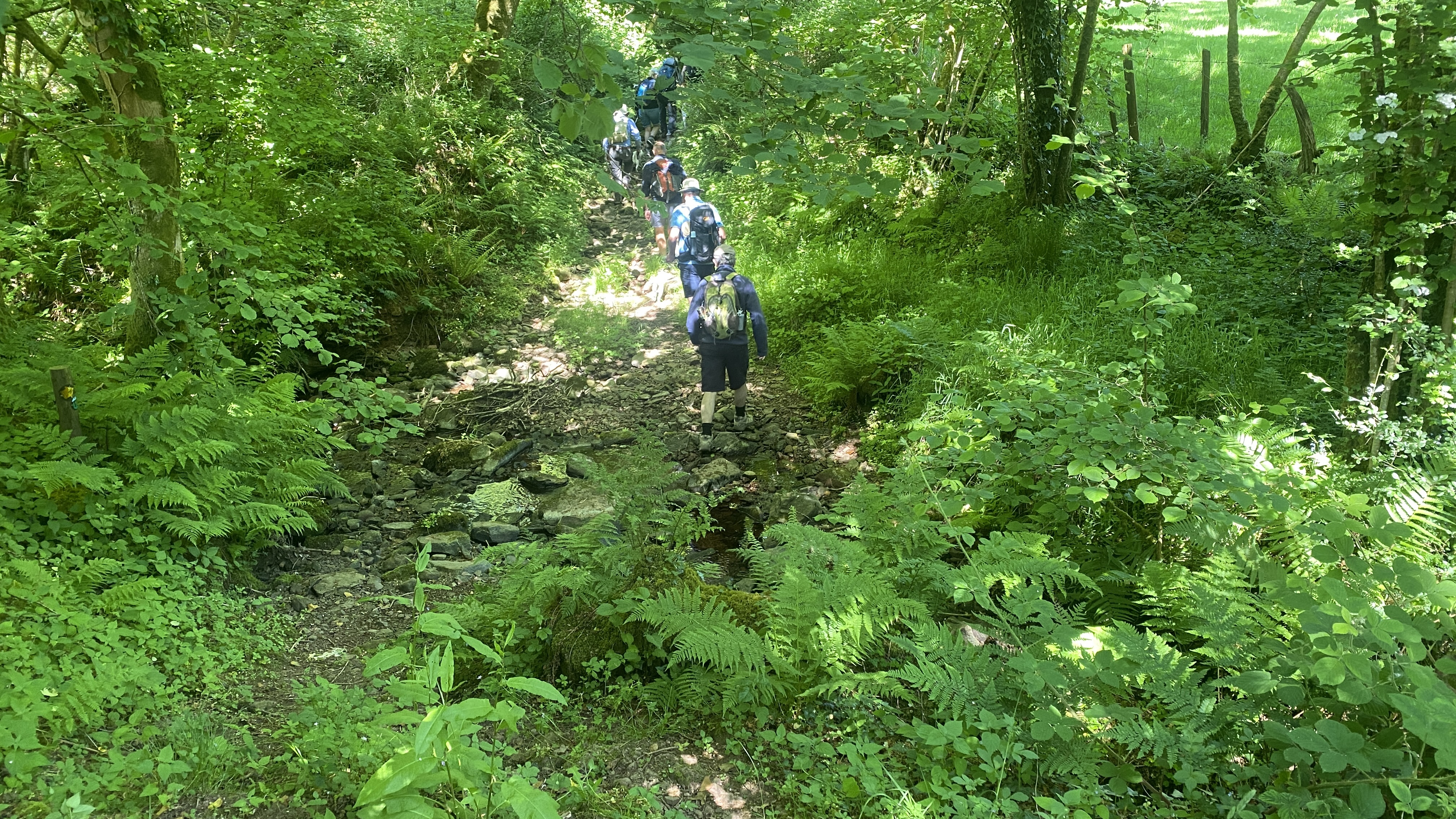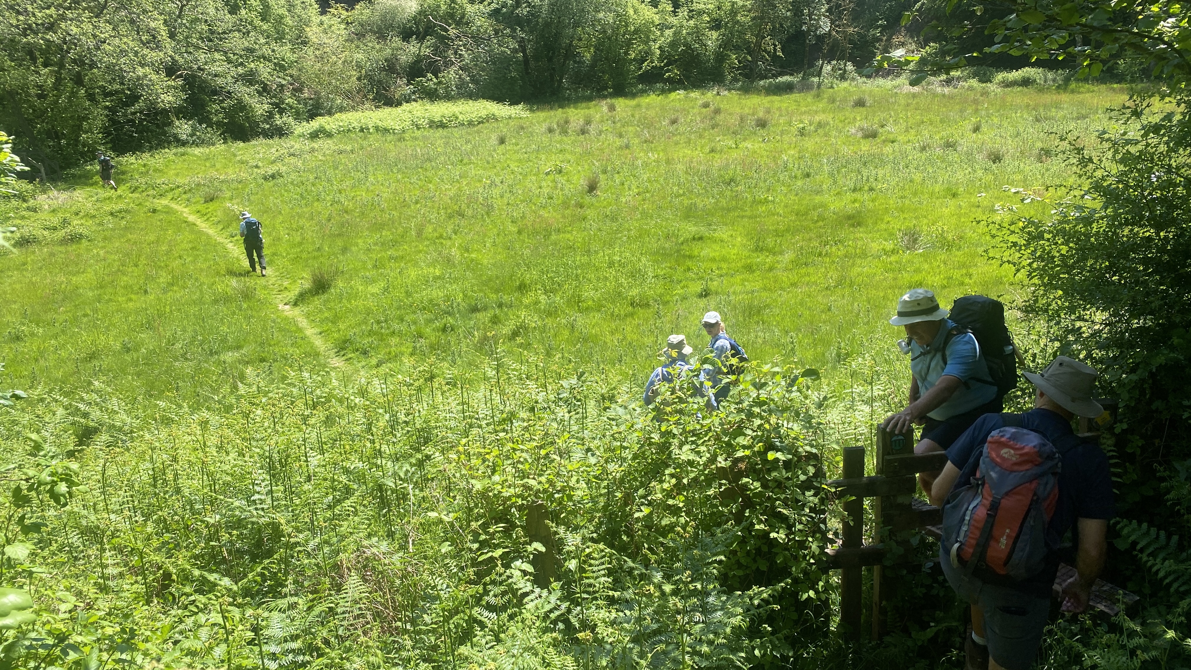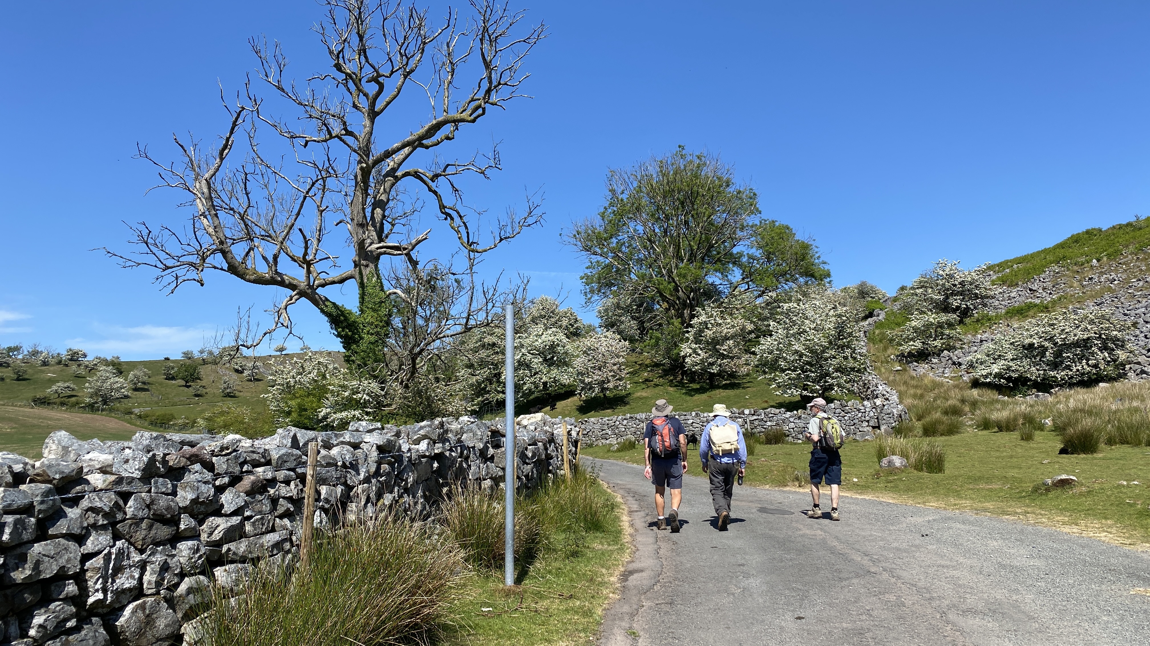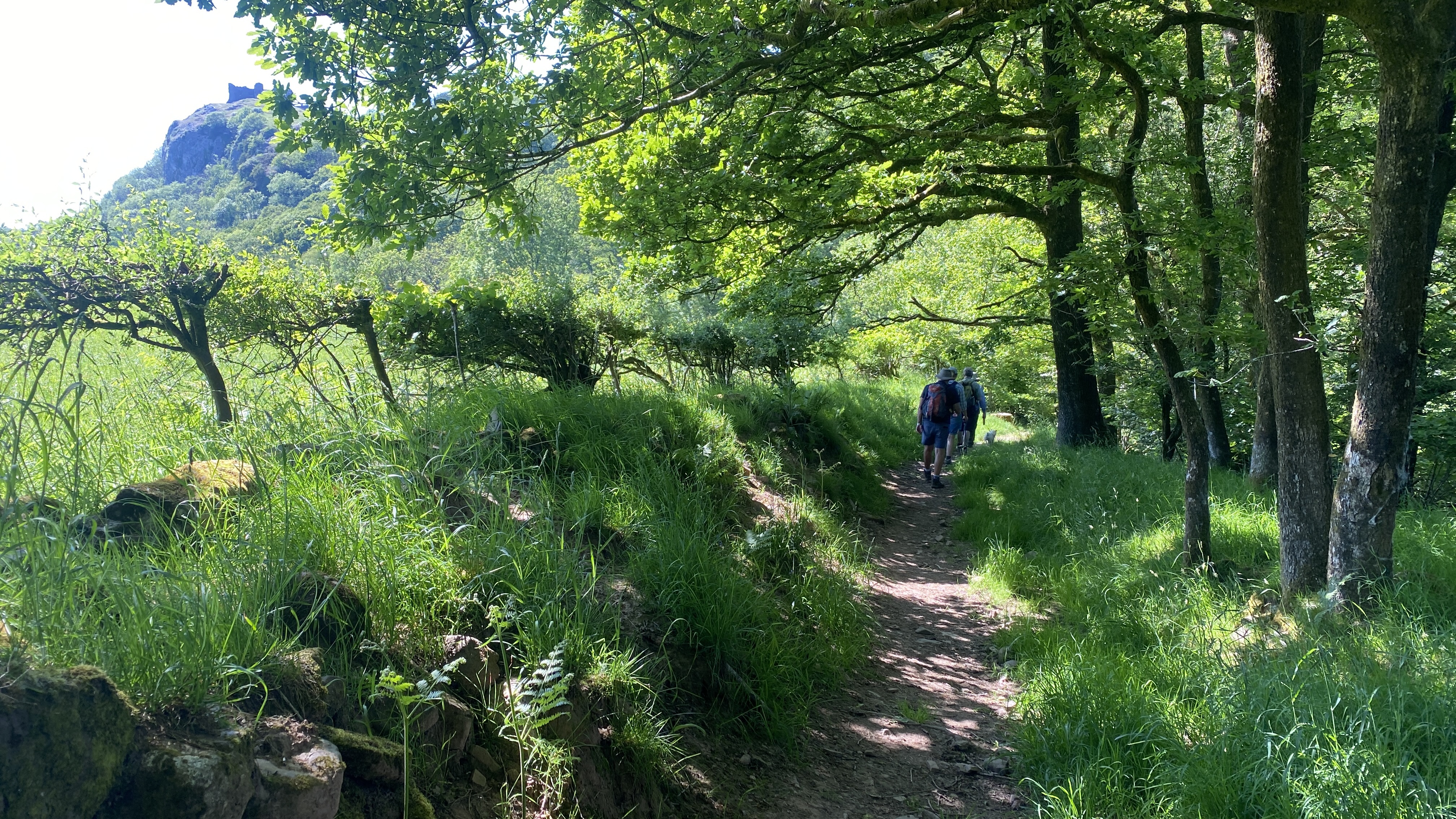 Bright, sunny weather greeted 8 lucky Merthyr Valley Ramblers (including welcome guest and new group member Mark) on today’s walk from Carreg Cennen Castle. From the carpark, we climbed steadily to castle view where, after the obligatory pictures were taken, we continued to Gelli-groes where we turned Westwards. At Grip-Fach, we headed South to Blaencwm where we had our first cuppa on the banks of the Afon Cennen. We then followed the river past Trap to Cwmcennan where we found a nice, shady spot to have our lunch. Heading South, we picked up the Beacons Way and made a big loop back to the castle and a welcome cool drink in the lovely cafe. A big thanks to John for an unusual and splendid scenic walk and to all for the great company.