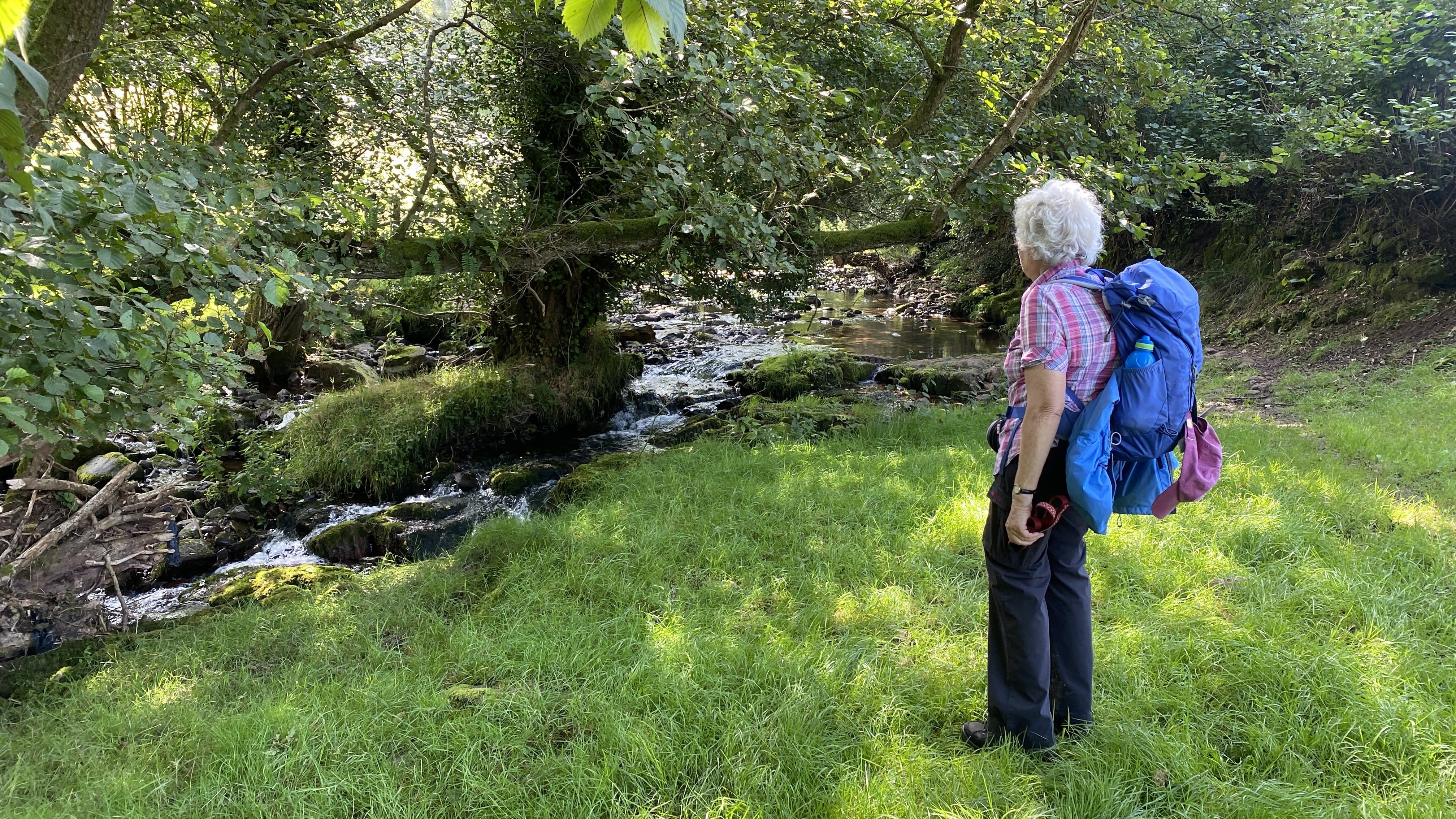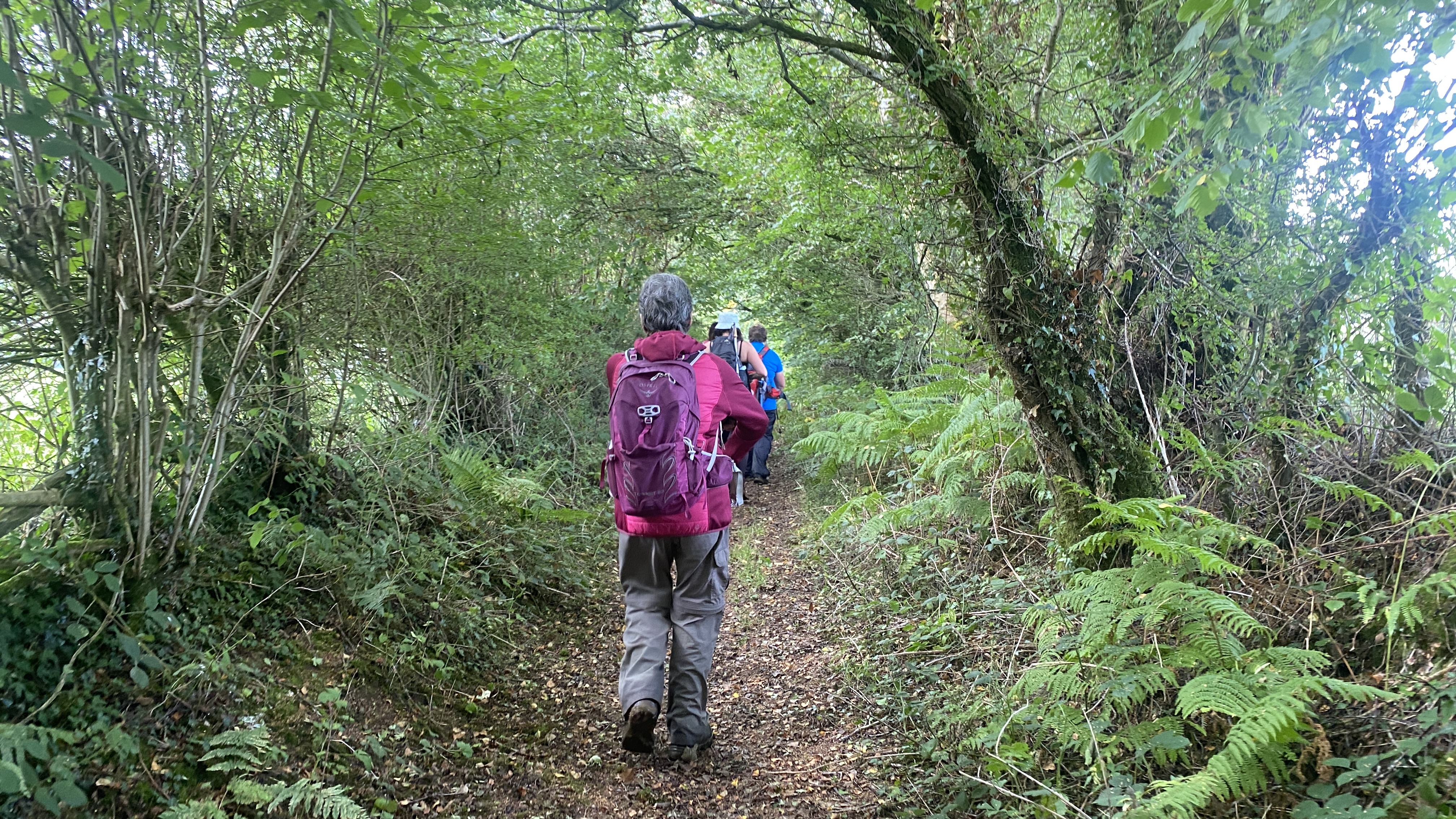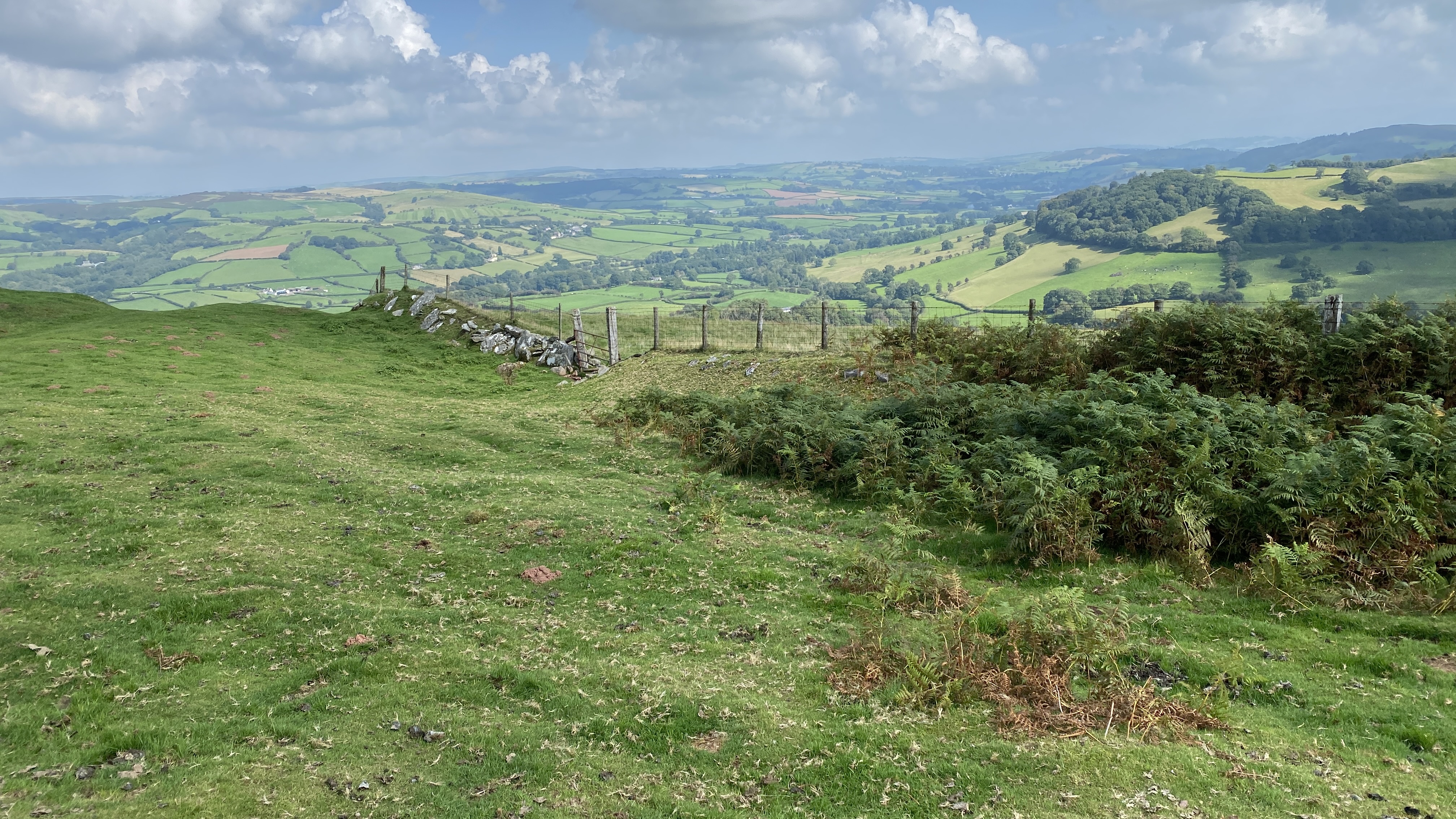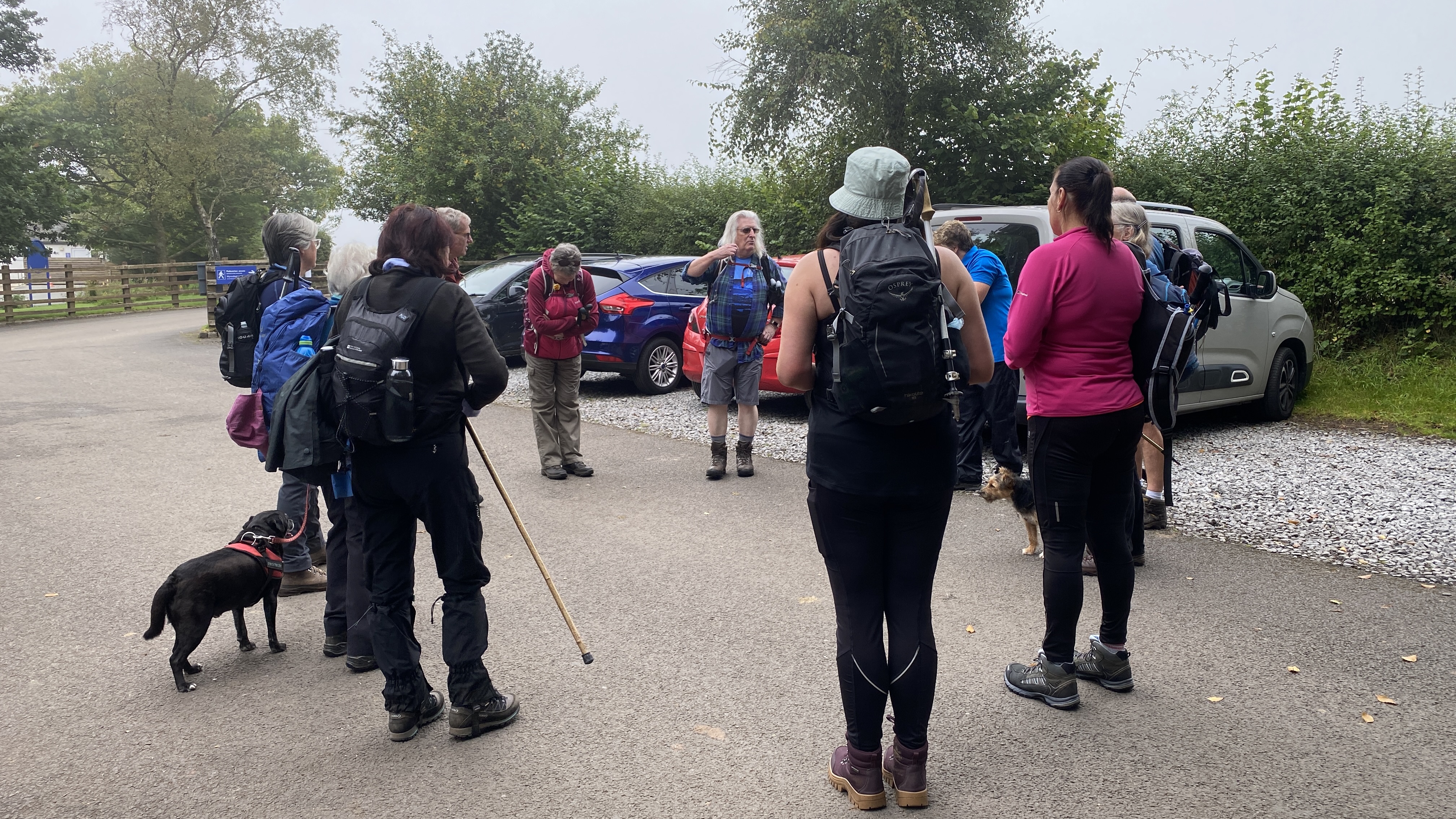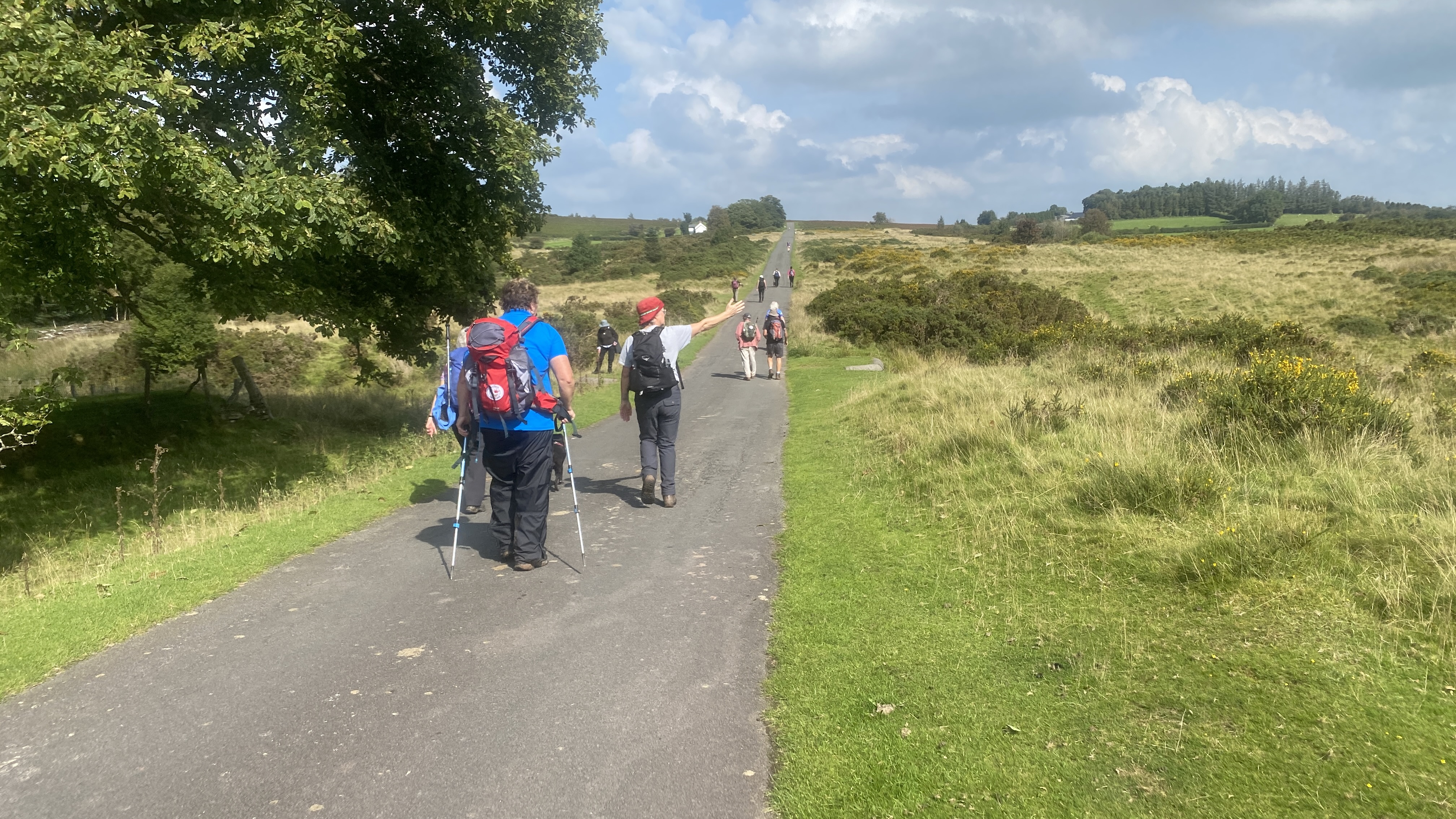 It was warm but misty start for the 12 hardy ramblers at the mountain centre today. We began our near 9 mile walk by heading Southwest then turning North through the Daudraeth Illtyd nature reserve and crossing Sarn Helen. Following the drovers road, we continued North where at Nwydd Cwmcamlais we headed west to the road. At the start of the long climb to the Cefn Llechid trig point, we had a coffee break as the sun broke through the mist and it got even warmer. We then had a straight climb past the waiting-for-harvesting bracken until we reached the trig point and luncheon. Fully refreshed, we then dropped down and crossed the Cwm Camlais then climbed again back to the drovers road that we used earlier. We then walked along the road to the standing stone and turned East back to the centre. Another superb walk with perfect views thanks to Simon and all the great company.