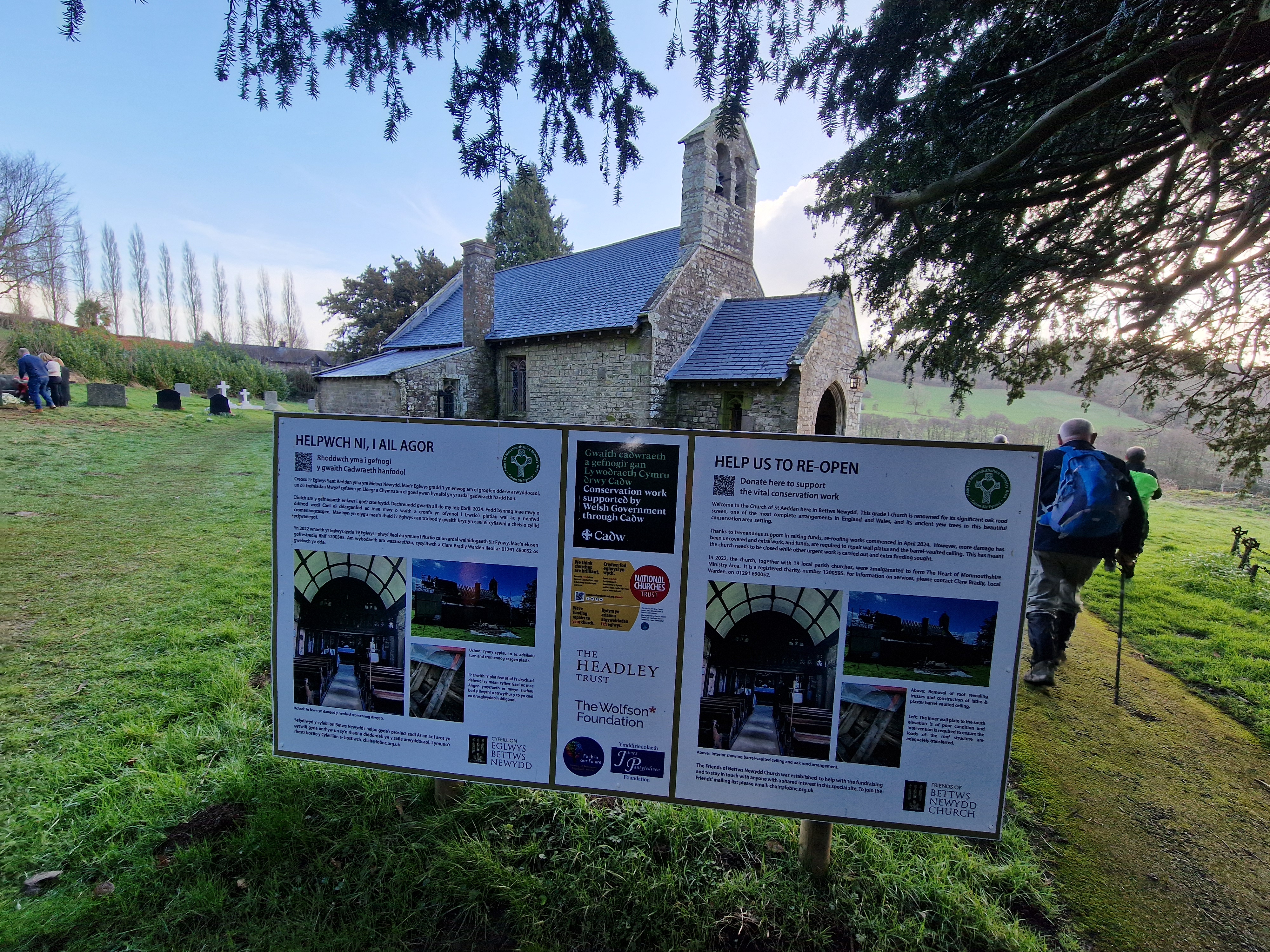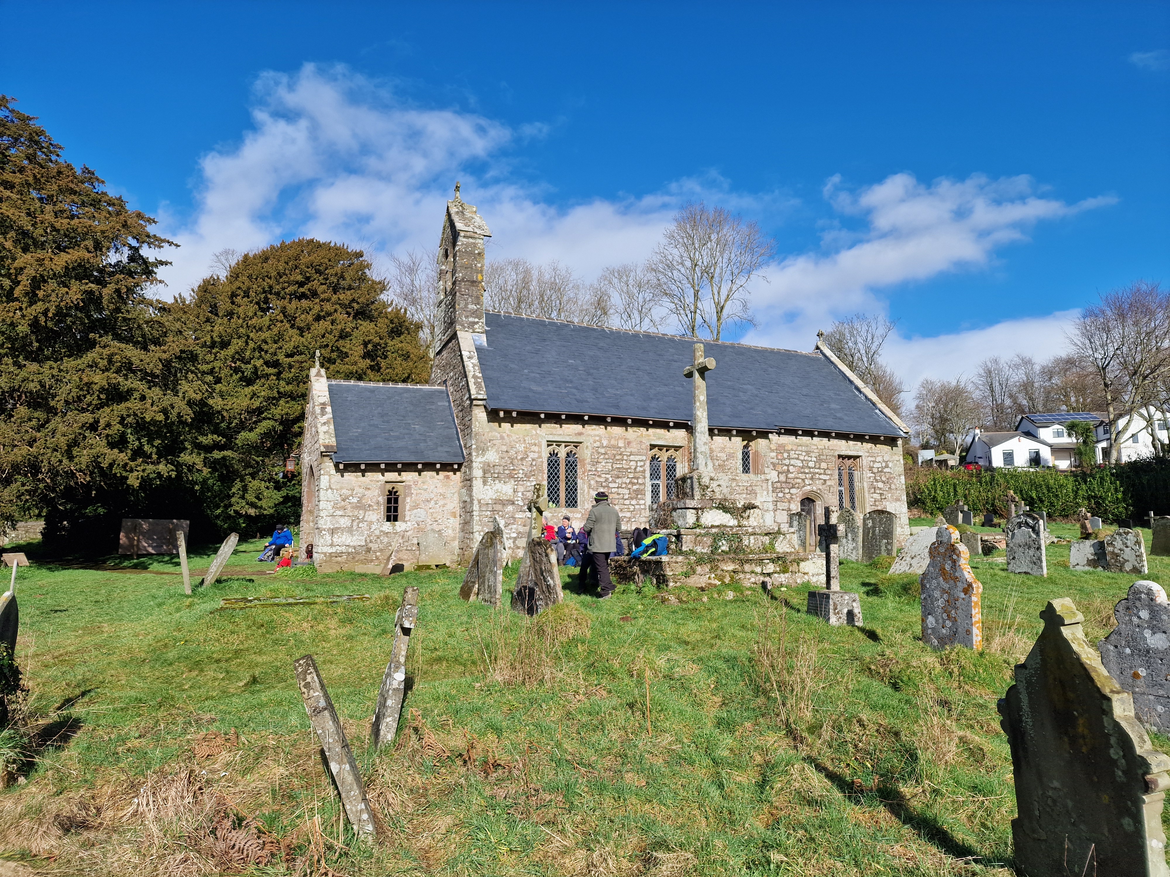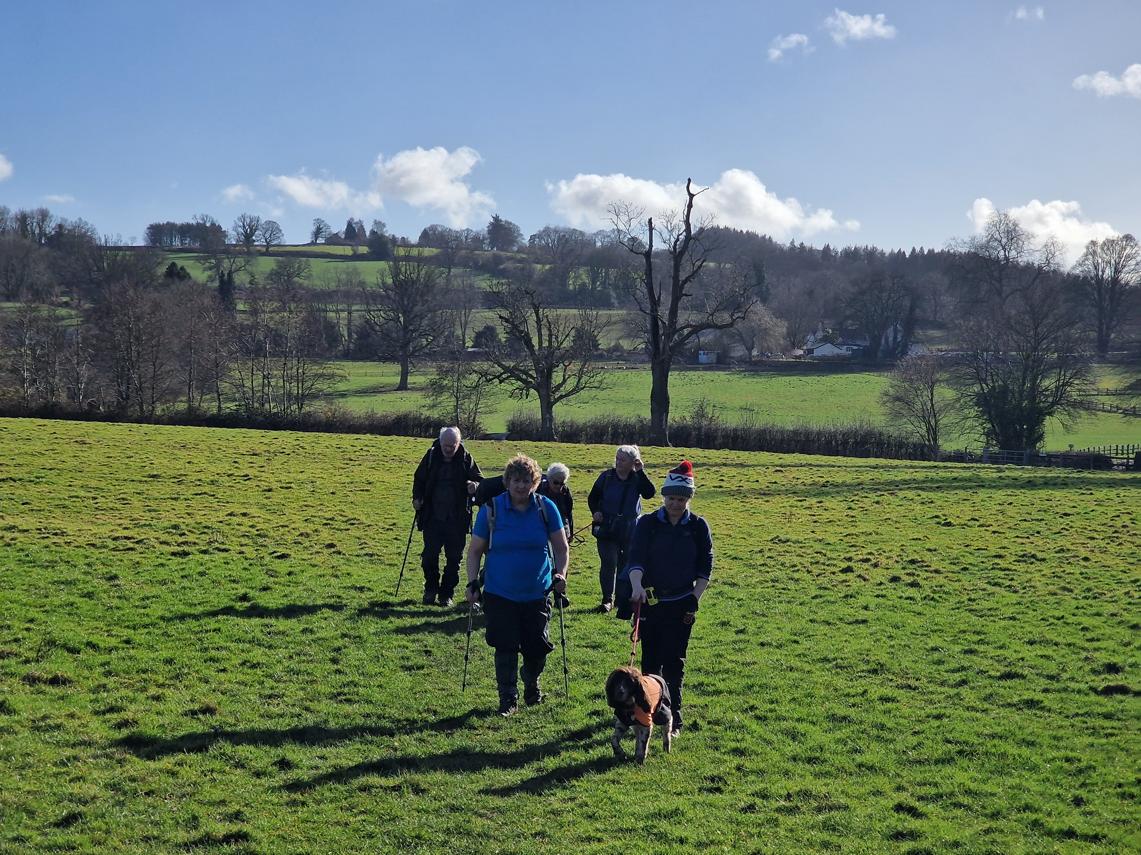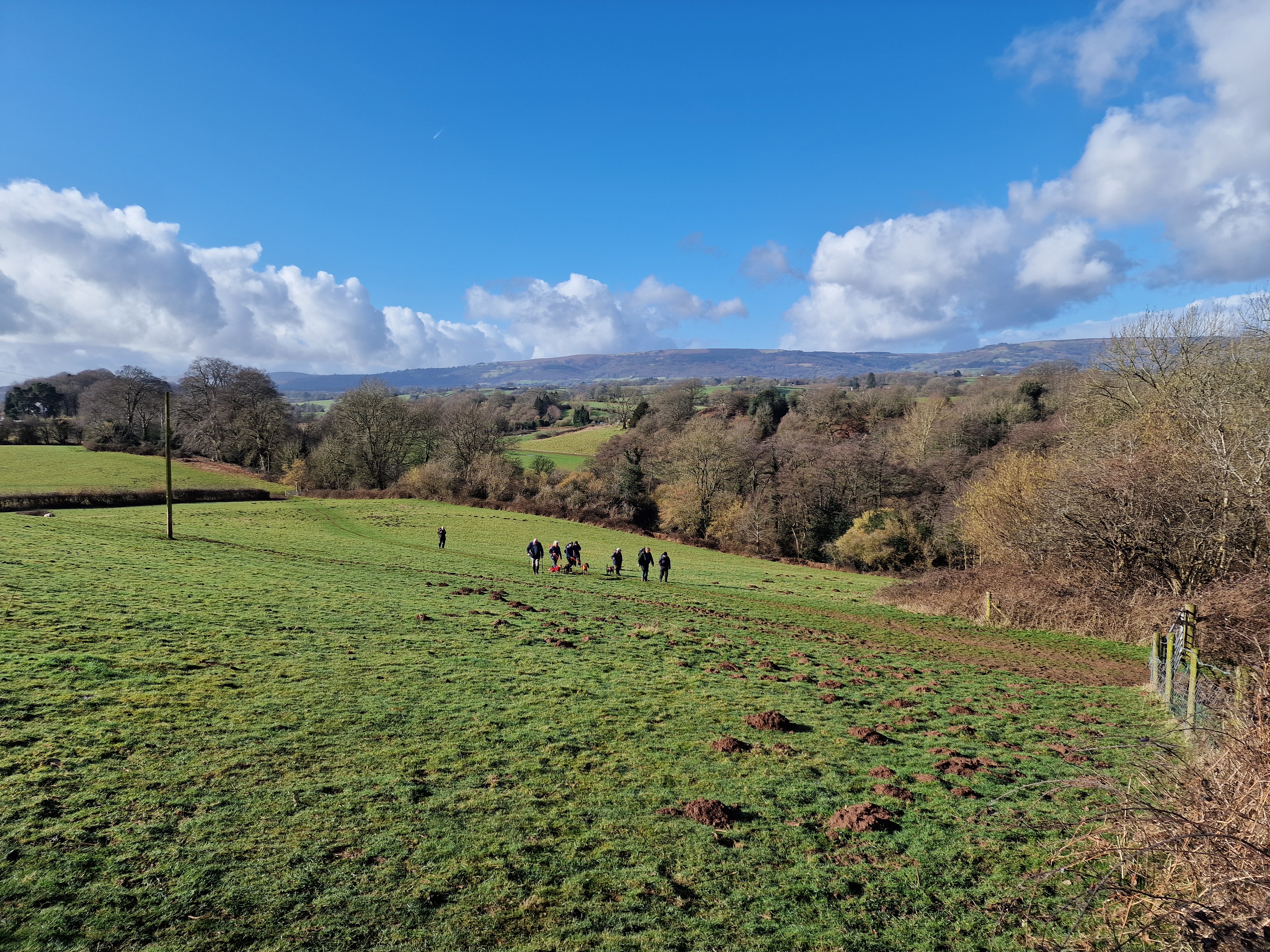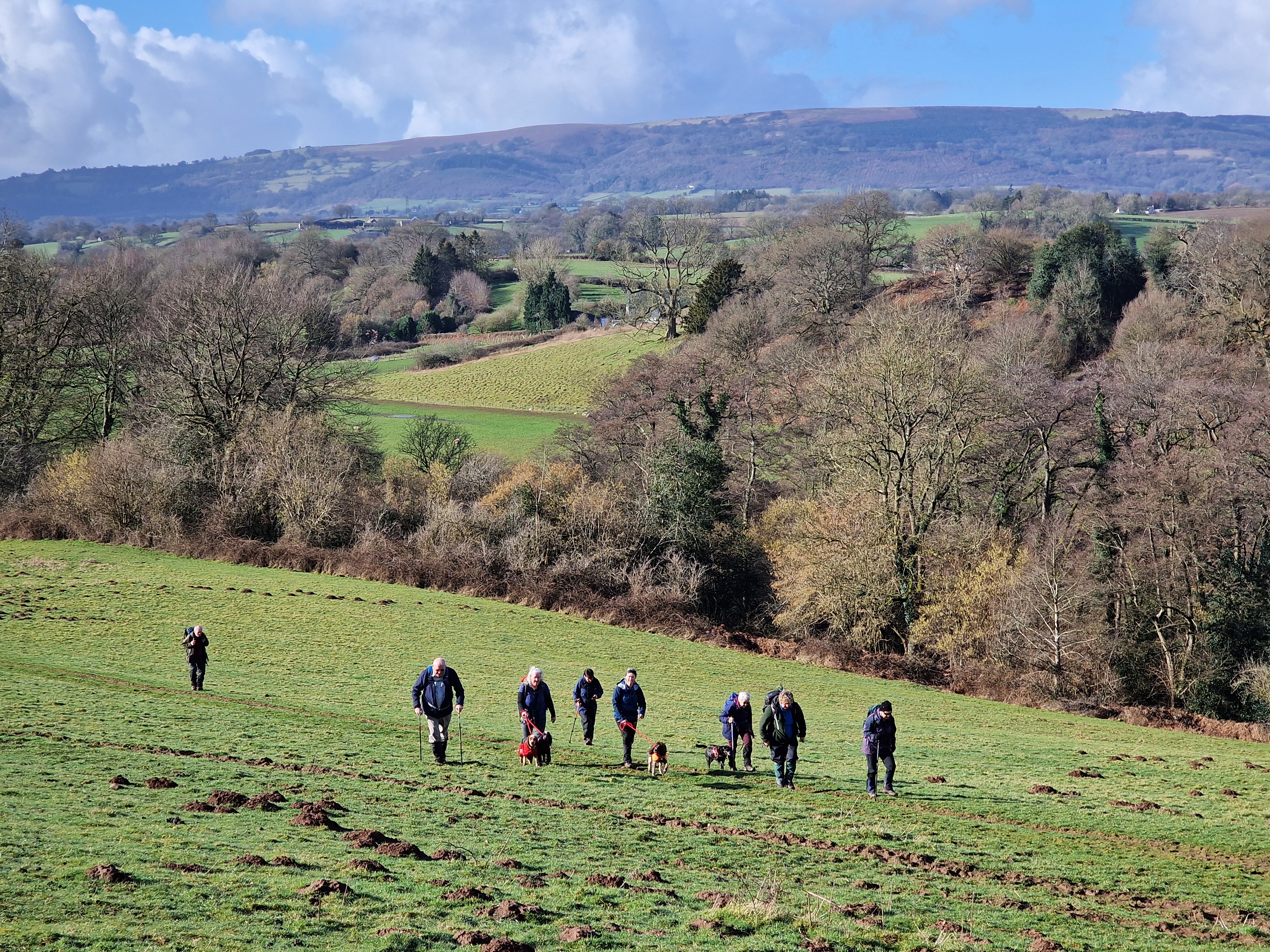 13 of us, including our lovely guests Caroline and Martin, enjoyed a fantastic 9-mile circular walk titled "Clytha Snowdrop Walk." The weather was bright and dry as we set off from the free National Trust car park at Clytha towards the banks of the River Usk. We headed south downstream as far as we could (erosion has closed a section of riverbank) before making our way up to the lane. Following the lane southward, we reached the charming village of Bettws Newydd. Here, we visited the historic church and its magnificent Yew tree, which is believed to be over 1,000 years old! The church itself dates back to the 13th century and has been a place of worship for centuries. After a refreshing tea break and our first glimpse of this season's snowdrops, we continued our journey. Our path took us northward through fields before picking up the lane to Coed y Bwynydd Hill Fort. This Iron Age hill fort, dating back to around 800 BC, offered us a glimpse into ancient history with its impressive earthworks. After a brief rest and wander around the hill fort, we continued north to the top of Clytha Hill, where we were treated to a stunning carpet of snowdrops. We then made our way downhill to Hillgrove and our lunch spot at Clytha Castle. Built in the late 18th century, Clytha Castle is a picturesque folly with spectacular views of the Sugar Loaf and Skirrid as a backdrop. On our homeward stretch, we passed through fields and woodland, enjoying the sun and dry weather. However, the ground underfoot was a different story, with mud and boggy patches keeping us on our toes! We soon found ourselves back on the banks of the Usk, north of the car park, where we concluded our walk. A big thank you to everyone who came and made the day special!