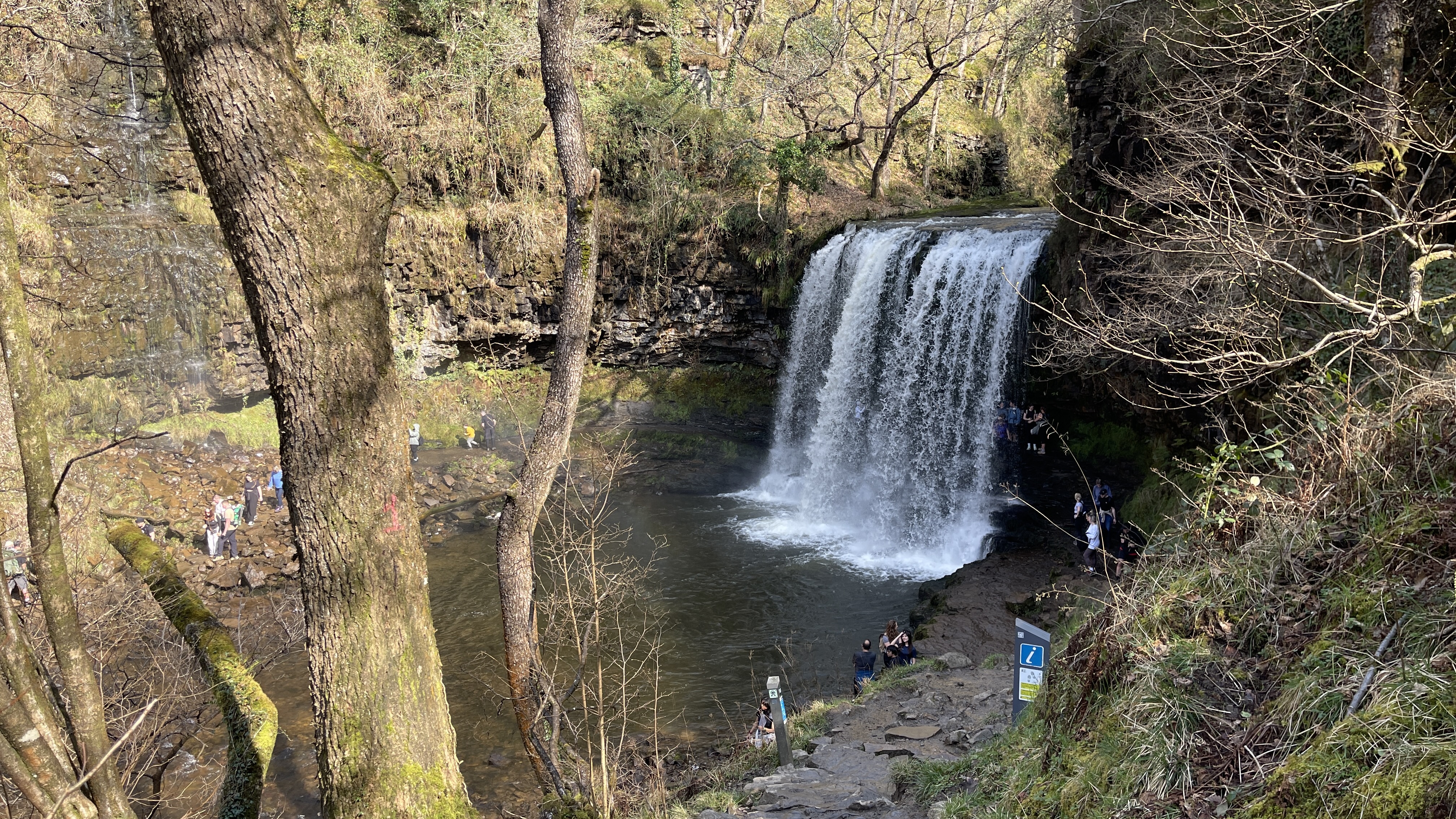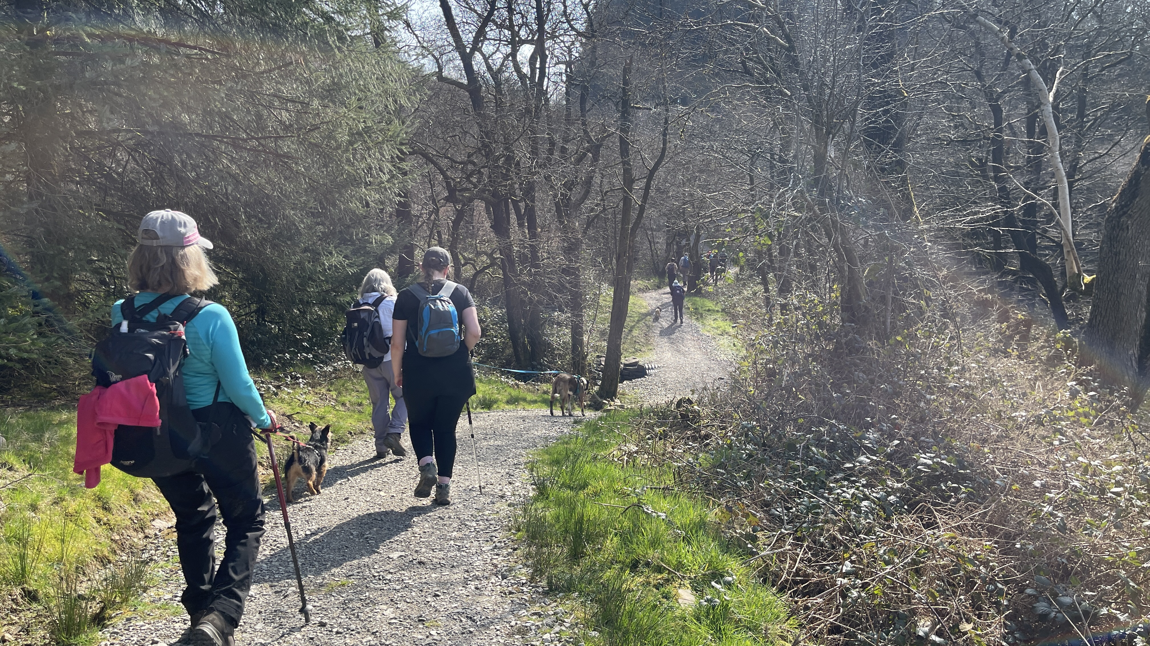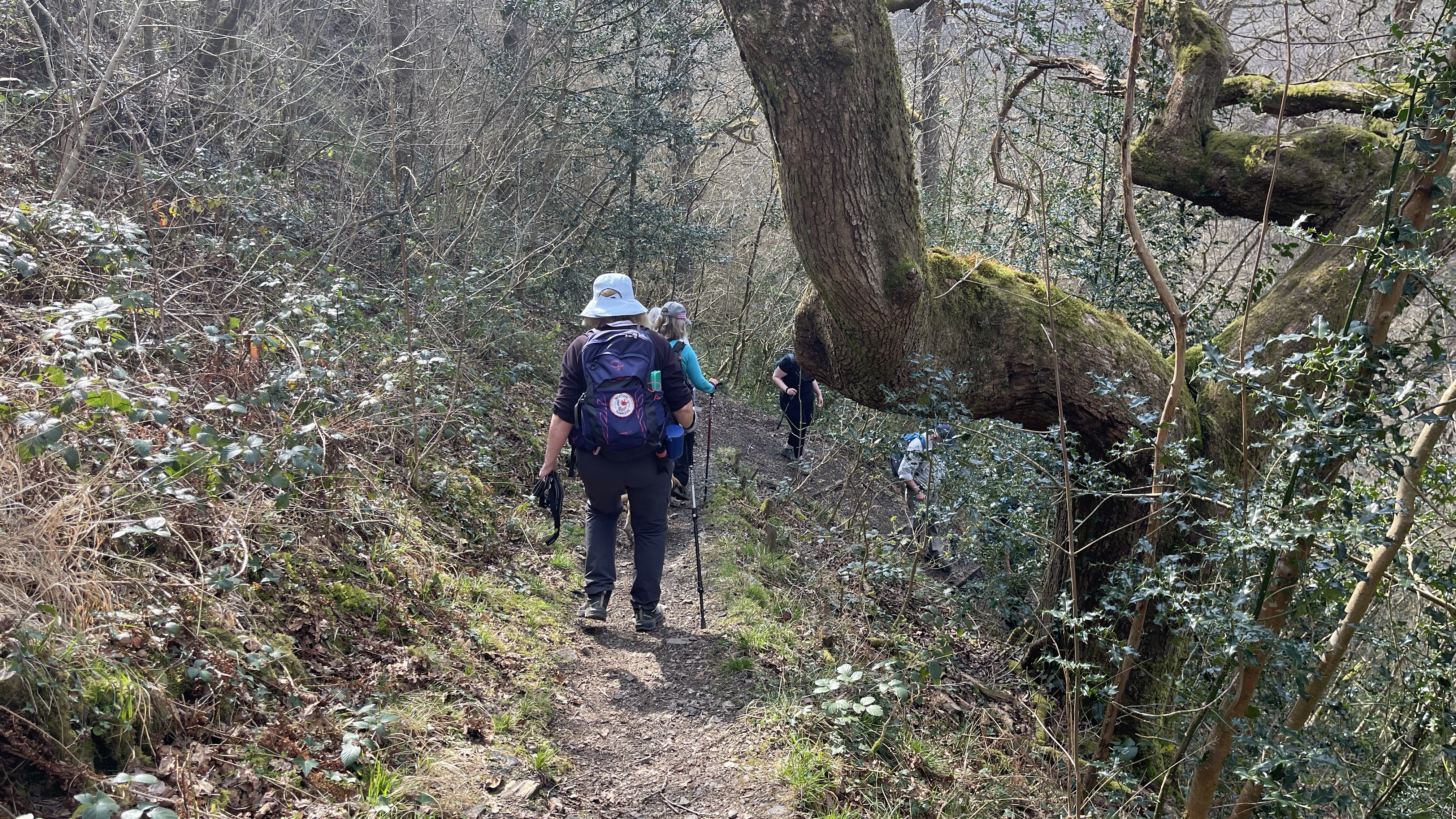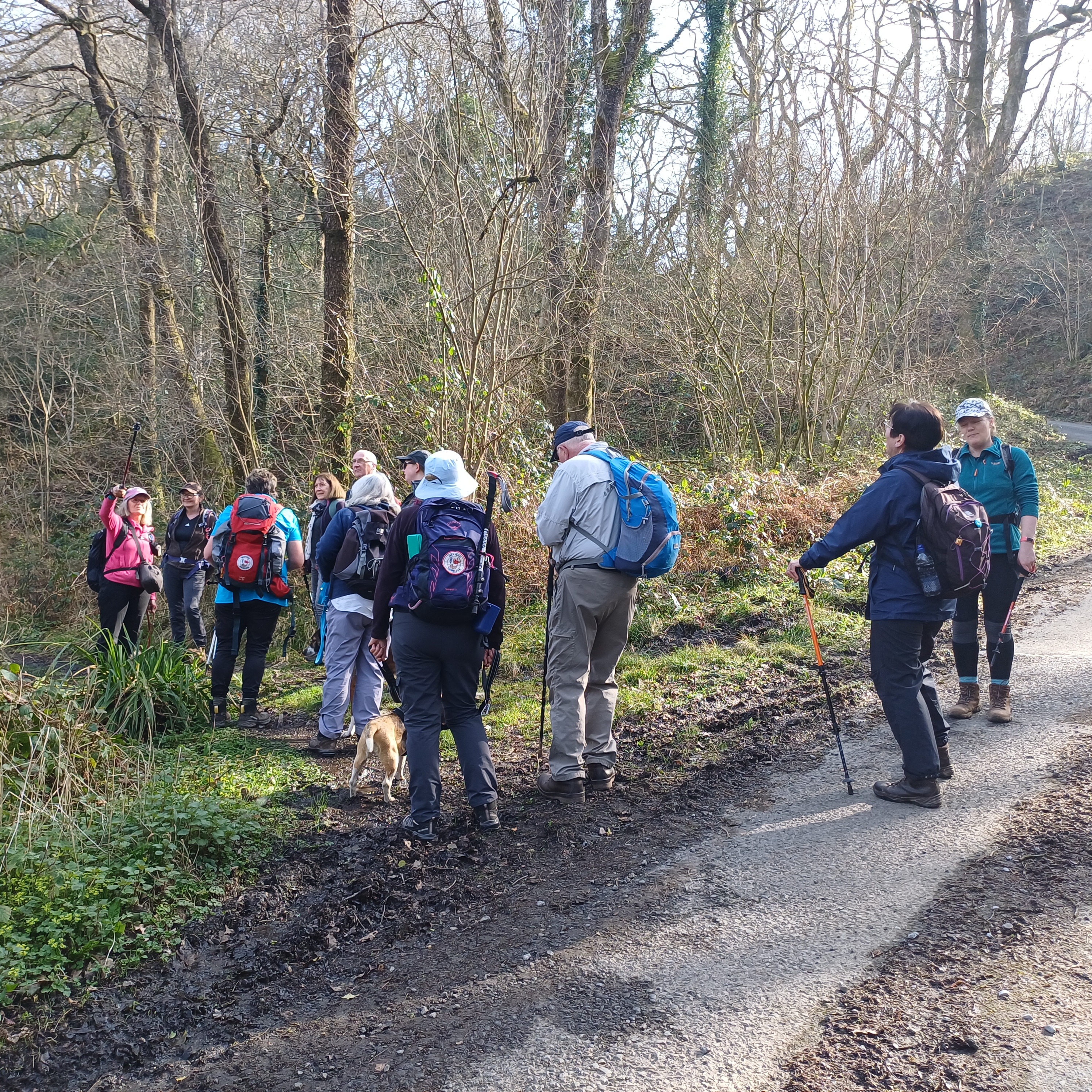 Dinas rock greeted fourteen Merthyr Valley Ramblers (including welcome guests Trudie and Helen) in bright sunshine today. Our 6.5 mile walk started uphill through Coed y Ffyrnau, across the Sychryd then due East to Ffynnon Ddu for a quick cuppa. We then criss-crossed along the tracks to Sgwg yr Elra where the bravest of us went down the steep path to the waterfall. It was then through Cilhepste Fach and Cerig and down a steep zig zag path to the old explosives factory where we had lunch. It was then along the river back to the start. A superb walk well led by Jenny and the usual great company.