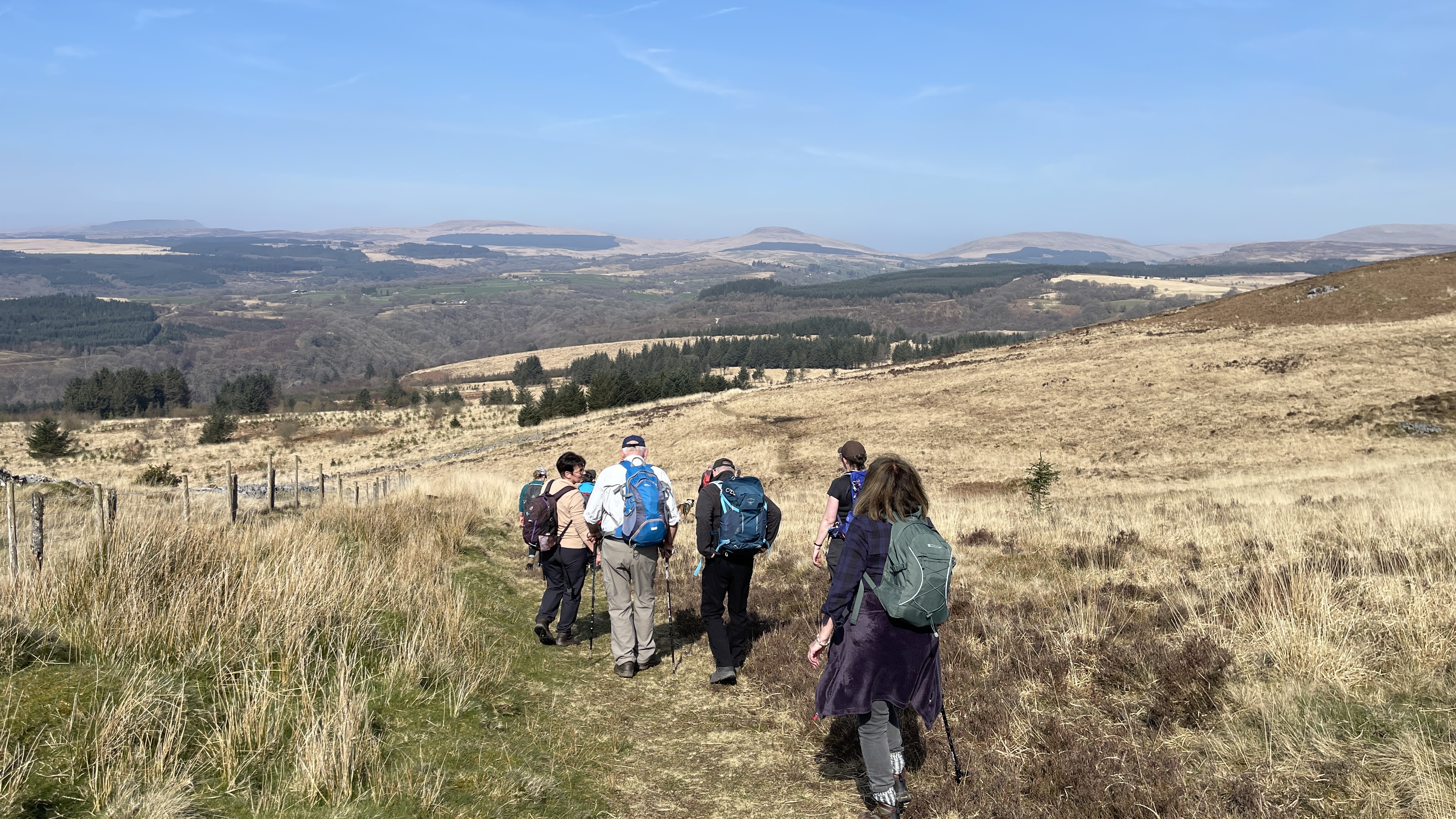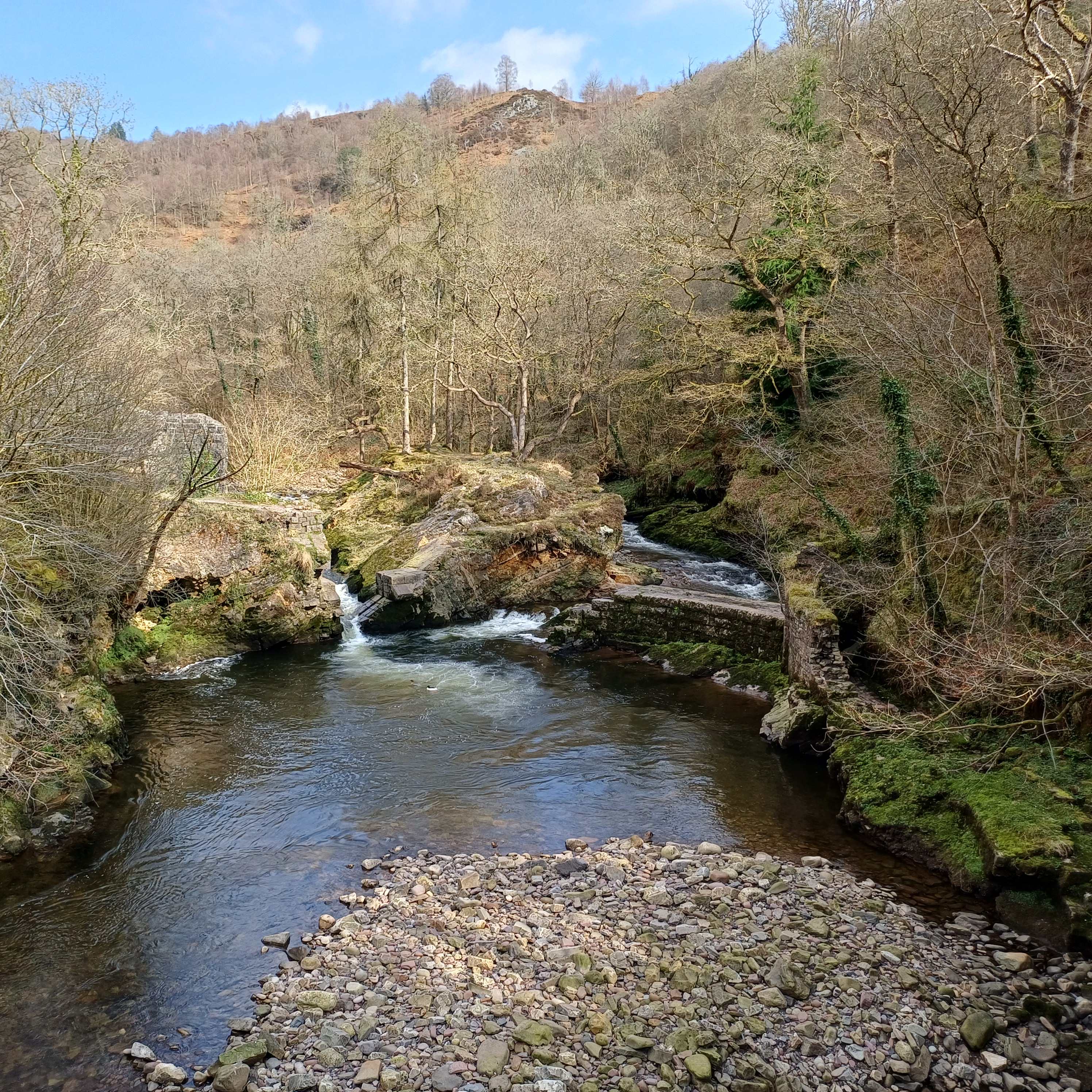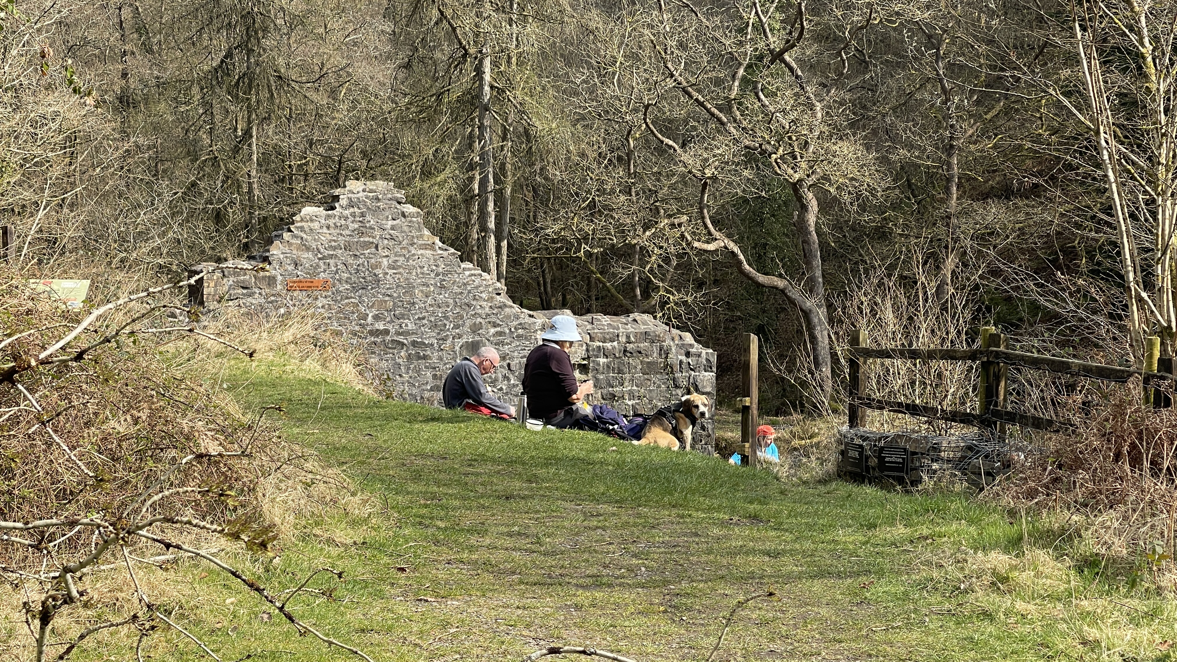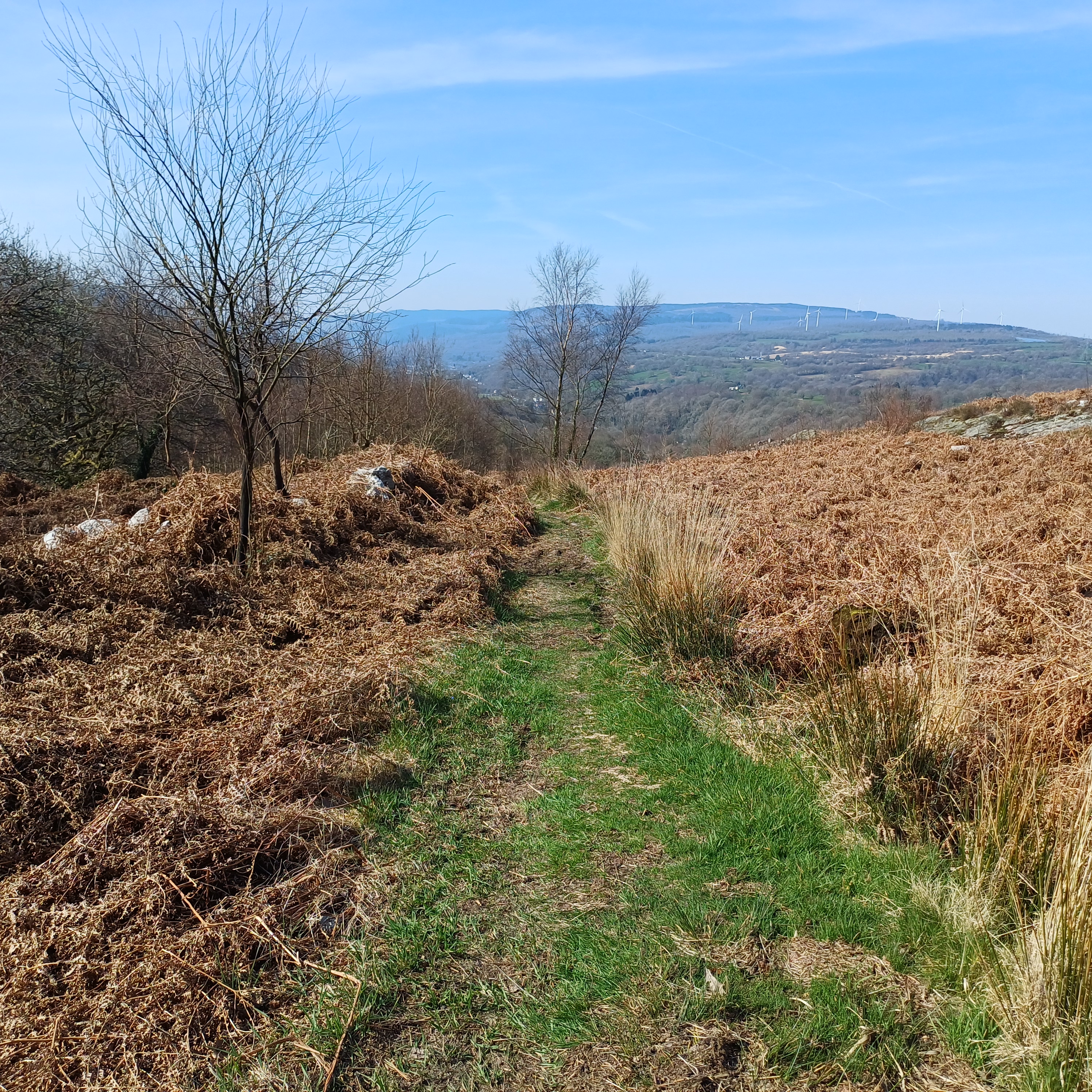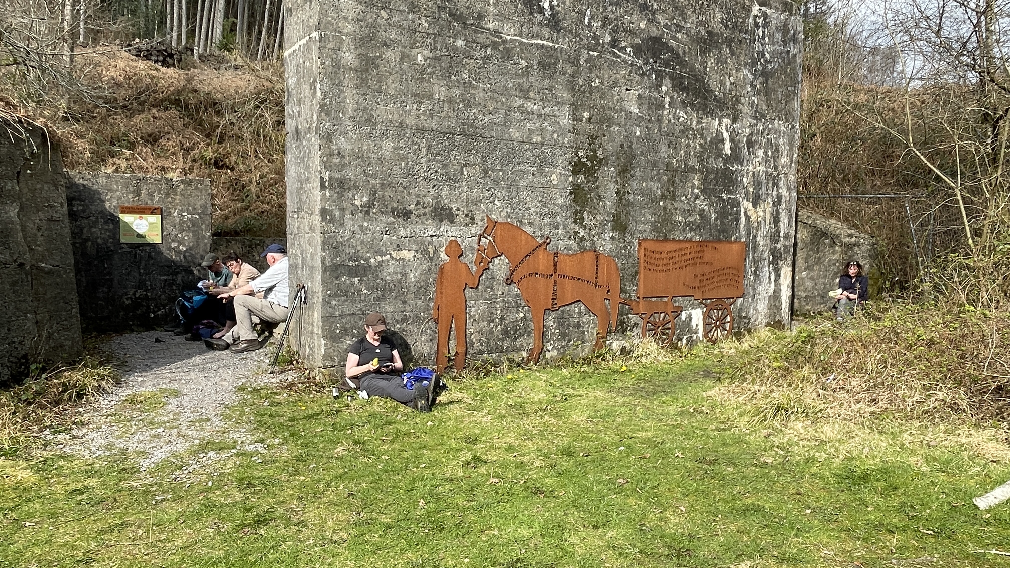 Dinas rock greeted fourteen Merthyr Valley Ramblers (including welcome guests Trudie and Helen) in bright sunshine today. Our 6.5 mile walk started uphill through Coed y Ffyrnau, across the Sychryd then due East to Ffynnon Ddu for a quick cuppa. We then criss-crossed along the tracks to Sgwg yr Elra where the bravest of us went down the steep path to the waterfall. It was then through Cilhepste Fach and Cerig and down a steep zig zag path to the old explosives factory where we had lunch. It was then along the river back to the start. A superb walk well led by Jenny and the usual great company.
