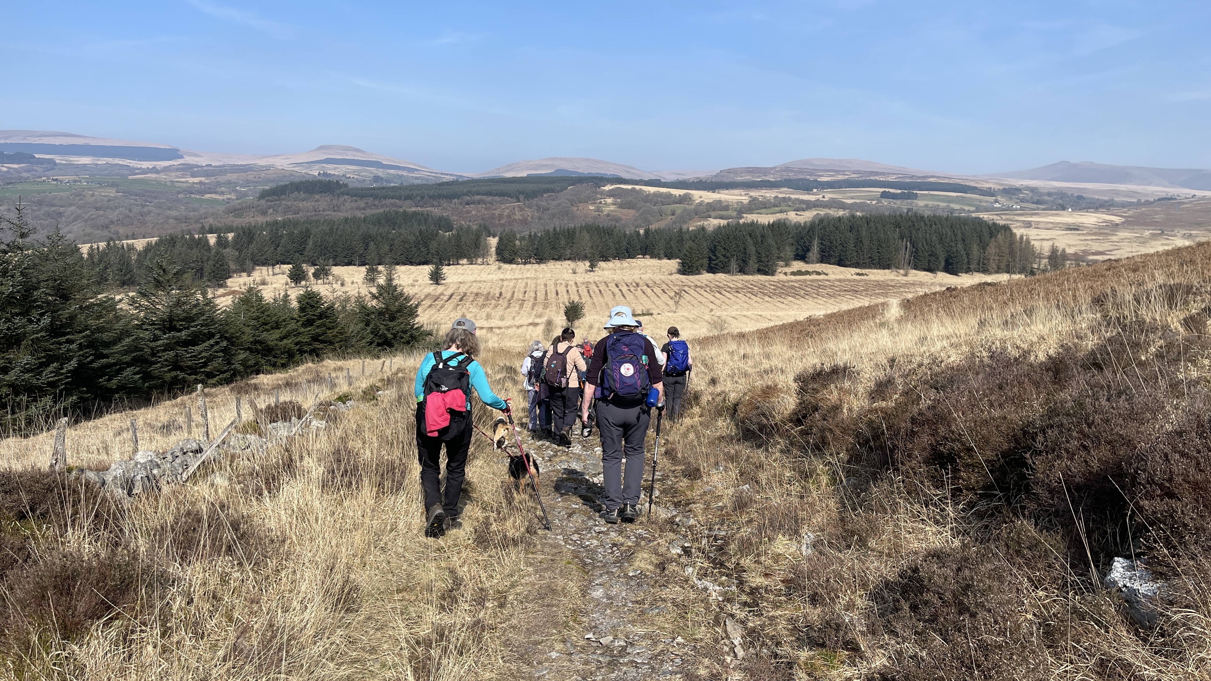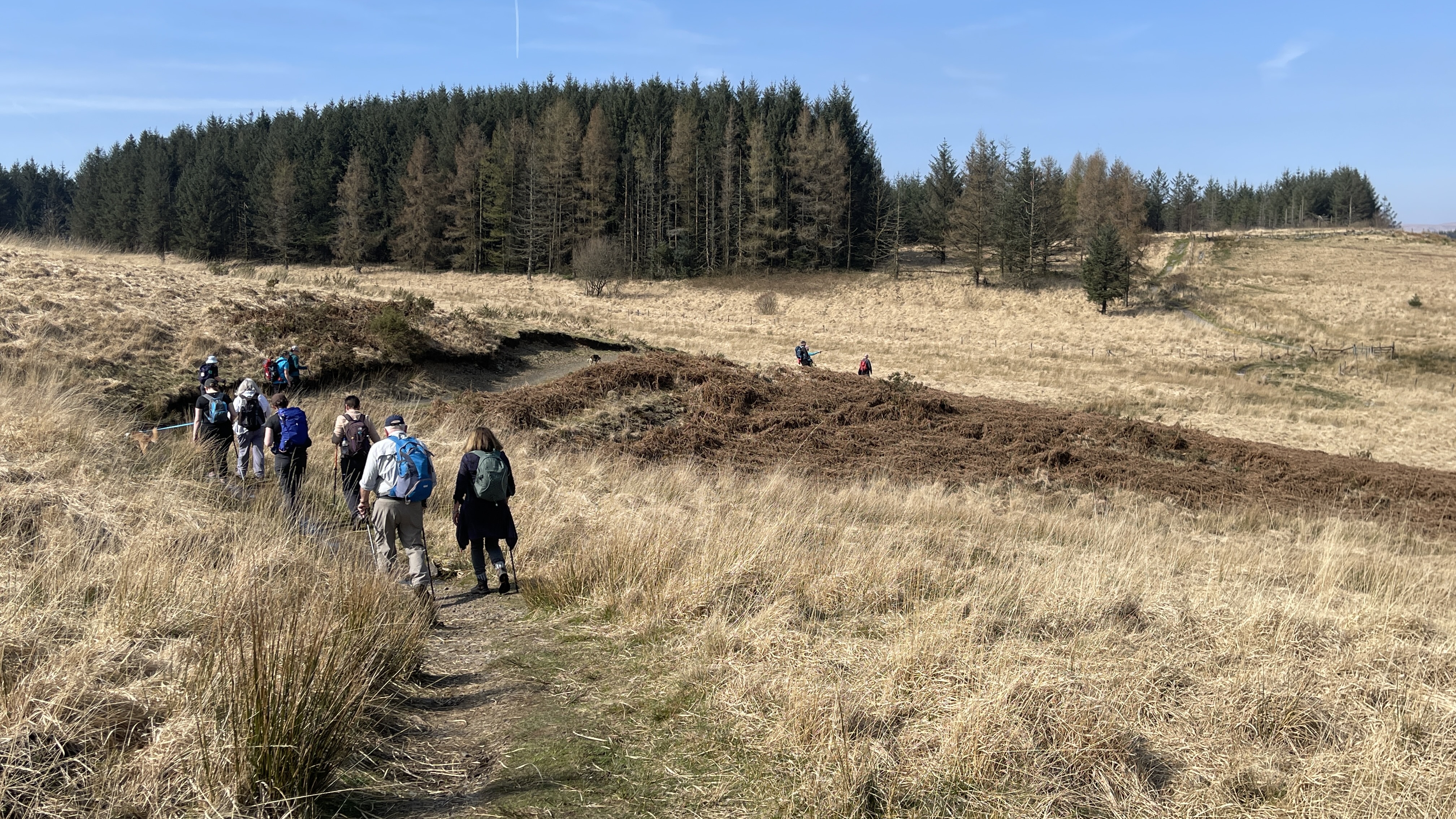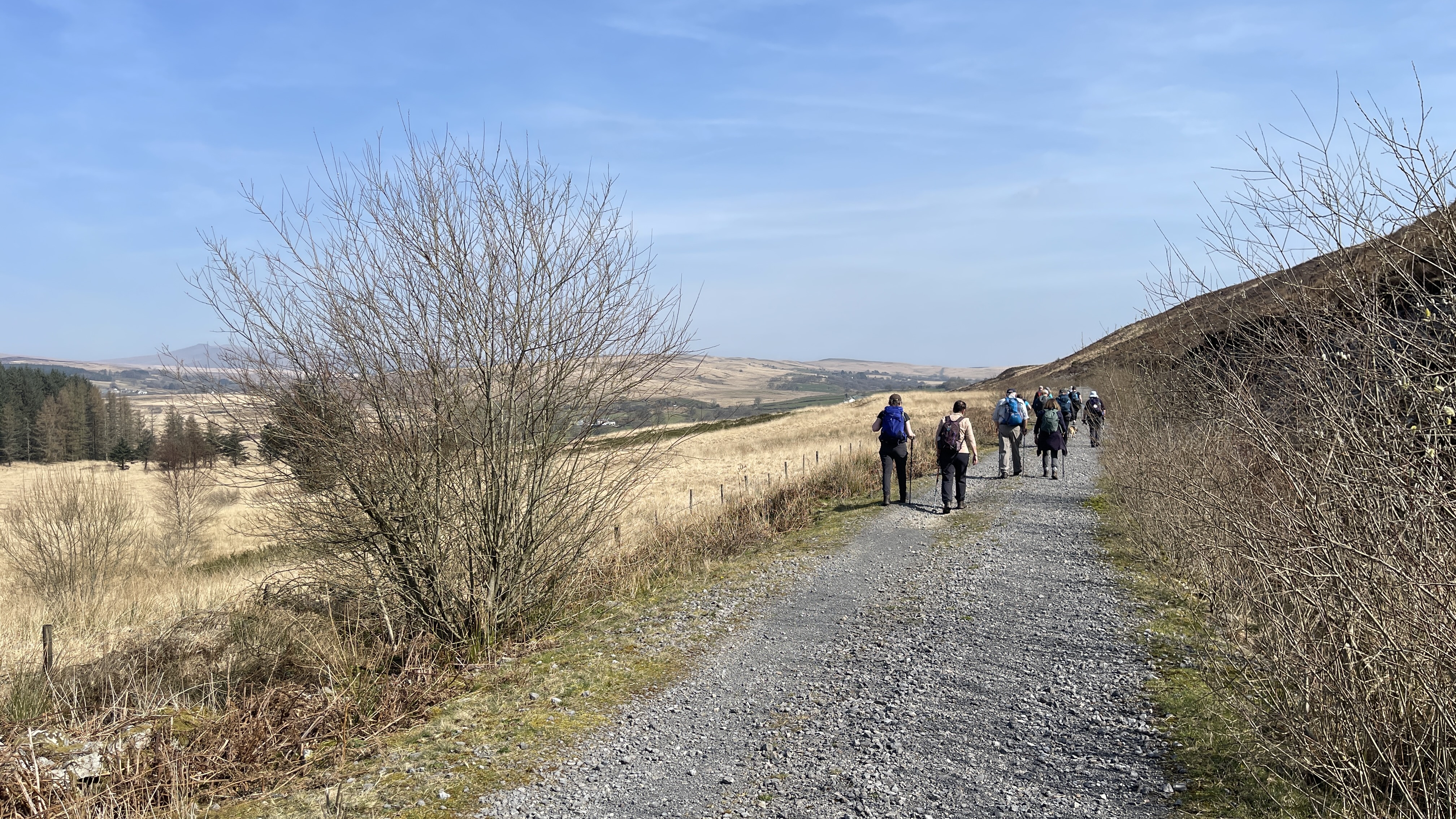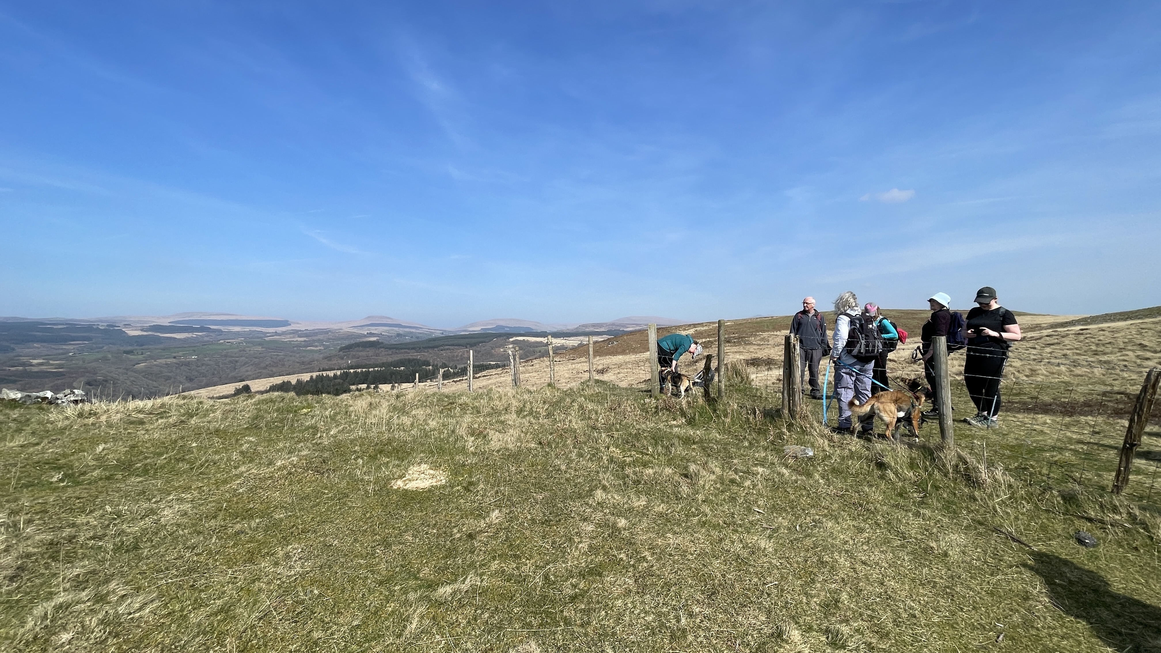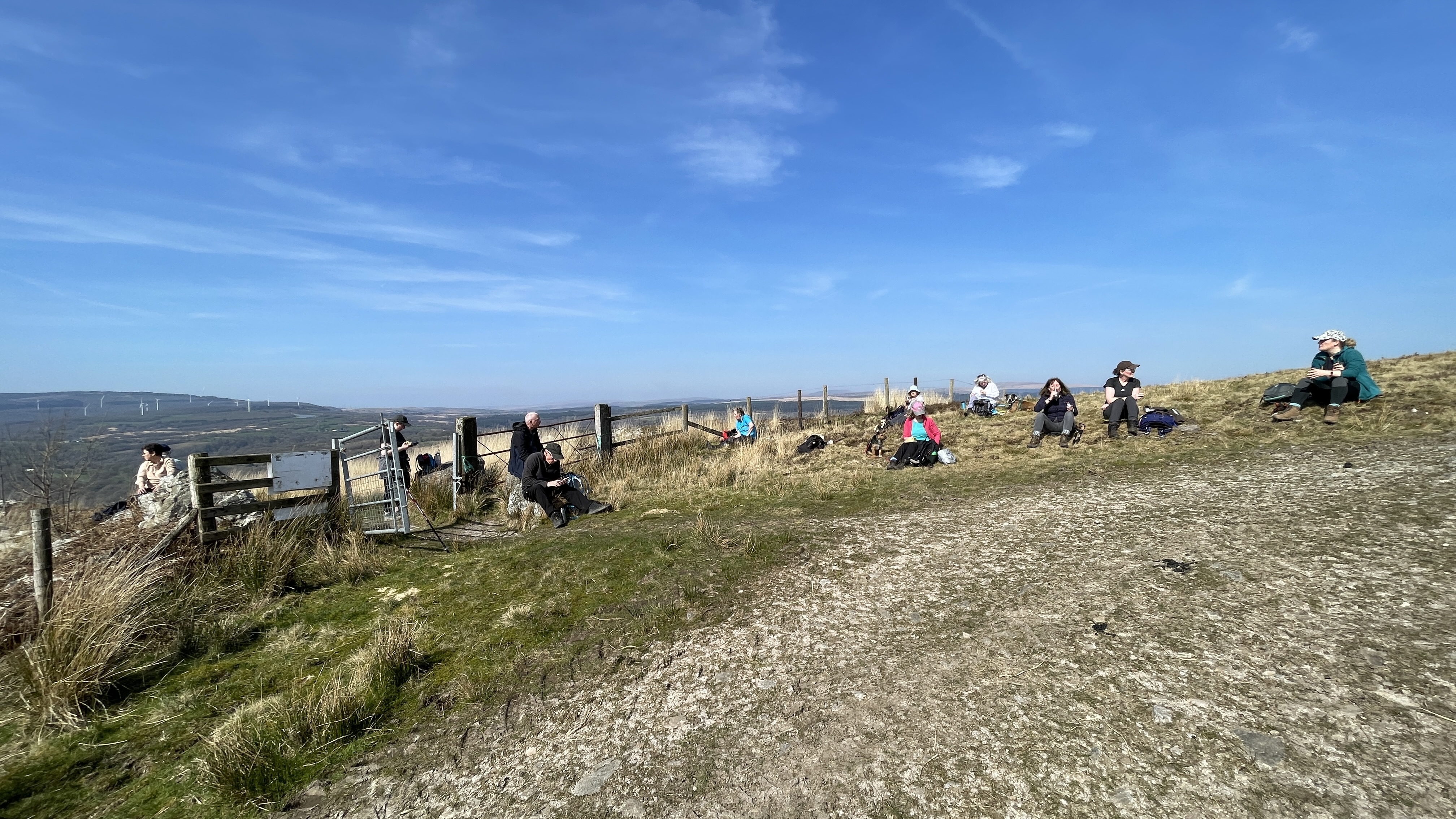 Dinas rock greeted fourteen Merthyr Valley Ramblers (including welcome guests Trudie and Helen) in bright sunshine today. Our 6.5 mile walk started uphill through Coed y Ffyrnau, across the Sychryd then due East to Ffynnon Ddu for a quick cuppa. We then criss-crossed along the tracks to Sgwg yr Elra where the bravest of us went down the steep path to the waterfall. It was then through Cilhepste Fach and Cerig and down a steep zig zag path to the old explosives factory where we had lunch. It was then along the river back to the start. A superb walk well led by Jenny and the usual great company.