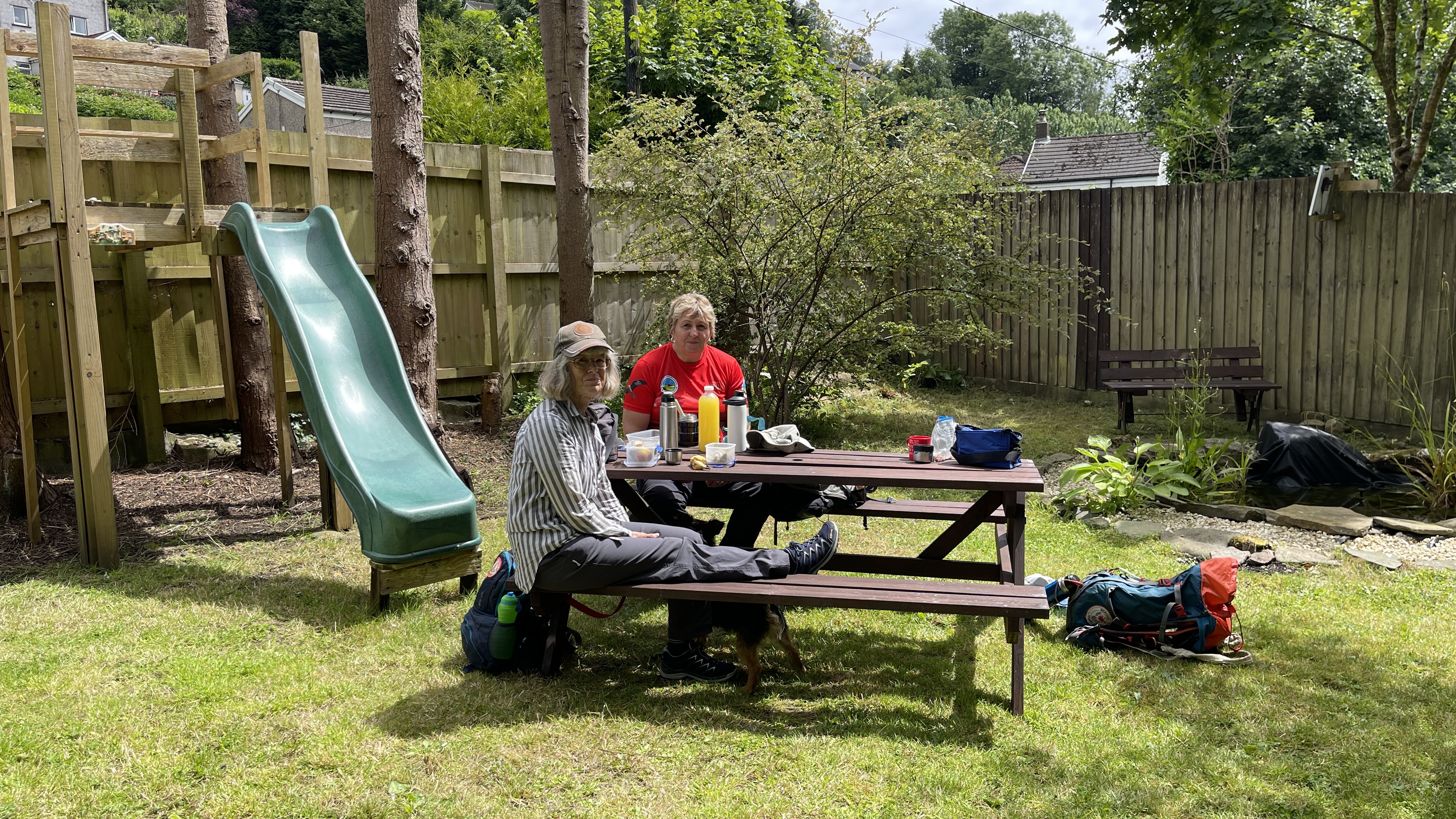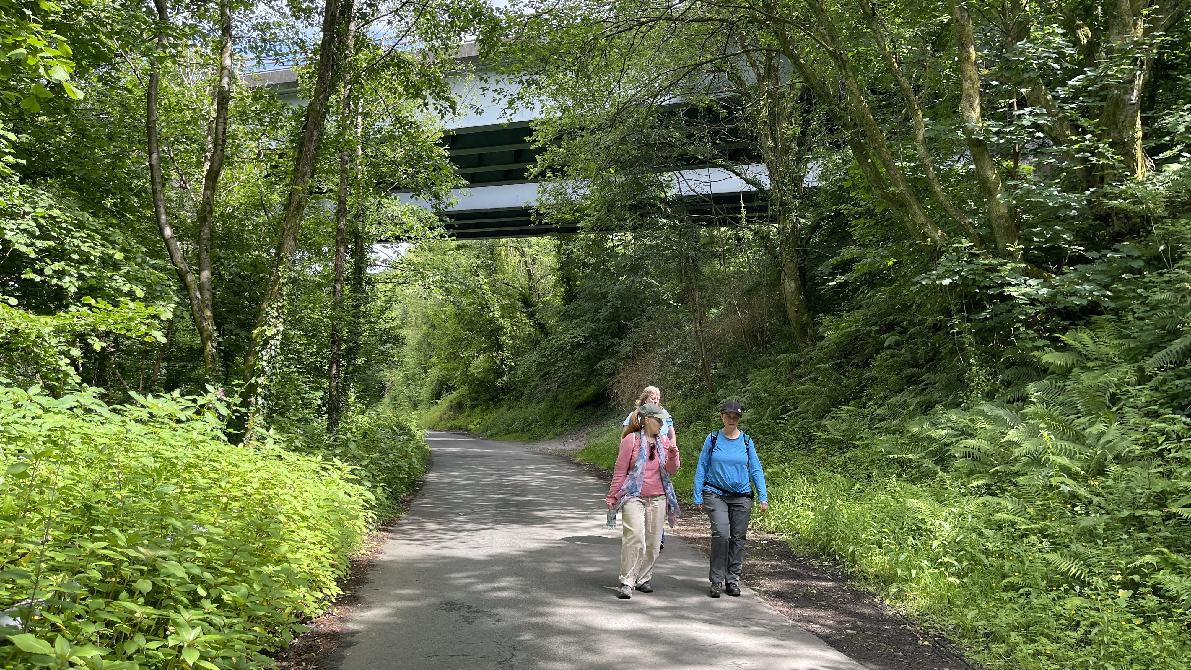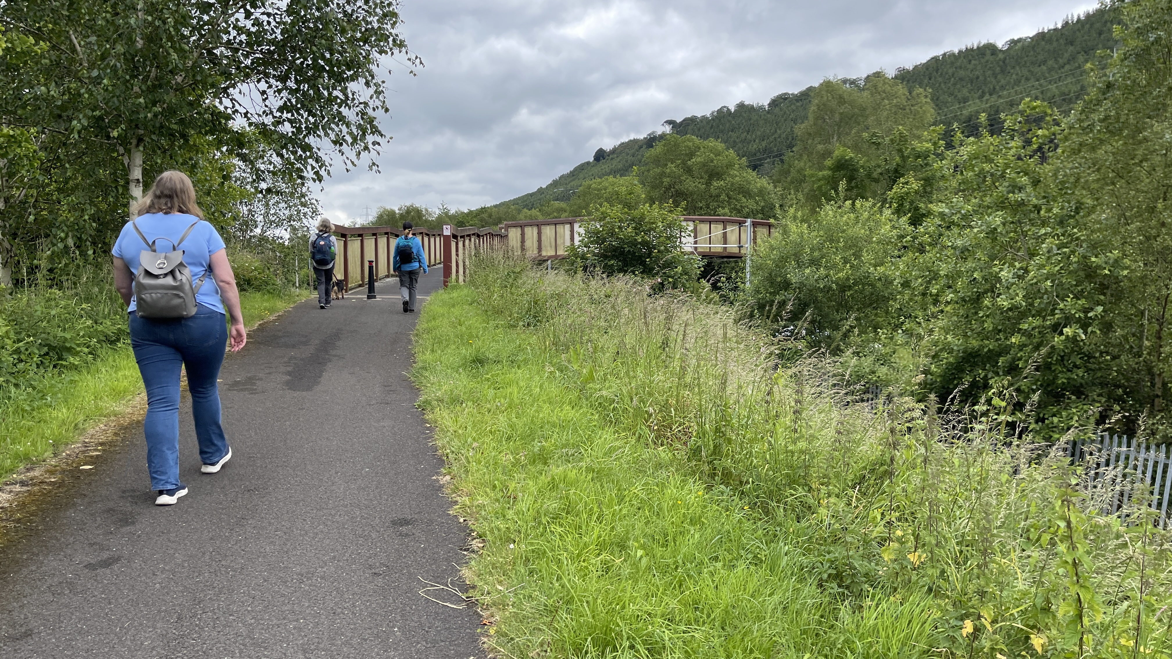A lovely warm morning greeted the 9 lucky Merthyr Valley Ramblers (including welcome guests Afon, Lisa and Trudy) at the start of our 9 1/2 mile walk today. We steadily made our way southwards, passing tank factory and statue, trees and stream to our first stop at the viewpoint overlooking Aberfan. We then carried on to the remains of the Edwardsville viaducts where more tea and coffee was consumed then onwards under the Taff vale viaduct and criss-crossing the Taff to Quakers yard. Lunch was taken in the oasis that is Gary's garden (thanks Gary!) listening to the birds and watching the squirrels while getting ready for the last leg. Our arrival at Abercynon station exactly matched the arrival of the Merthyr bound train and we gratefully hopped aboard, doing in 20 mins what had taken us five hours to do. A big thanks to all for making the walk so enjoyable.