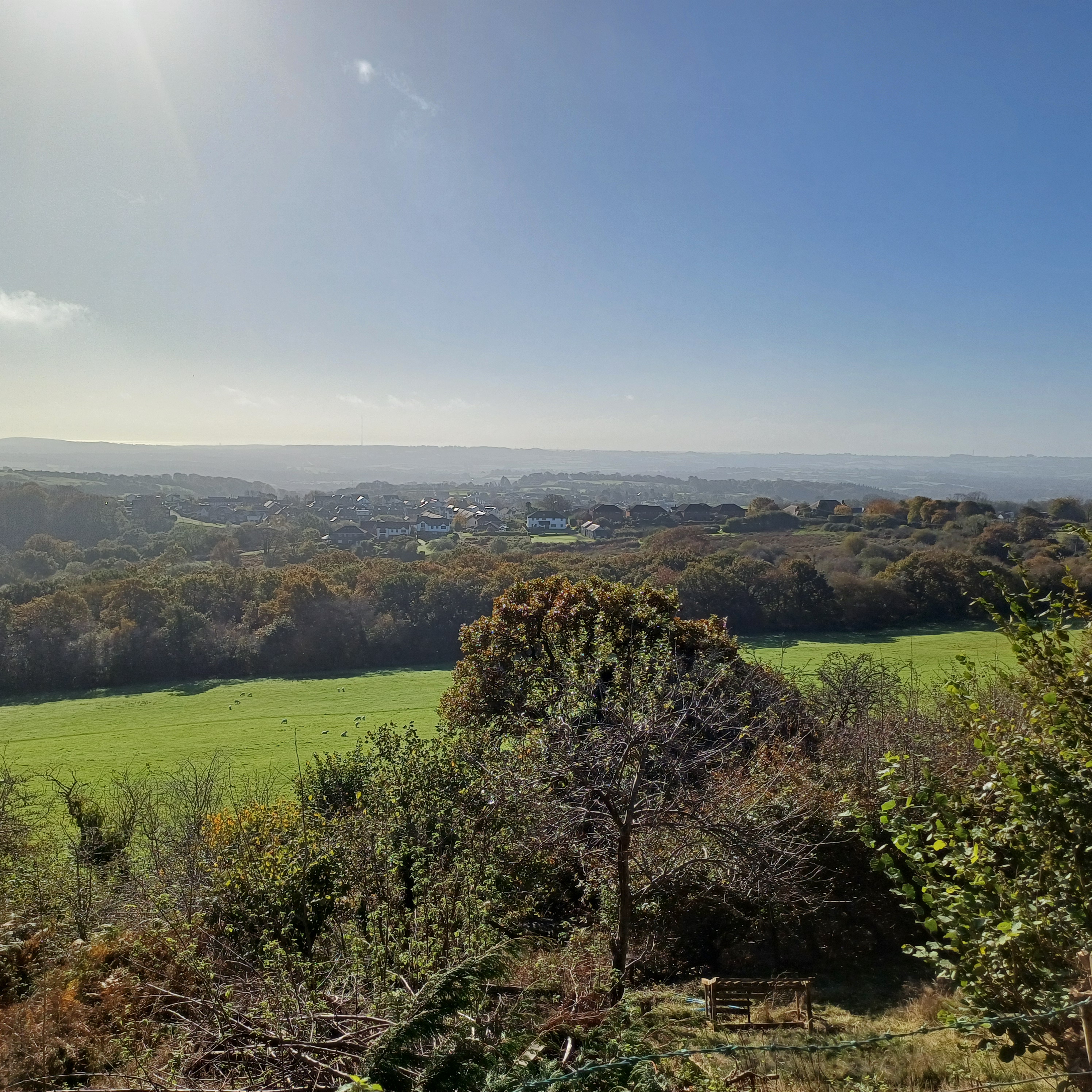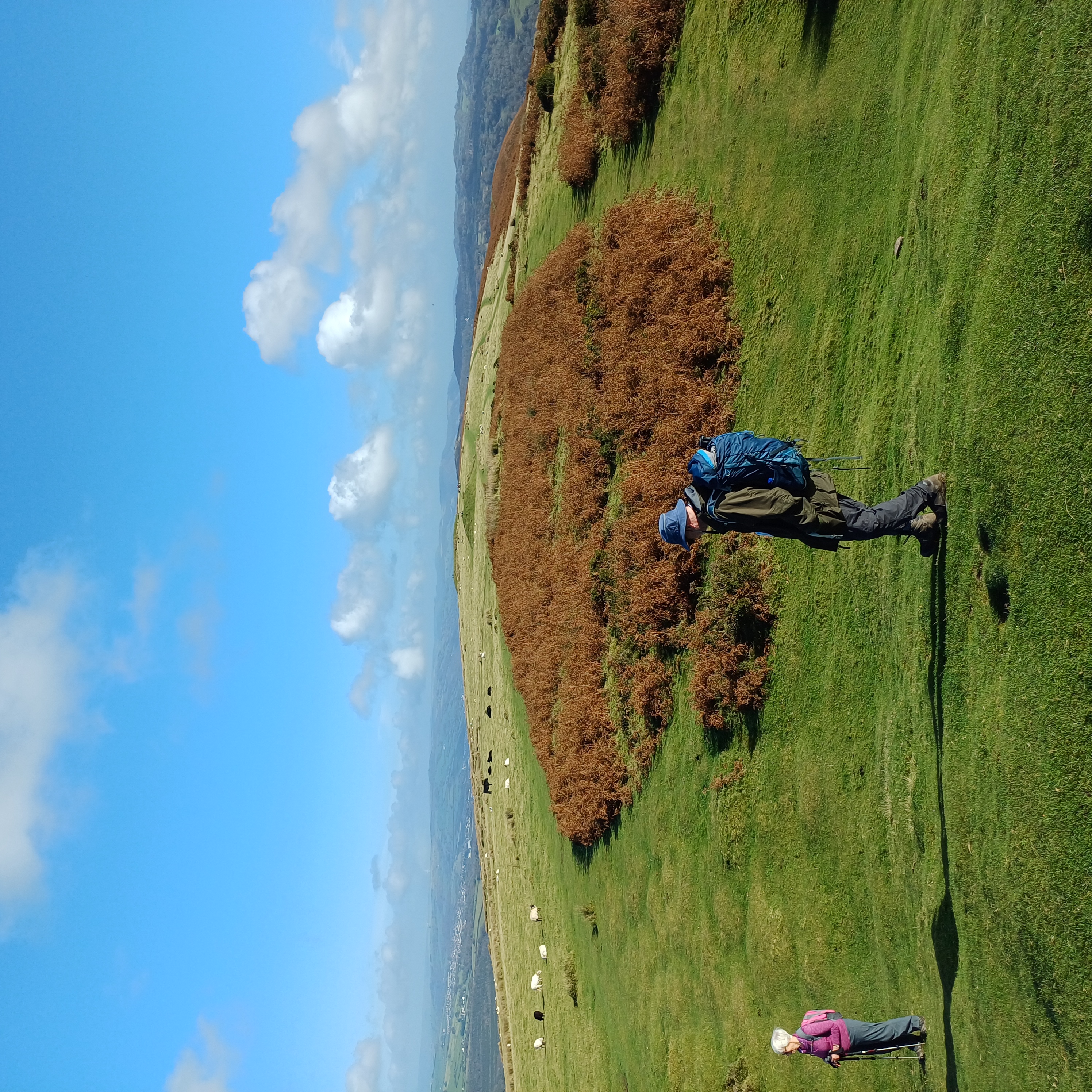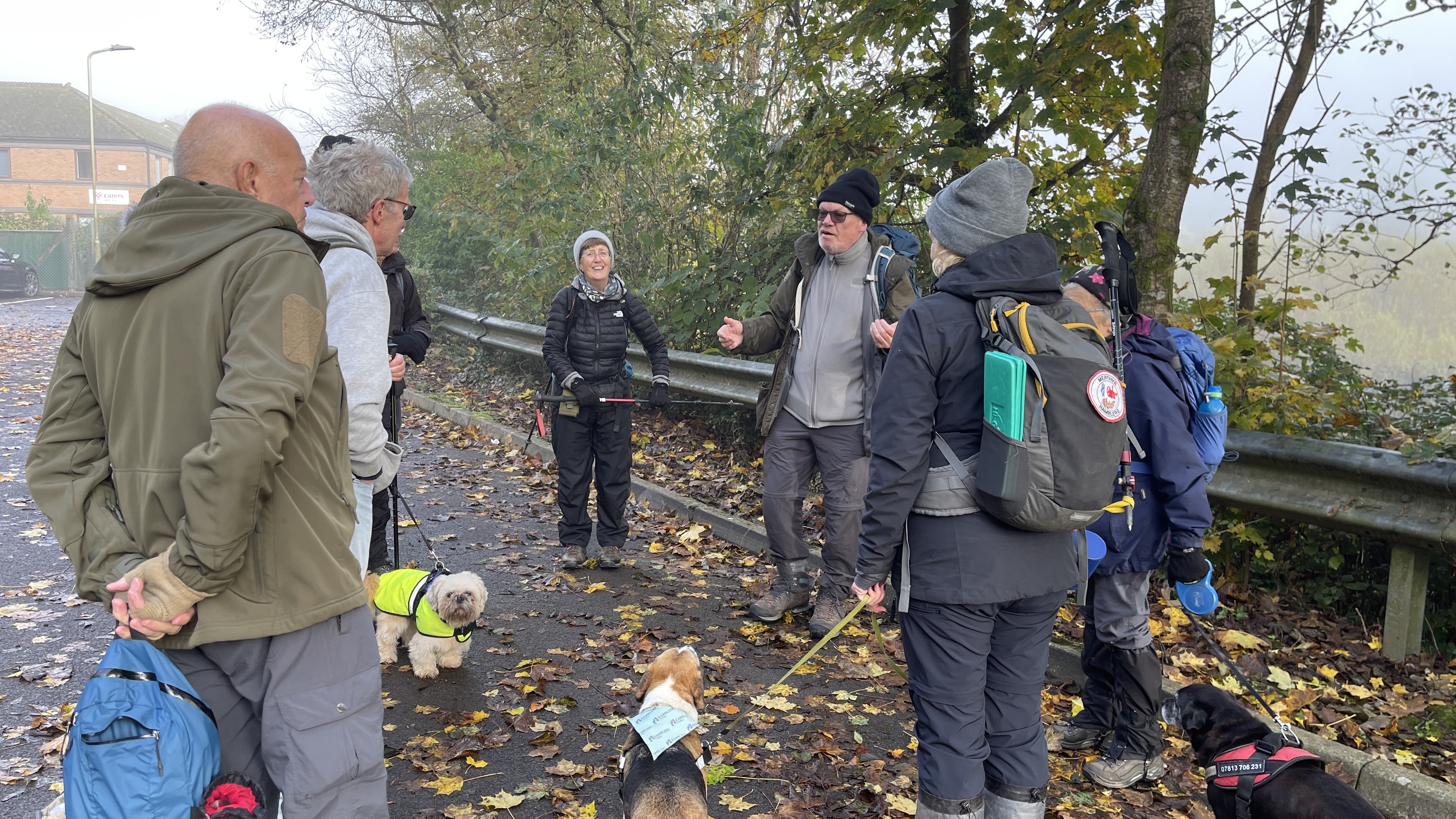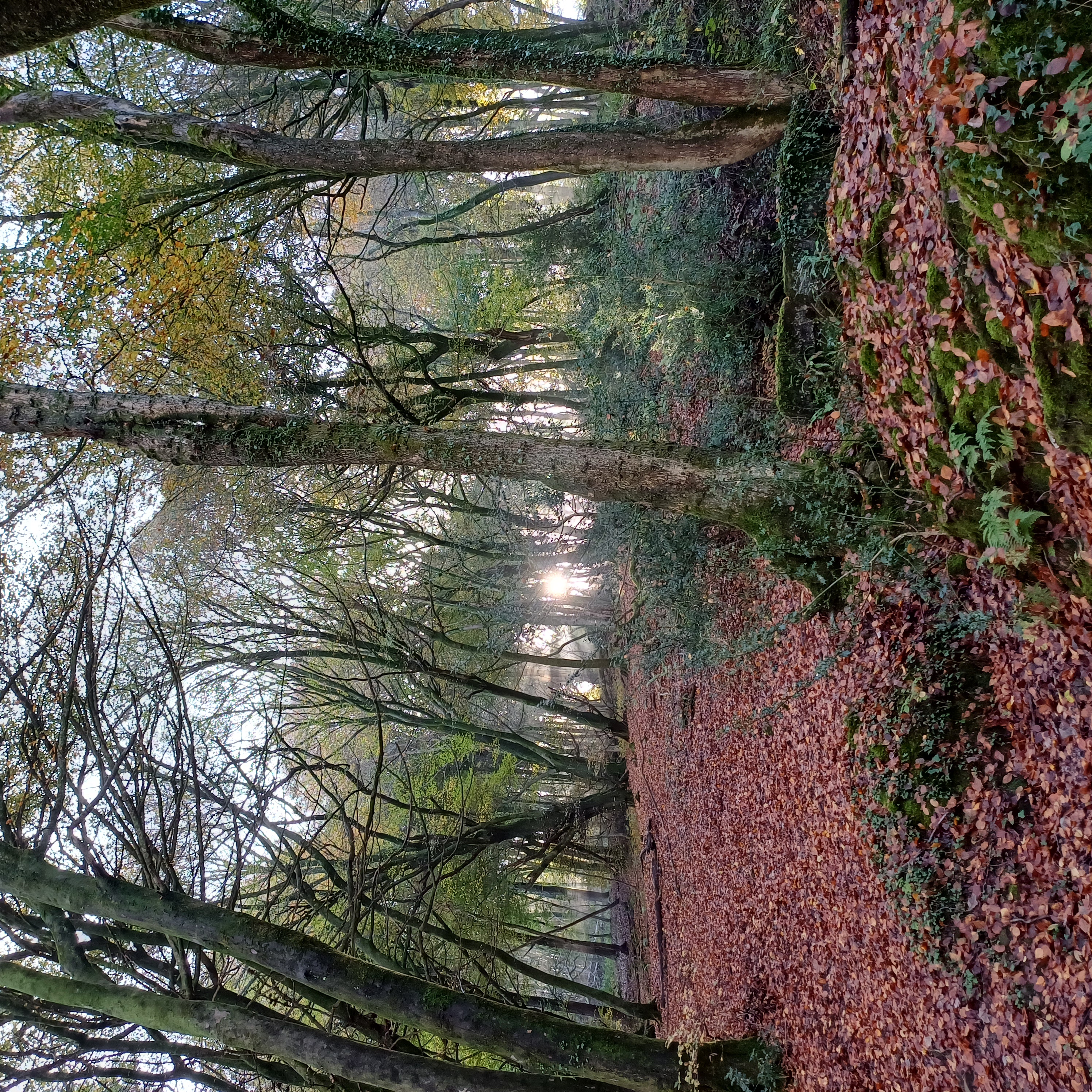 Very misty weather greeted 10 hardy ramblers (including welcome guests Jackie, Sam and new member Michael) at the car park at Heol Yr Ynys car park yesterday. We started by walking along the road to Tynewydd where we used the footpath beside the road. We then crossed the road and made our way through the Coed Y Bedw nature reserve, crossing the Nant Cwmllwydrew and generally heading west. By now, the sun had burnt through the mist and blue skies and bright sunshine were at the fore. At the road, we headed northeast where we caught the Taff Ely Ridgeway walk and had our first cuppa. Suitably refreshed, we continued on, heading for our next target, the trig point on Garth Hill and the obligatory group photo. It was then north to Garth Fawr where we headed east to Lan Farm. Mud and water had always been in evidence but now it reared its ugly head big time! Mud glorious mud and paddy fields were the order of the day as we headed south but feet remained dry (and muddy) and spirits remained high as we splashed our way forward. Civilisation then loomed as we met the road and walked to the park at Taffs Well for lunch, an amazing place that I'd never visited before. Well (lol) lunched, we made our way via path and road past the new metro yard and to the start. A superb walk thanks to John for great leadership and to all for the wonderful company.