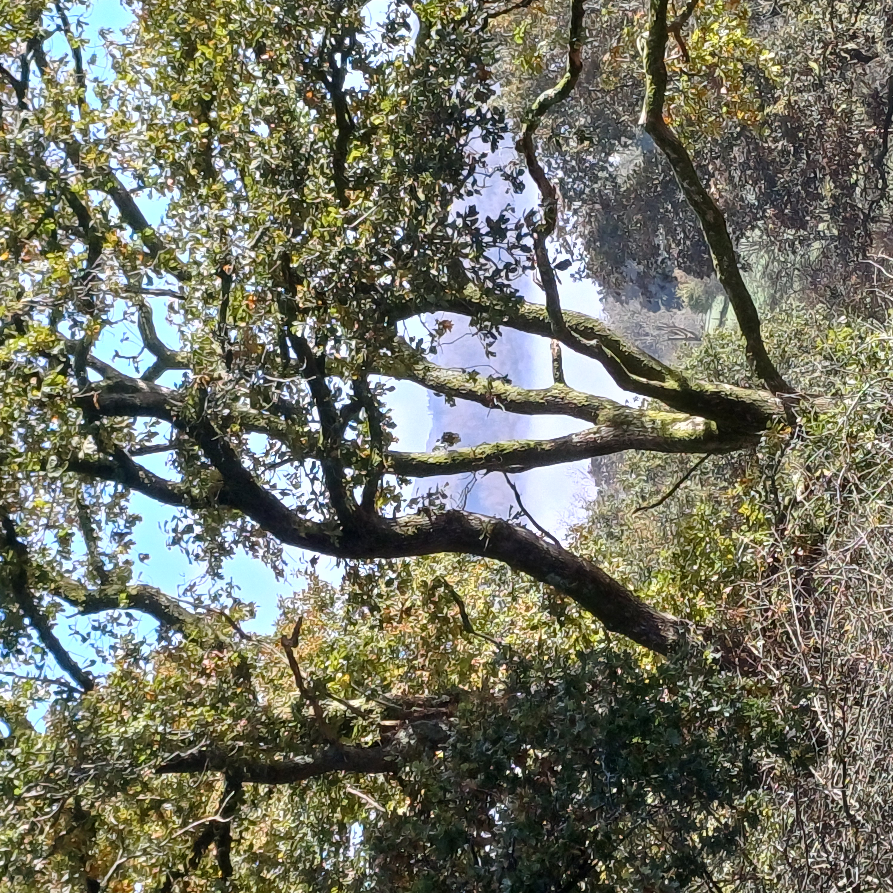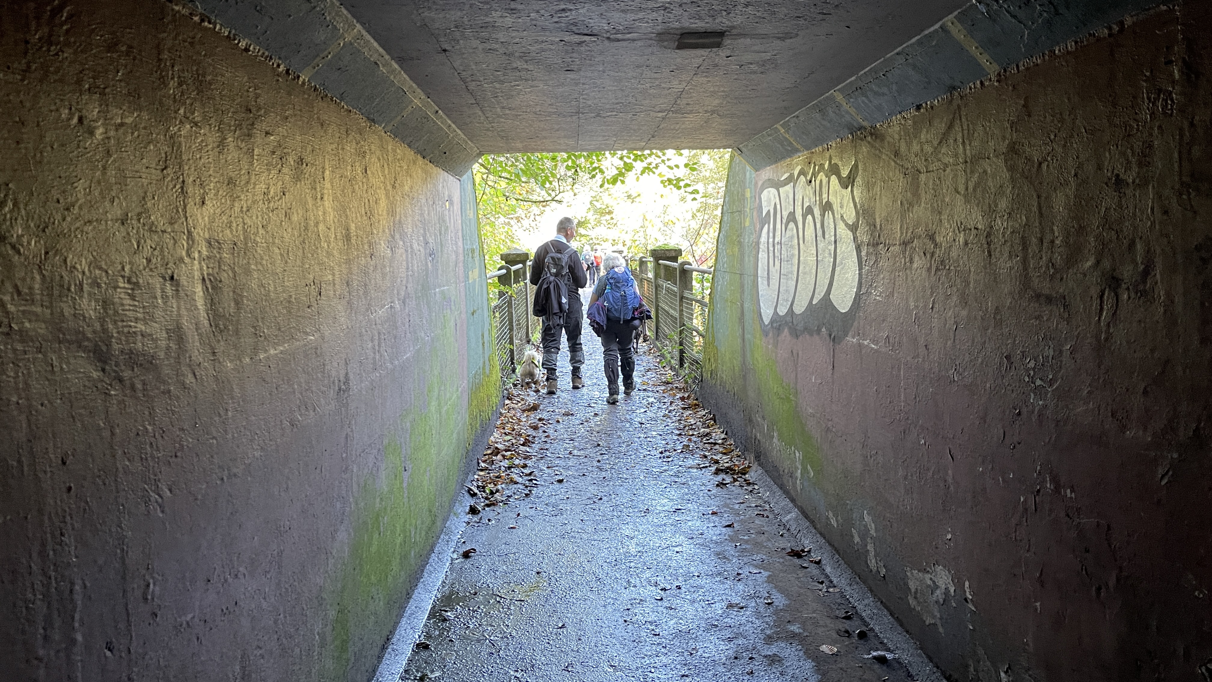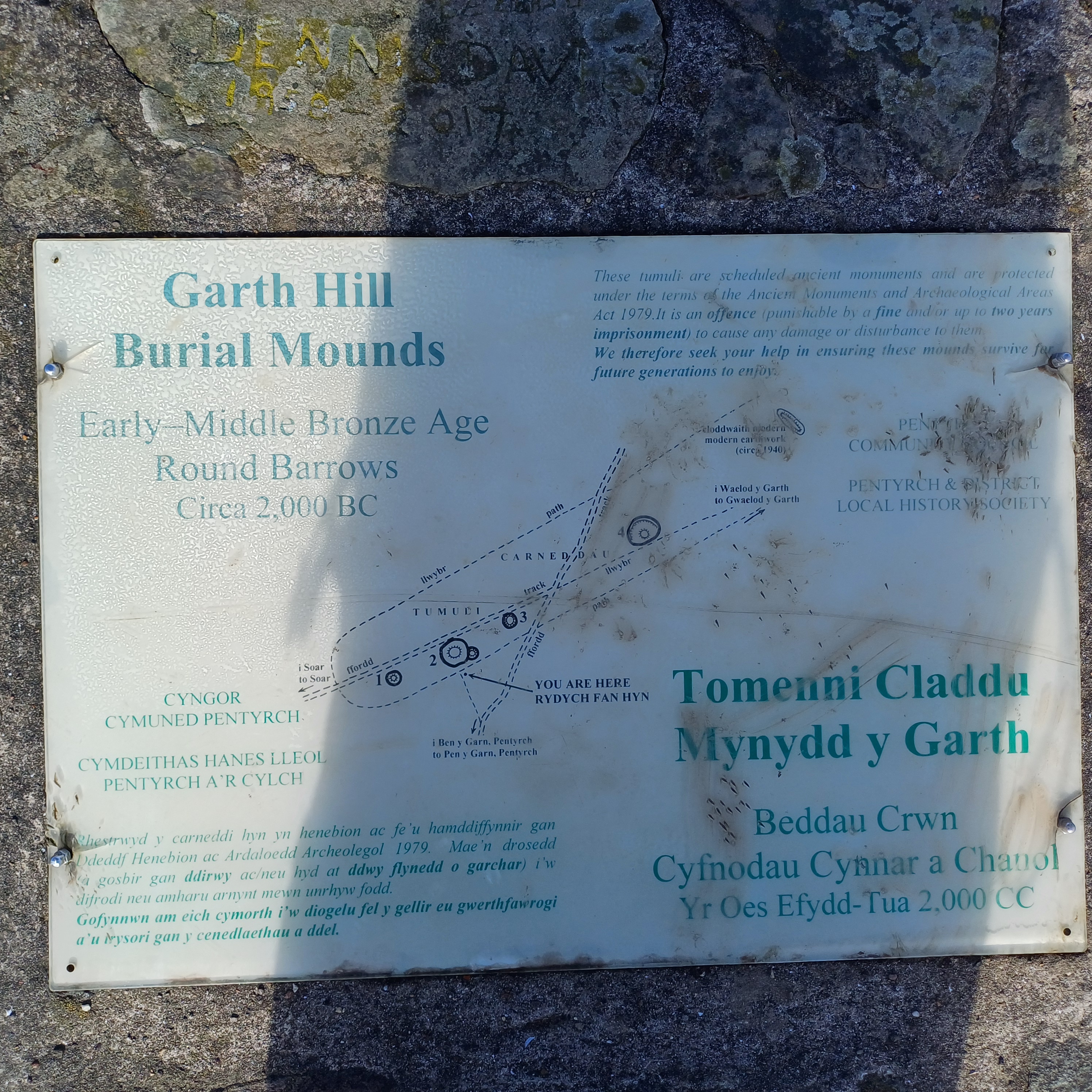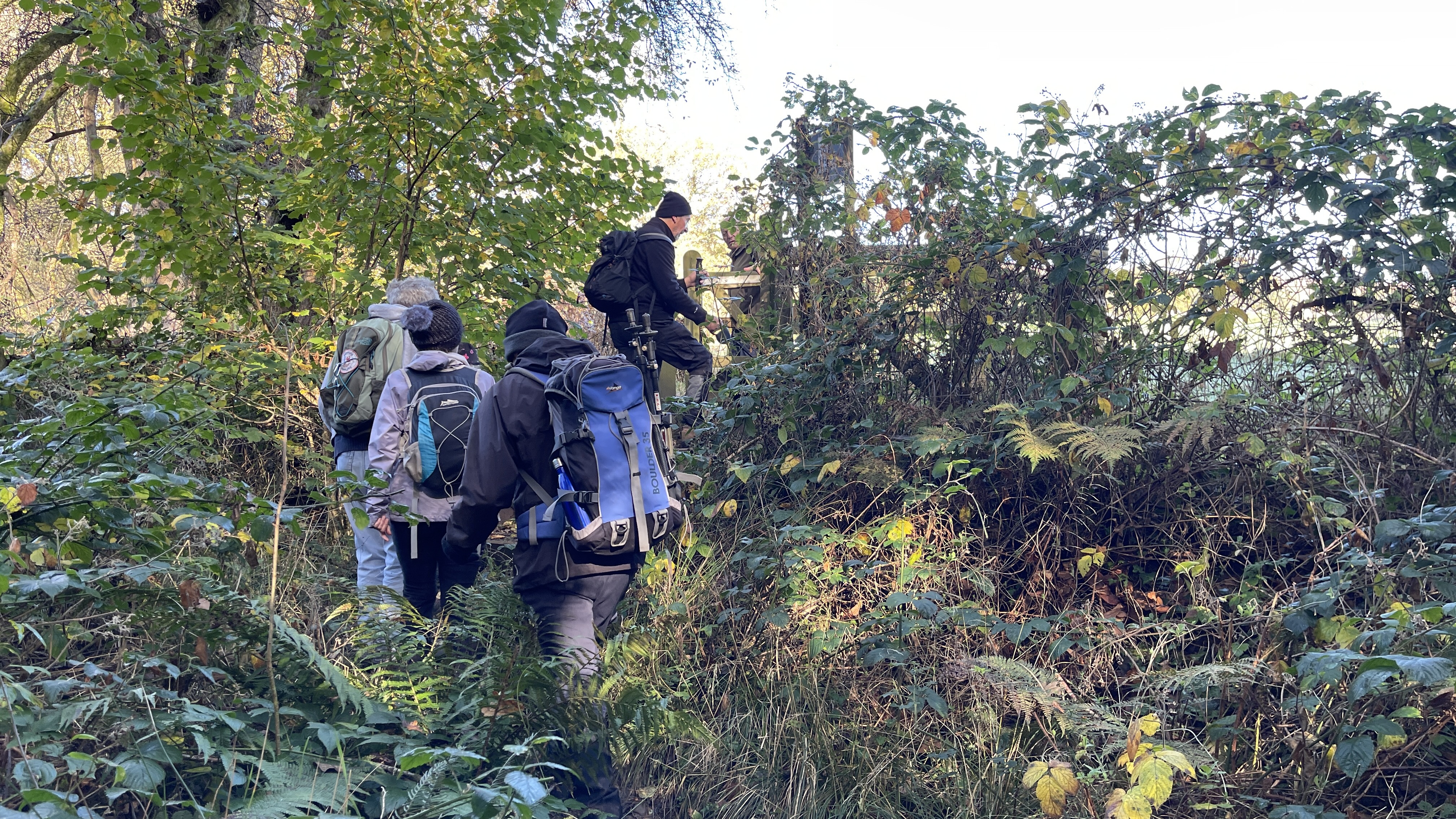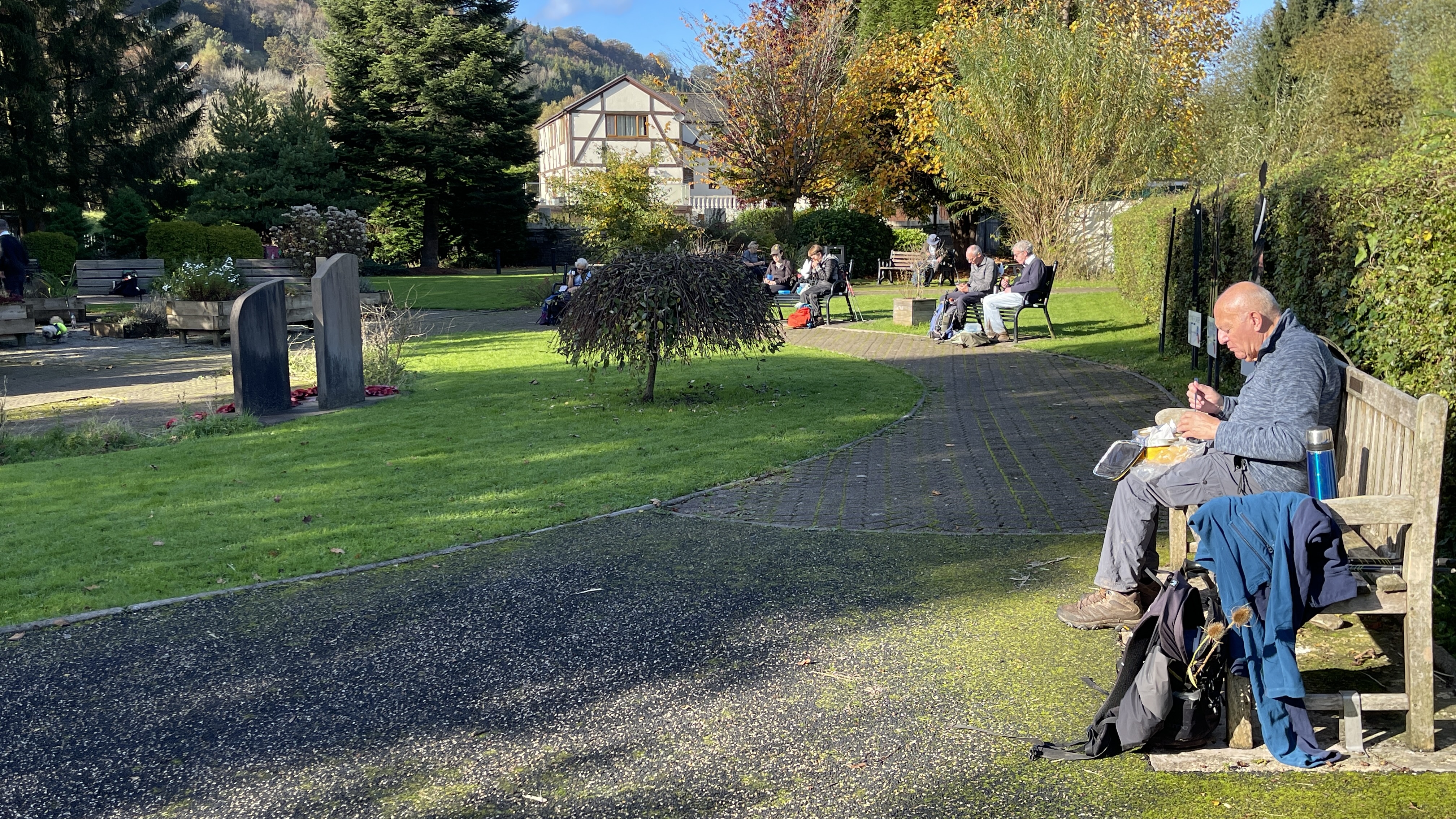 Very misty weather greeted 10 hardy ramblers (including welcome guests Jackie, Sam and new member Michael) at the car park at Heol Yr Ynys car park yesterday. We started by walking along the road to Tynewydd where we used the footpath beside the road. We then crossed the road and made our way through the Coed Y Bedw nature reserve, crossing the Nant Cwmllwydrew and generally heading west. By now, the sun had burnt through the mist and blue skies and bright sunshine were at the fore. At the road, we headed northeast where we caught the Taff Ely Ridgeway walk and had our first cuppa. Suitably refreshed, we continued on, heading for our next target, the trig point on Garth Hill and the obligatory group photo. It was then north to Garth Fawr where we headed east to Lan Farm. Mud and water had always been in evidence but now it reared its ugly head big time! Mud glorious mud and paddy fields were the order of the day as we headed south but feet remained dry (and muddy) and spirits remained high as we splashed our way forward. Civilisation then loomed as we met the road and walked to the park at Taffs Well for lunch, an amazing place that I'd never visited before. Well (lol) lunched, we made our way via path and road past the new metro yard and to the start. A superb walk thanks to John for great leadership and to all for the wonderful company.