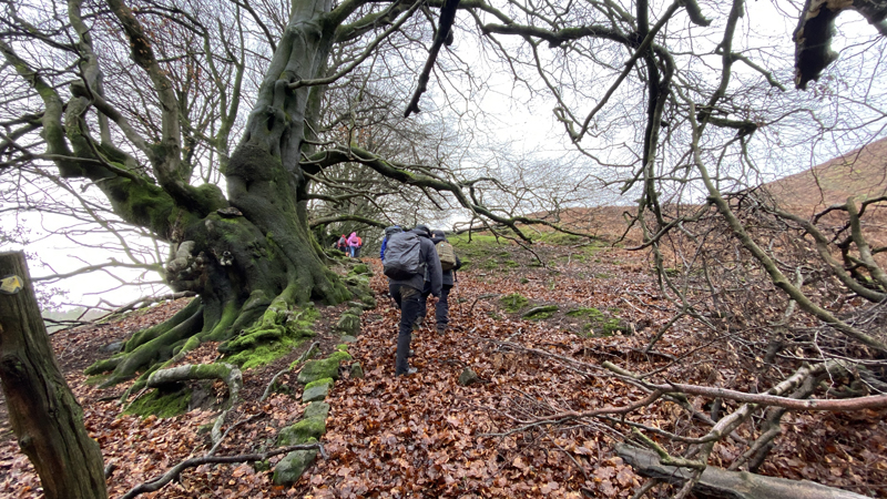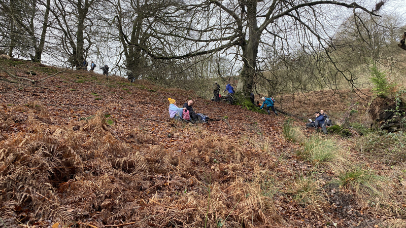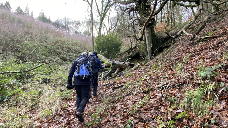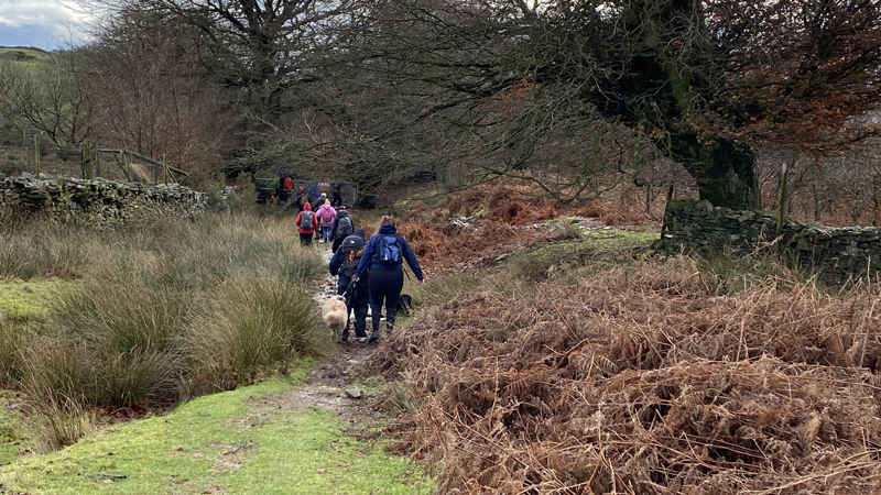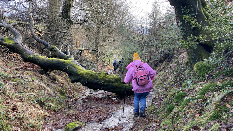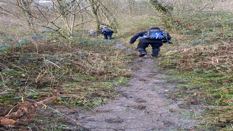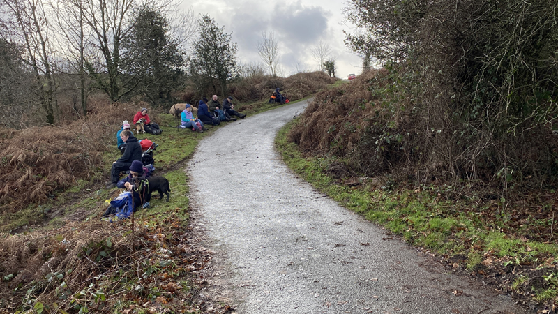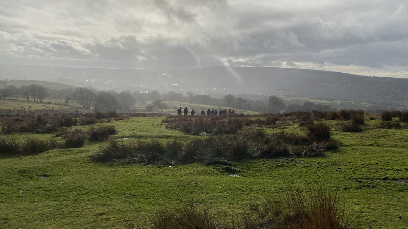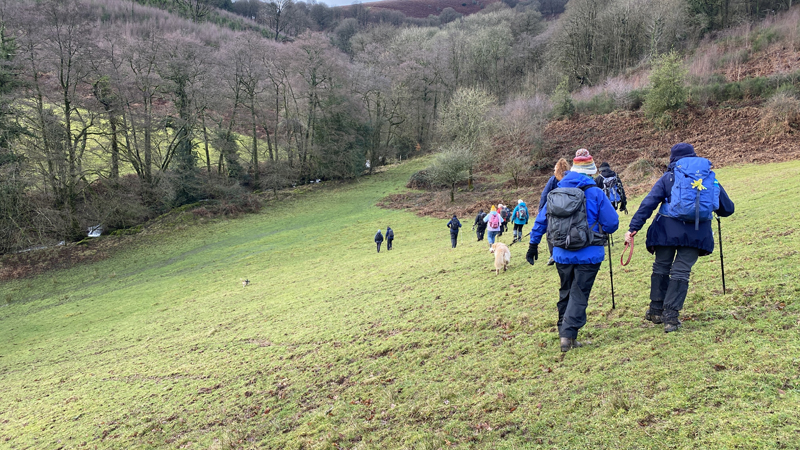 Goitre Wharf welcomed 18 hardy Merthyr Valley Ramblers (including welcome guests Gillian, Hillary and Michael) on today’s 9.5 mile walk. In cold but mainly dry weather, we made our way past Pentre farm to the base of Pentre hill then headed South to the Holy Well and a welcome cuppa a little further on. Then, we headed South West between Mynydd Garn-wen and Drain eos along muddy and waterlogged paths to Tir-croes Bleddyn where we had lunch. We silver surfers then paddled down the running river Roman road (see video and pictures) East to the welcome turnoff and headed North past Lambrook to turn Eastward and cross-country to the canal. It was then flat all the way back to the start. Ten stiles and uncounted streams forded made this a challenging but ultimately satisfying walk, well led by John and the great company, who’s spirits never wavered - well done all!
