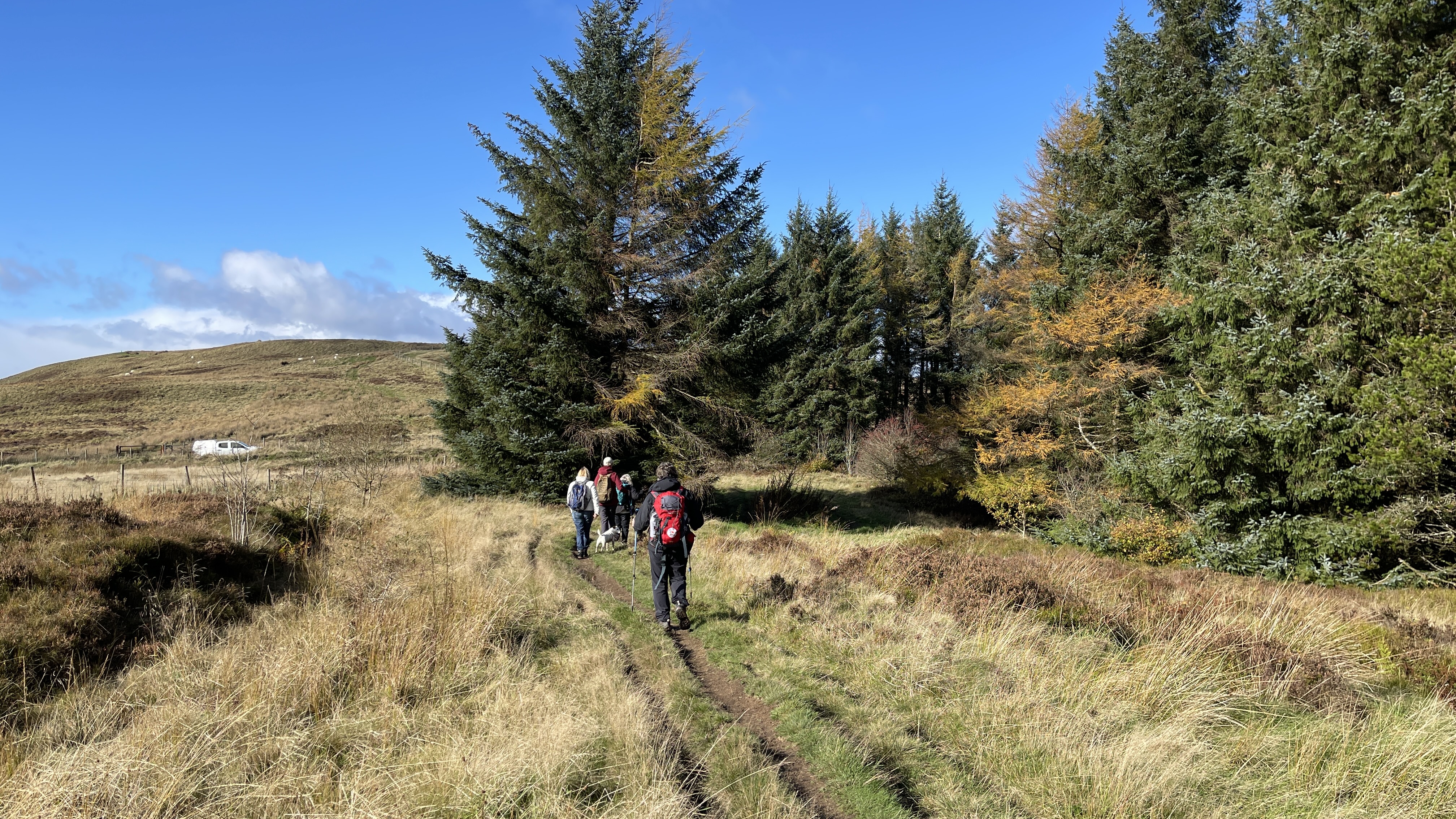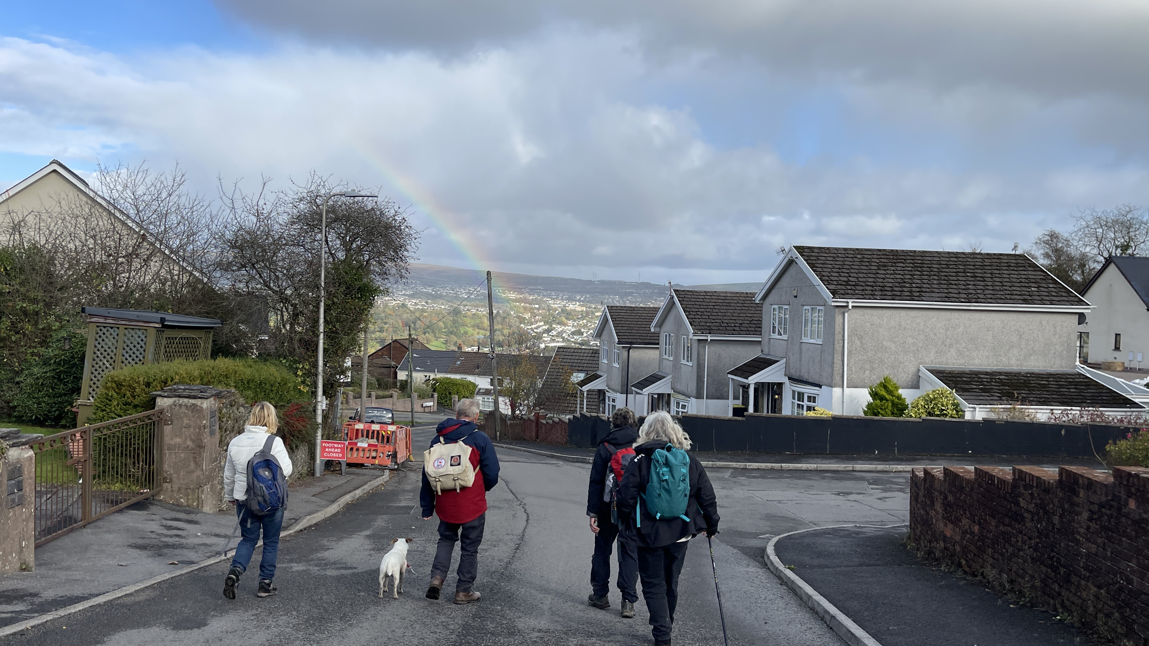 Bright sunshine greeted seven intrepid ramblers (including welcome guest Zoe) on our 5+ mile walk today. We started by walking the road to Winchfawr where we turned up the narrow path to the top of Heolgerrig where we encountered the only rain of the day. We then dropped down to Gernant lane wher we made our way to Heolgerrig quarry and a refreshing cuppa. We then walked back down the lane and took the new path by the barrier up to the top of the ridge where we admired the views of Aberdare. We then headed back to the top of Heolgerrig and made our way to the Red Lion for drinks and our AGM. A big thanks to Maureen for a great walk and to all for the superb company.