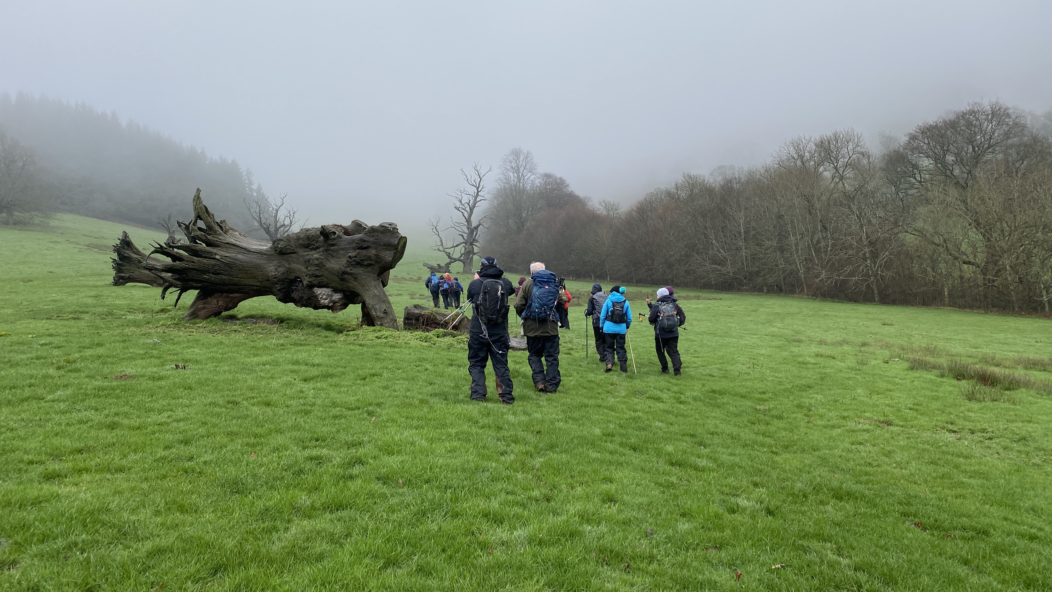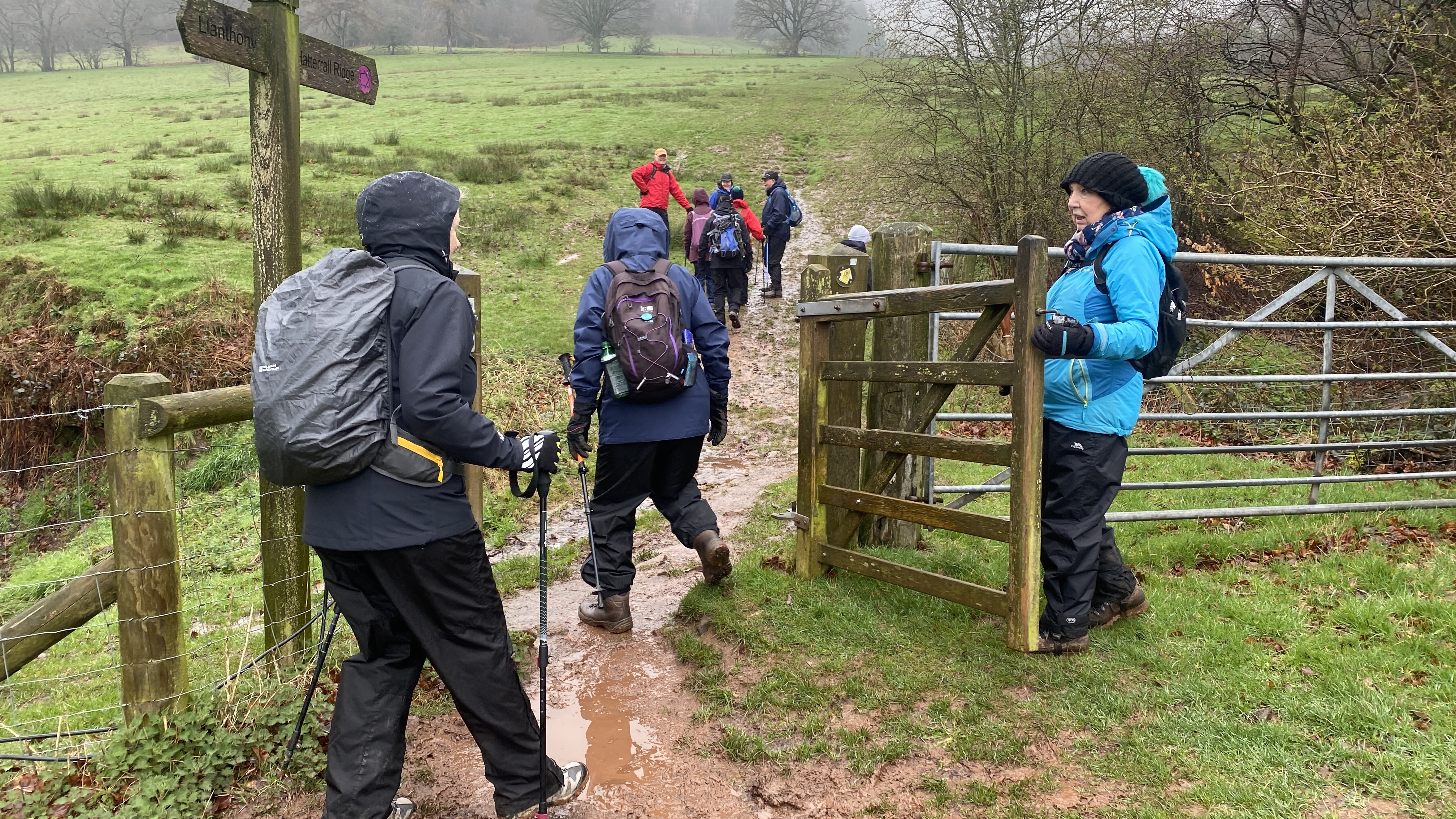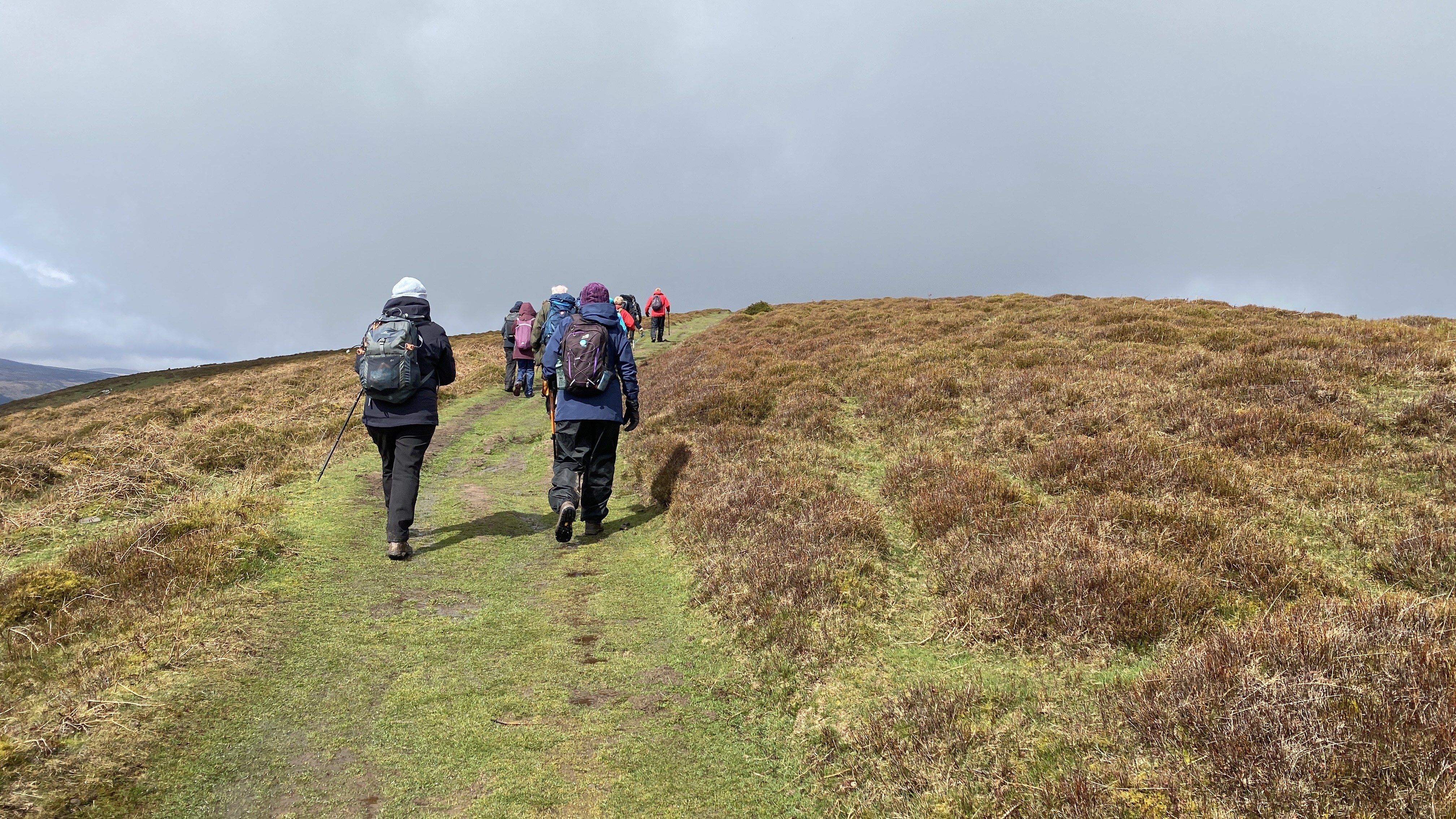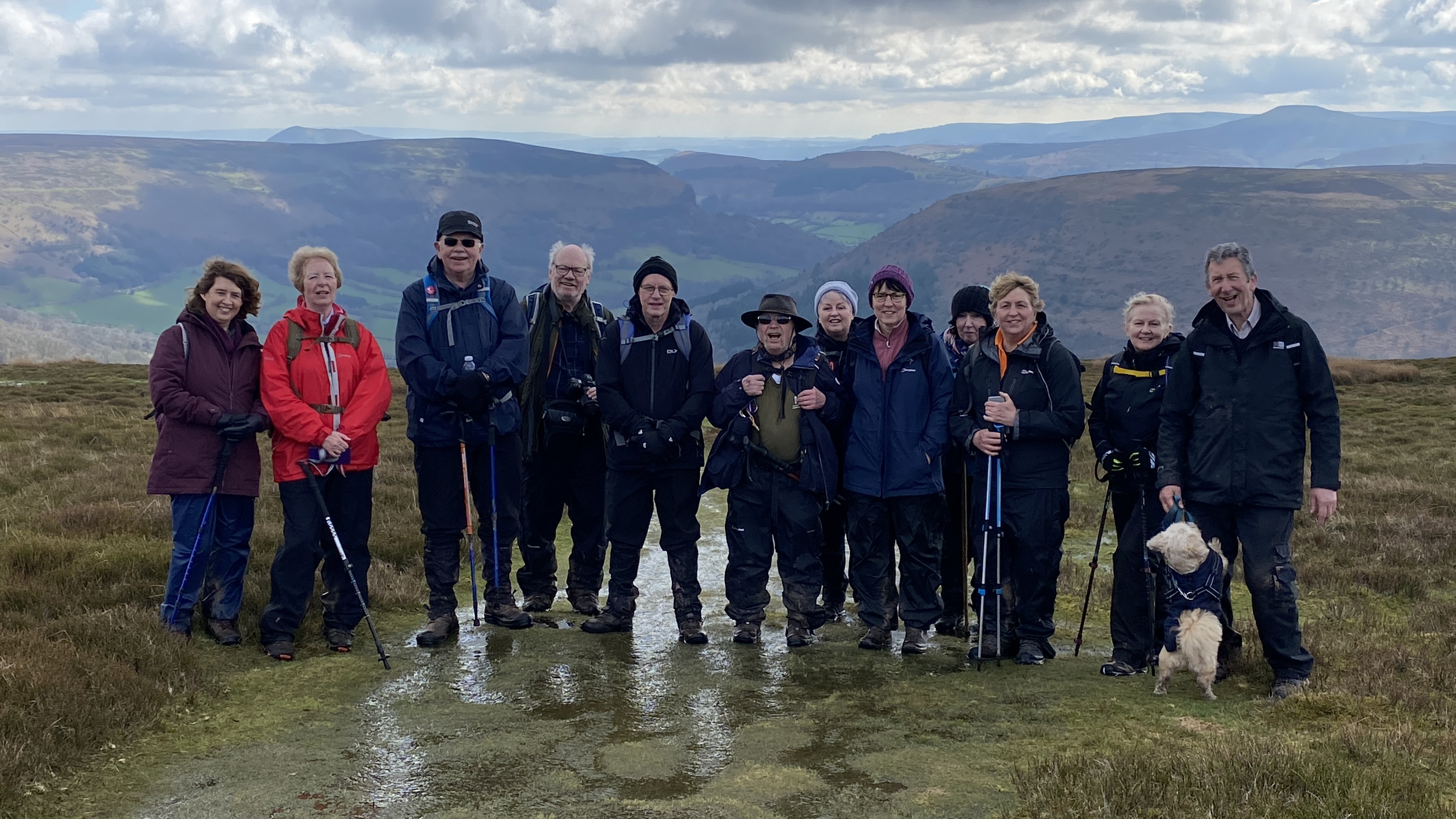 It was misty and damp at the start of today’s 7 mile walk from Llanthony Priory. Wisely, the walk leaders decided to abandon visiting St Martin’s church as the conditions underfoot were very poor. From the start, the 14 ramblers (including welcome visitor June)headed North to Cwm Siarpal where we turned SouthEast along the beacons way and our first cuppa. We then lunched at the grouse butts by the quarry where after refreshments, we headed North. As we continued climbing along the Offa’s dyke path the sun finally came out, accompanied by a biting wind but at least the views were worth it! At the pile of stones past the cairn, we then headed South past the Loxidge Tump where we had a last cuppa before the steep drop back to the Priory. A big thanks to Rob and Morfedd for a superb walk in challenging conditions and to all who made this walk so good.