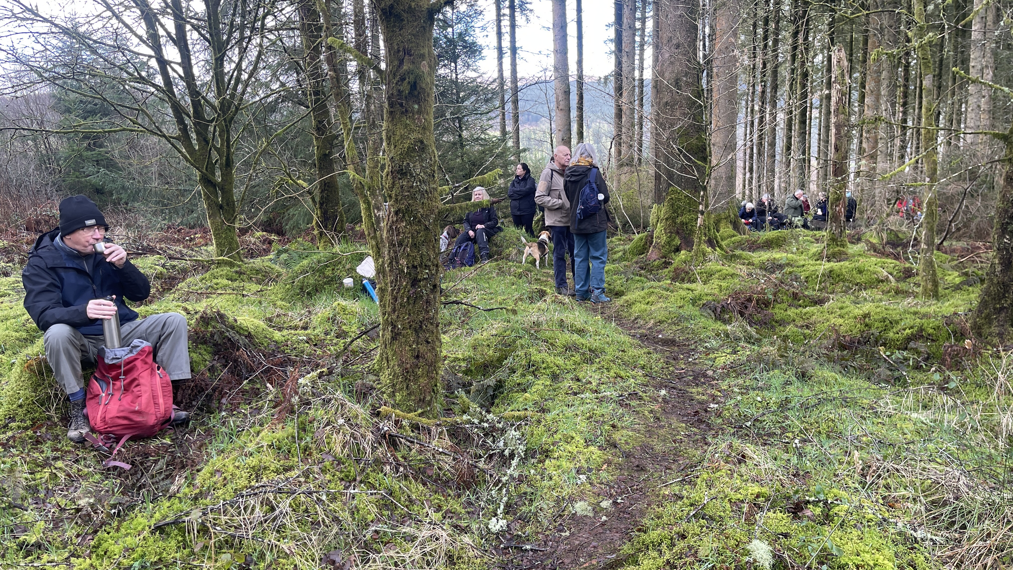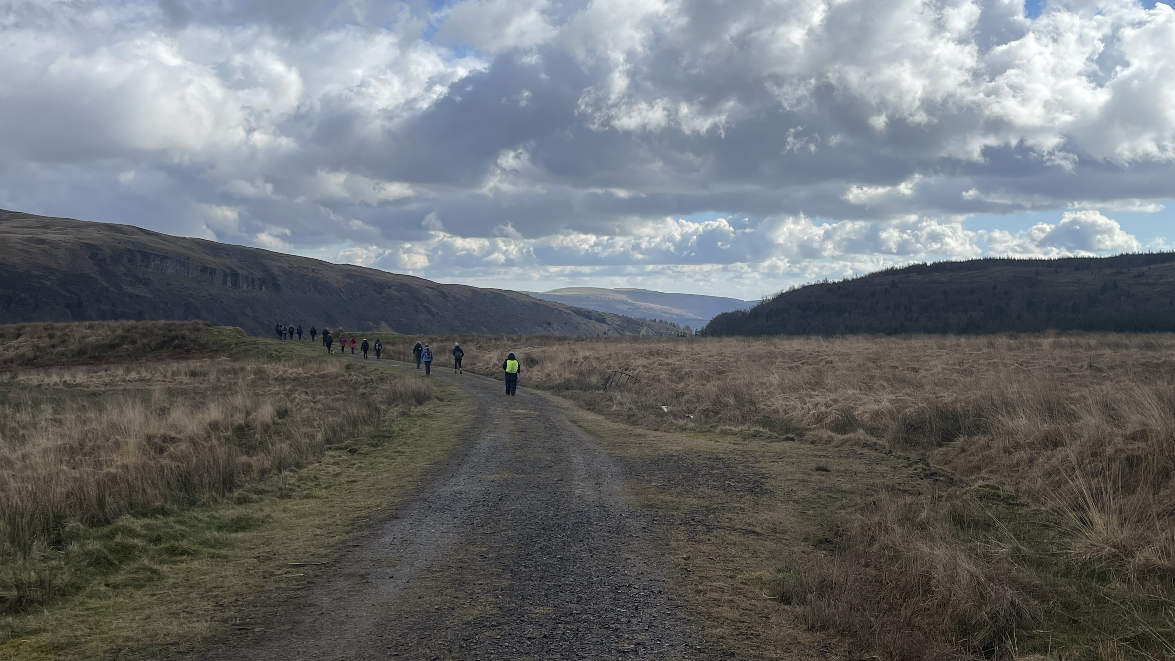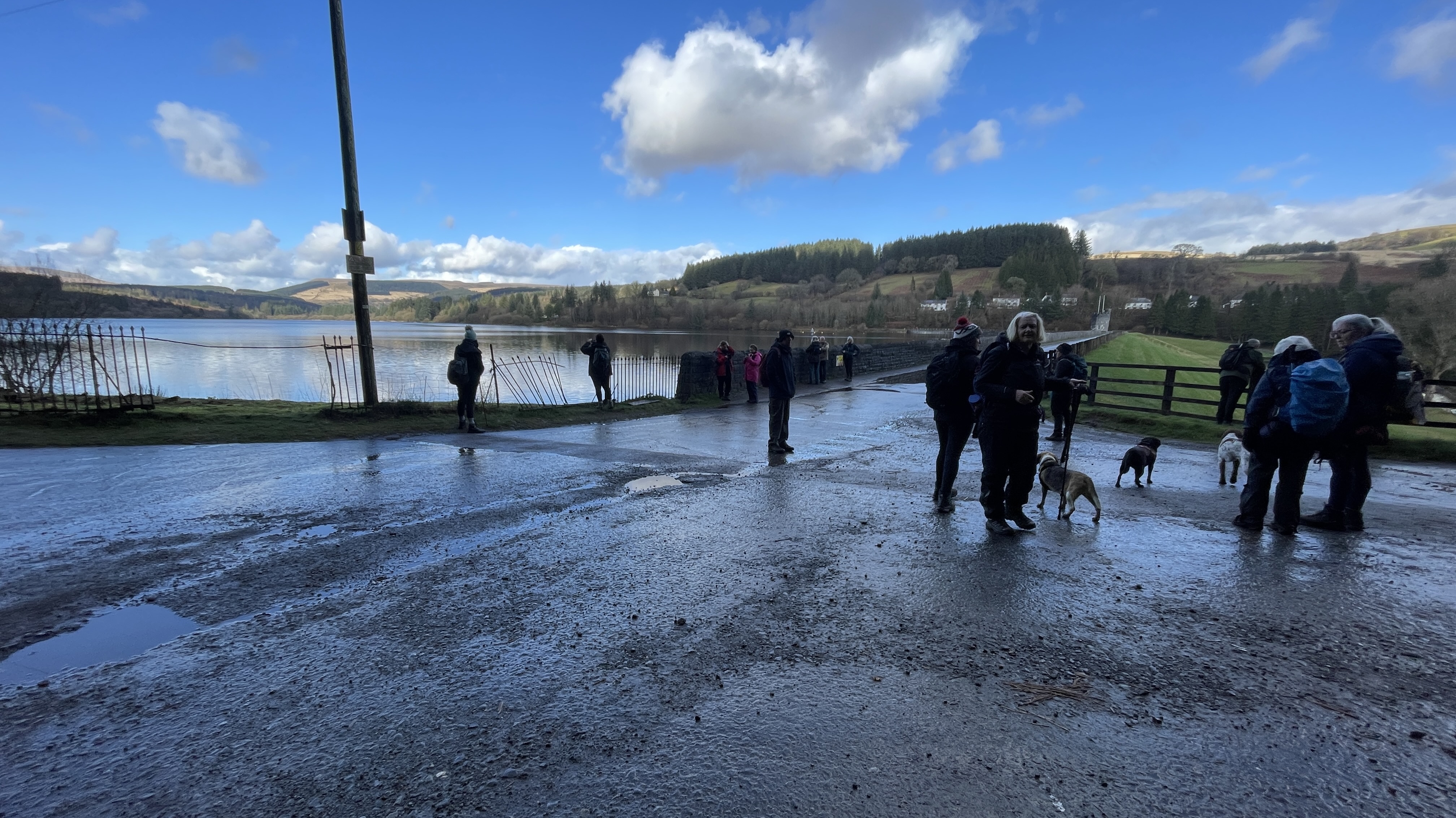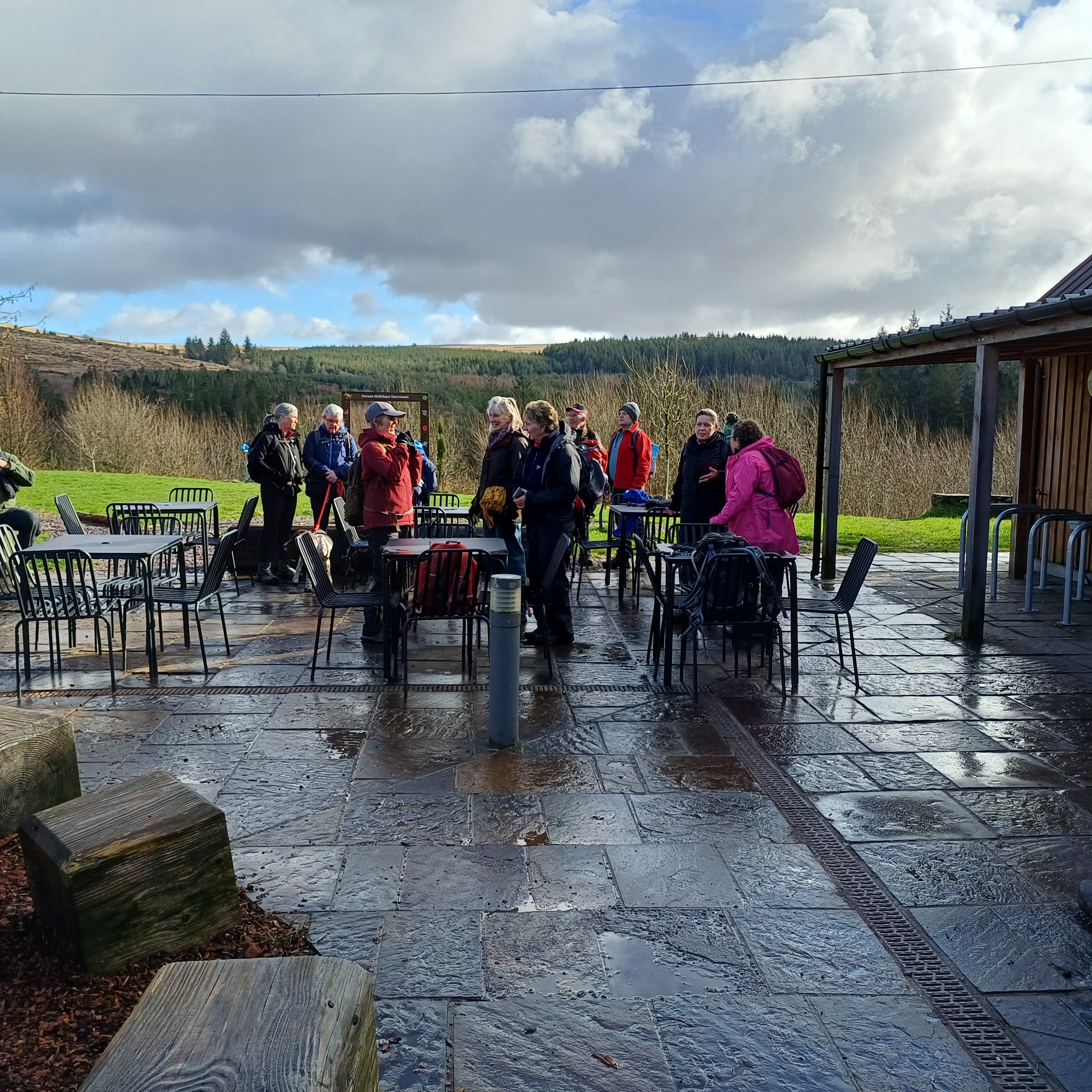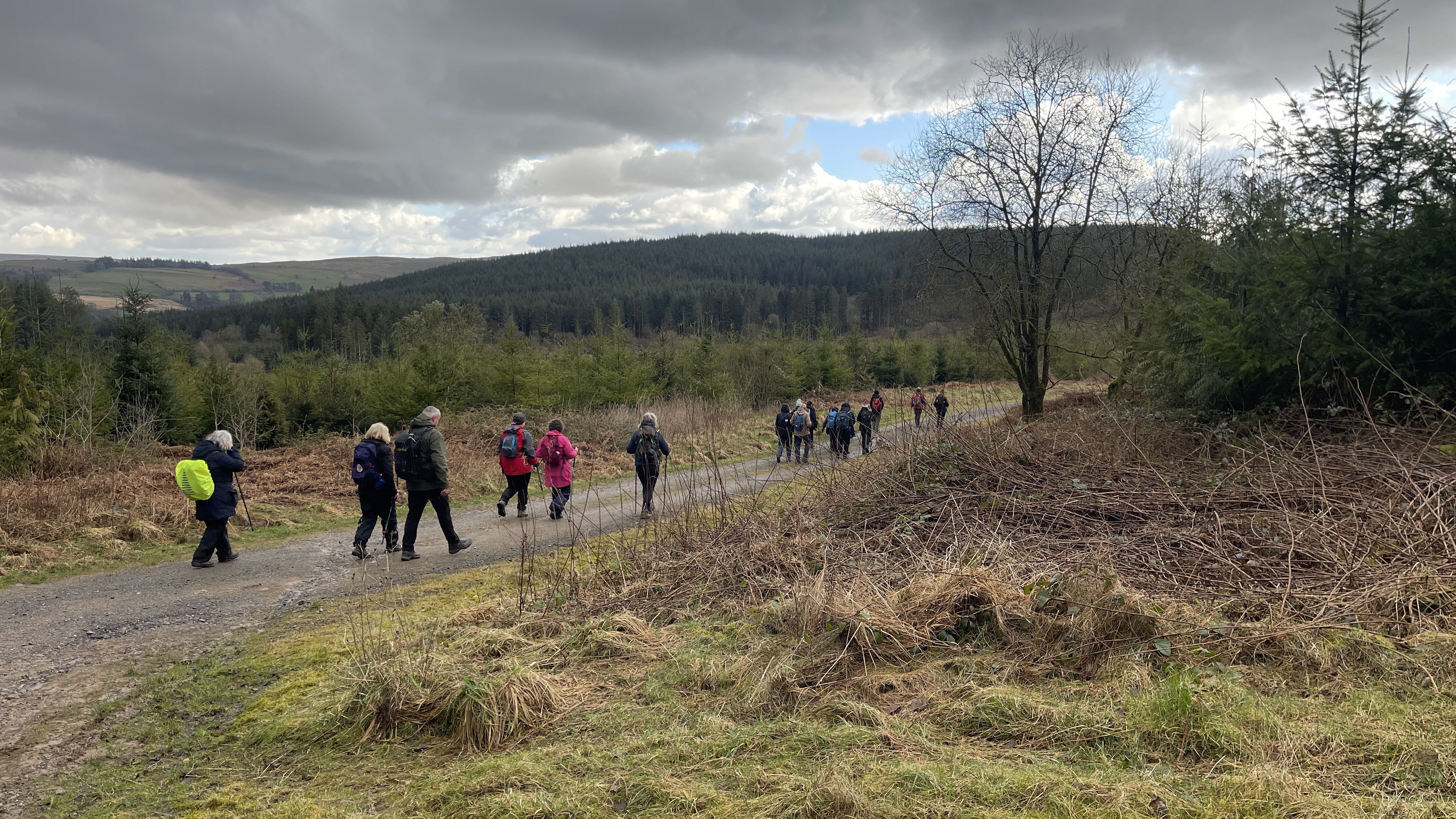 A lovely 7 mile three seasons walk today for 20 Merthyr Valley Ramblers (including welcome visitors Kathy and Helen). Rain on the way had turned to sunshine but we weren’t fooled and stuck to wet-weather gear as we walked the path alongside to A470 to the Garwnant visitor centre. It was then inland for a while then we headed South and had our first cuppa in the woods. We then followed the path westerly to Sycamore grove and lunch, following which we headed east through a slight hailstorm to Nant Sychbant. It was downhill and sunshine all the way from then on, dropping down to the dam and alongside the res back to the start. A big thanks to Hilda for a cracking fresh walk and to all for the great company.