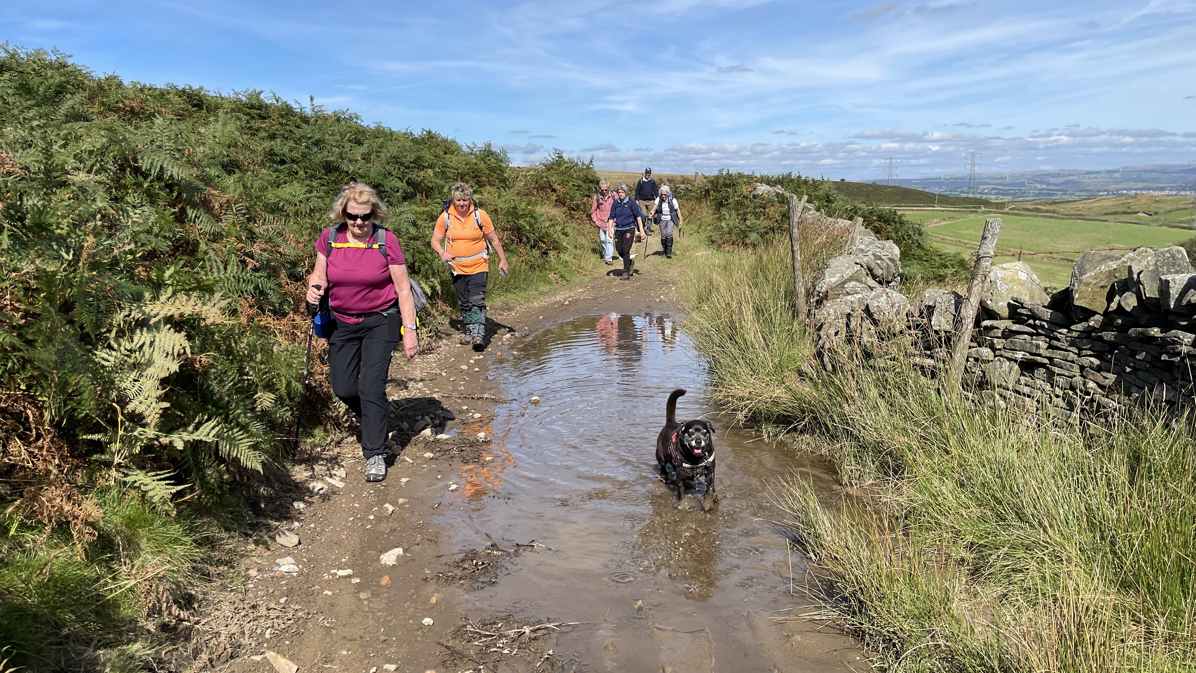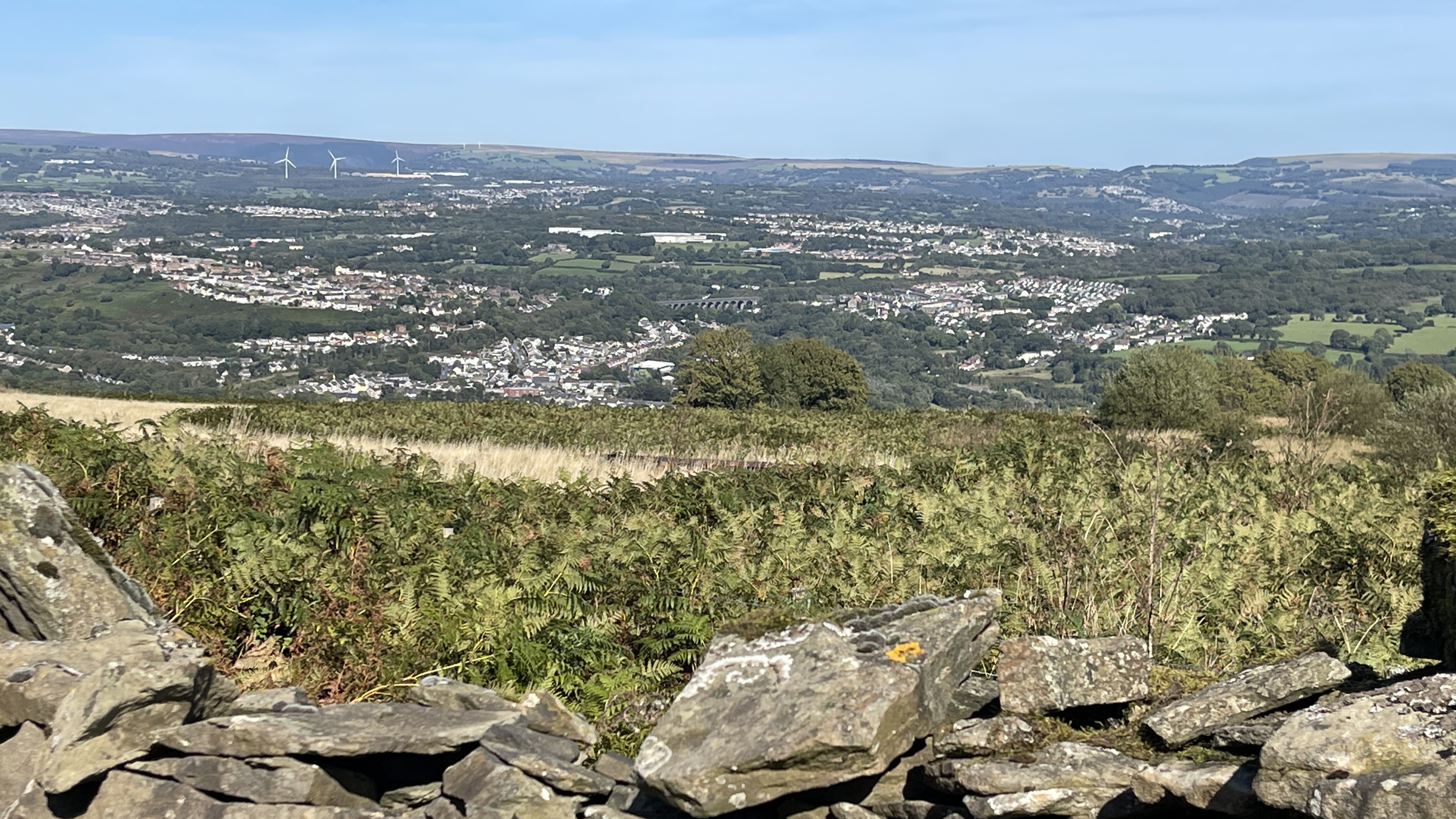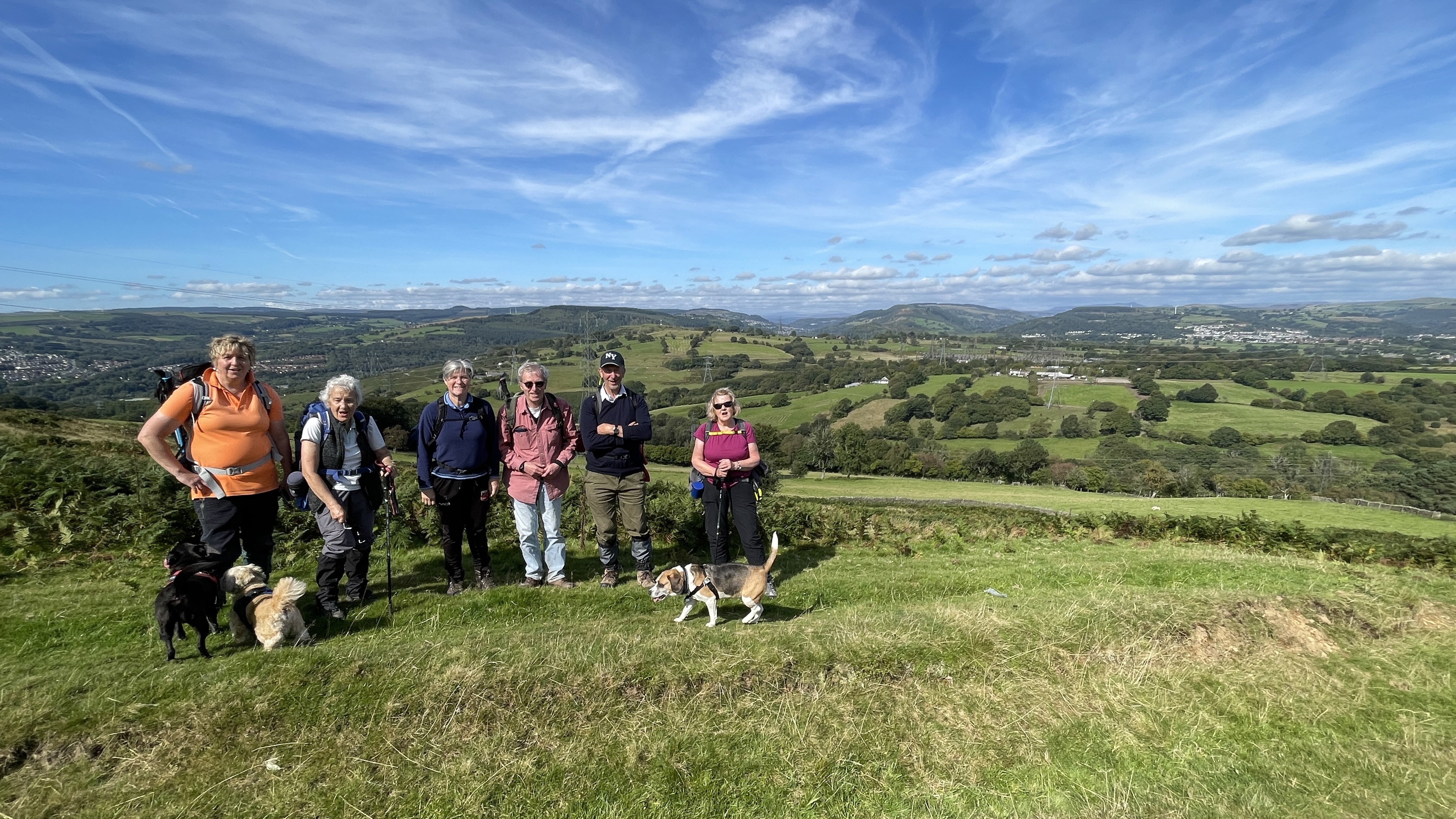 Seven extremely lucky ramblers met in bright sunshine at Nelson Wern park at the start of our 10 mile walk today. We started by walking through the Nelson suburbs where we caught the Rhymney valley ridgeway walk heading south to Llanfabon. At St Mabon's churchyard, we paid our respects to the Albion colliery memorial erected for the eleven miners killed in 1894 then headed for Eglwysilan common, admiring the wheeling red kites on the way. We stopped for a cuppa on the climb to the top of Mynydd Eglwysilan where we enjoyed the start of the panoramic views. At the top it just got better as the Severn estuary came into view as well as the Merthyr and Cynon valleys. We then dropped into Senghenydd, paid our respects at the small memorial before having lunch at the beautifully maintained main Miners memorial. Refreshed, we then began the long climb up the steps and road to Maes-diofal where we headed North to Wern-isaf, crossed the road and took the path to Parc Penalta. We then followed the railway to the crossing then made our way back to the carpark. A wonderful walk in superb weather, made perfect by the great company.