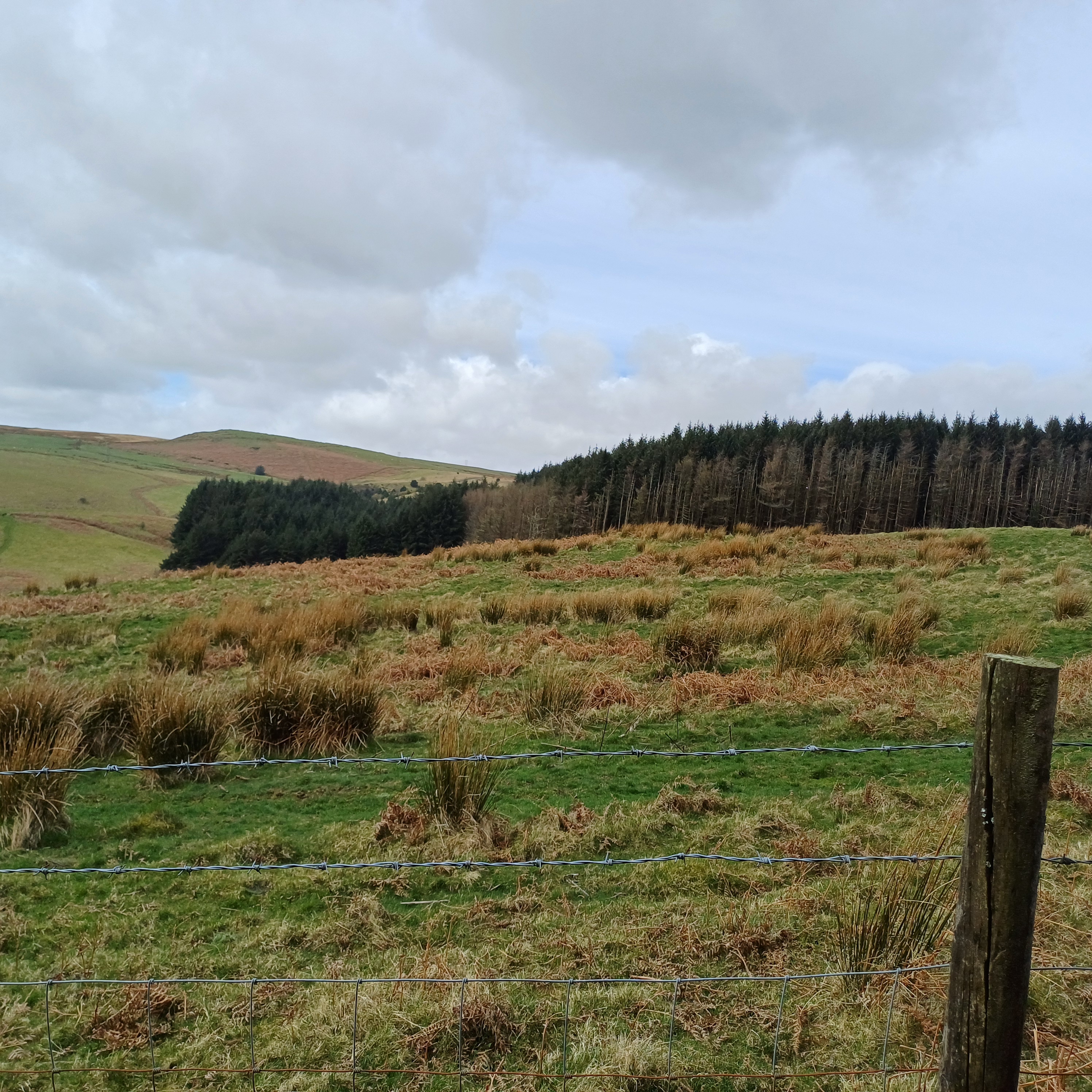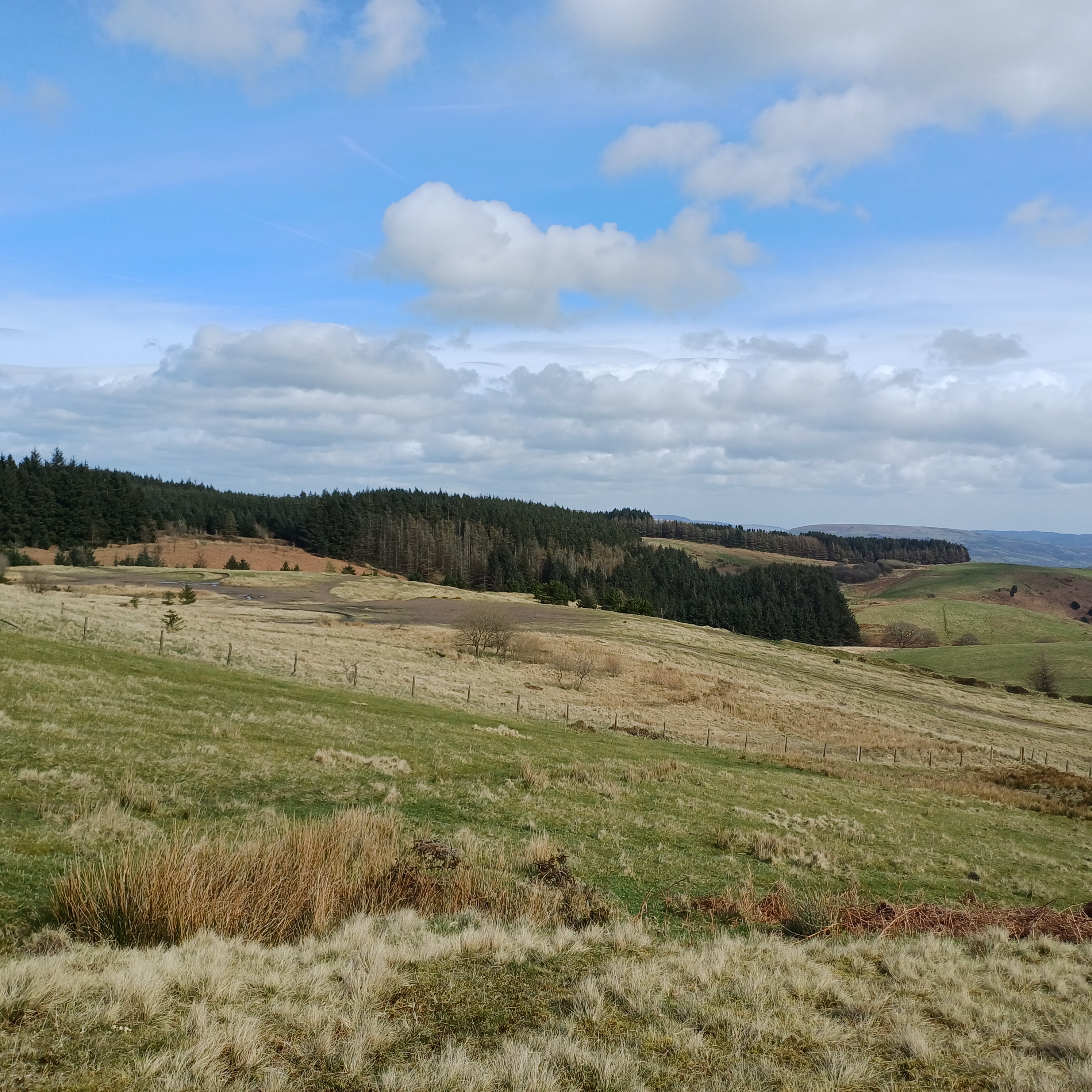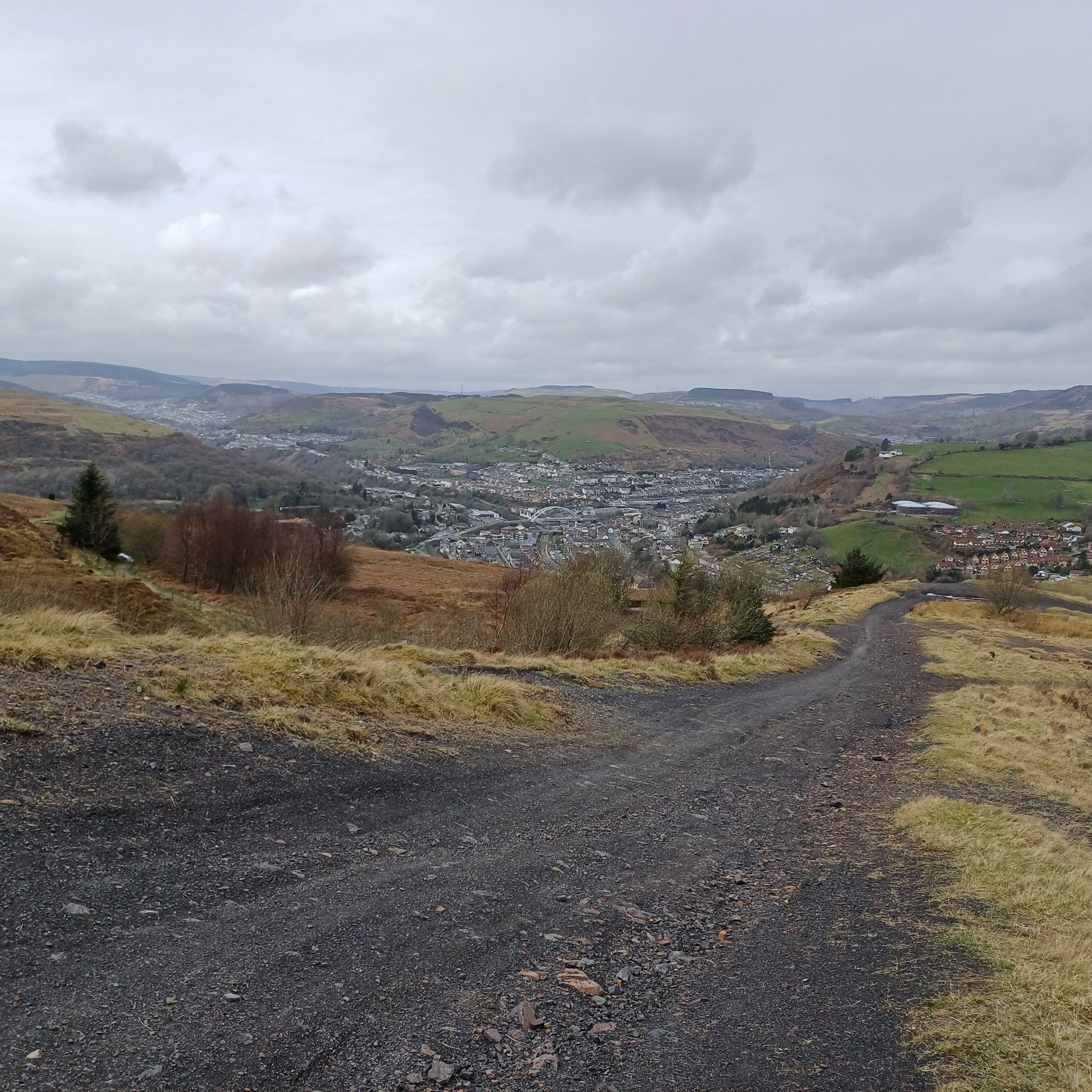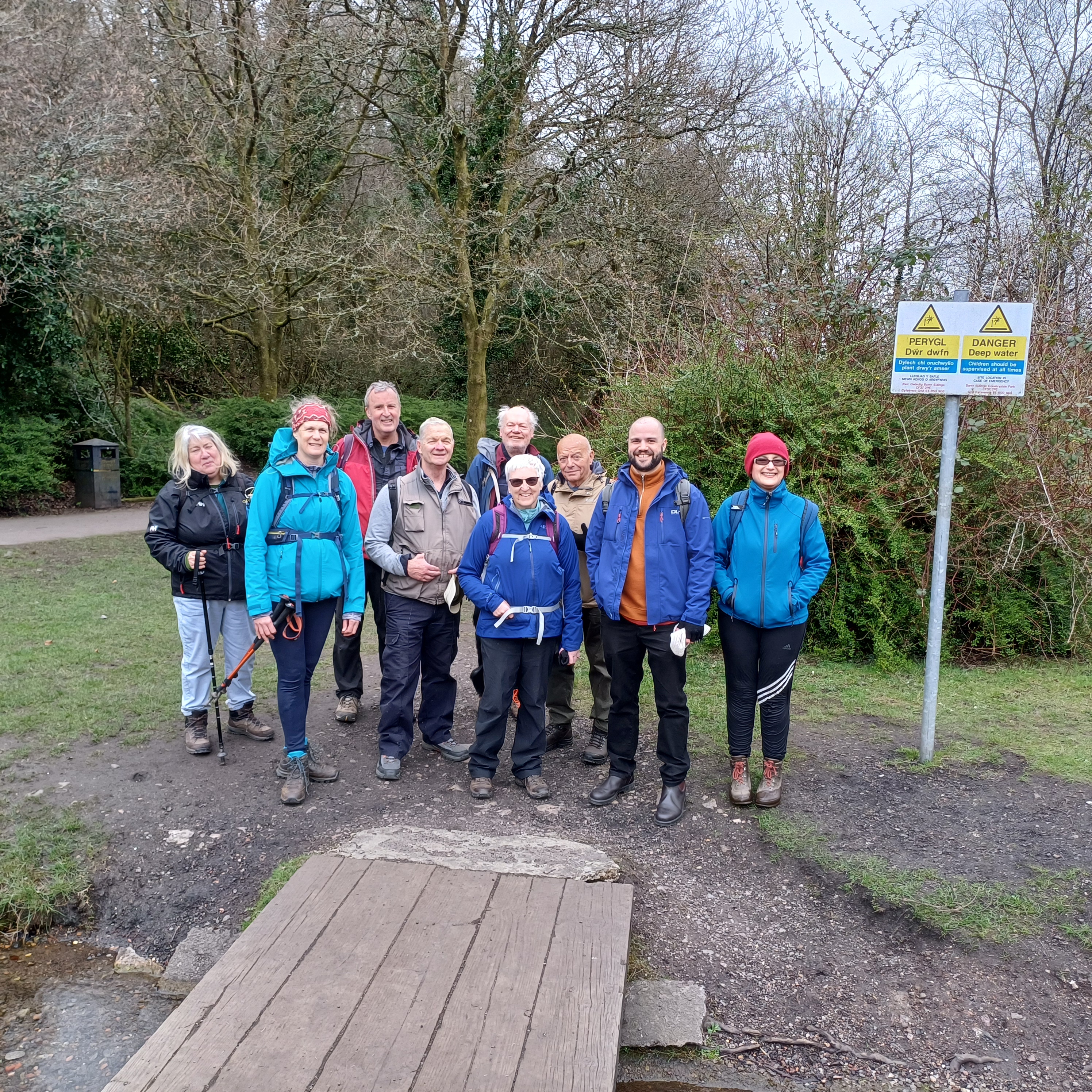 Another rather chilly start to our walk today with some of the usual suspects and visitors Ros, Chris and Eifion. So the 11 of us started the long but not too taxing ascent, through the forest, to Mynydd Gewillion. Having climbed for 2.5miles it was time for a coffee break with a view. Refreshed we set off, downhill this time towards and past Ty Draw farm. Leaving the road we encountered the first of our trip hazards brambles surrounded the stile - soon removed with the trusty secateurs. Across the fields to our next challenge a stile followed by a water jump all stayed dry and we sped on to the wobbly stile, which we skillfully dewobbled. It was now time to start climbing again up to Mynydd y Glyn, with the promise of the lunch stop in the foothills of the not so mighty mountain, we reached the ridge for a lunch with a view and some shelter from the biting wind. After lunch it was the last of stile challenges, this one had gone awol, so we climbed the fence instead. It was now all downhill and very downhill as we descended the old coal tips. As we descended we had some great views of the mining communities clustered on the hillside. Then it was a brisk walk along the Rhondda river back to the start.