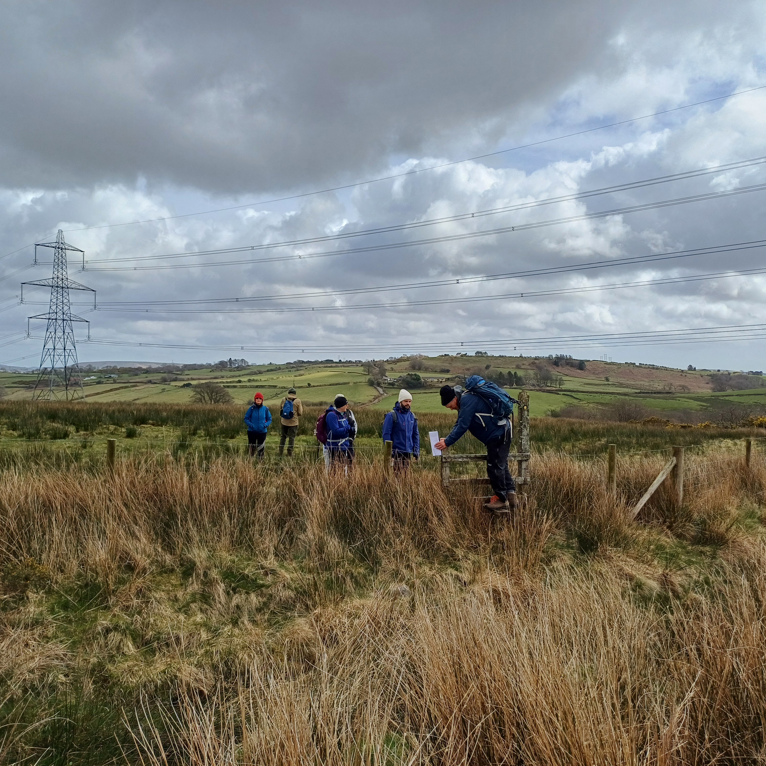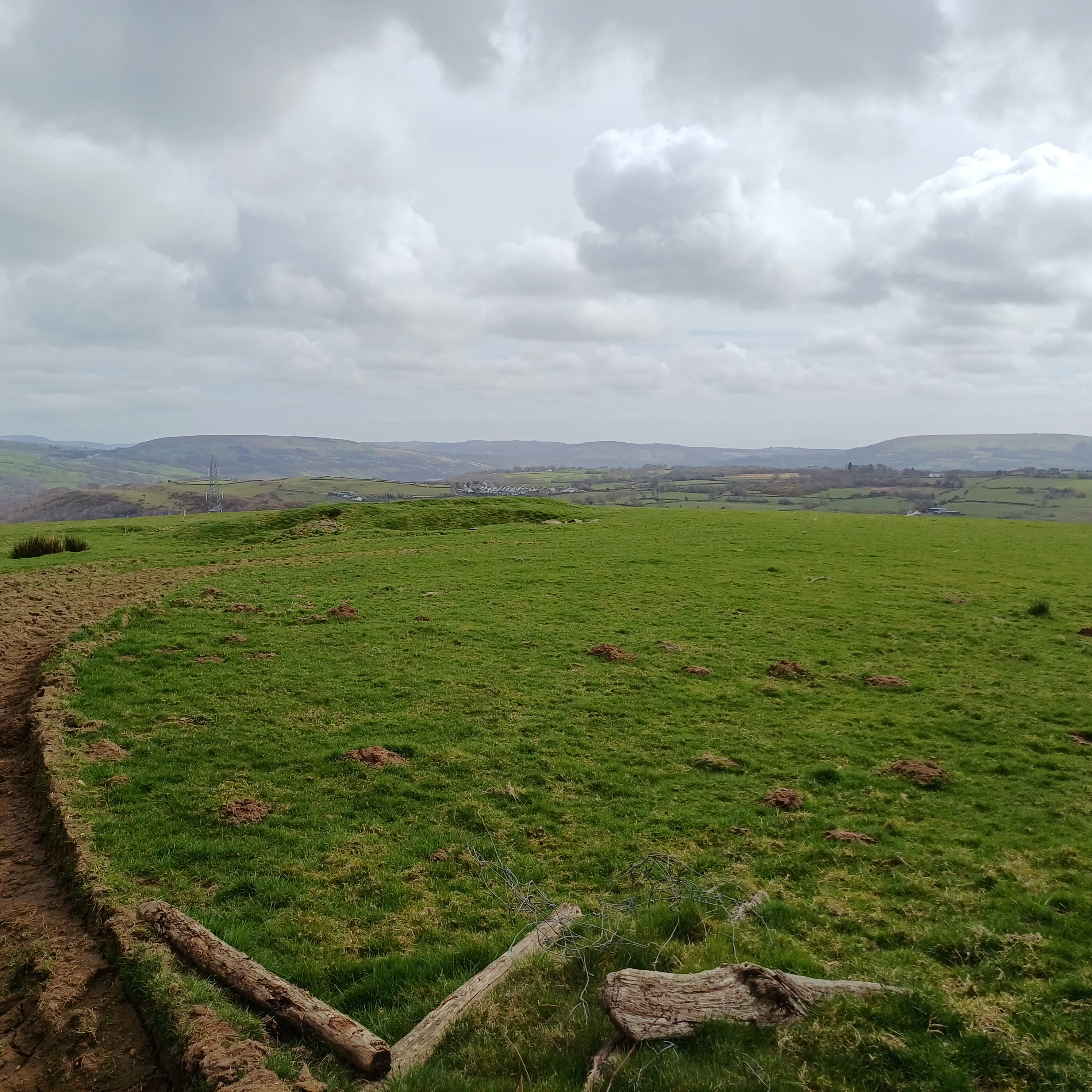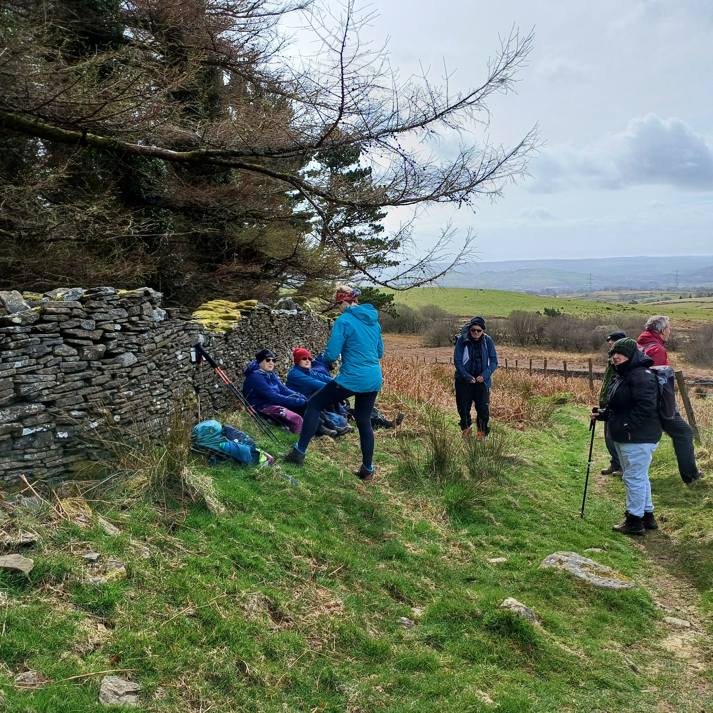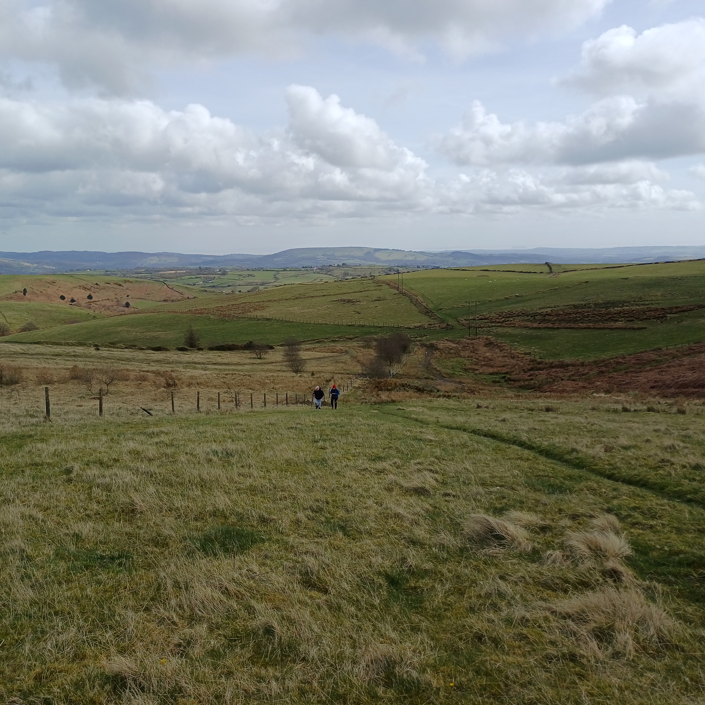 Another rather chilly start to our walk today with some of the usual suspects and visitors Ros, Chris and Eifion. So the 11 of us started the long but not too taxing ascent, through the forest, to Mynydd Gewillion. Having climbed for 2.5miles it was time for a coffee break with a view. Refreshed we set off, downhill this time towards and past Ty Draw farm. Leaving the road we encountered the first of our trip hazards brambles surrounded the stile - soon removed with the trusty secateurs. Across the fields to our next challenge a stile followed by a water jump all stayed dry and we sped on to the wobbly stile, which we skillfully dewobbled. It was now time to start climbing again up to Mynydd y Glyn, with the promise of the lunch stop in the foothills of the not so mighty mountain, we reached the ridge for a lunch with a view and some shelter from the biting wind. After lunch it was the last of stile challenges, this one had gone awol, so we climbed the fence instead. It was now all downhill and very downhill as we descended the old coal tips. As we descended we had some great views of the mining communities clustered on the hillside. Then it was a brisk walk along the Rhondda river back to the start.