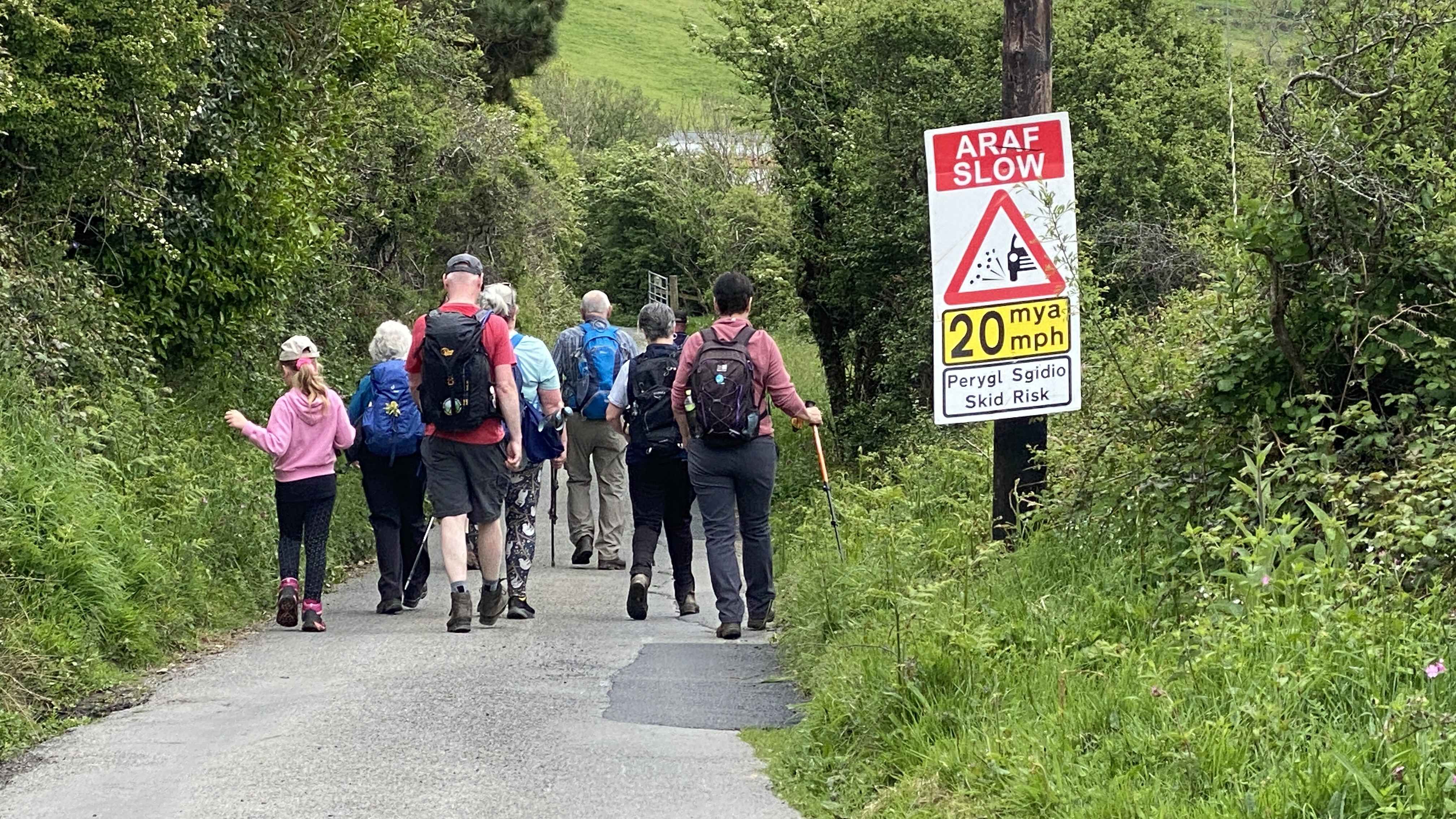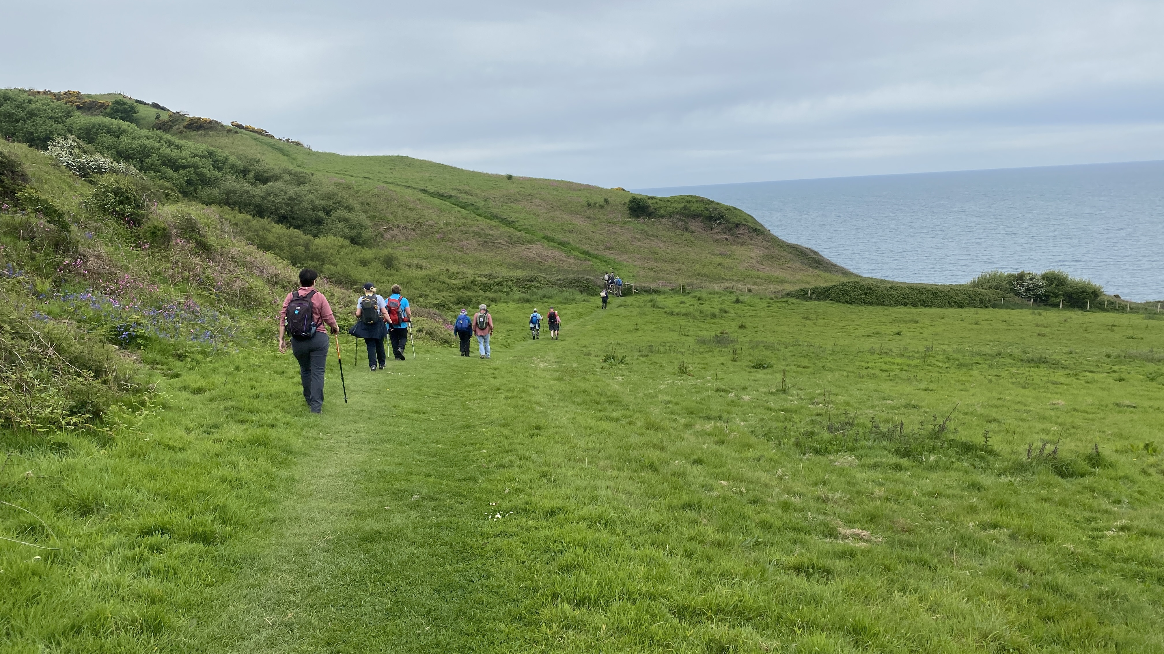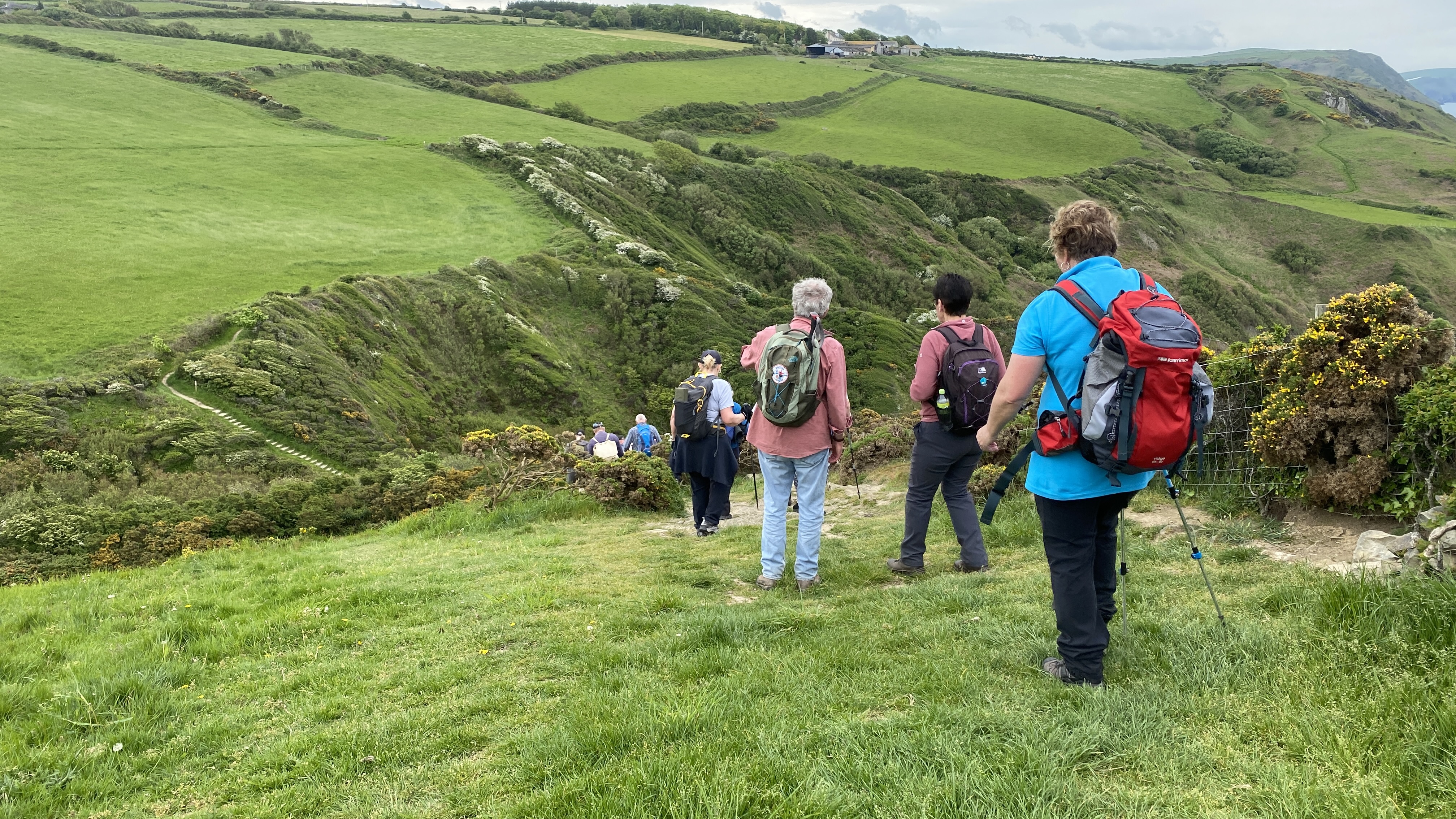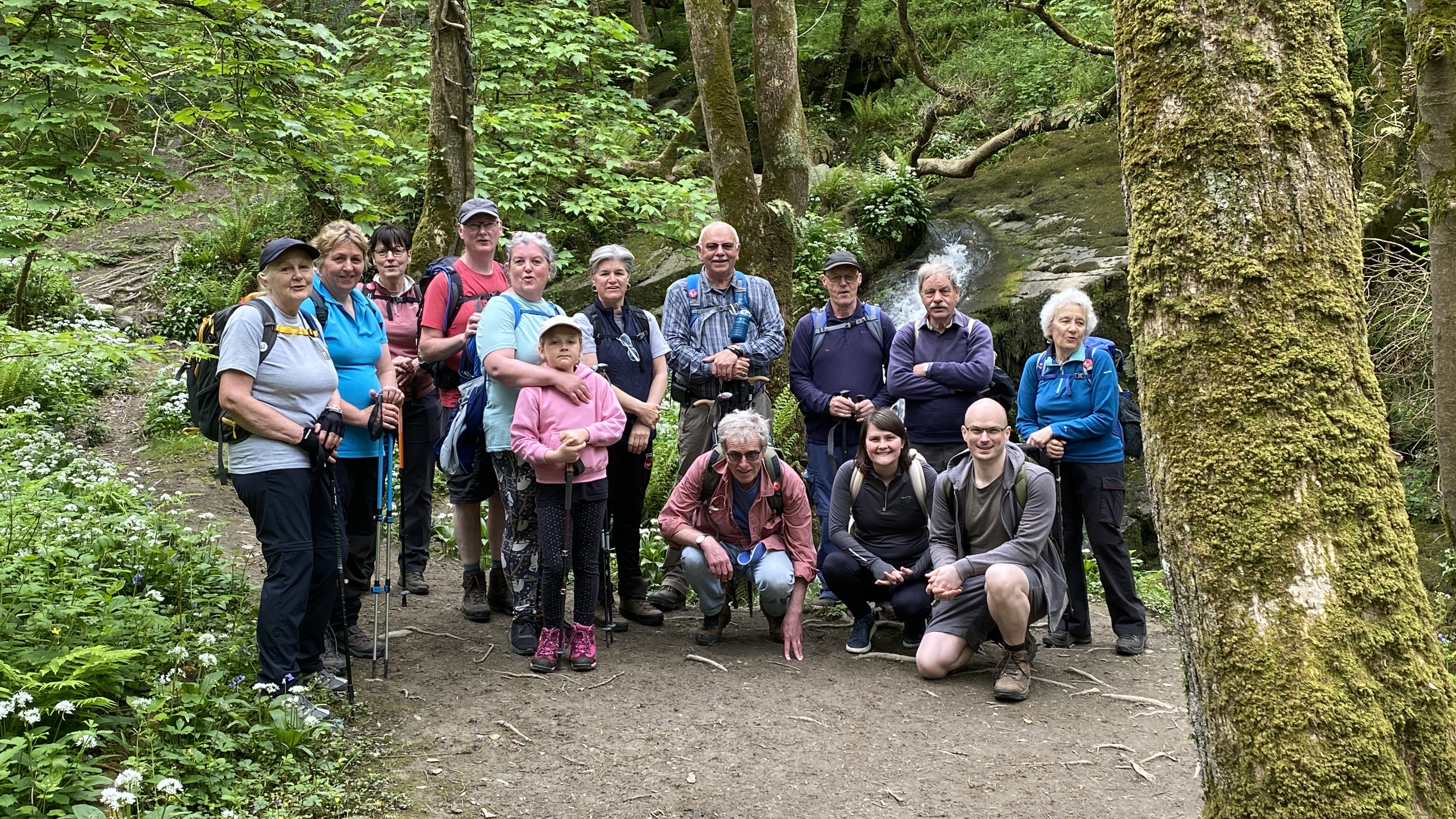 Day 2 of the Merthyr Valley Ramblers May weekend away saw 15 of us assembling in bright weather in New Quay. We started our 8+ mile walk with a steep climb from the car-park along the top of the cliff to a bay by Castell Bach where a cuppa was consumed. We then did a big circuit inland where we passed a garlic festooned waterfall - we then hit the roads to Cwmtydu where we had lunch. It was then more coast work where we then turned inland to cross our path and on to Byrlip where we travelled Northeast and back to the start. Stunning scenery, fabulous company and great weather all made it a superb walk thanks again to Peter.