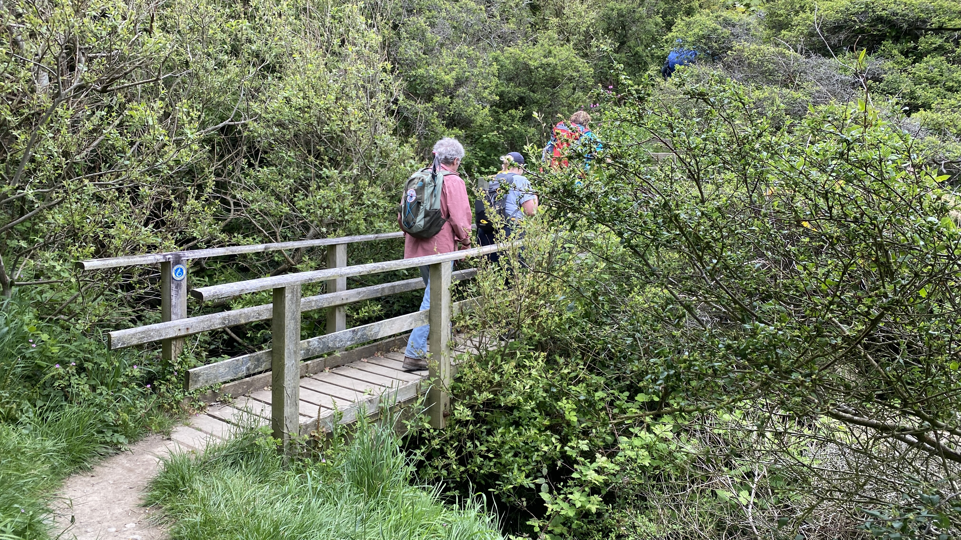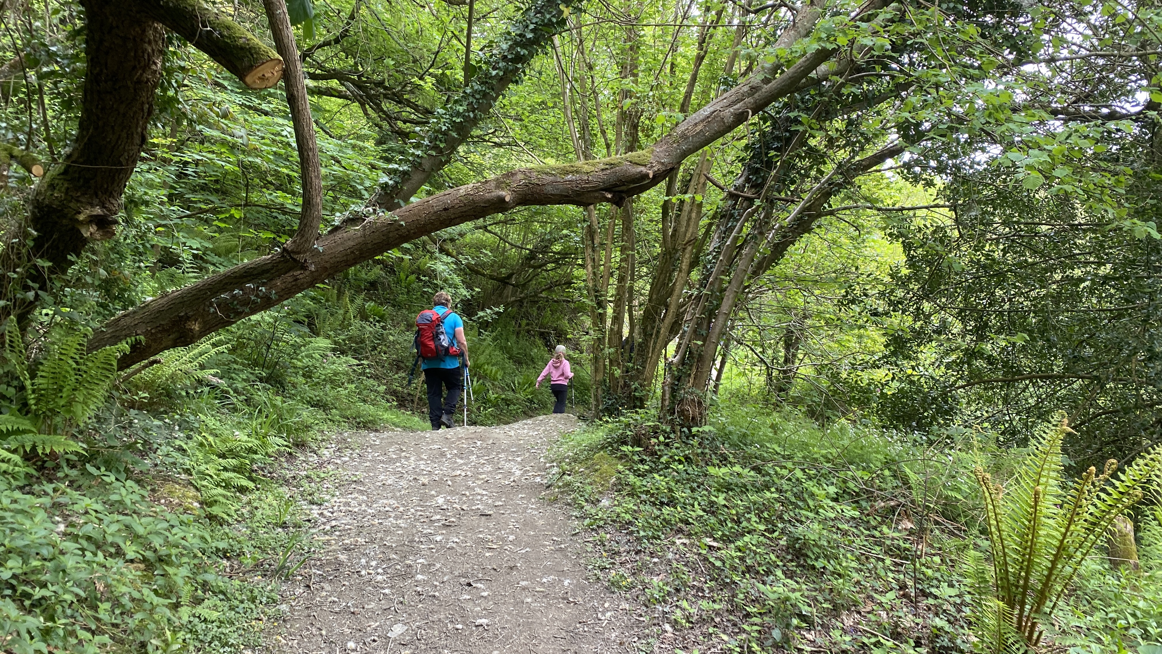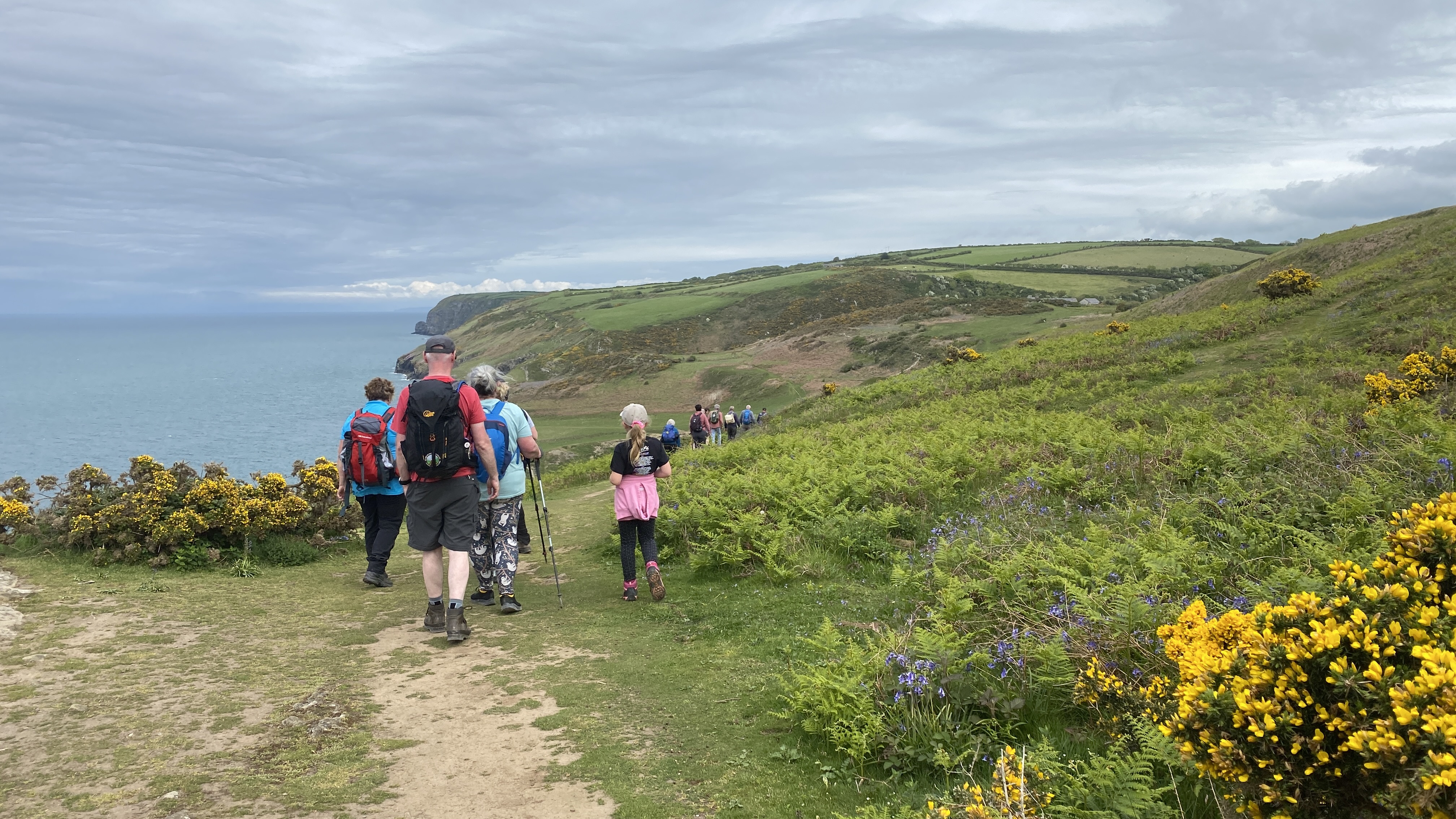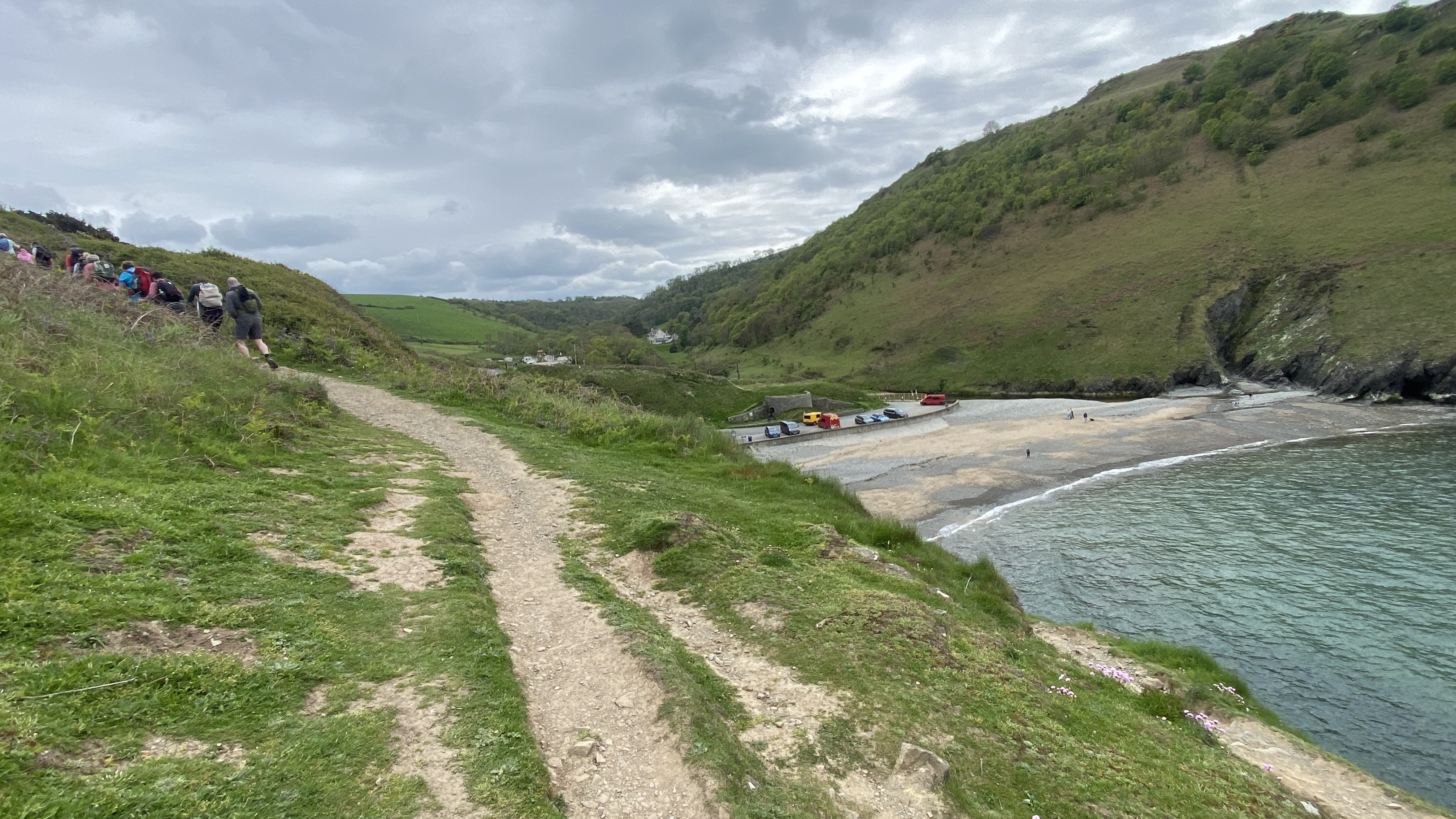 Day 2 of the Merthyr Valley Ramblers May weekend away saw 15 of us assembling in bright weather in New Quay. We started our 8+ mile walk with a steep climb from the car-park along the top of the cliff to a bay by Castell Bach where a cuppa was consumed. We then did a big circuit inland where we passed a garlic festooned waterfall - we then hit the roads to Cwmtydu where we had lunch. It was then more coast work where we then turned inland to cross our path and on to Byrlip where we travelled Northeast and back to the start. Stunning scenery, fabulous company and great weather all made it a superb walk thanks again to Peter.