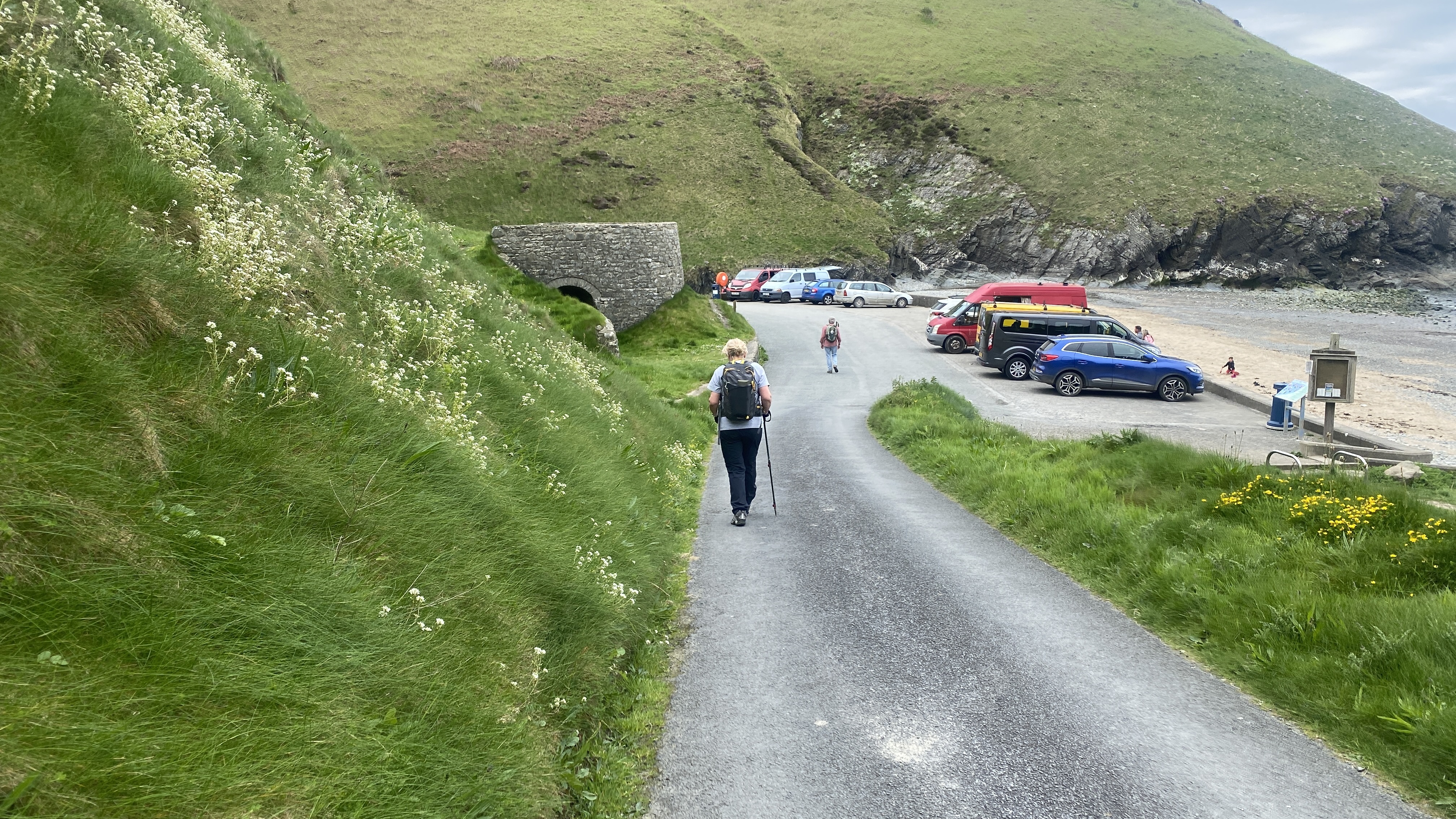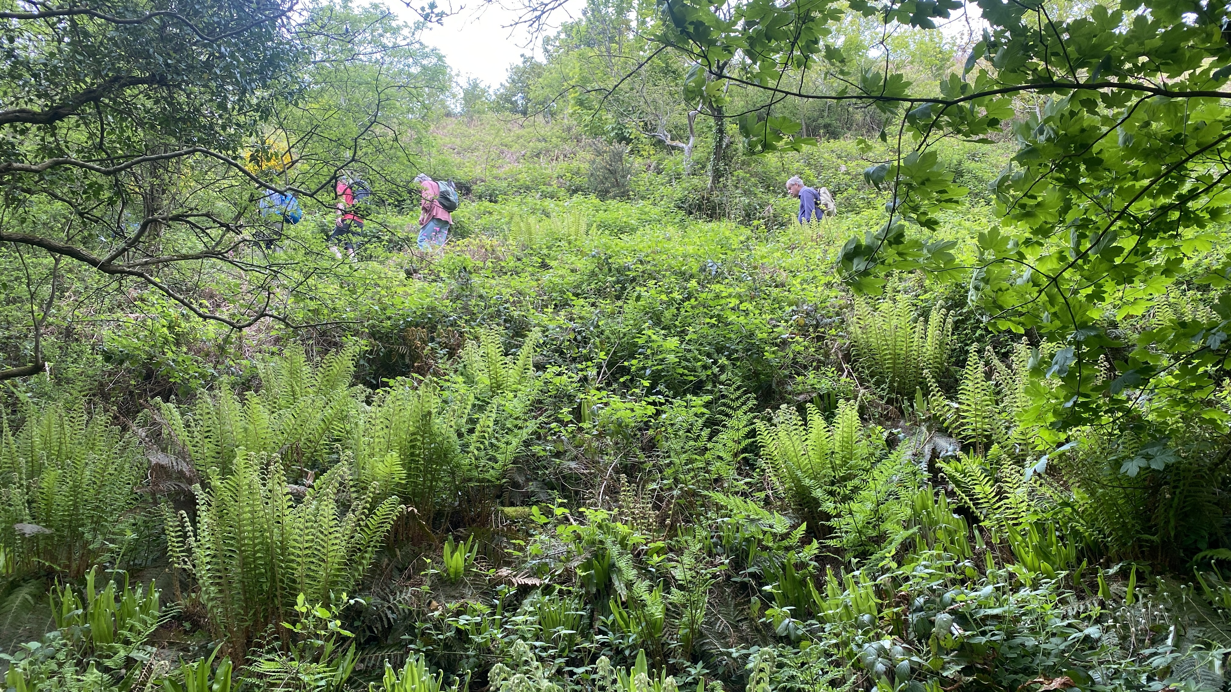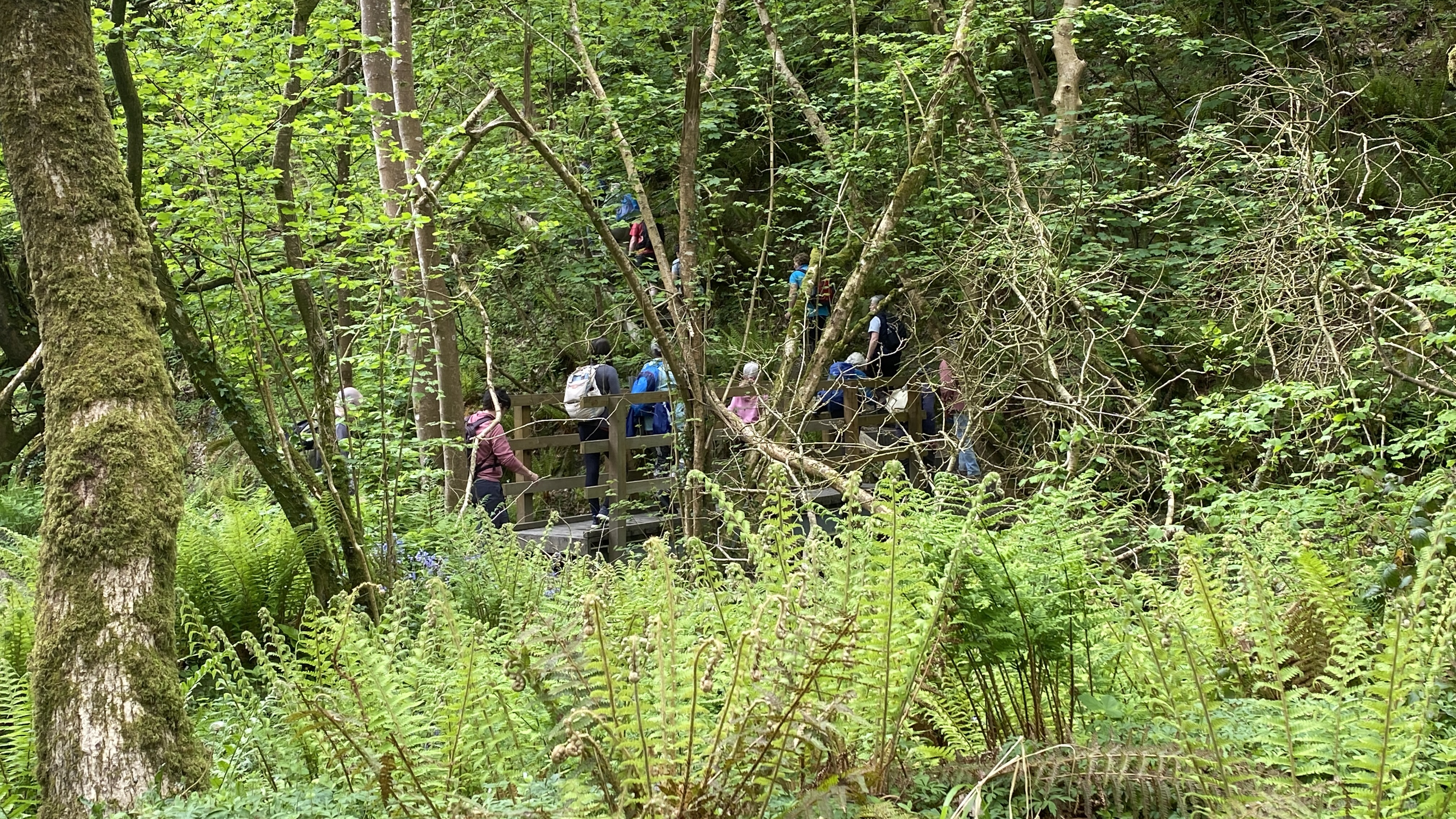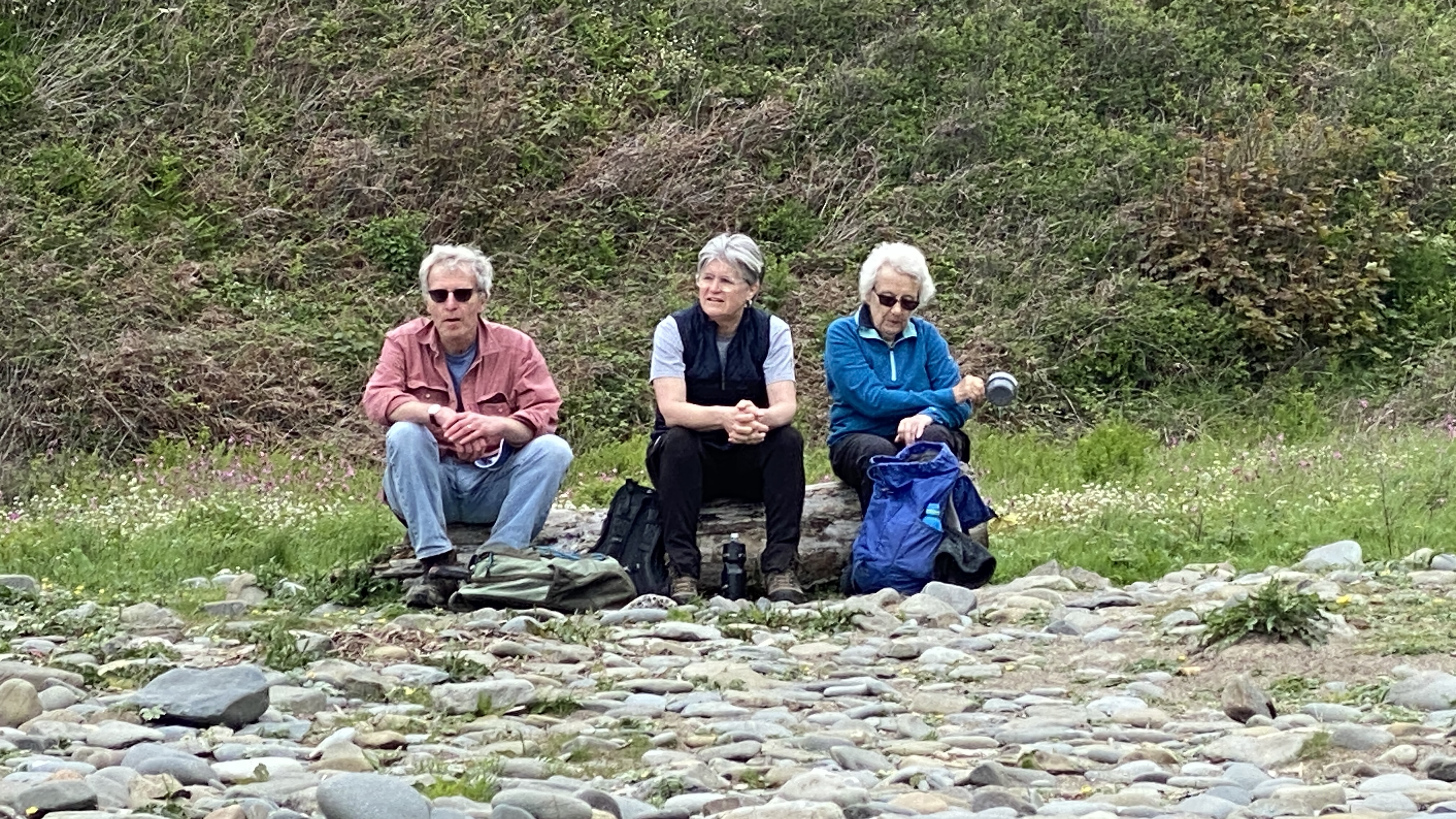 Day 2 of the Merthyr Valley Ramblers May weekend away saw 15 of us assembling in bright weather in New Quay. We started our 8+ mile walk with a steep climb from the car-park along the top of the cliff to a bay by Castell Bach where a cuppa was consumed. We then did a big circuit inland where we passed a garlic festooned waterfall - we then hit the roads to Cwmtydu where we had lunch. It was then more coast work where we then turned inland to cross our path and on to Byrlip where we travelled Northeast and back to the start. Stunning scenery, fabulous company and great weather all made it a superb walk thanks again to Peter.