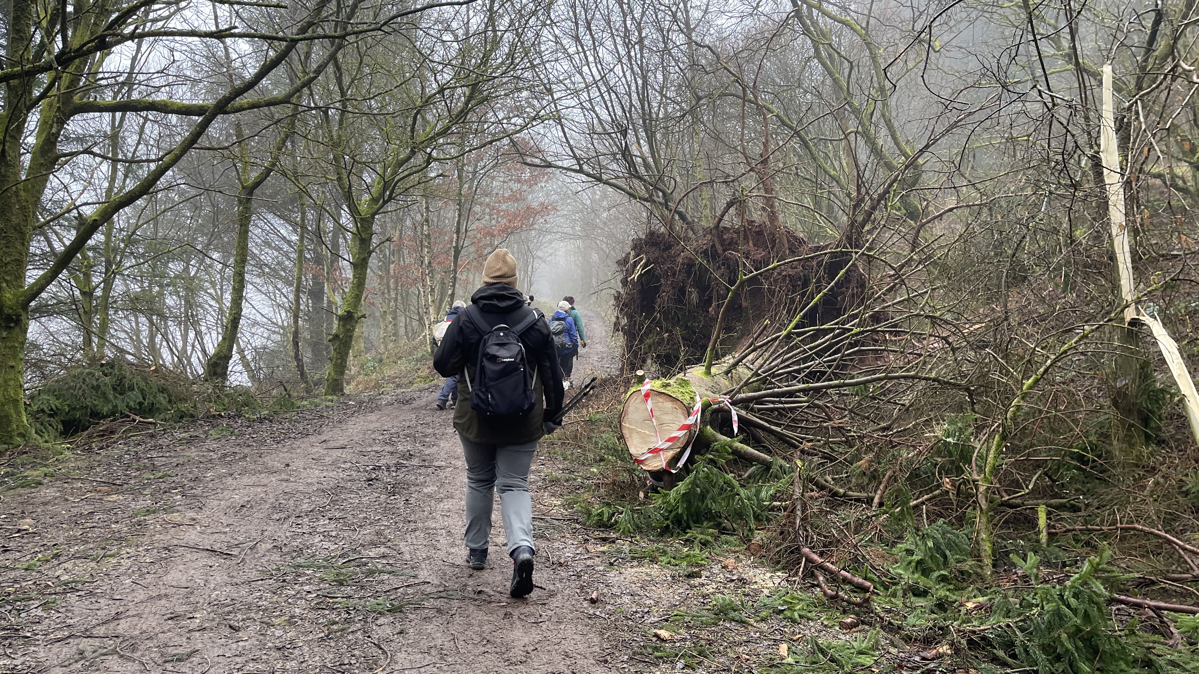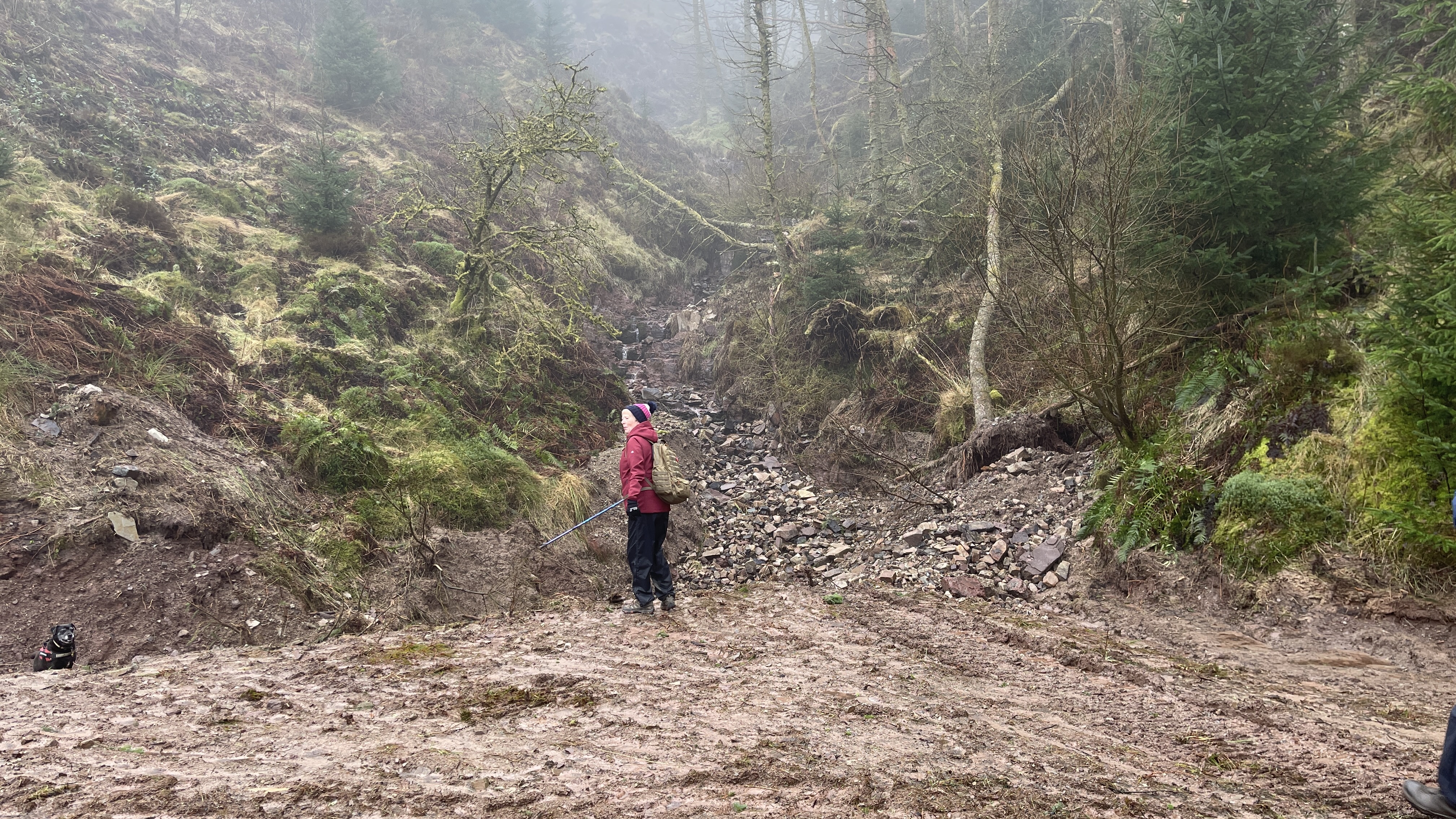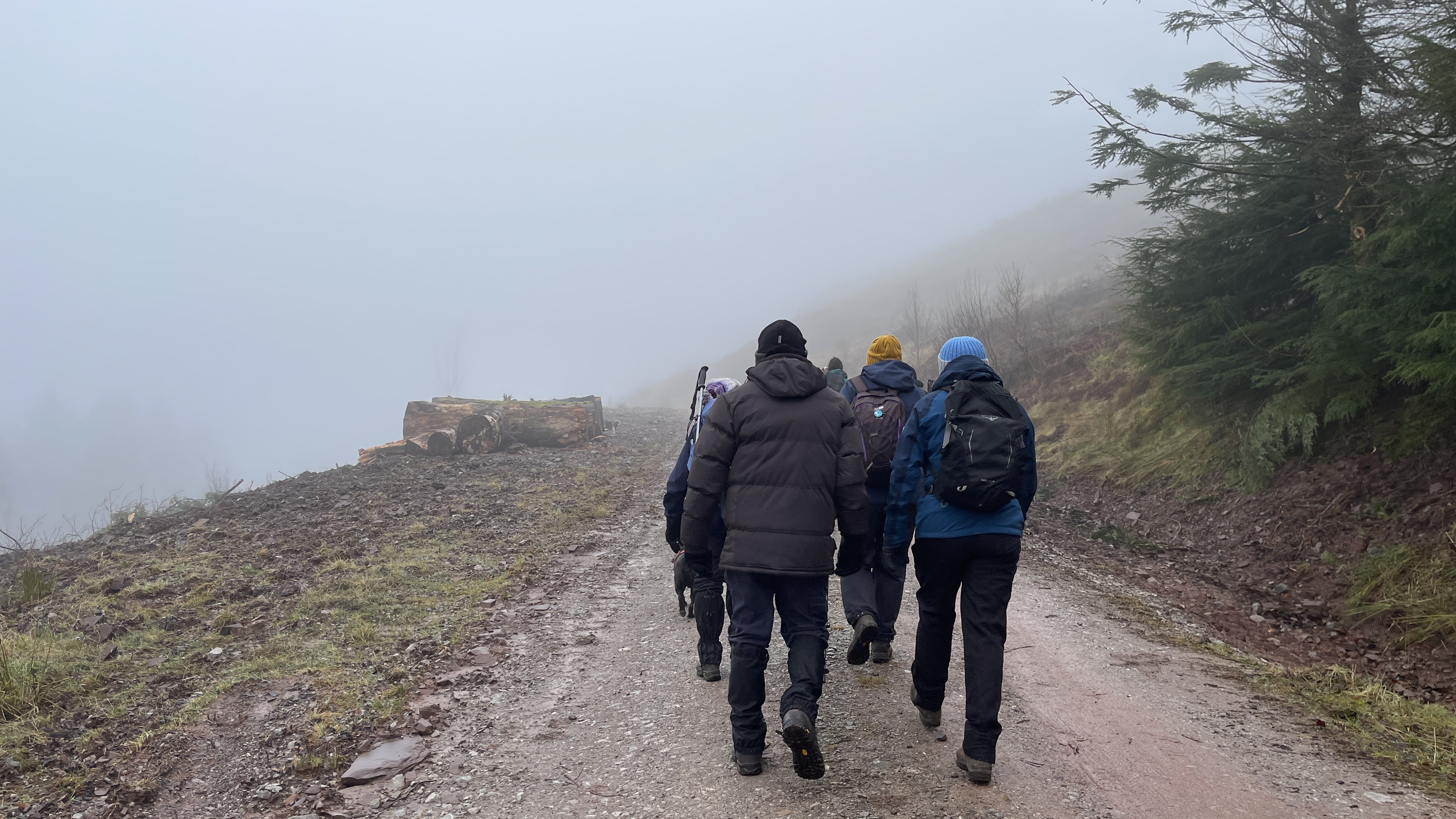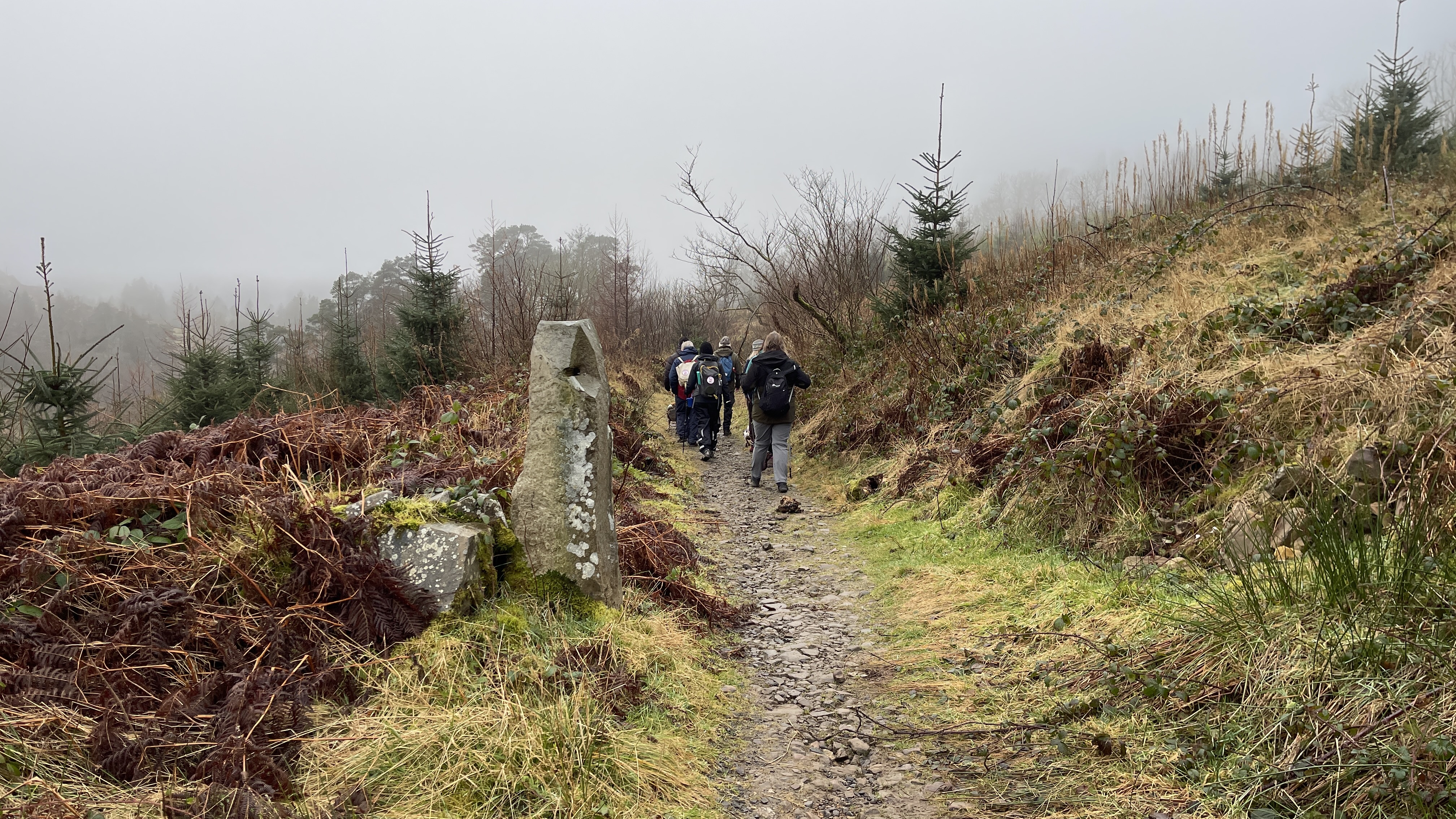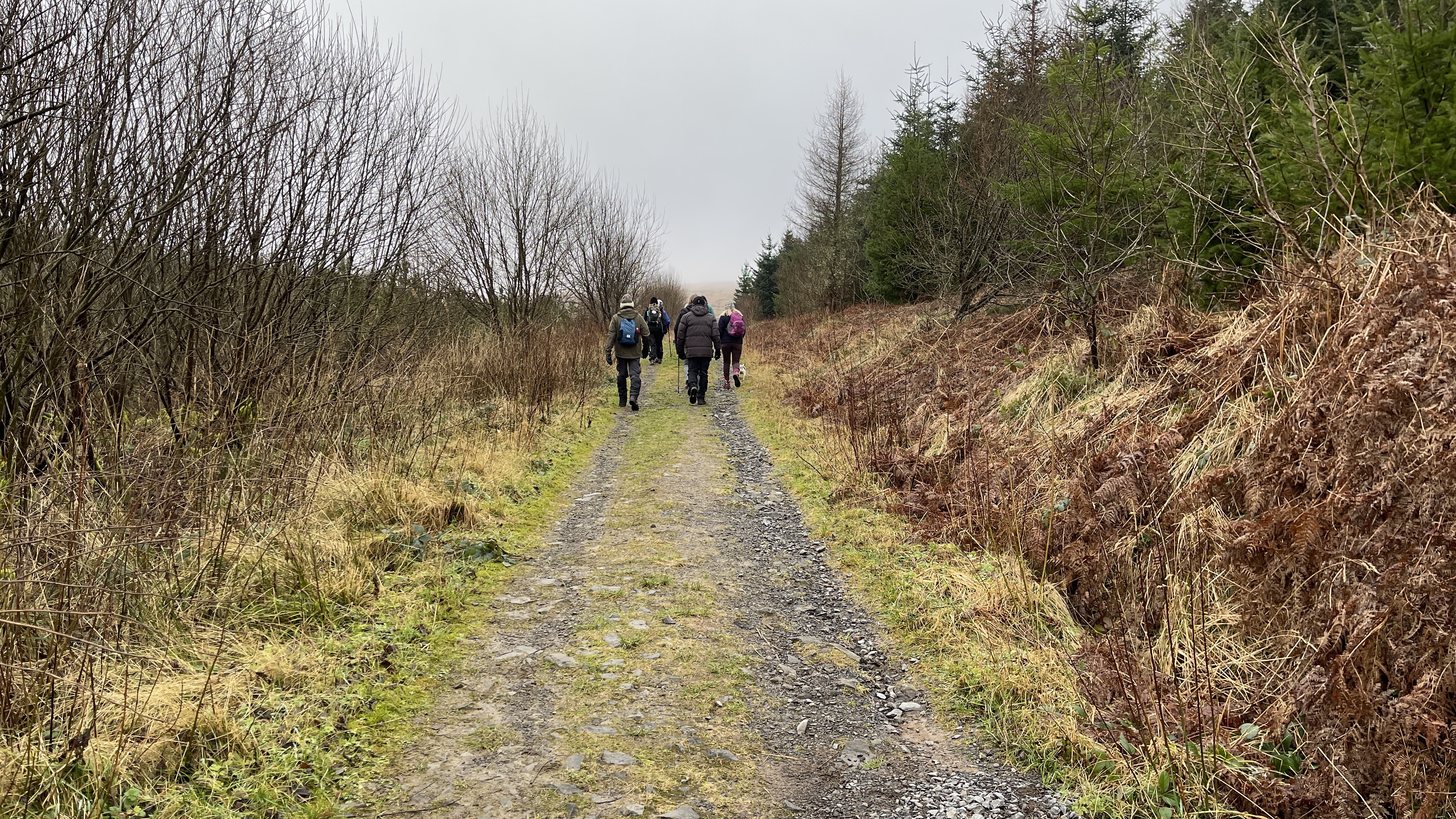 It was a cold and misty start to this morning's 8 mile walk around Pontsticill today. The 14 hardy ramblers (including welcome guest Jane) started from the bus terminus down the road to the dam and checked the overflow, which was now dry. We then worked our way alongside the reservoir, noting all the tree damage that the storms had caused. We then crossed the railway at the railway crossing and headed up to Cwm y Gorlan where, in slowly clearing weather, we followed the path around and headed back down Cwm Callan. After a quick cuppa at Dolygaer, we crossed the bridge between the dams and picked up another forestry track where we crossed the Nant Car Fach using the wooden bridge. Fallen trees proved to be no obstacle to the group as we made our way alongside track and road back to the bus stop. We then had a wonderful pre-booked meal in The Red Cow Pontsticil, a perfect end to a perfect walk thanks to the great company and additional walk leaders Maureen and Katherine.