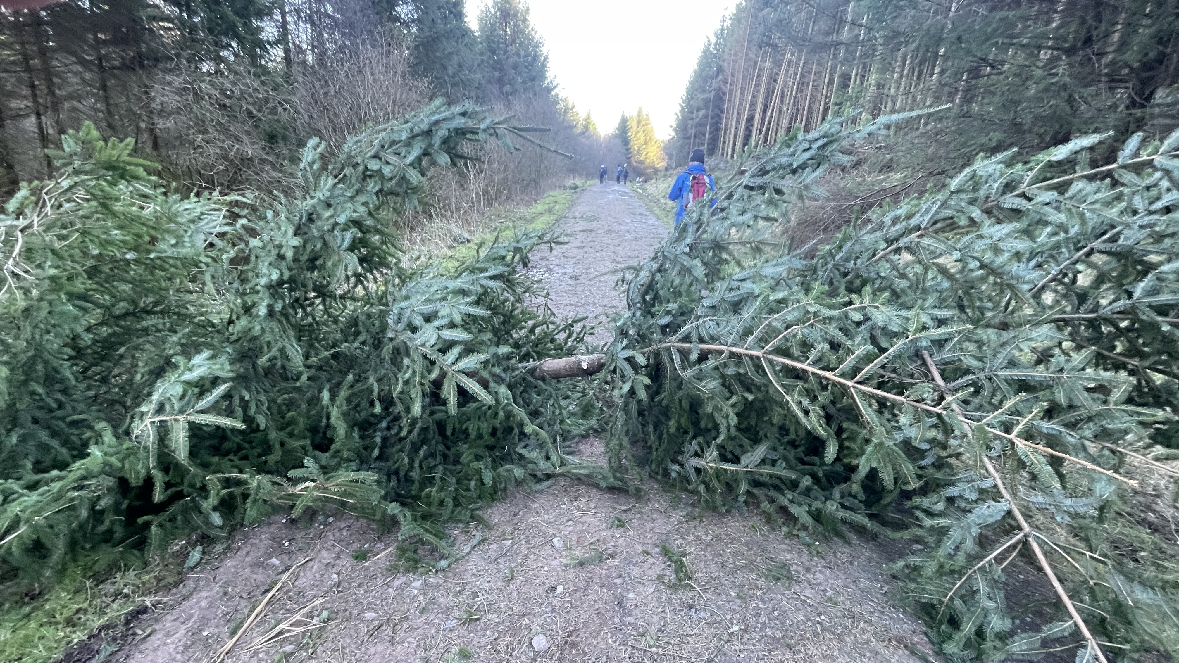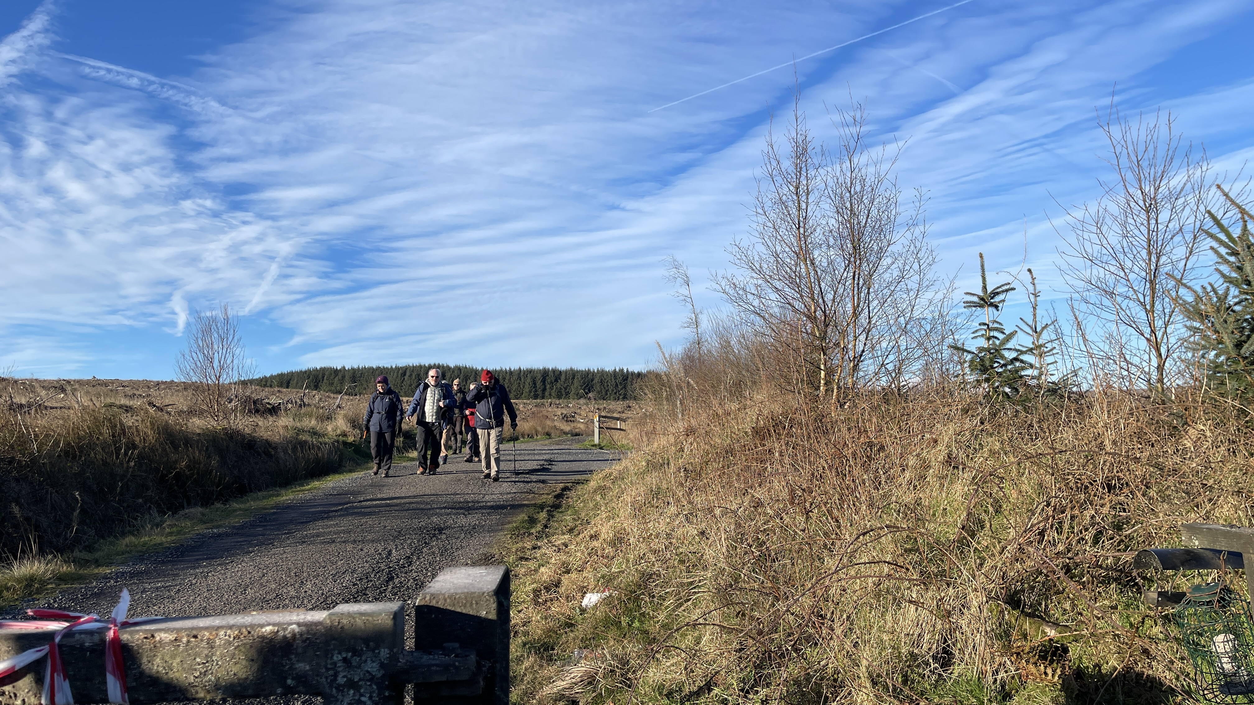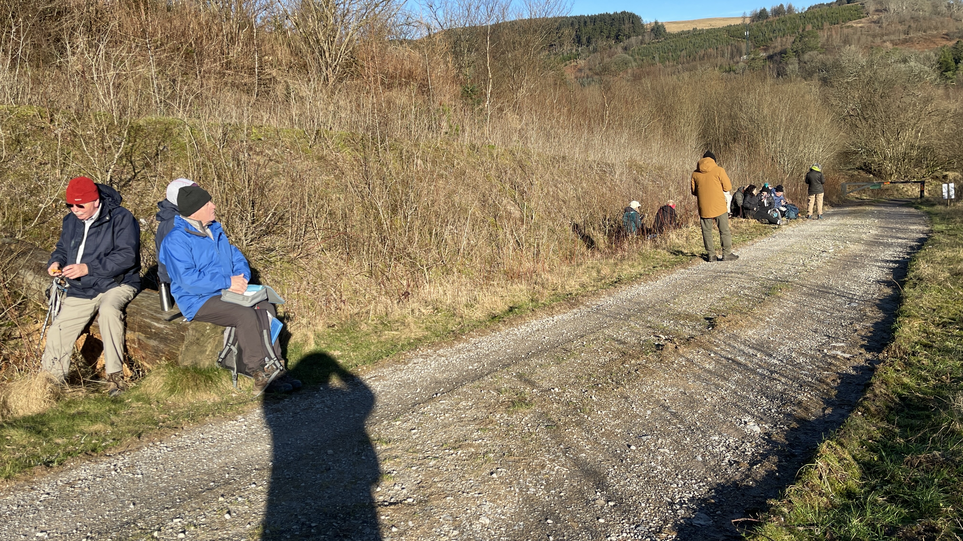Bright sunshine and blue skies greeted eighteen lucky Merthyr Valley Ramblers which started their 5 1/2 mile walk from Pontsticill dam today. We walked alongside the east border of the reservoir to Dolygaer, crossed the dividing bridge between the two reservoirs and had a cuppa at the entrance to the forestry. We then made our way to the wooden bridge where we decorated the Christmas tree with bird treats. Further on, we came across a couple of trees that had fallen across the path. Thanks to a post on the Pontsticill Facebook page, we knew about them and had brought along a woodsaw which soon cut a path through the branches. Then, it was on to the Red The Red Cow Pontsticil for a fine meal and a warm by a real log fire. Lovely company made this a special walk - thanks all!