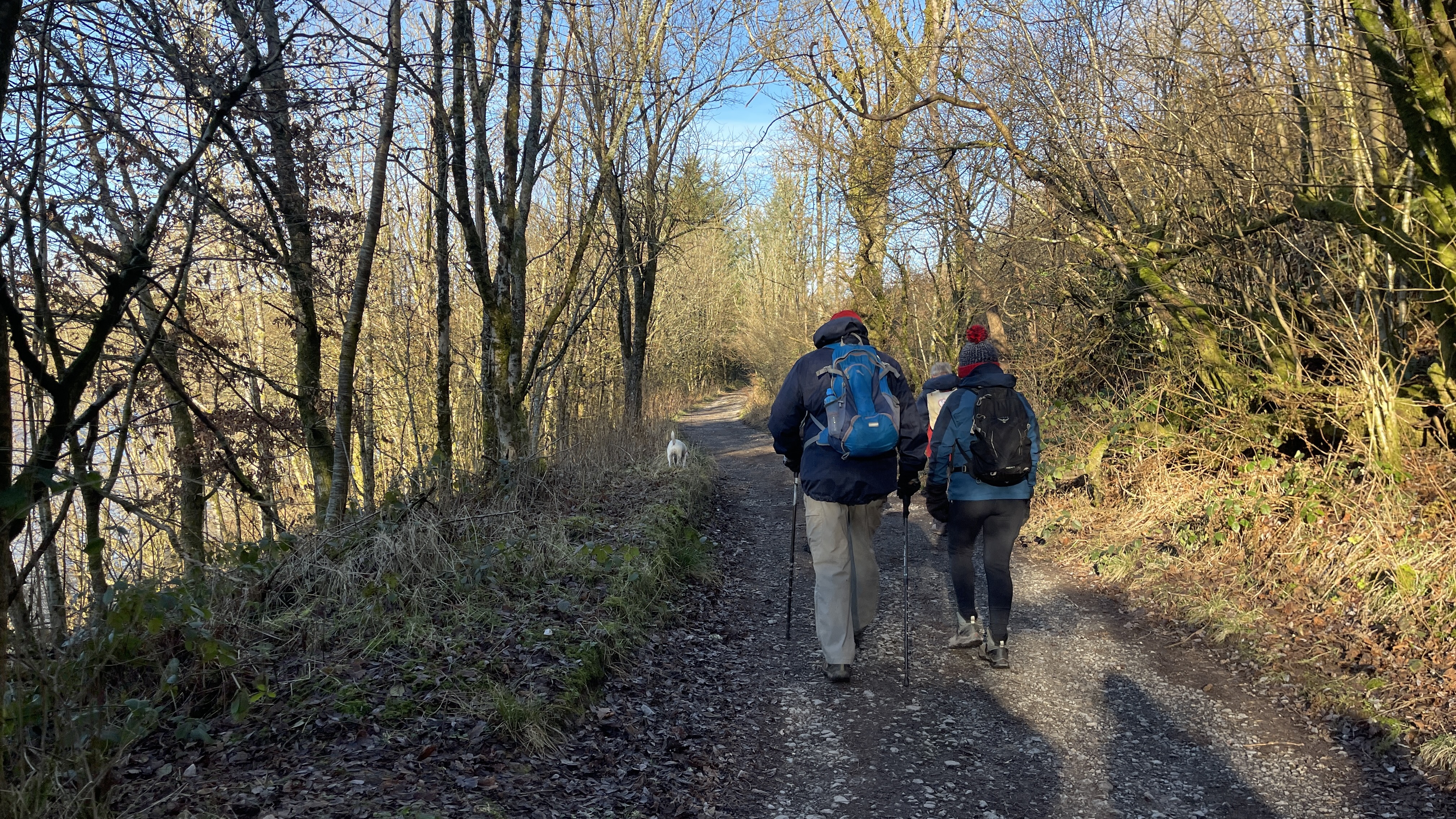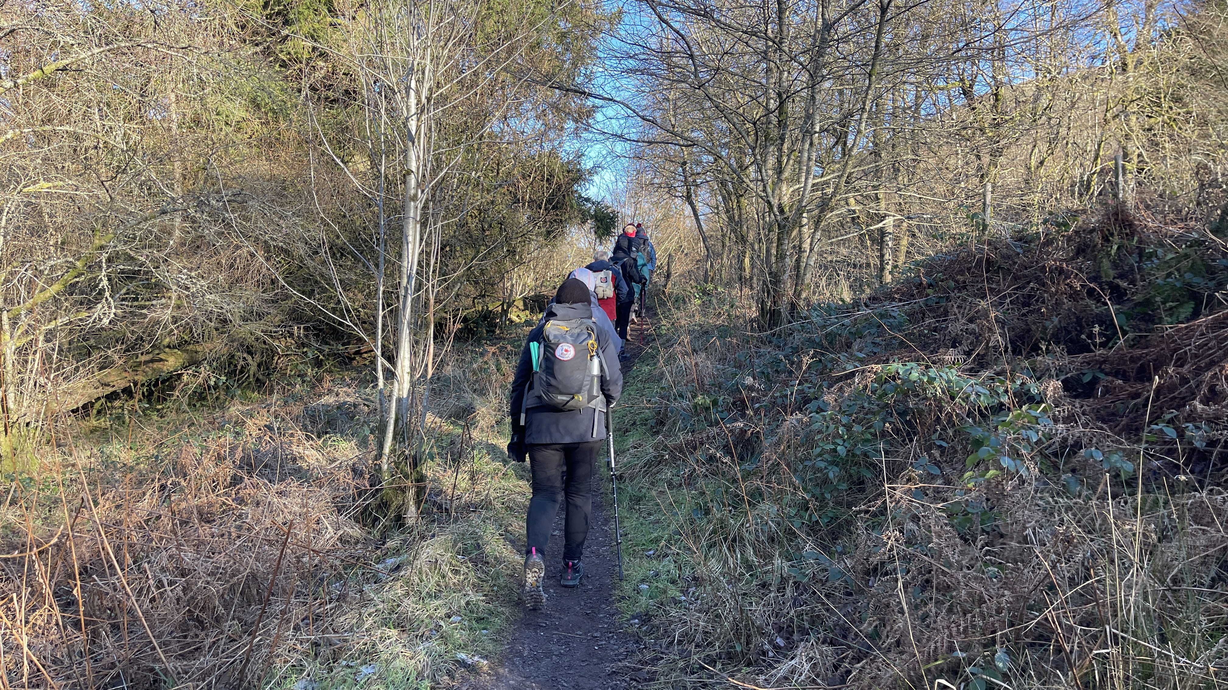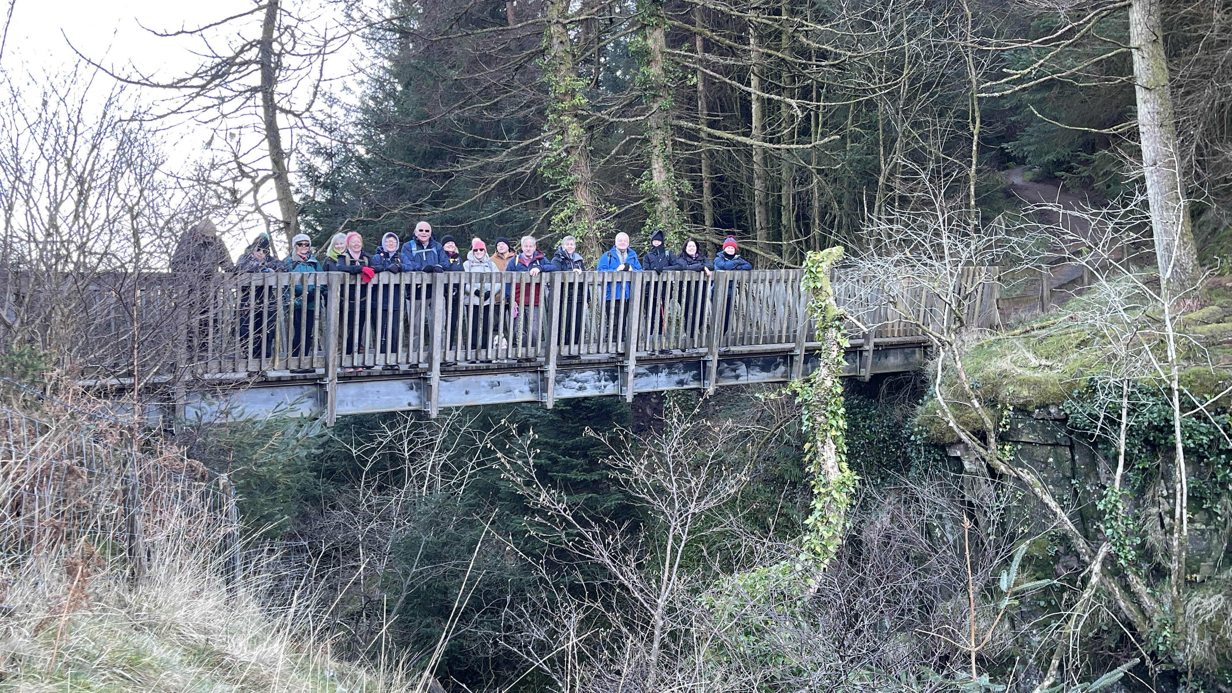 Bright sunshine and blue skies greeted eighteen lucky Merthyr Valley Ramblers which started their 5 1/2 mile walk from Pontsticill dam today. We walked alongside the east border of the reservoir to Dolygaer, crossed the dividing bridge between the two reservoirs and had a cuppa at the entrance to the forestry. We then made our way to the wooden bridge where we decorated the Christmas tree with bird treats. Further on, we came across a couple of trees that had fallen across the path. Thanks to a post on the Pontsticill Facebook page, we knew about them and had brought along a woodsaw which soon cut a path through the branches. Then, it was on to the Red The Red Cow Pontsticil for a fine meal and a warm by a real log fire. Lovely company made this a special walk - thanks all!