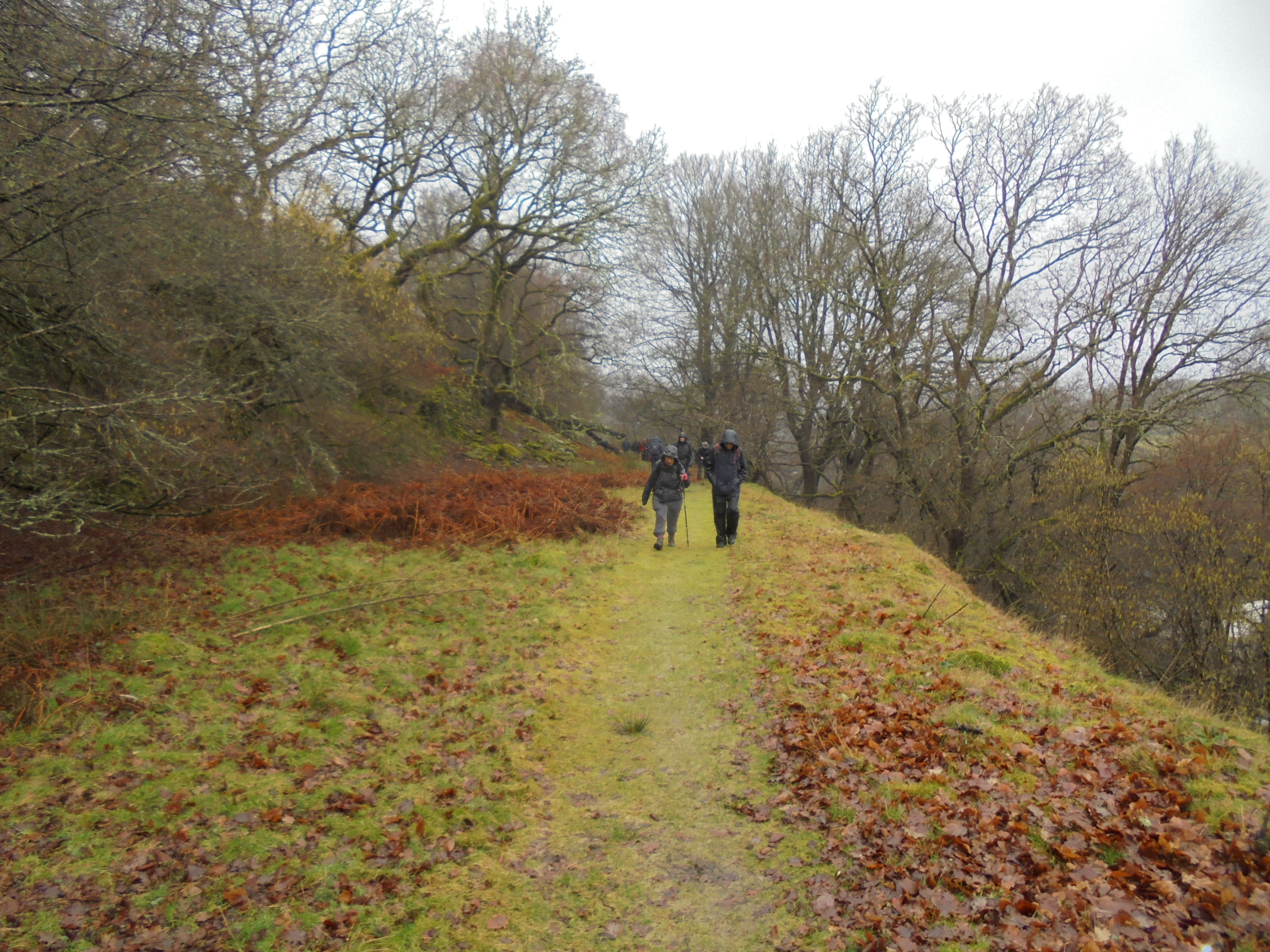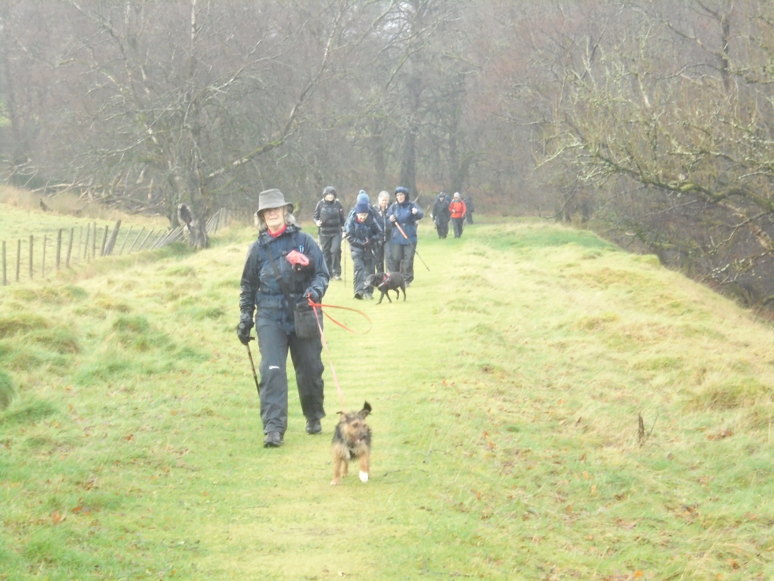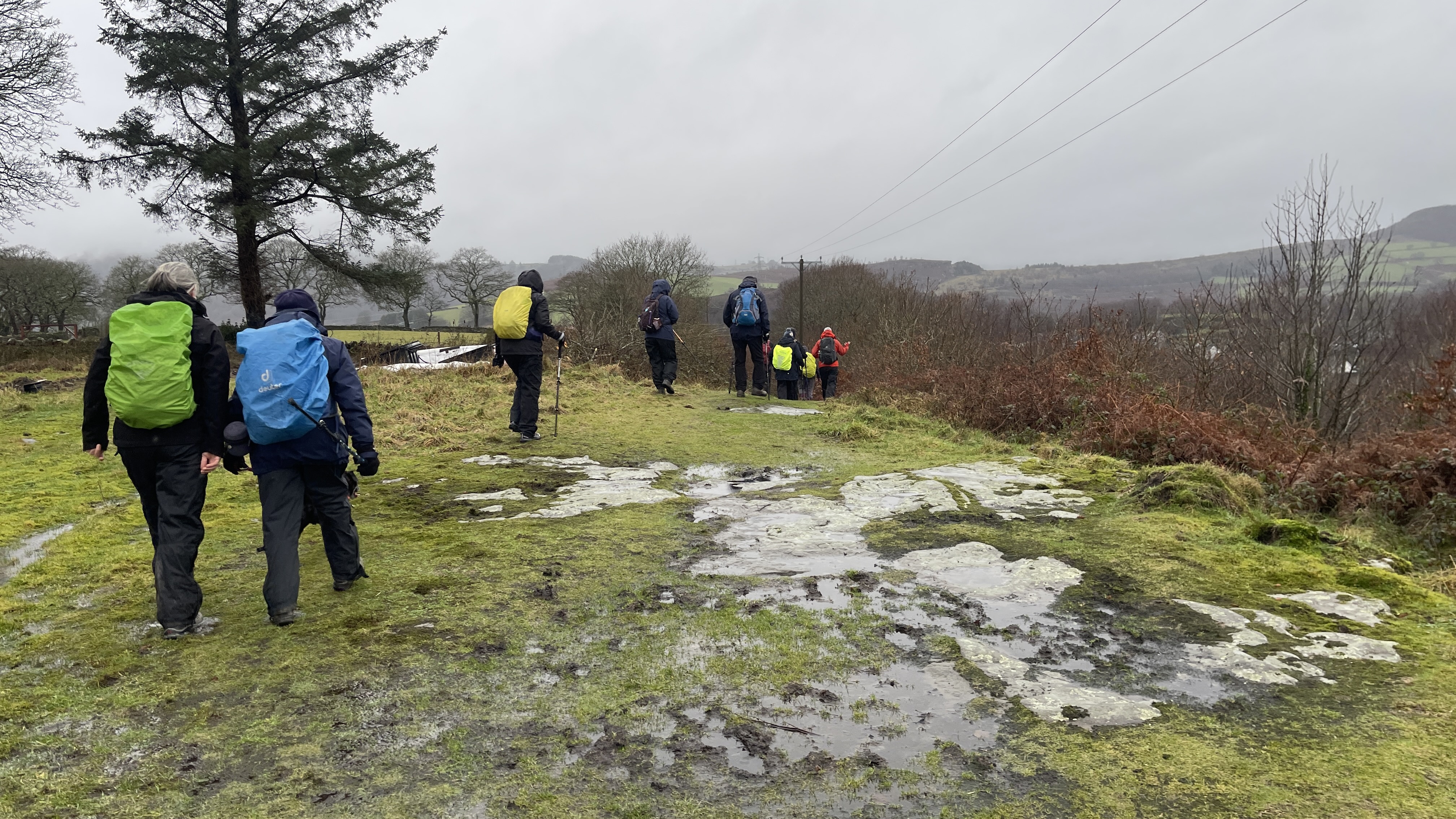 Incessant rain (or what we call “picking” in Merthyr) greeted the 15 well-waterproofed ramblers in Nelson today. Starting from the waterworks, we began by walking towards Quakers Yard. We then turned west and came to the fiddlers elbow roundabout. Crossing the road, we climbed up to the cemetery and followed the tramway to the Railway inn at Nelson, having a quick cuppa on the way. We then turned South past Tae’r-heol then east and picked up the Rhymney valley ridgeway walk back into Nelson. After lunch in the playground, we headed east to Parc Penallta and followed the railway to Quakers Yard then returned to the waterworks. Then the sun came out. Big thanks to visitors Jen and Steve, Peter for the walk and all for the great company.