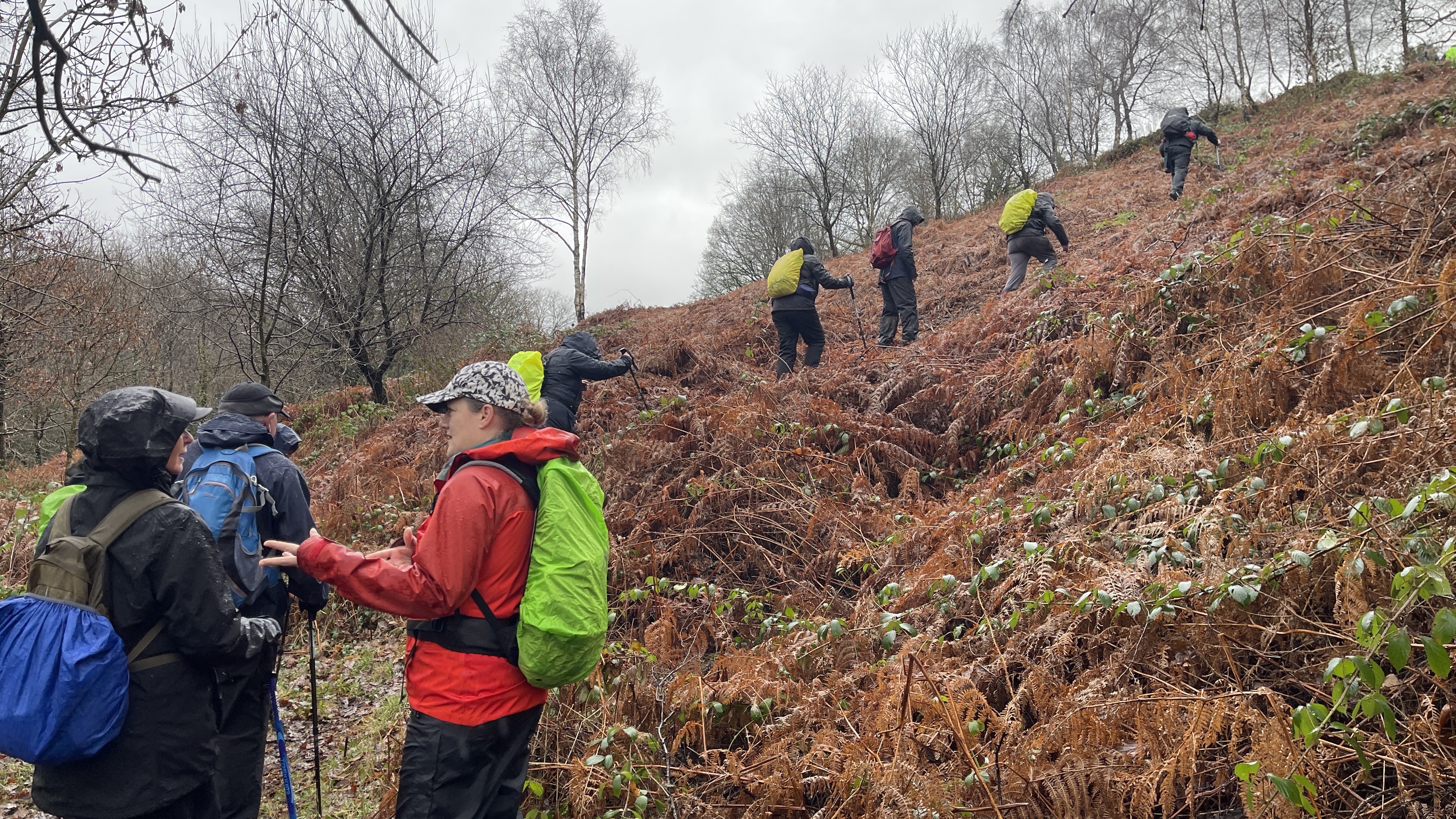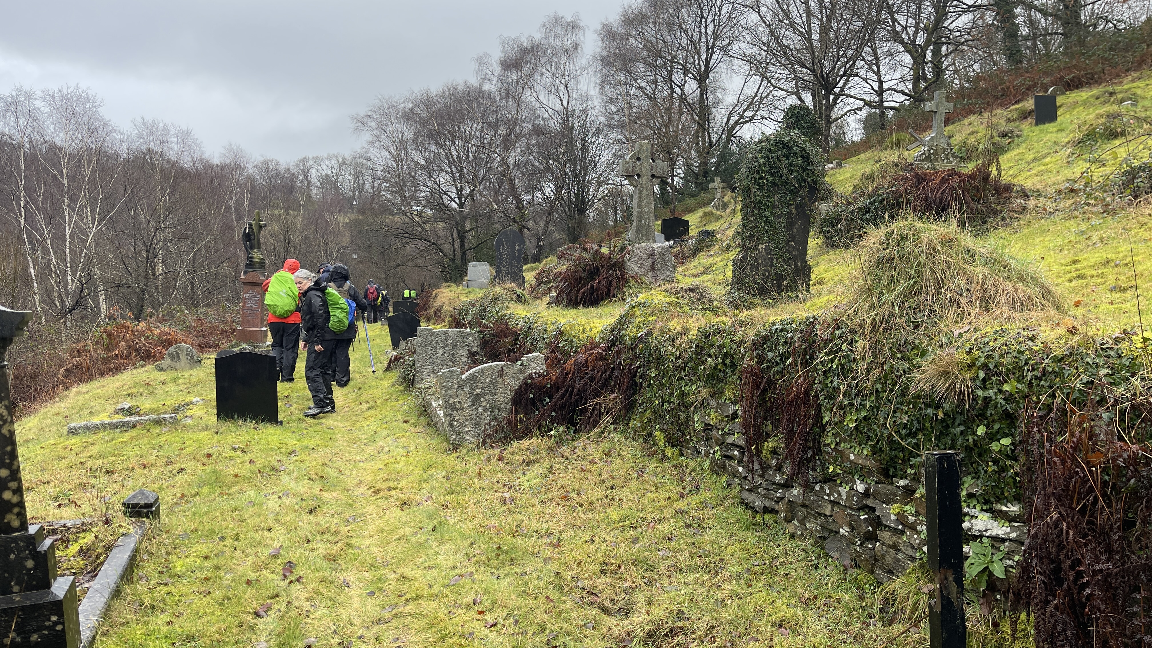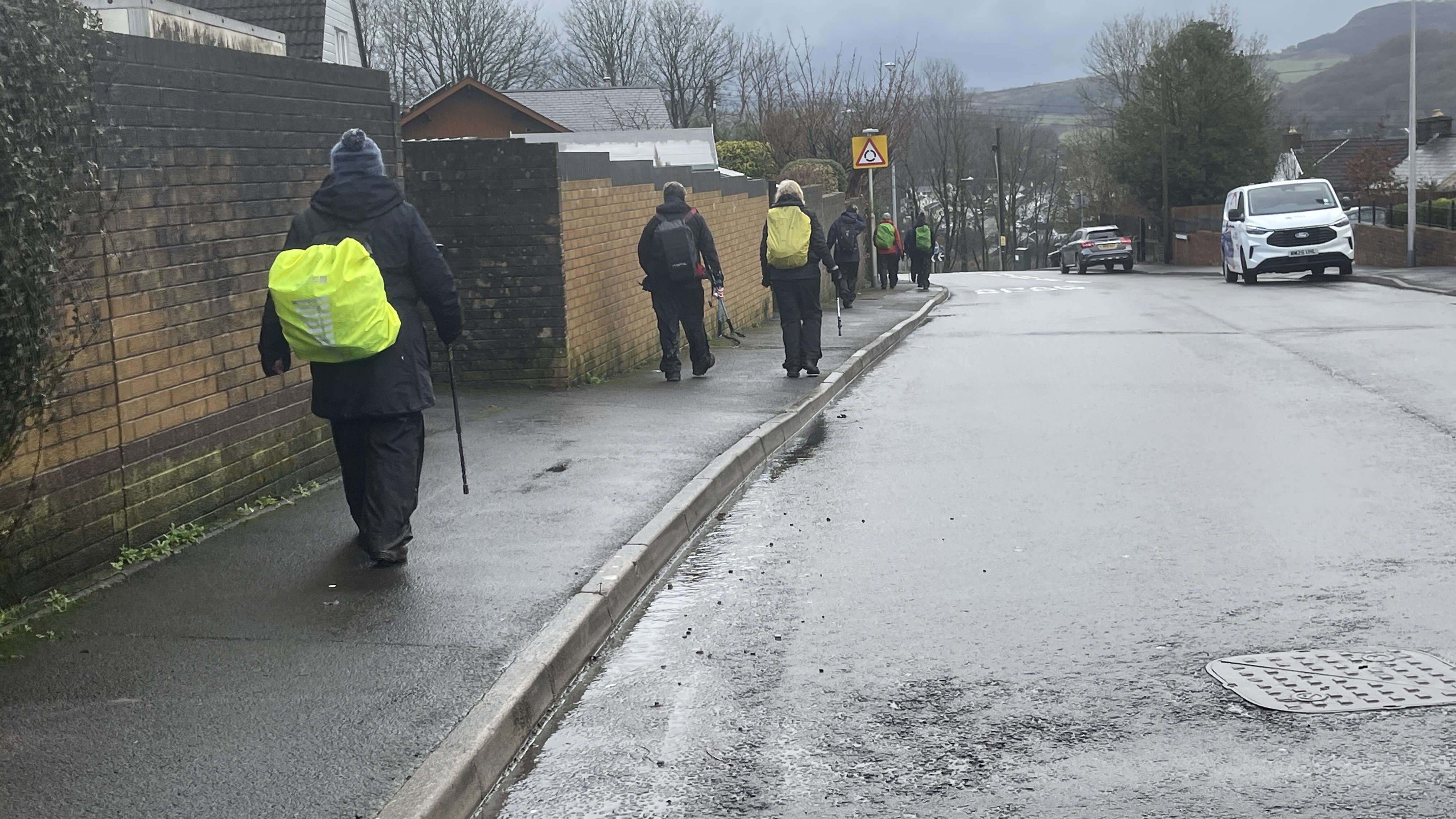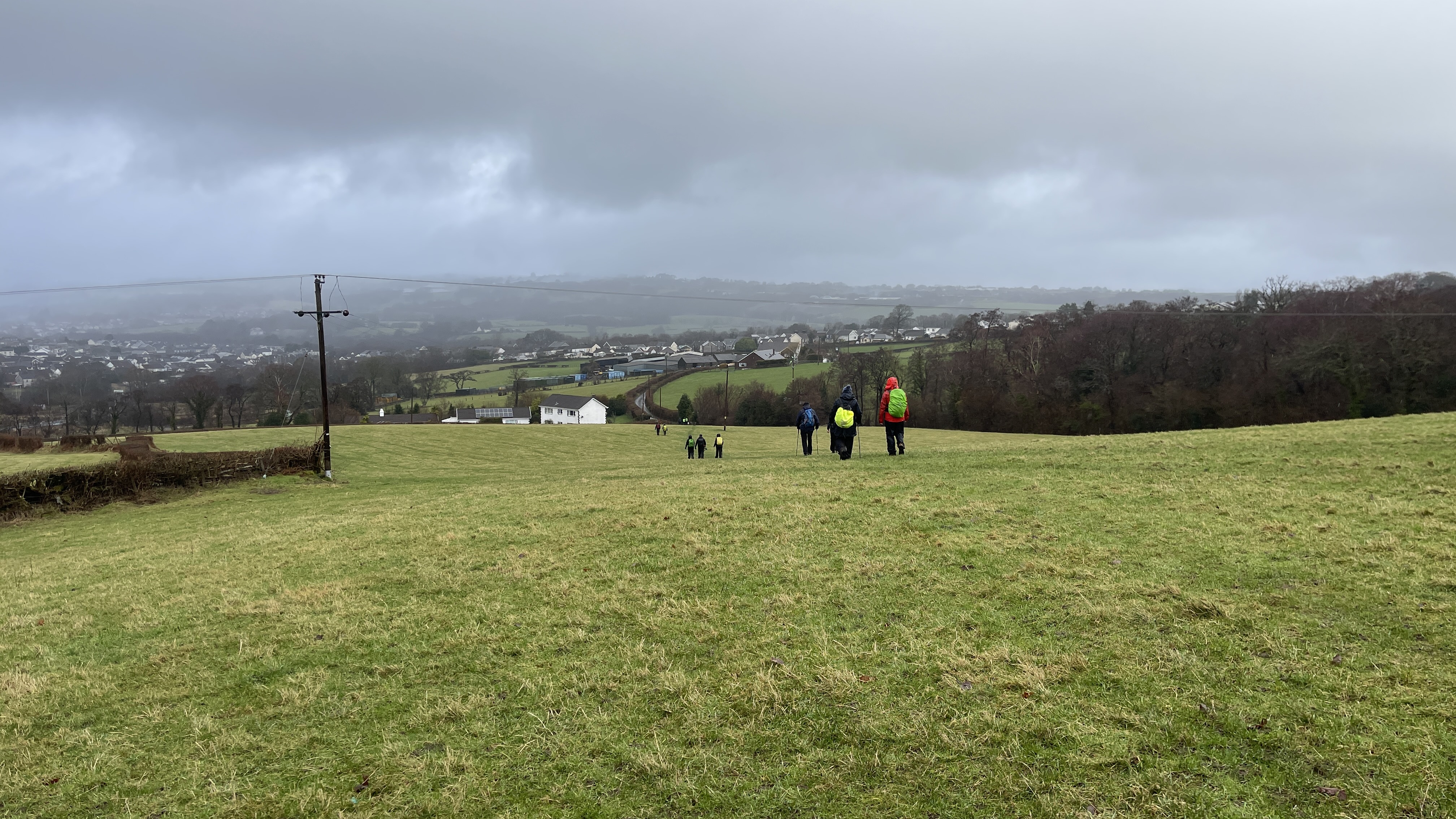 Incessant rain (or what we call “picking” in Merthyr) greeted the 15 well-waterproofed ramblers in Nelson today. Starting from the waterworks, we began by walking towards Quakers Yard. We then turned west and came to the fiddlers elbow roundabout. Crossing the road, we climbed up to the cemetery and followed the tramway to the Railway inn at Nelson, having a quick cuppa on the way. We then turned South past Tae’r-heol then east and picked up the Rhymney valley ridgeway walk back into Nelson. After lunch in the playground, we headed east to Parc Penallta and followed the railway to Quakers Yard then returned to the waterworks. Then the sun came out. Big thanks to visitors Jen and Steve, Peter for the walk and all for the great company.