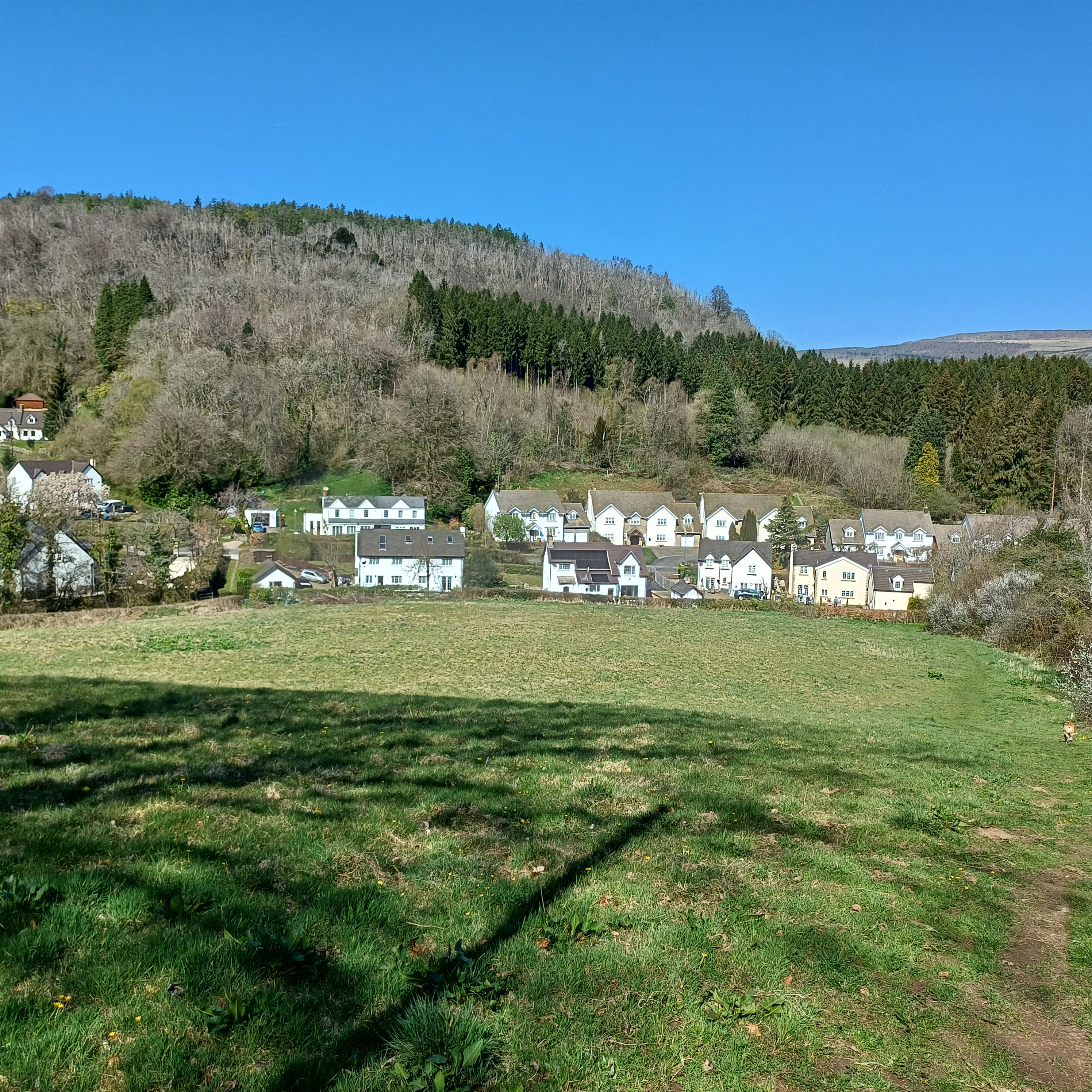 From the Michaelston village hall car park, 13 ramblers, on a bright but chilly morning made our way via the ancient St.Michael's church, past Cefn Mably Farm Park. At the entrance to Cefn Mably park the dog walkers took an alternative route to avoid a partially broken bridge at the entrance to Coed Wern-ddu woods and then onto Ruperra Castle, which was burnt out by fire in 1941 and is still a neglected ruin 80 years later. We then walked through Coed Craig woods where we had a coffee break. As the wind dropped and the sun came out layers were taken off and it was then on through the woods and a descent to Draethen, a very pretty and affluent village. We then entered Cefn Coed Pwll Du woods for a short while before picking up a lane before we reach Machen. We then joined the Rhymney river and have lunch on the river bank before following the river most of he way back to the start. A short drive and a refreshing pint in the The Maenllwyd Inn, Rudry finished off a lovely walk.