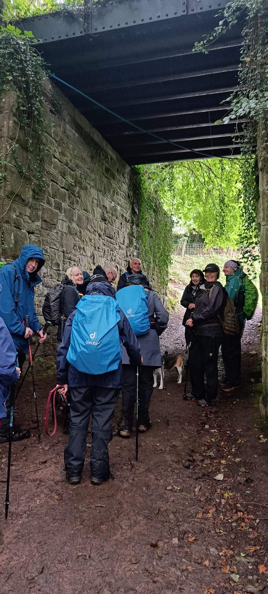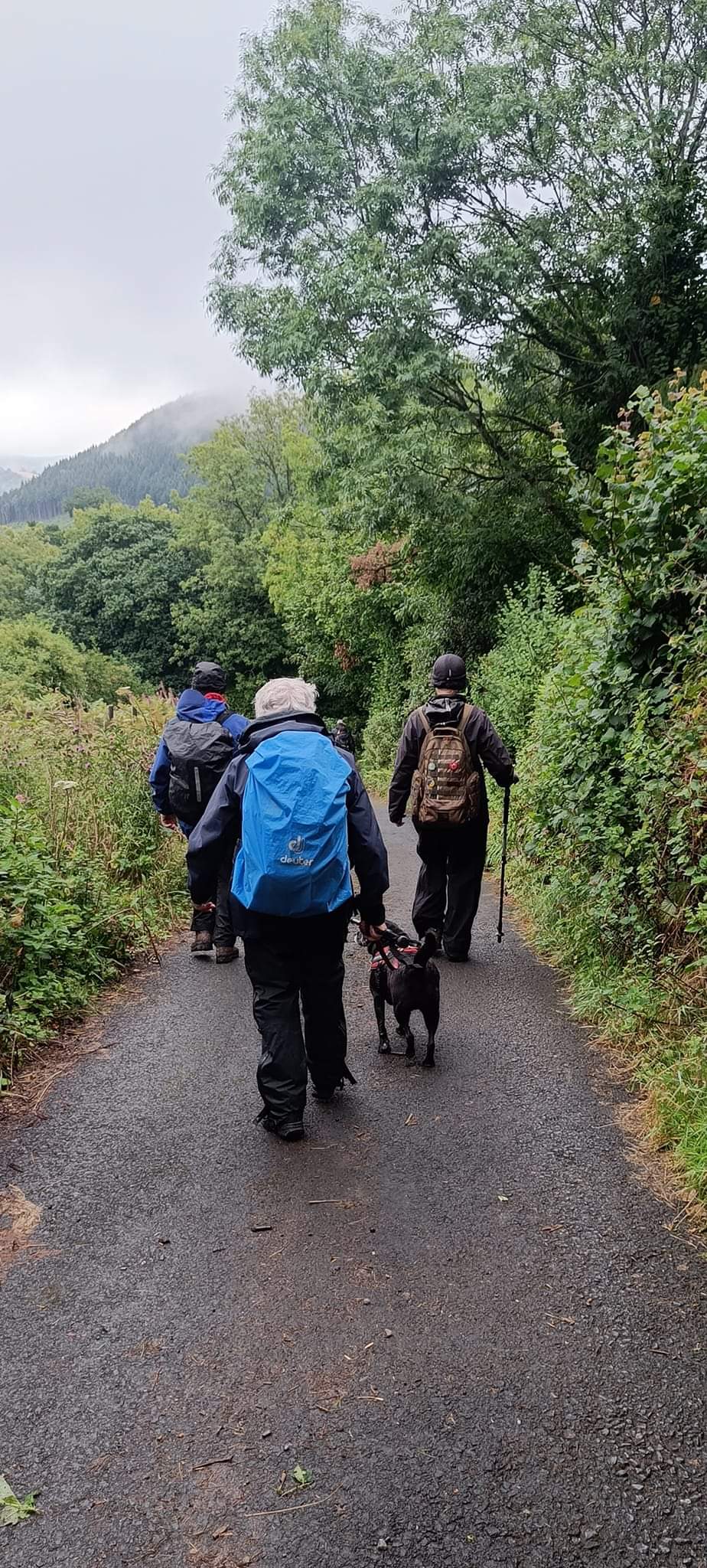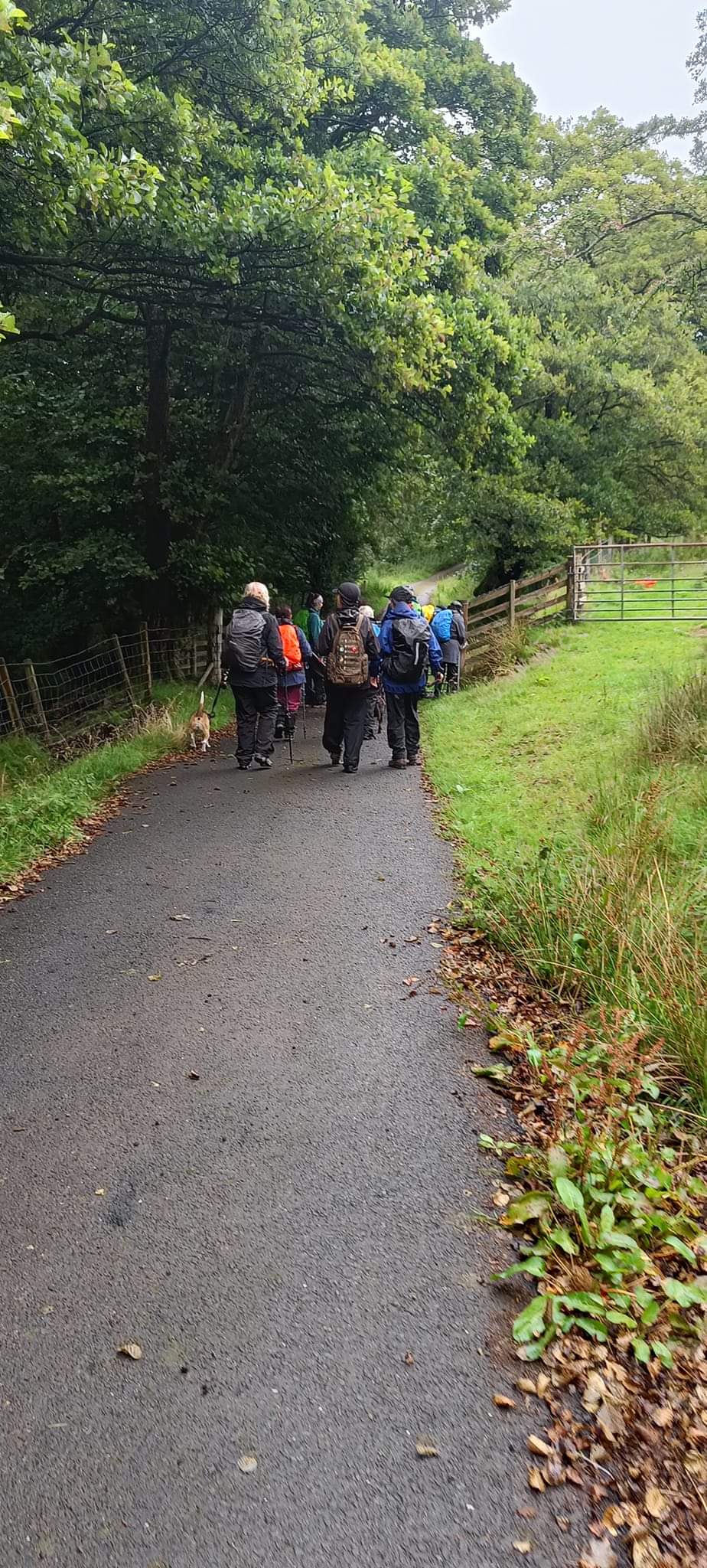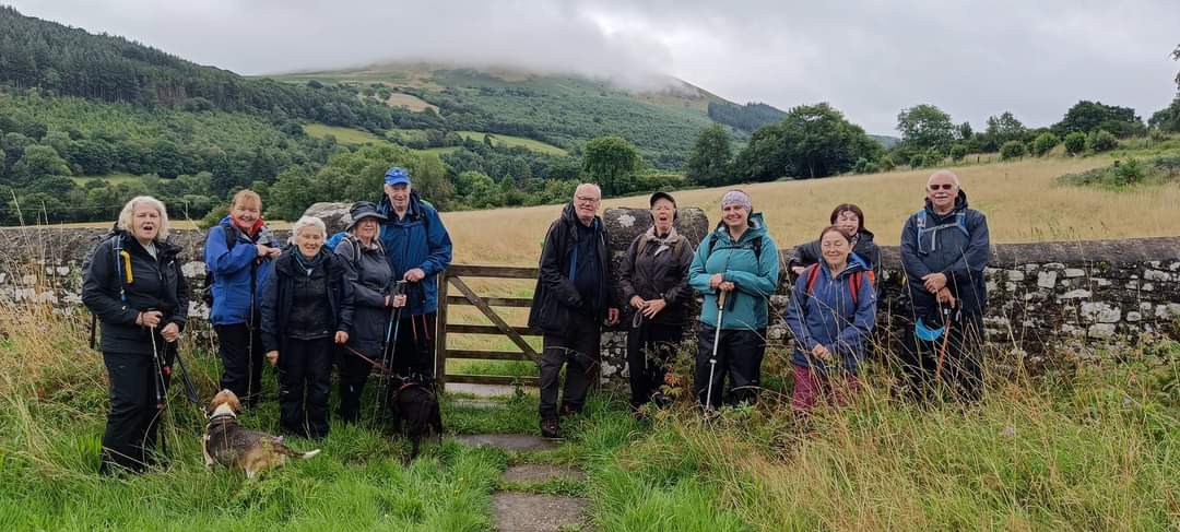 You will be pleased to know we had a very successful walk twelve of us and two dogs braved the weather. Infact it was not as bad as the weather forecast. Up to about 11am there were some heavy showers but after that it was more or less fine, even the sun came out while we had coffee. It was a sheltered walk up through the valley above Tal y Bont and we were walking on for most of the time on proper roads. there was very little traffic infact going up and coming down the valley there was no traffic. We had lunch in the graveyard of Aber chapel where the group phpto was taken. We arrived back at the car park in the village at 2pm. Everyone said they enjoyed the walk, a good time was had by all.