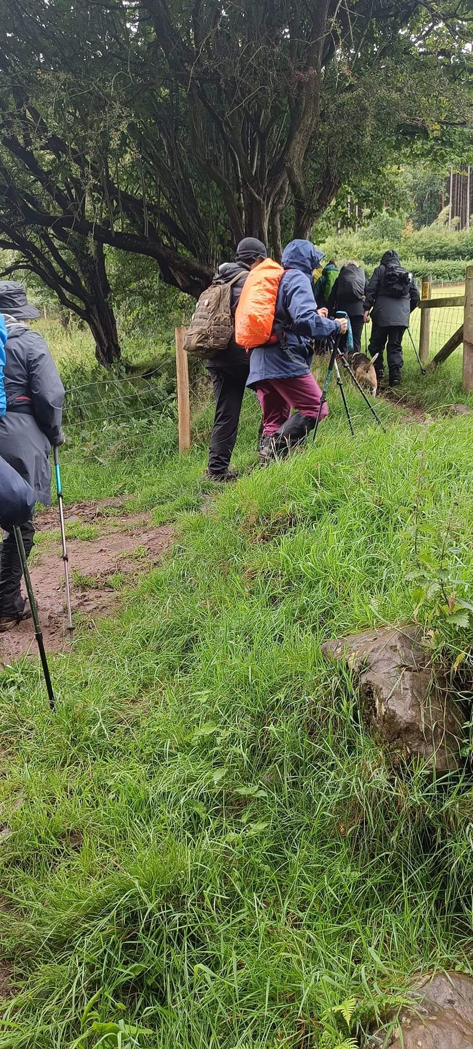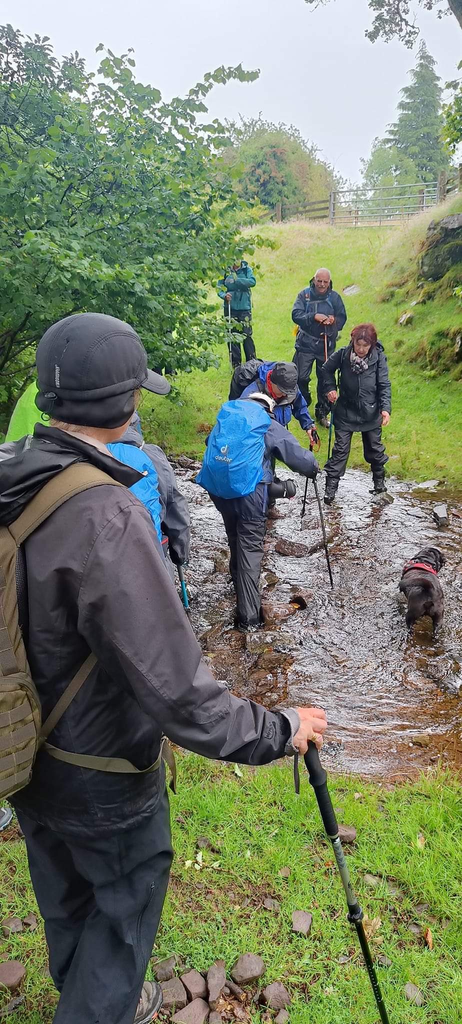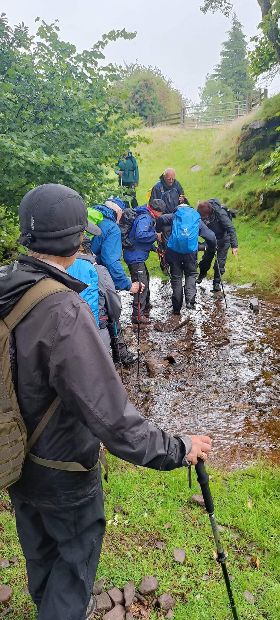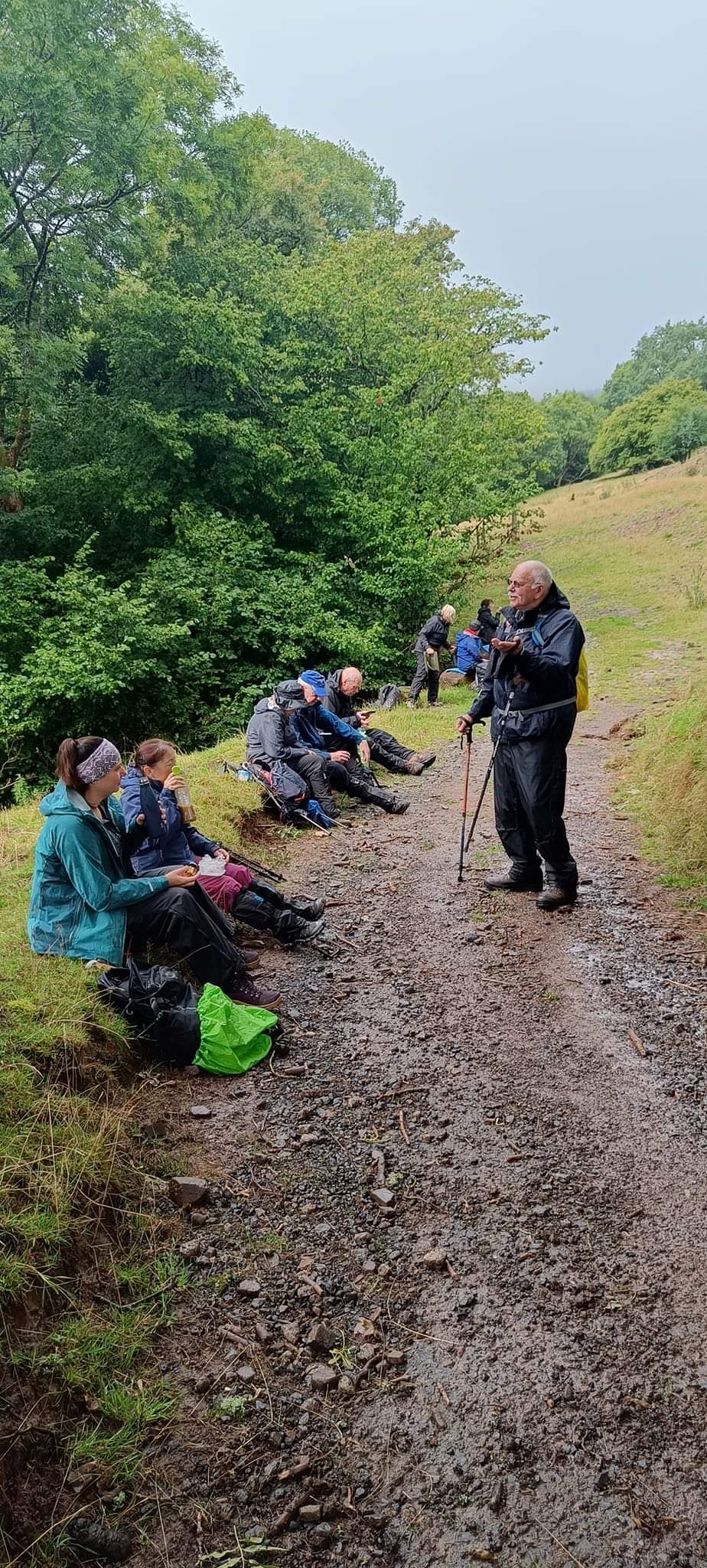 You will be pleased to know we had a very successful walk twelve of us and two dogs braved the weather. Infact it was not as bad as the weather forecast. Up to about 11am there were some heavy showers but after that it was more or less fine, even the sun came out while we had coffee. It was a sheltered walk up through the valley above Tal y Bont and we were walking on for most of the time on proper roads. there was very little traffic infact going up and coming down the valley there was no traffic. We had lunch in the graveyard of Aber chapel where the group phpto was taken. We arrived back at the car park in the village at 2pm. Everyone said they enjoyed the walk, a good time was had by all.