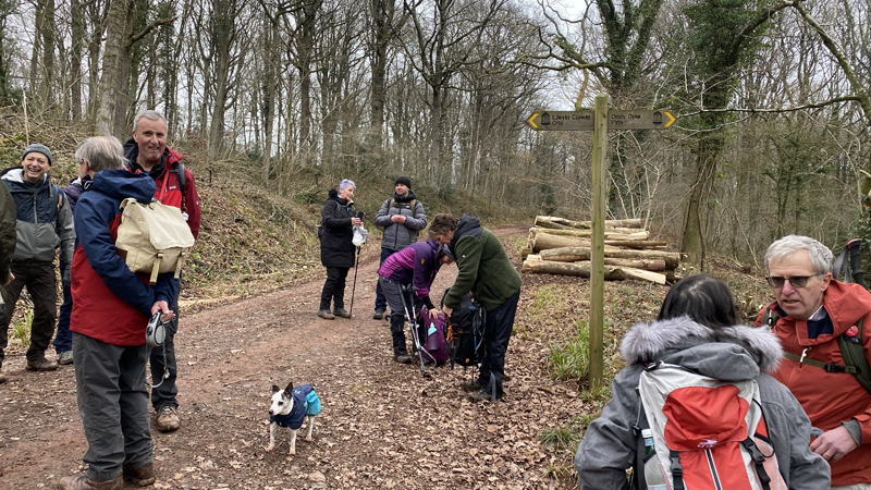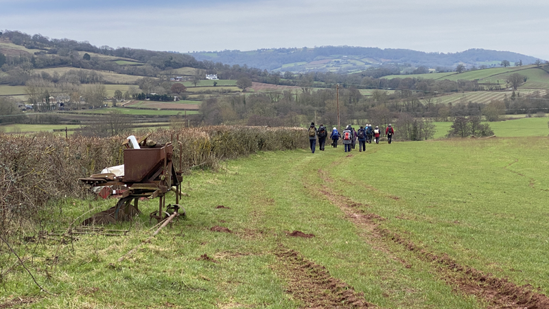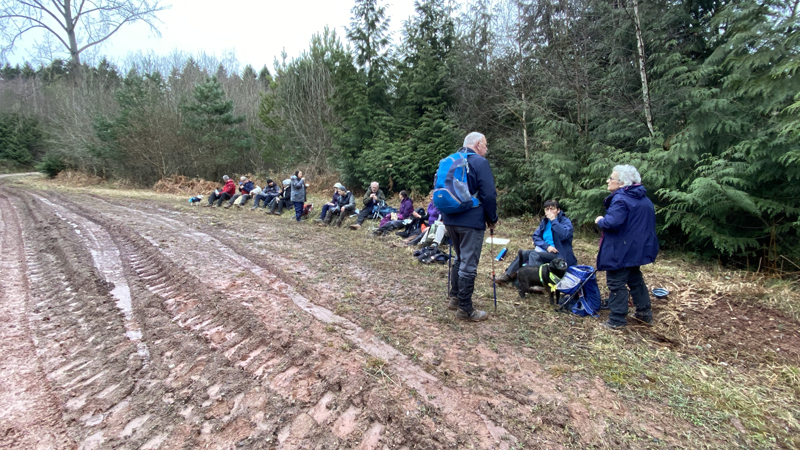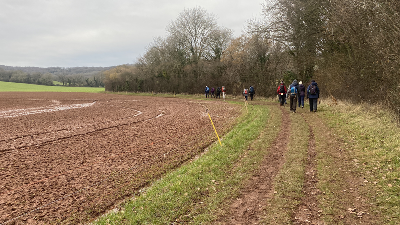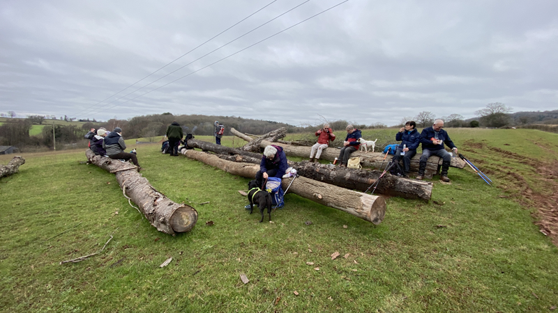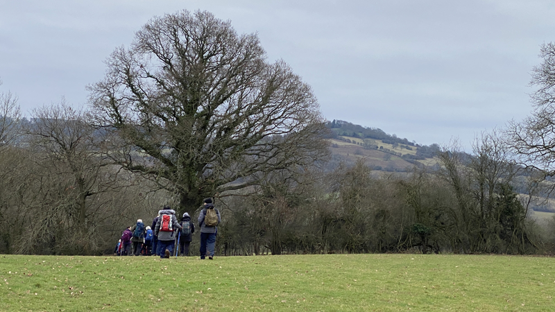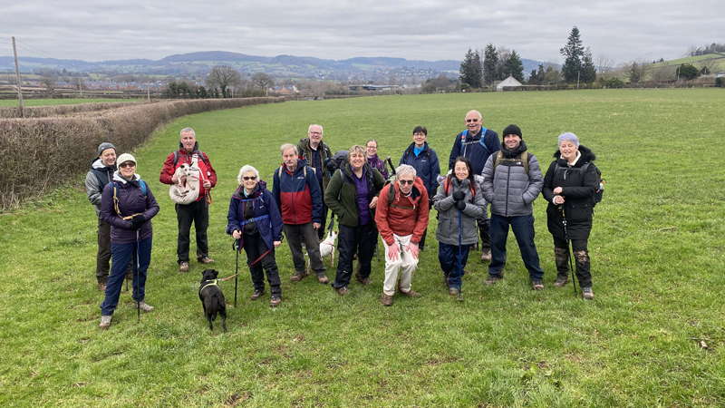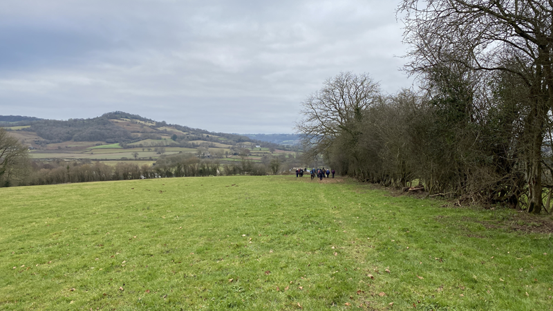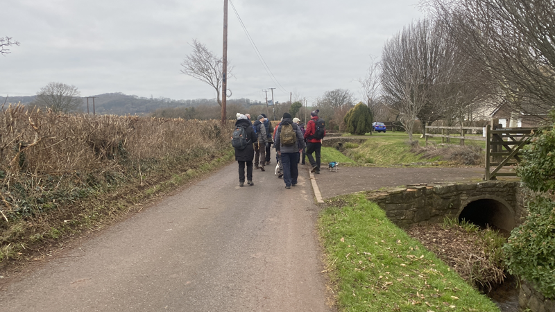 Cold but dry weather greeted the 15 lucky Merthyr Valley Ramblers (including welcome guests Karen, June, Steve and Sennur) on today’s 8.5 walk from Monmouth. We started by walking past the Brook estate to Watery Lane (apparently, the most haunted road in Monmouth) where we joined the Offa’s Dyke path. At White Hill Wood, we headed North and did a loop through Upper Caxton Wood to Great Garrow wood where we had the inevitable cuppa. We then did another loop passing by Calling Wood, through Dingle Wood to Alan’s Little Wood. Woods finished, we then headed South to just before Jingle Street where luncheon and Ferro Rocher’s (we’re going up in the world!) were consumed whilst the hang-gliders circled overhead. It was then down Jingle street (where Derek explained where the name came from) and past the church at Wonastow. Derek then made the wise decision to cross the fields and styles to Monmouth rather than walk the sometimes busy narrow Wonastow road. Many thanks to Derek and Cath for another fine walk and to all for the fabulous company.