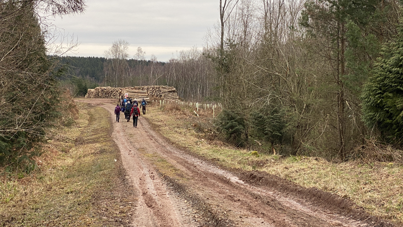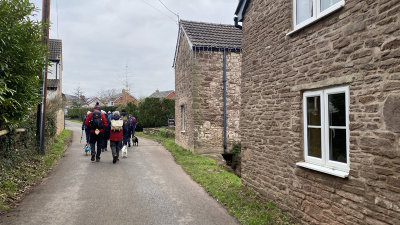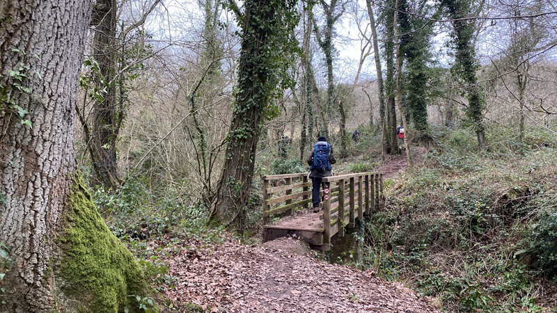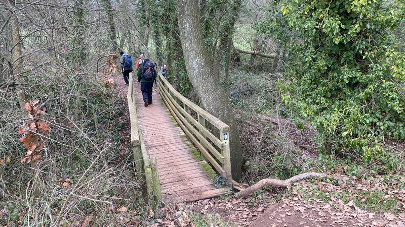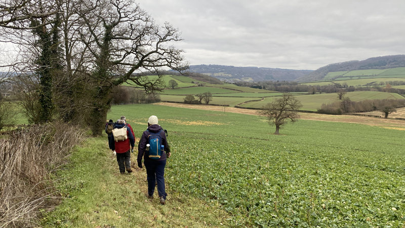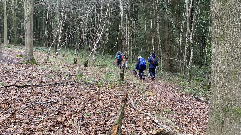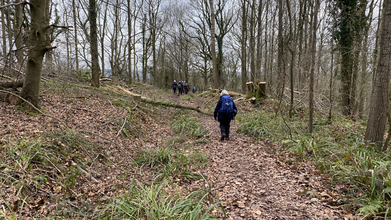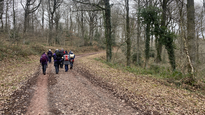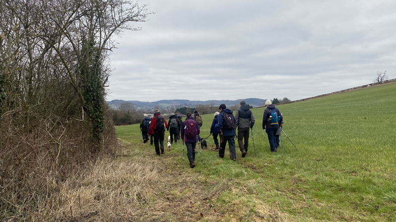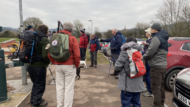 Cold but dry weather greeted the 15 lucky Merthyr Valley Ramblers (including welcome guests Karen, June, Steve and Sennur) on today’s 8.5 walk from Monmouth. We started by walking past the Brook estate to Watery Lane (apparently, the most haunted road in Monmouth) where we joined the Offa’s Dyke path. At White Hill Wood, we headed North and did a loop through Upper Caxton Wood to Great Garrow wood where we had the inevitable cuppa. We then did another loop passing by Calling Wood, through Dingle Wood to Alan’s Little Wood. Woods finished, we then headed South to just before Jingle Street where luncheon and Ferro Rocher’s (we’re going up in the world!) were consumed whilst the hang-gliders circled overhead. It was then down Jingle street (where Derek explained where the name came from) and past the church at Wonastow. Derek then made the wise decision to cross the fields and styles to Monmouth rather than walk the sometimes busy narrow Wonastow road. Many thanks to Derek and Cath for another fine walk and to all for the fabulous company.