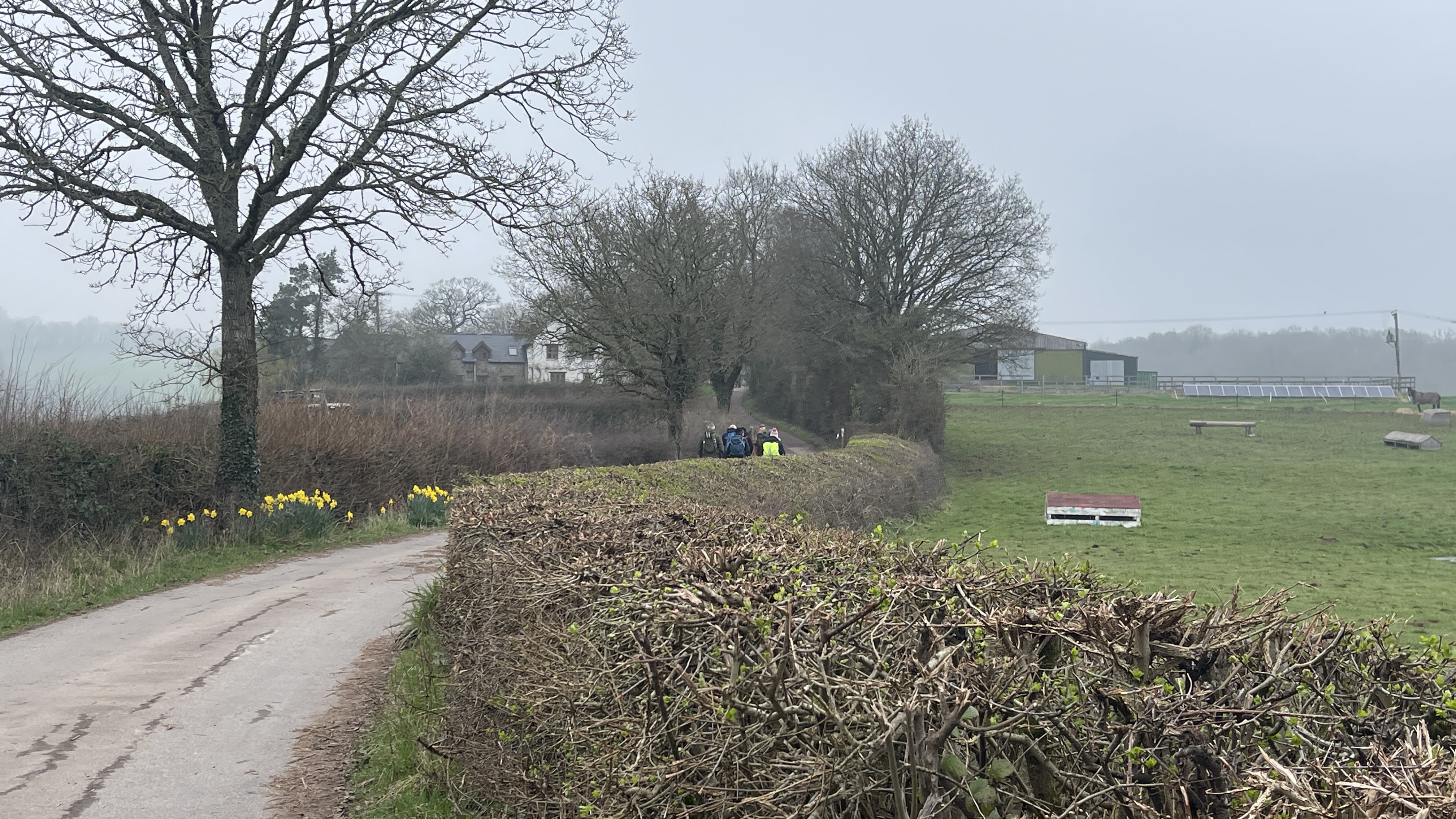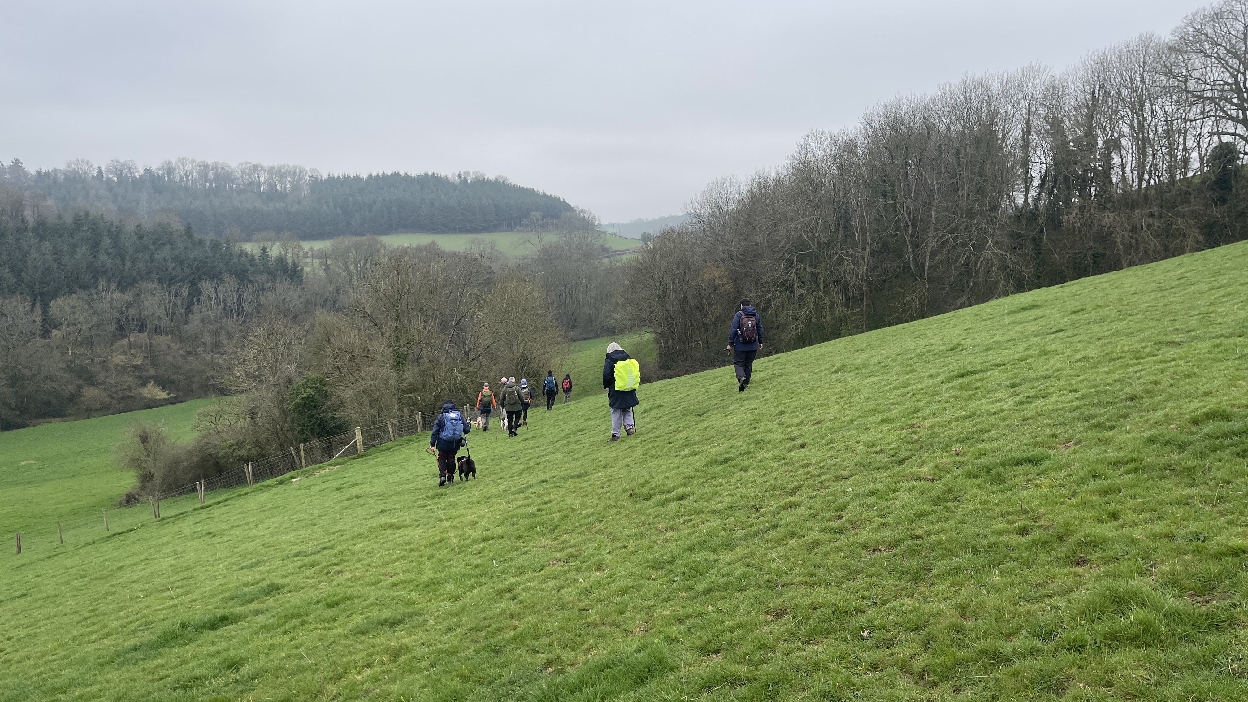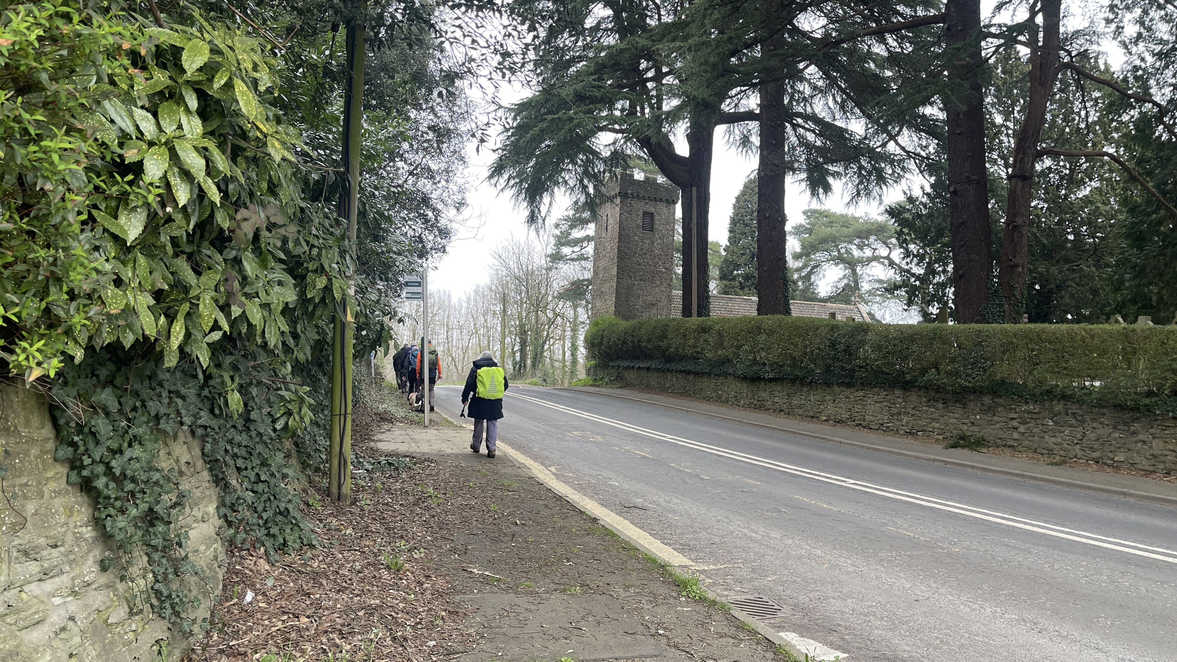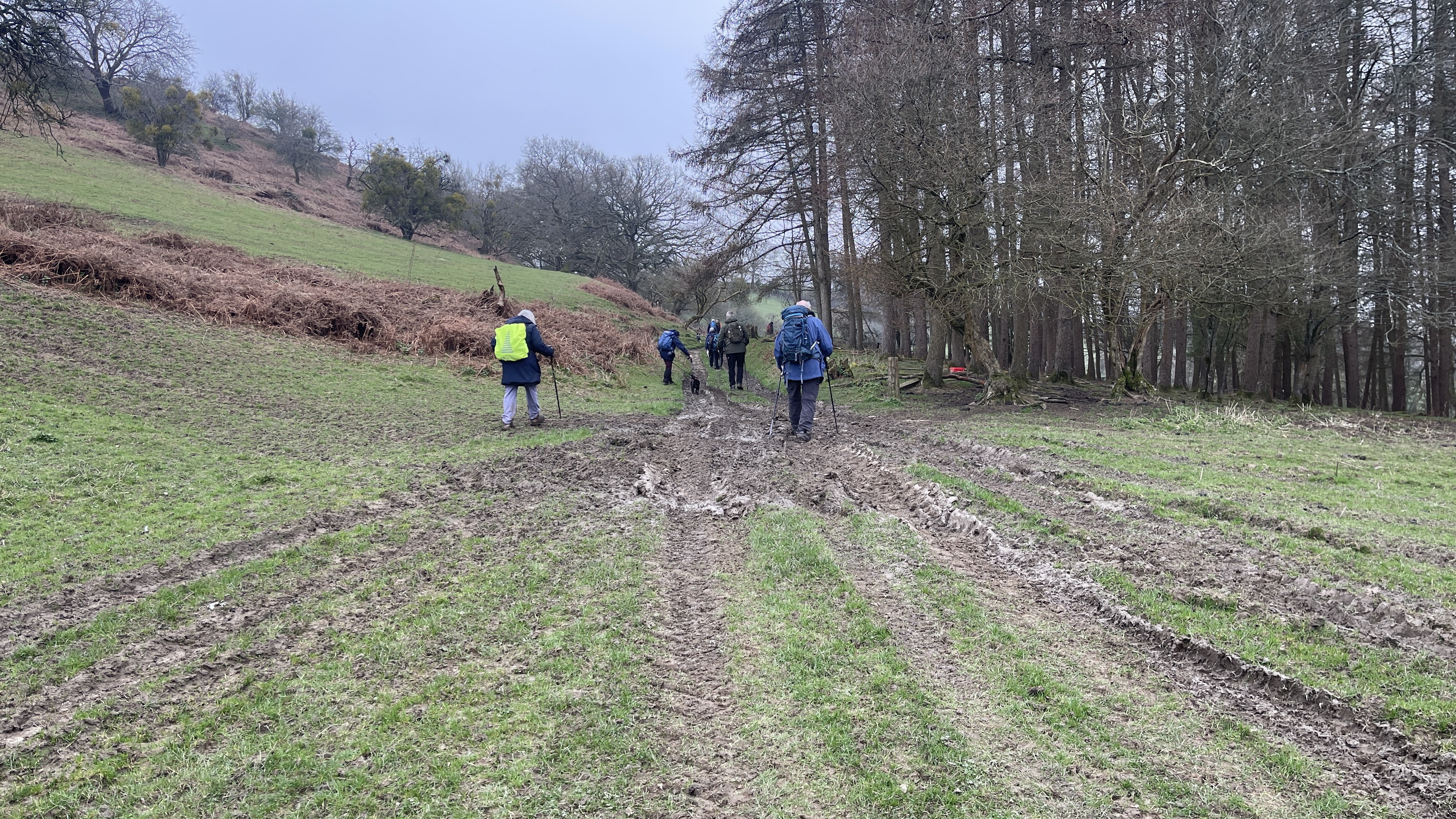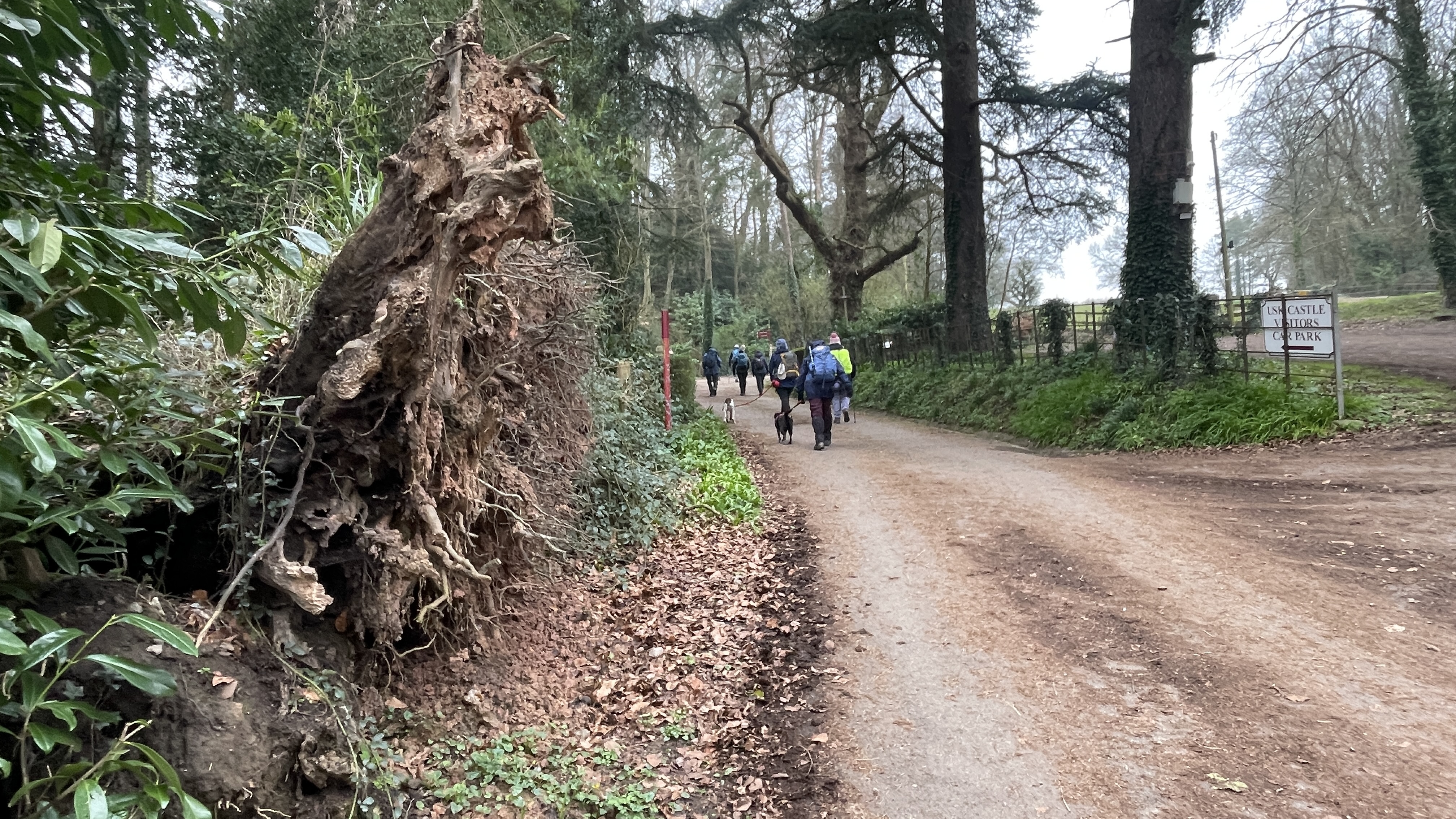 Yesterday, 11 of us enjoyed a lovely day out on Derek’s “Usk Figure of Eight Walk”. Starting from the attractive town of Usk, we set off from a place with a fascinating past. Usk has roots going all the way back to Roman times, later becoming an important Norman market town, and it still has that wonderful blend of history, charm and countryside that makes it such a great place to begin a walk. We began by heading northwards, soon stopping to admire the impressive gates of Usk Castle. The castle dates back to the Norman period, with the first castle at Usk likely built in the 1070s, and much of the later stone stronghold developed over the following centuries. It was also the setting for one of the darker tales in local history, as prisoners captured after the nearby Battle of Pwll Melyn in 1405 were reportedly executed near the castle. Continuing on, we passed the area associated with the Battle of Pwll Melyn, fought on 5 May 1405 during Owain Glyndŵr’s revolt. The battle took place just north of Usk Castle and ended in a significant defeat for the Welsh forces led by Glyndŵr’s son, Gruffydd. It was a key moment in the uprising and one that still casts a long historical shadow over the landscape around Usk today. From there we made our way through Lady Hill Wood and Park Wood, where Derek had found us an absolutely first-class tea break stop — a pheasant shooters’ shelter complete with plenty of picnic benches. It was a perfect place to pause, chat and refuel. We then headed east, following the Cayo Brook, passing Cwmcayo Farm, before reaching the banks of the River Usk itself. Lunch was enjoyed there with yet more benches on hand, always appreciated, and with a lovely backdrop of the river and Usk Bridge to complete the scene. The weather stayed grey and misty throughout, which meant that the fantastic views from the higher ground were hidden from us this time. Even so, the rain held off all day, and that felt like a real bonus. After lunch we set off on the second loop of the figure of eight, heading south-west as we skirted around and then through Pan-y-cwcw Wood, before turning north again and making our way back into Usk and to the waiting cars. All in all, it was a great day in good company, with a mix of woodland, riverbank walking, local history and plenty of chat along the way. A big thank you to Derek for leading the walk, and to everyone who came along. We hope this gives those who could not make it a flavour of the day and perhaps encourages a few new faces to come and join us on a future walk too. Keep an eye out for details of next Saturday’s walk, which will be published soon.