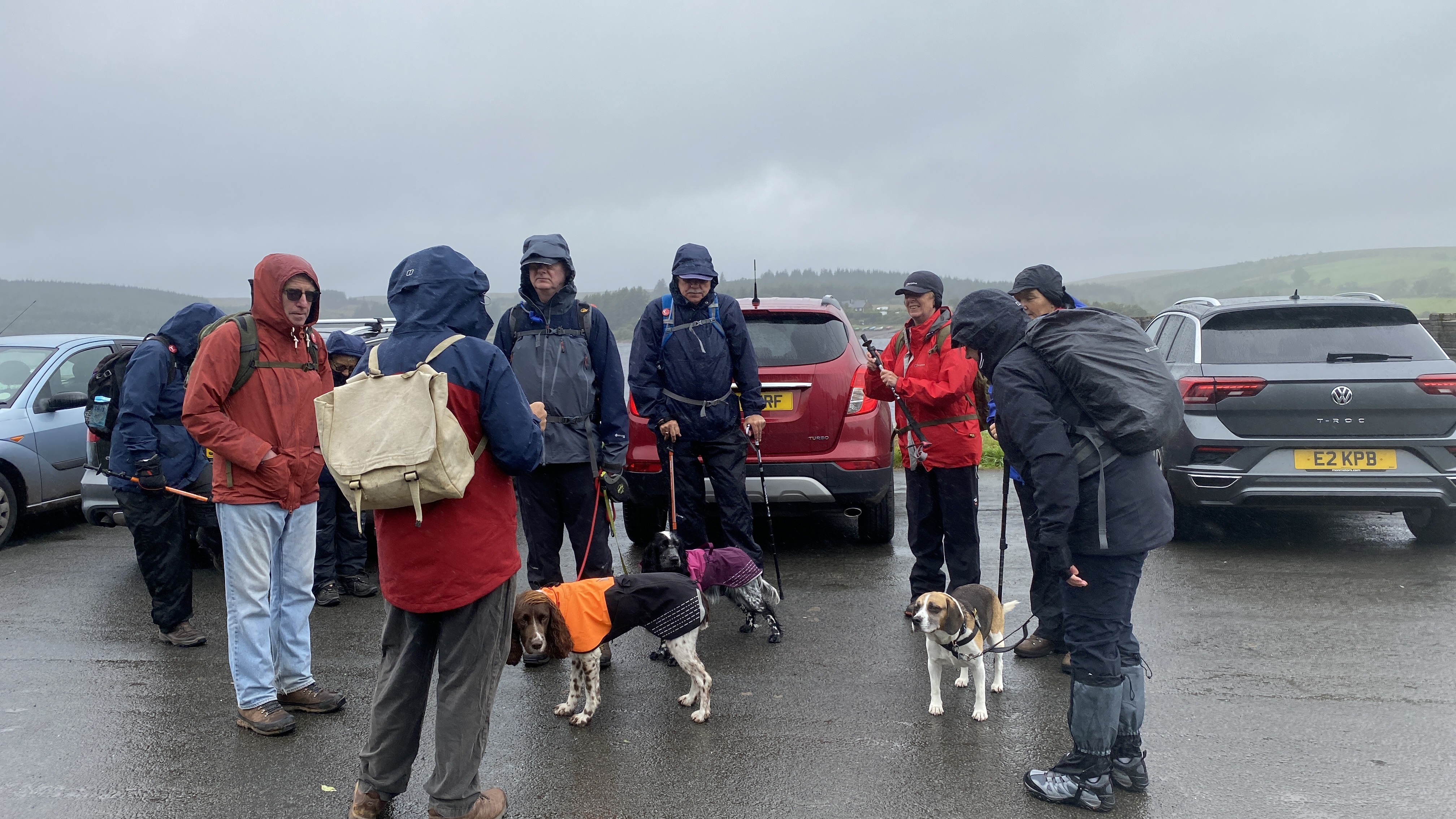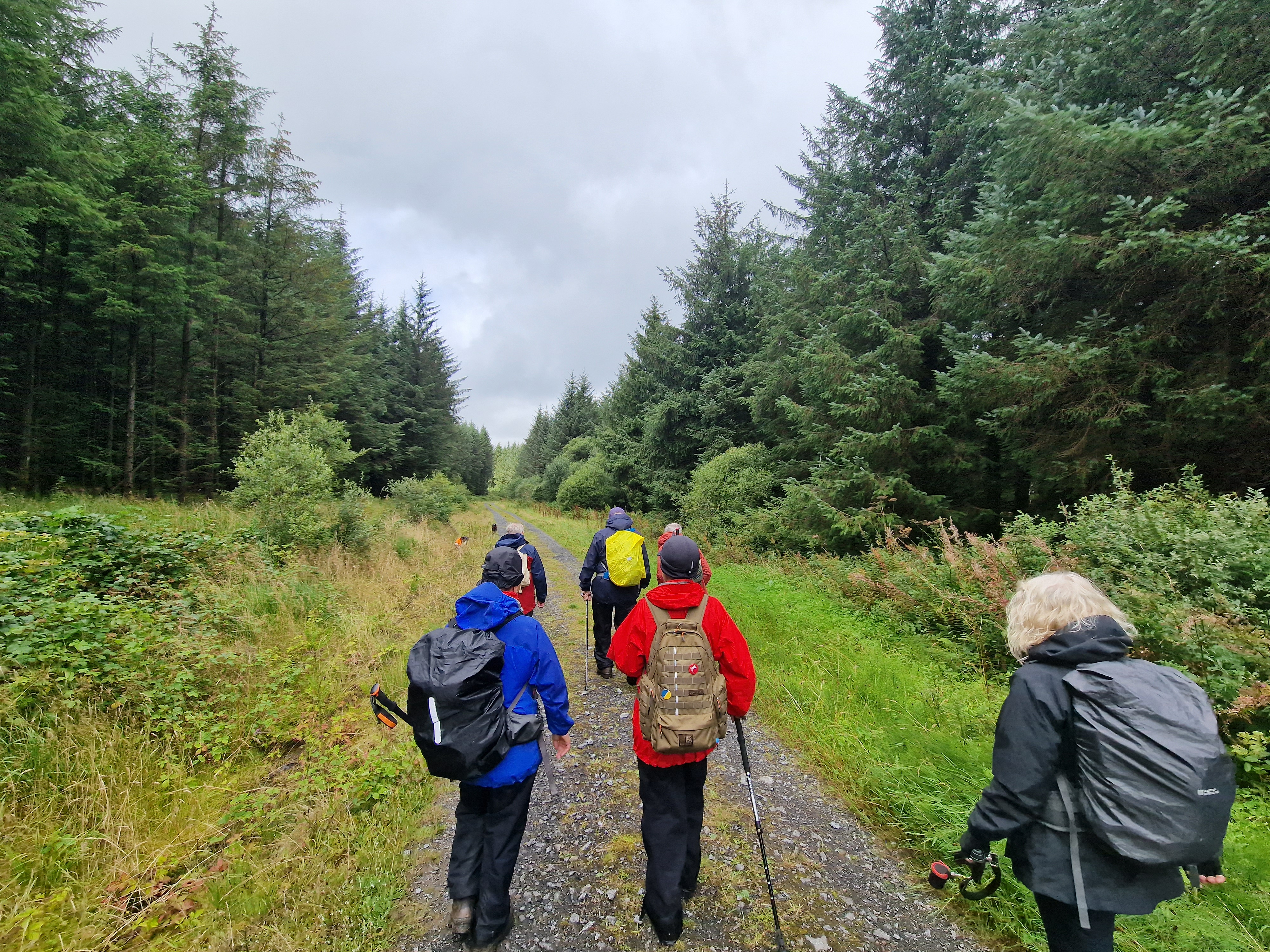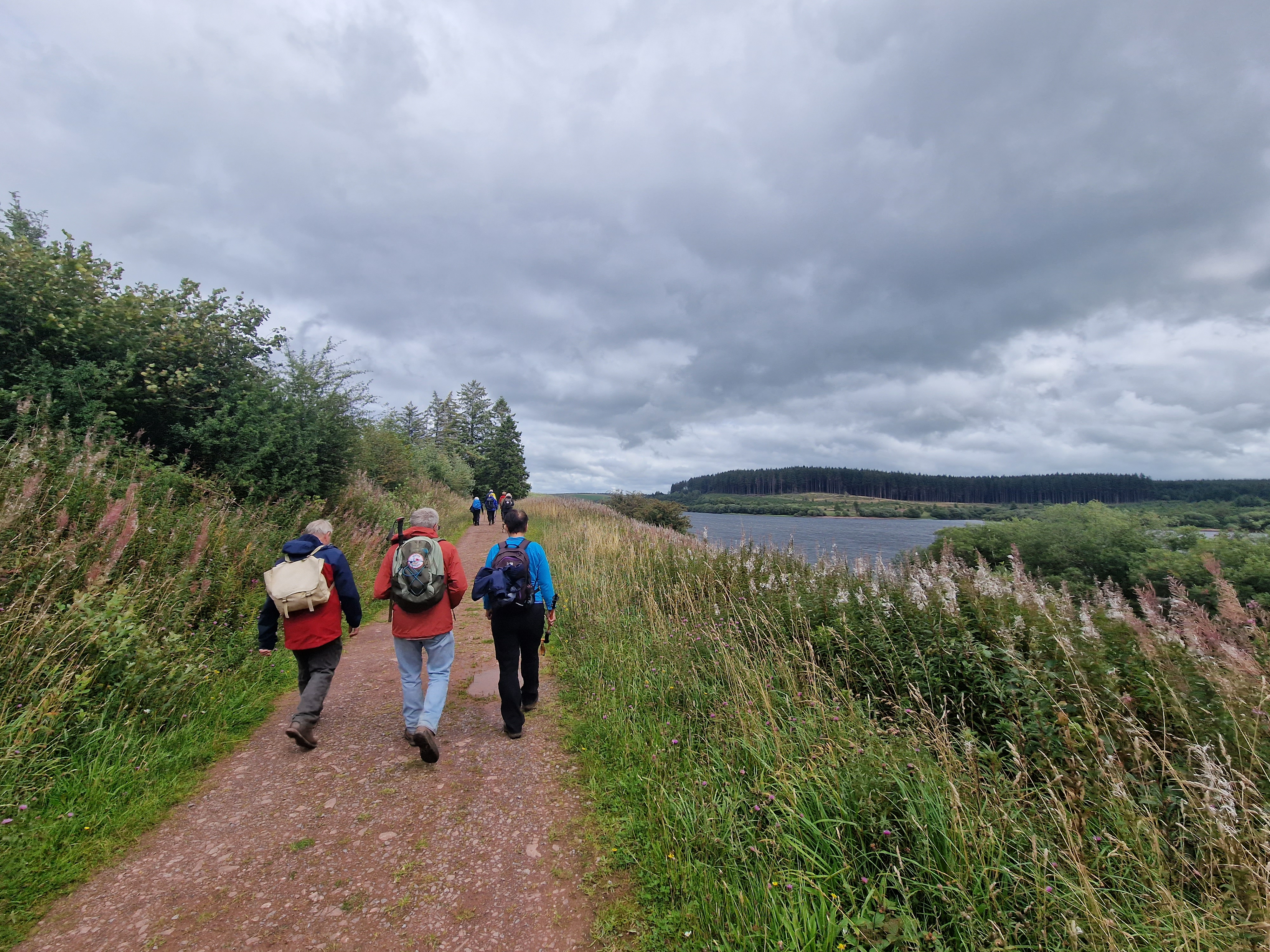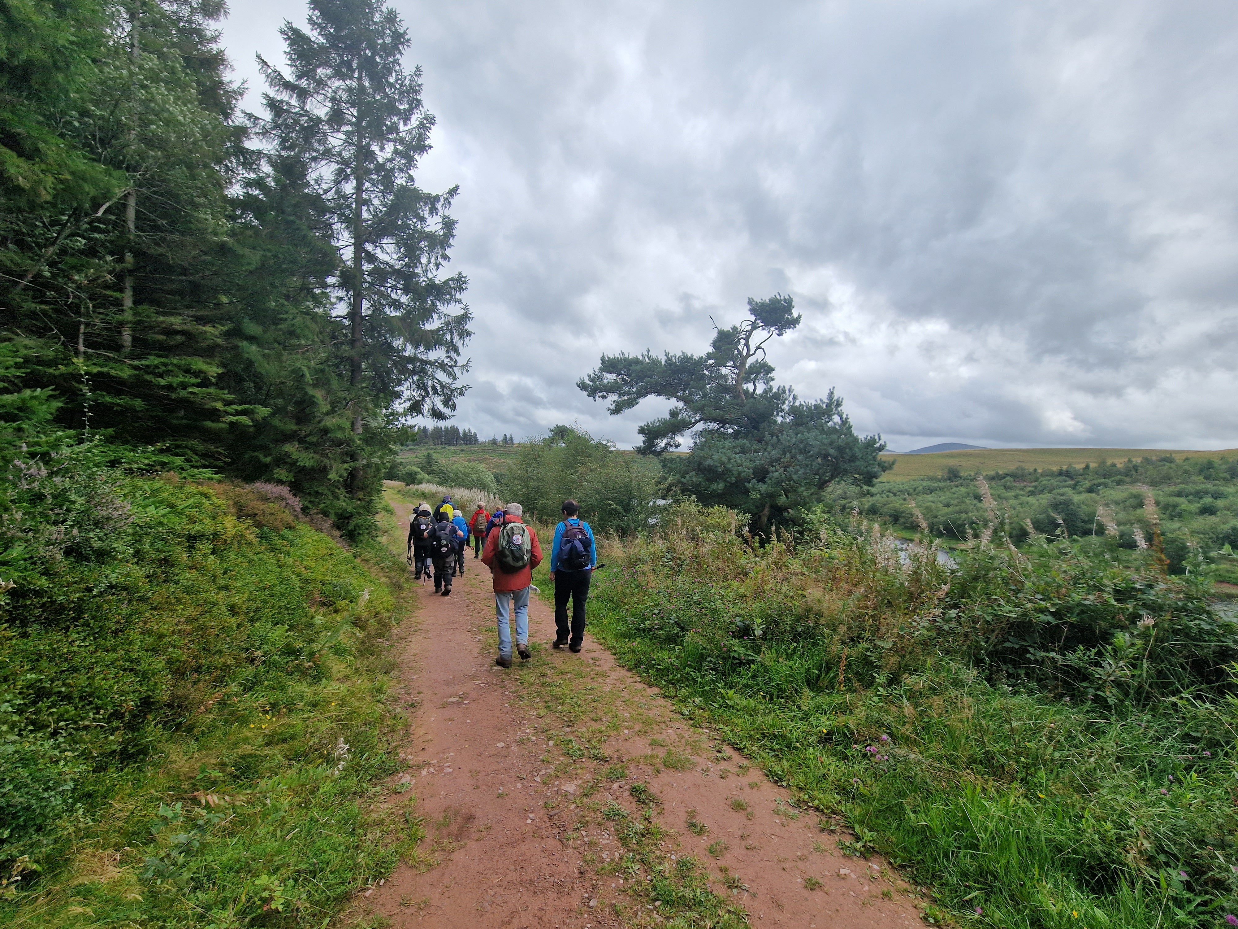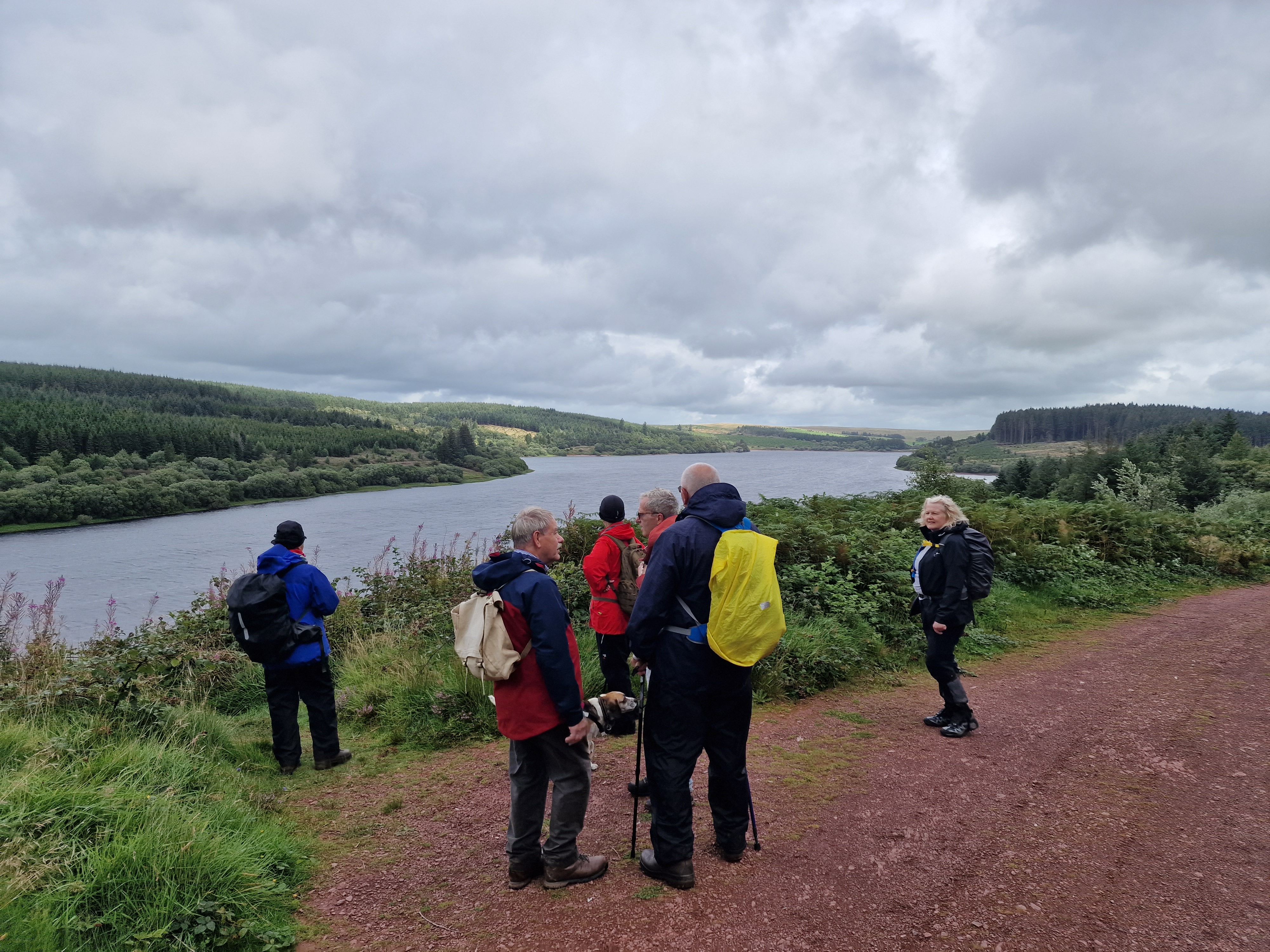 10 Merthyr Valley Ramblers braved the elements today for Andrew Pyne first walk lead. Although we started in damp conditions, we were dry and warm for most of the walk. Setting off from the Usk Reservoir dam we made our way to Mynydd Wysg and the Glasfynydd Forest, I quickly dispelled the myth that I could walk on water whilst navigating a very boggy field and ending up on my knees ankle deep in the wet stuff! We made our way to the eastern edge of the reservoir and forest where we had our lunch break before following the forest path alongside the reservoir with views back to the Black Mountain. Thanks to Andrew Pyne for a very succesful first walk lead, to all that attended particulary Alan Hancox who has been missed in recent weeks!