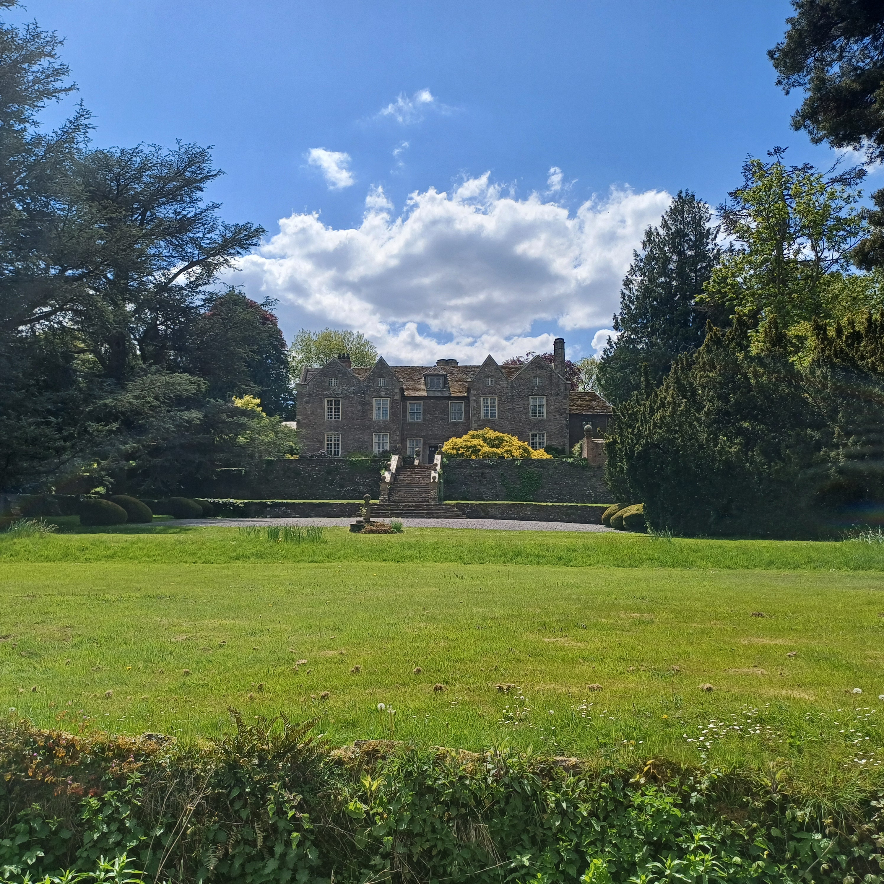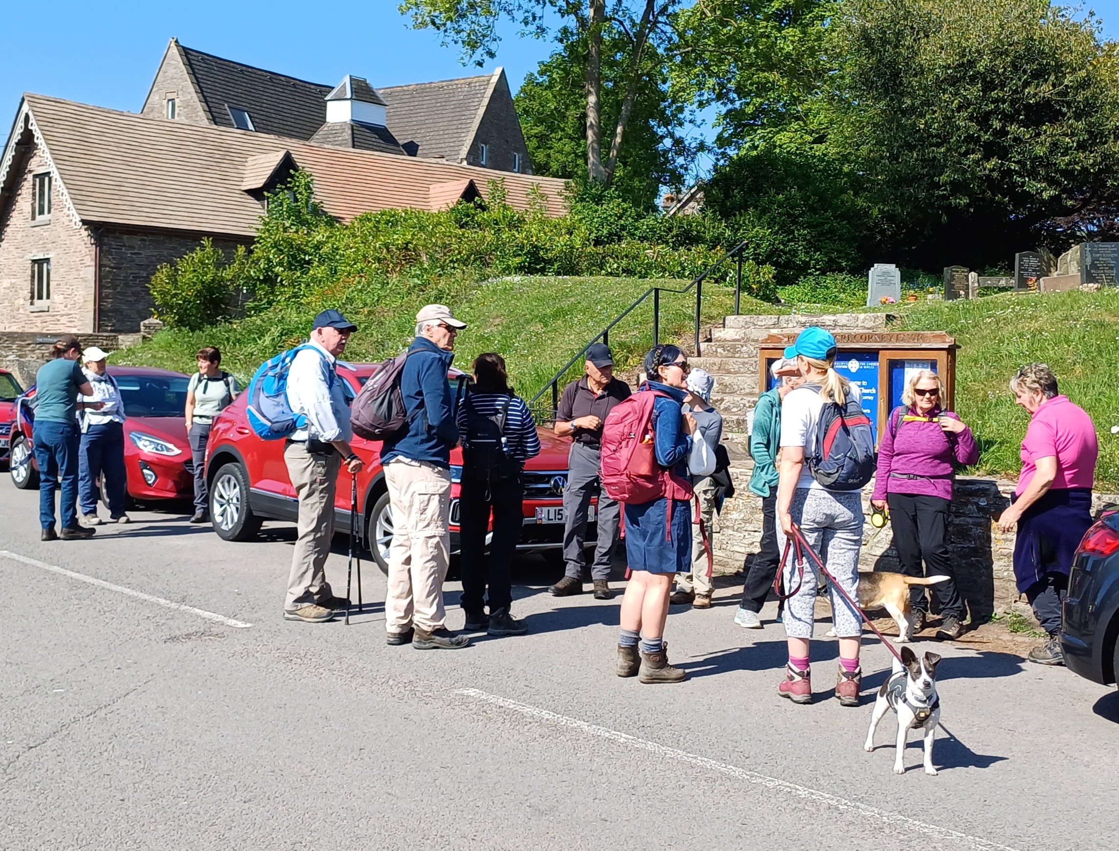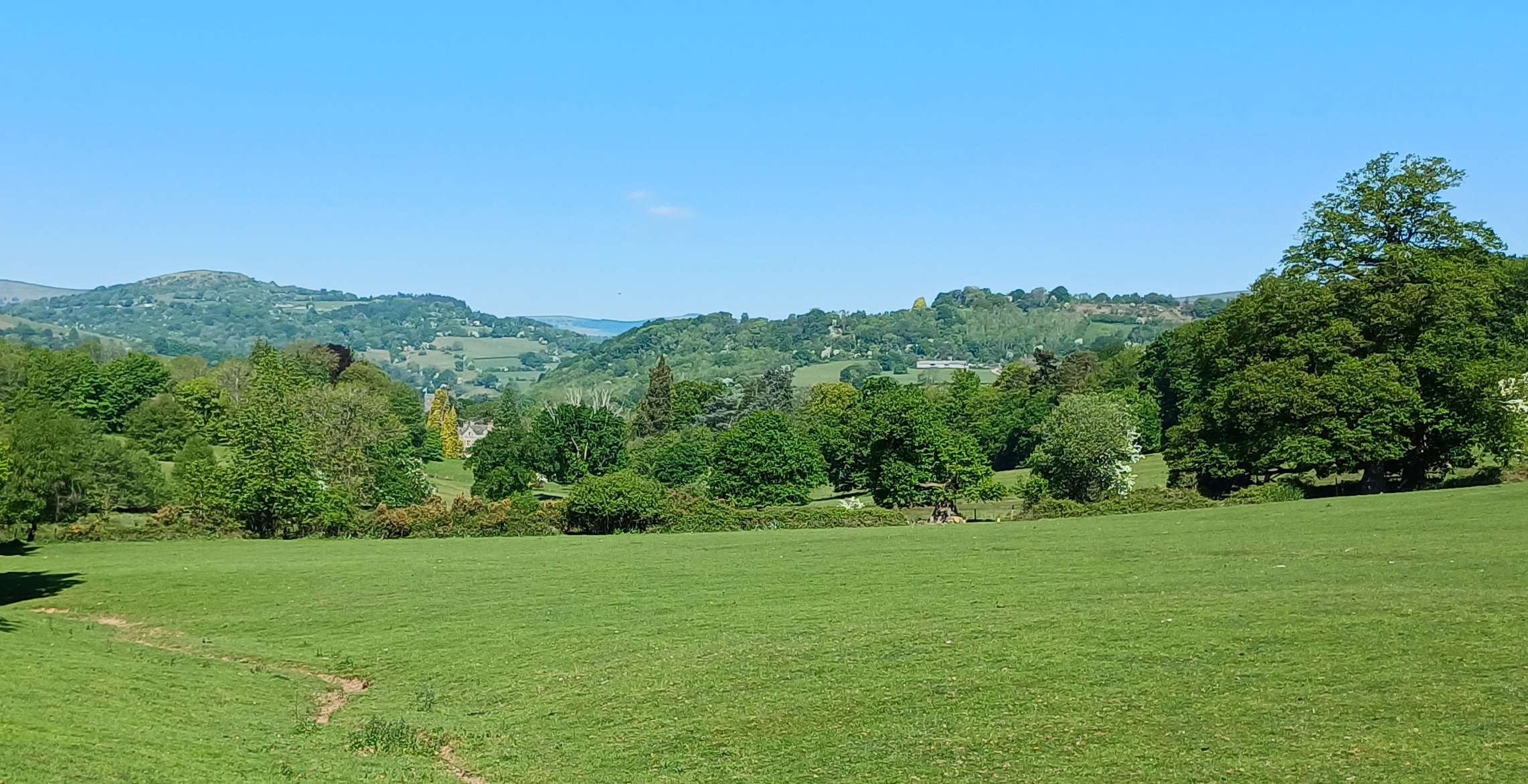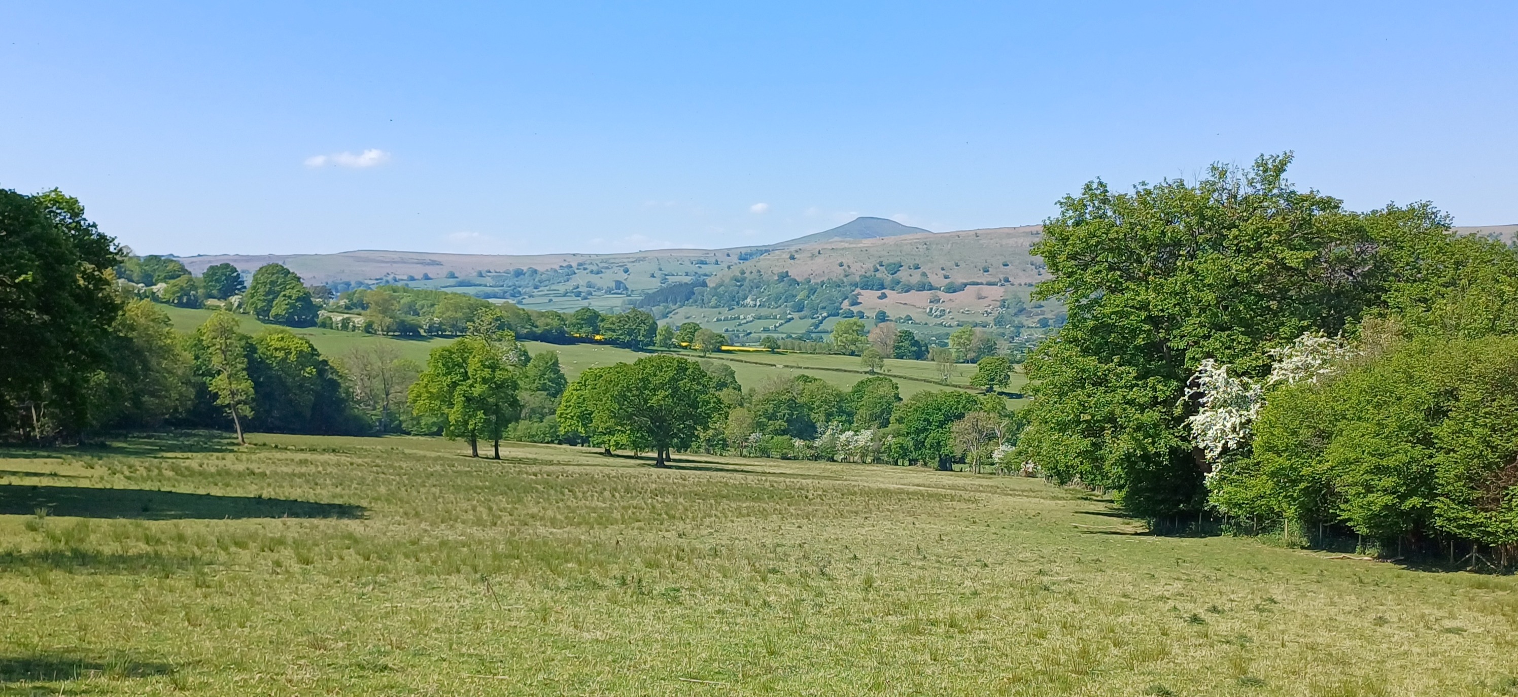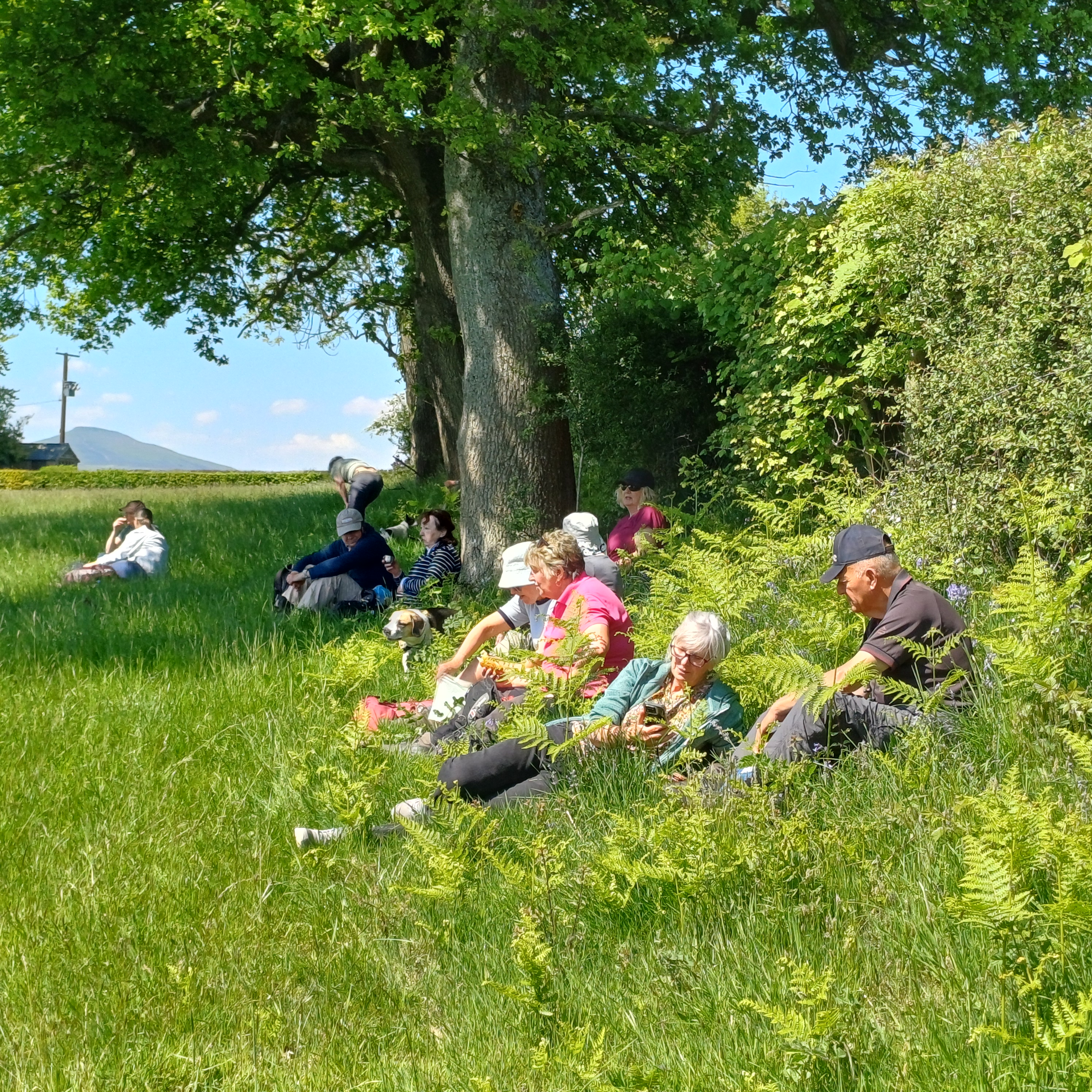 A lovely 7 mile ramble around Skirrid in The Black Mountains on a beautiful sunny day. Only Rob and Morfydd could start a walk with 14 ramblers and end up with 24!! Well done Morfydd and you weren't even on commission for persuading them to visit Llanvihangel Court The walk took us across the A465; it was a clear stretch of road, and we were able to cross easily. We took the narrow road past Llanvihangel Court, which we viewed on our return; it was a very old manor house still occupied today. We walked through the beautiful county of Monmouthshire, through fields and pasture land. There was a slight incline on the first part of the walk up to a lane that ran under the Skirrid. The walk took us down through fields and a wooded area that had a stream and two pretty bridges. We were in the heart of the Black Mountains, and the views were really lovely. The walk was clearly marked in the usual way. There were only two stiles; the rest had been replaced by gates. When we returned to the village, refreshments were enjoyed in the oldest pub in Wales, the Skirrid.