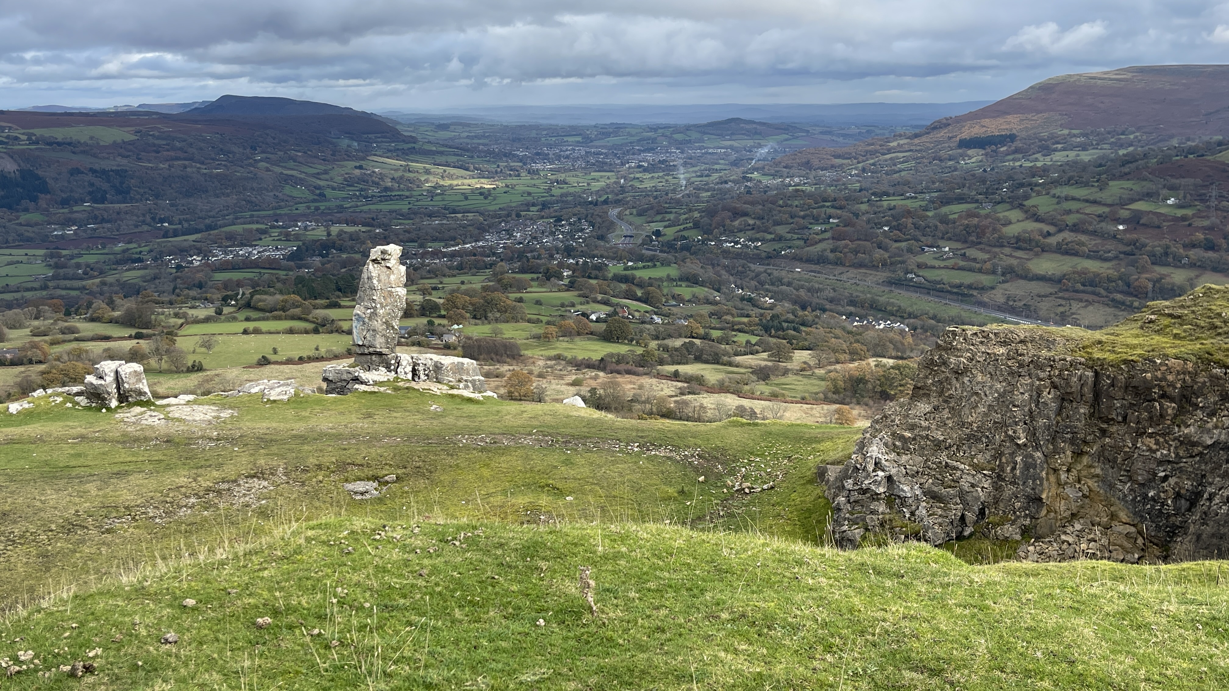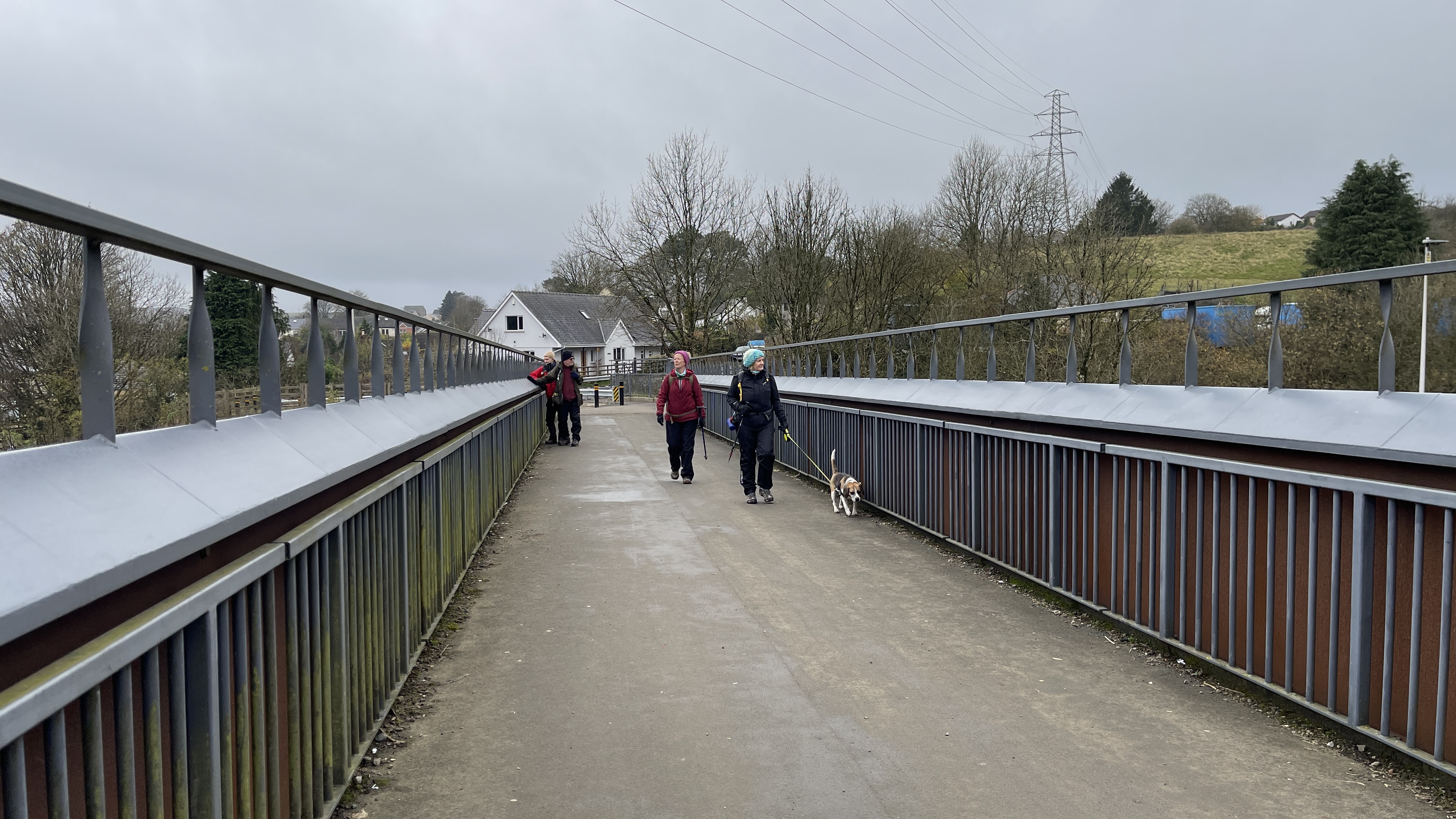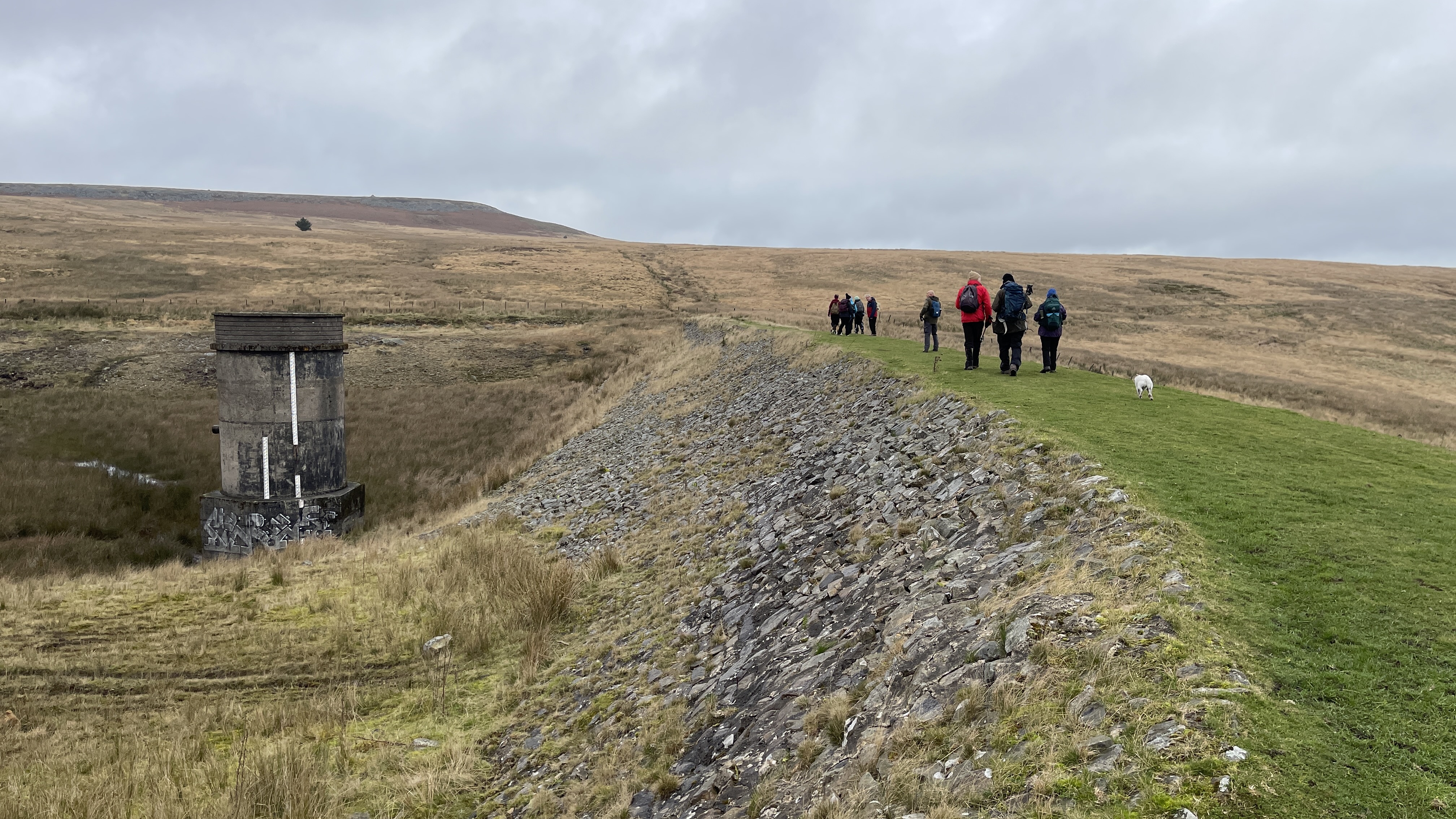 Ten friends old and new gathered together in Brynmawr’s museum car park ready for today's Merthyr Valley Ramblers 7.5 mile walking historical trails ramble . Although it was “damping”, rain wasn't forecast until the afternoon and so it proved to be - and not too cold either. Heading out from the suburbs of Brynmawr, we crossed over the A465 using the new footbridge, crossed over Nant Melyn then turned north and climbed steadily to the trig point at Twr Pen-cyrn where we had our first cuppa. We then turned east along the flatlands and tramways to meet up with our old friends the lonely shepherd and his dog where we shared lunch. It was then southward down to the road and past the donkeys at Ty-Yn-y-coed where we turned west along track and road back to the start. Exceptional views and a great crowd made Rob and Morfydd's walk perfect - thank you all.