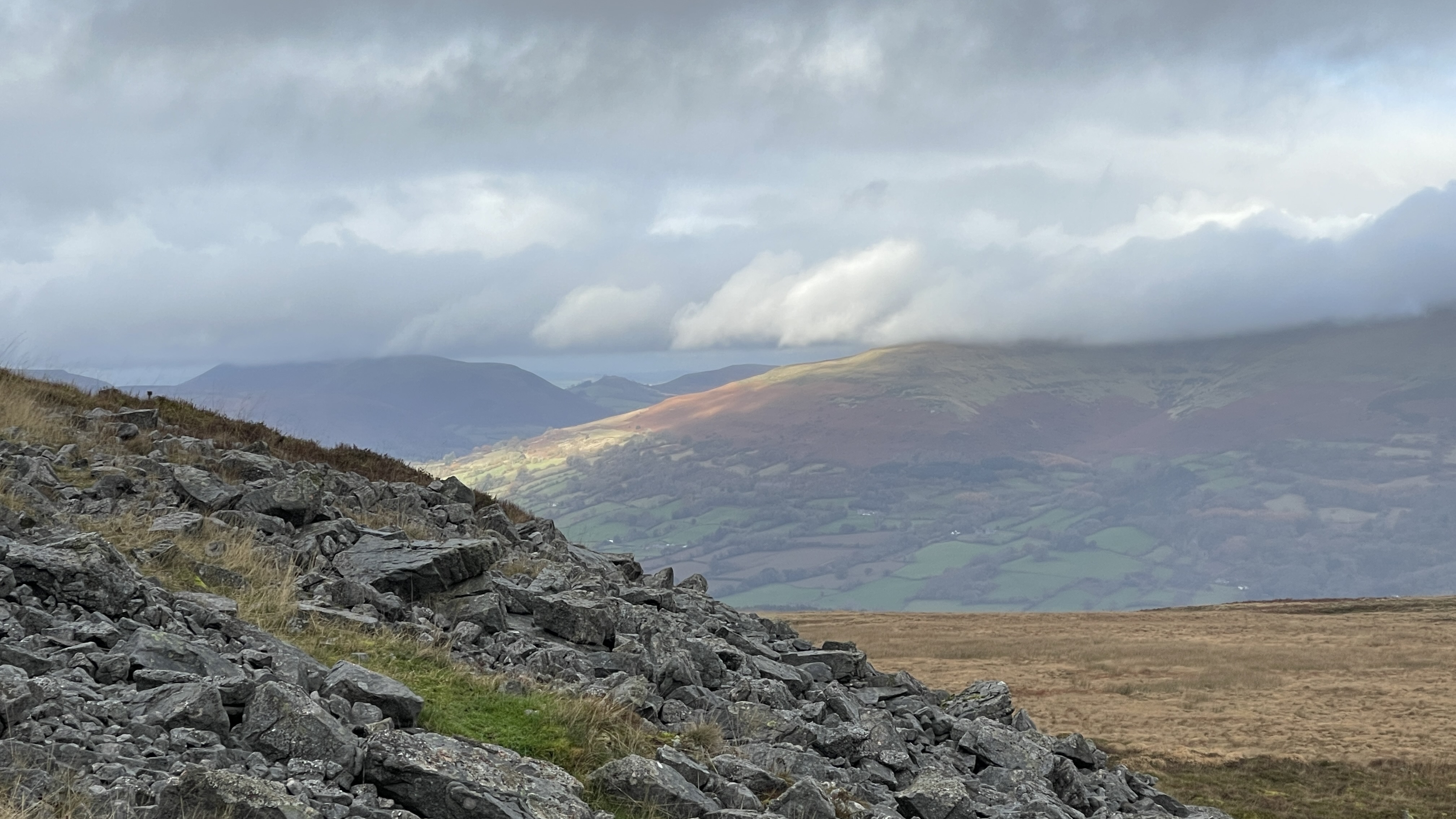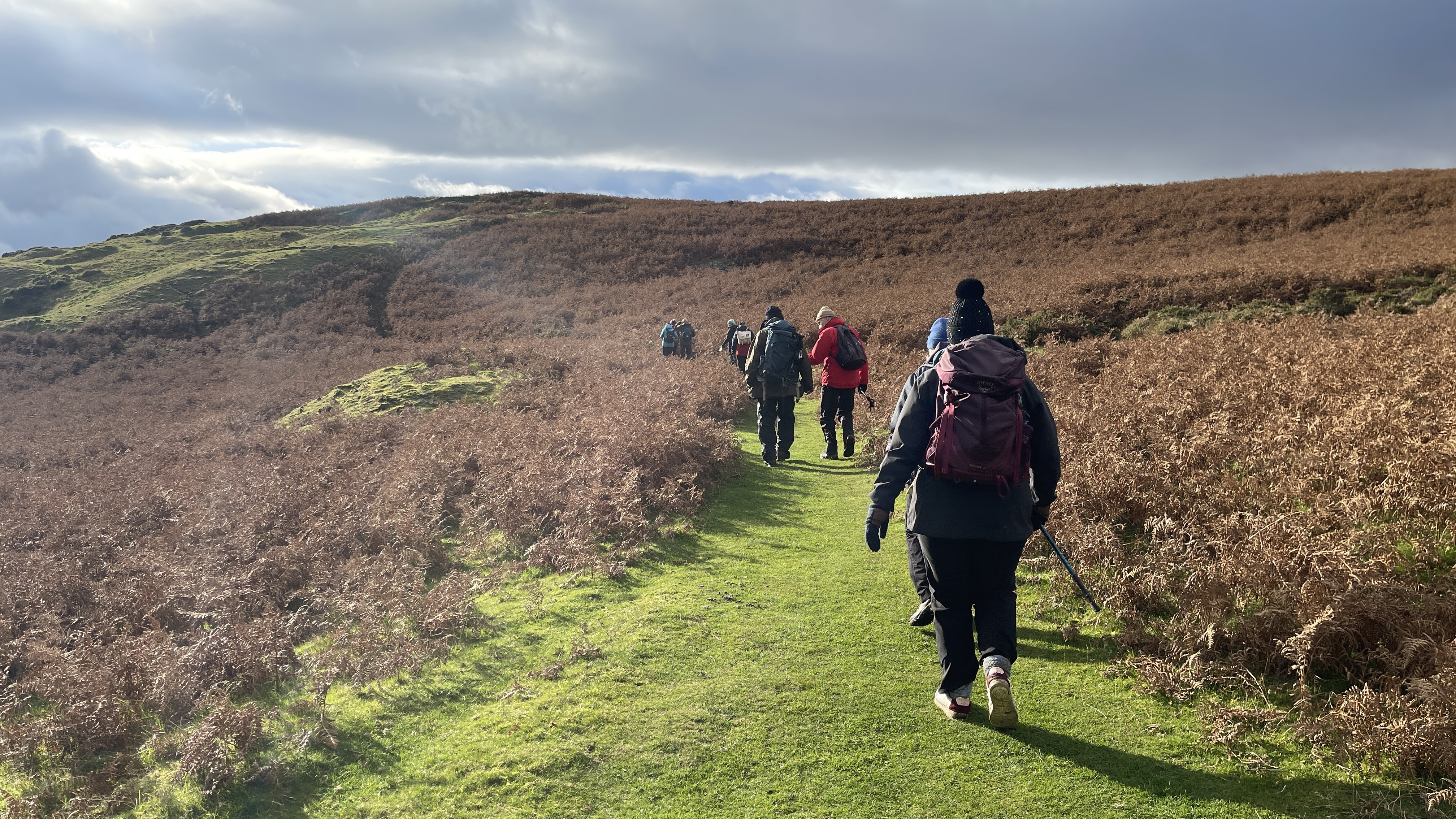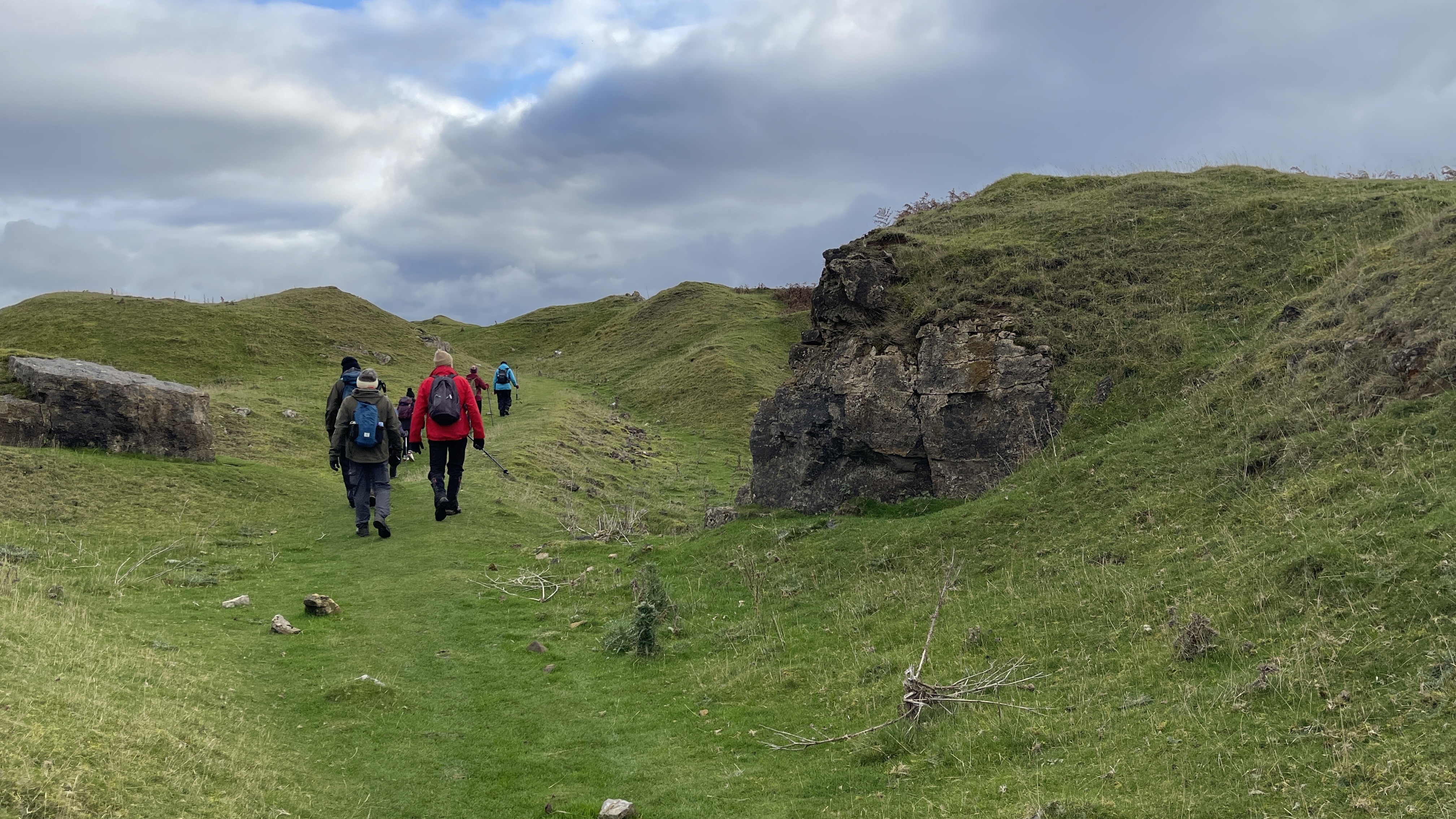 Ten friends old and new gathered together in Brynmawr’s museum car park ready for today's Merthyr Valley Ramblers 7.5 mile walking historical trails ramble . Although it was “damping”, rain wasn't forecast until the afternoon and so it proved to be - and not too cold either. Heading out from the suburbs of Brynmawr, we crossed over the A465 using the new footbridge, crossed over Nant Melyn then turned north and climbed steadily to the trig point at Twr Pen-cyrn where we had our first cuppa. We then turned east along the flatlands and tramways to meet up with our old friends the lonely shepherd and his dog where we shared lunch. It was then southward down to the road and past the donkeys at Ty-Yn-y-coed where we turned west along track and road back to the start. Exceptional views and a great crowd made Rob and Morfydd's walk perfect - thank you all.