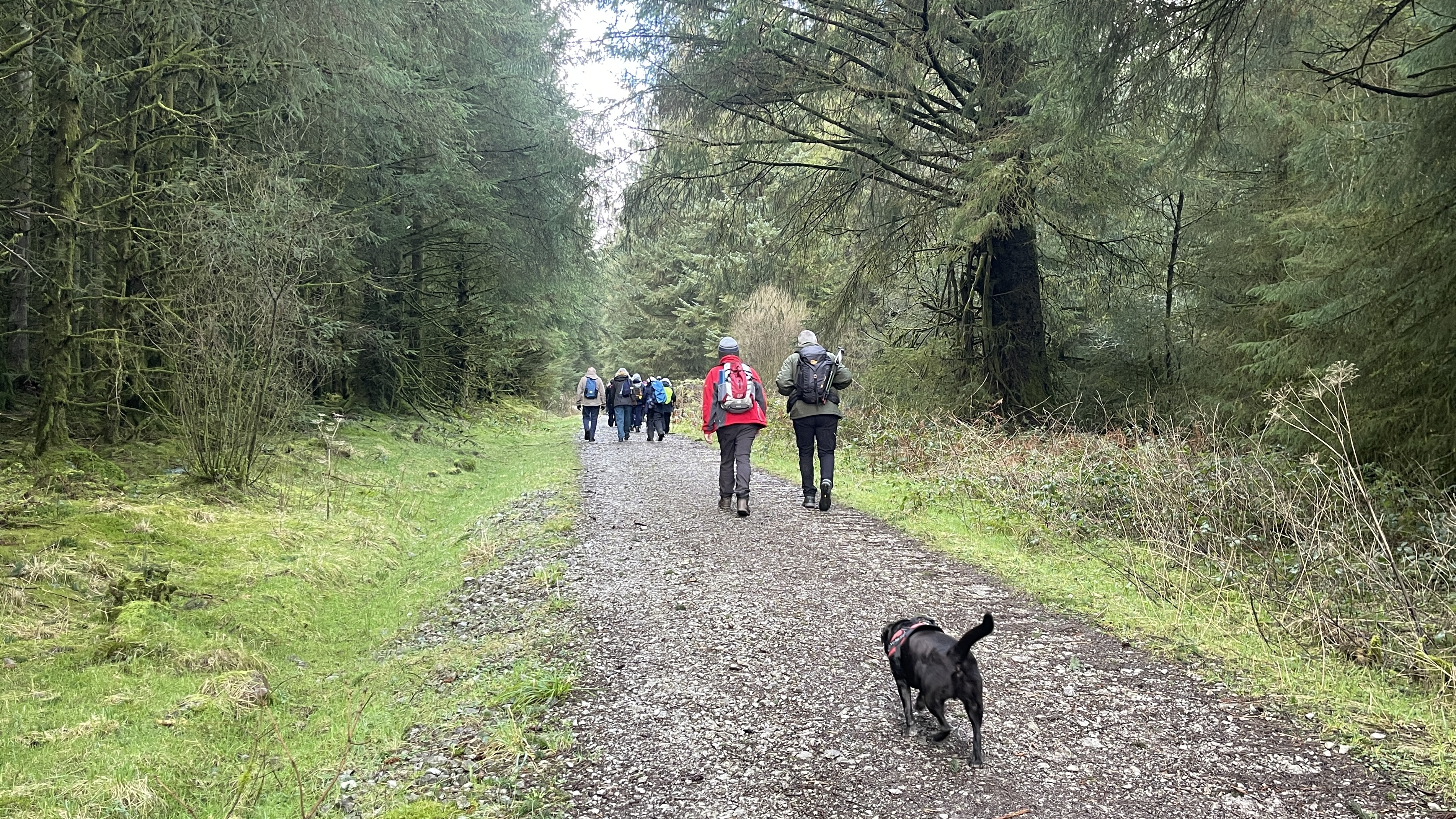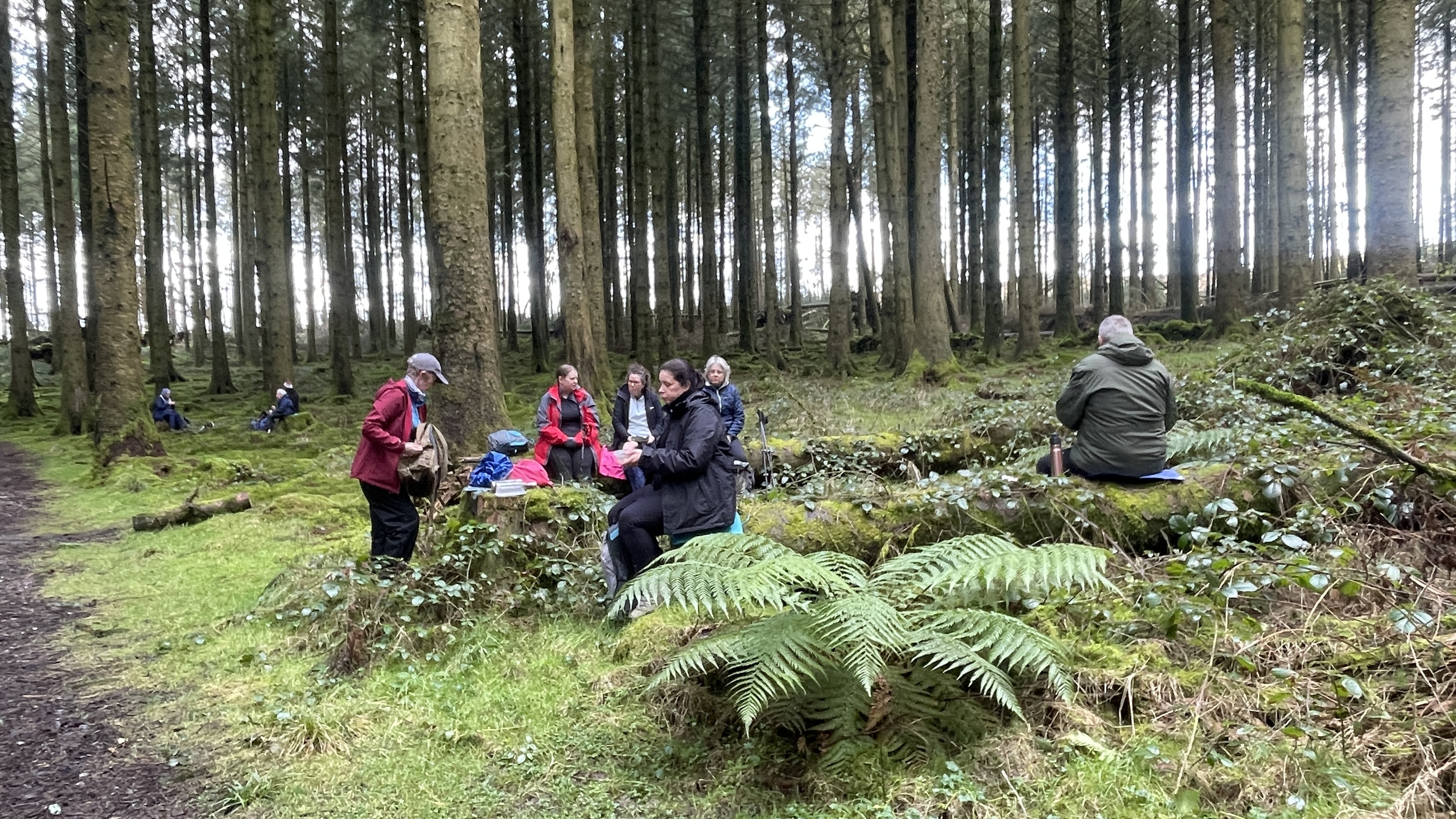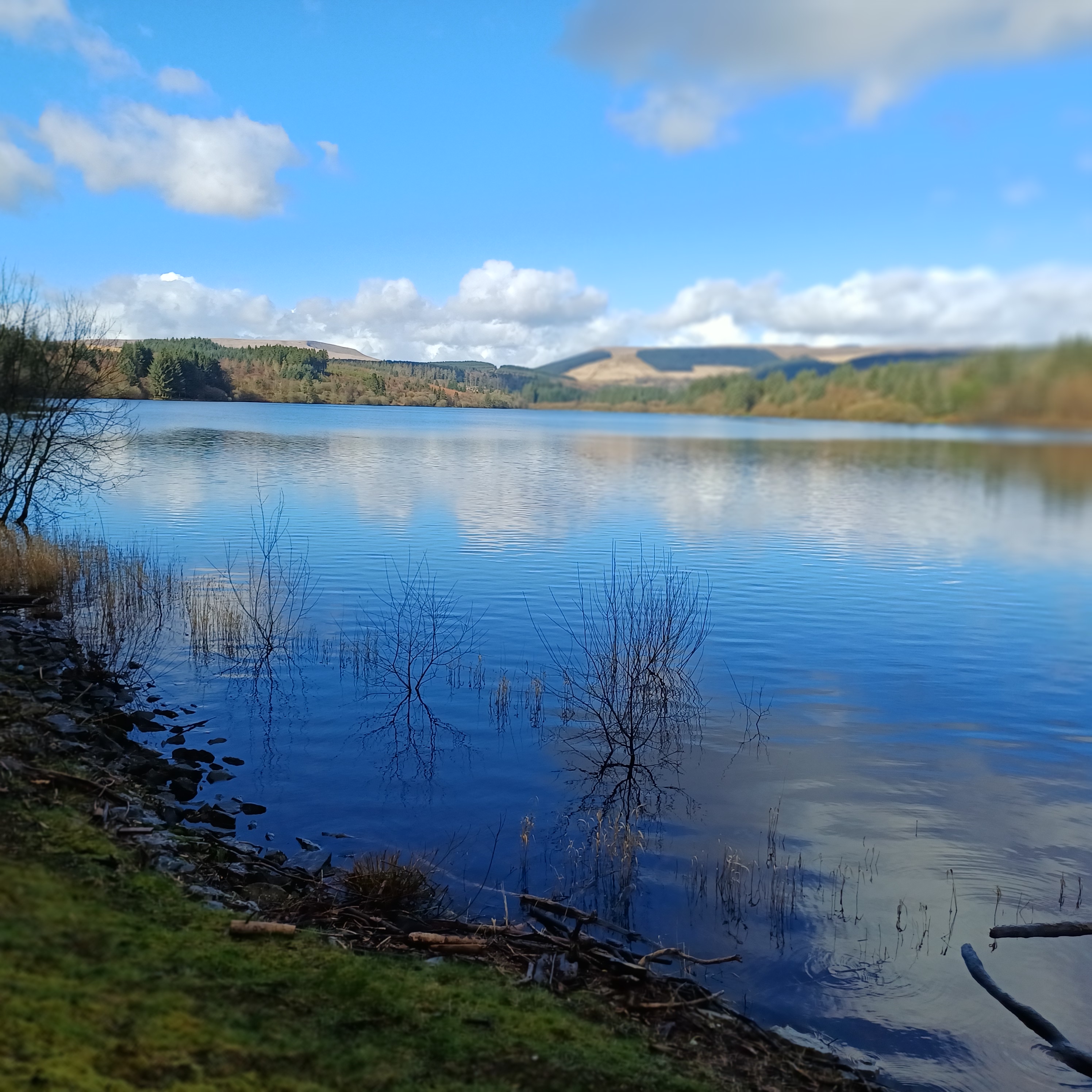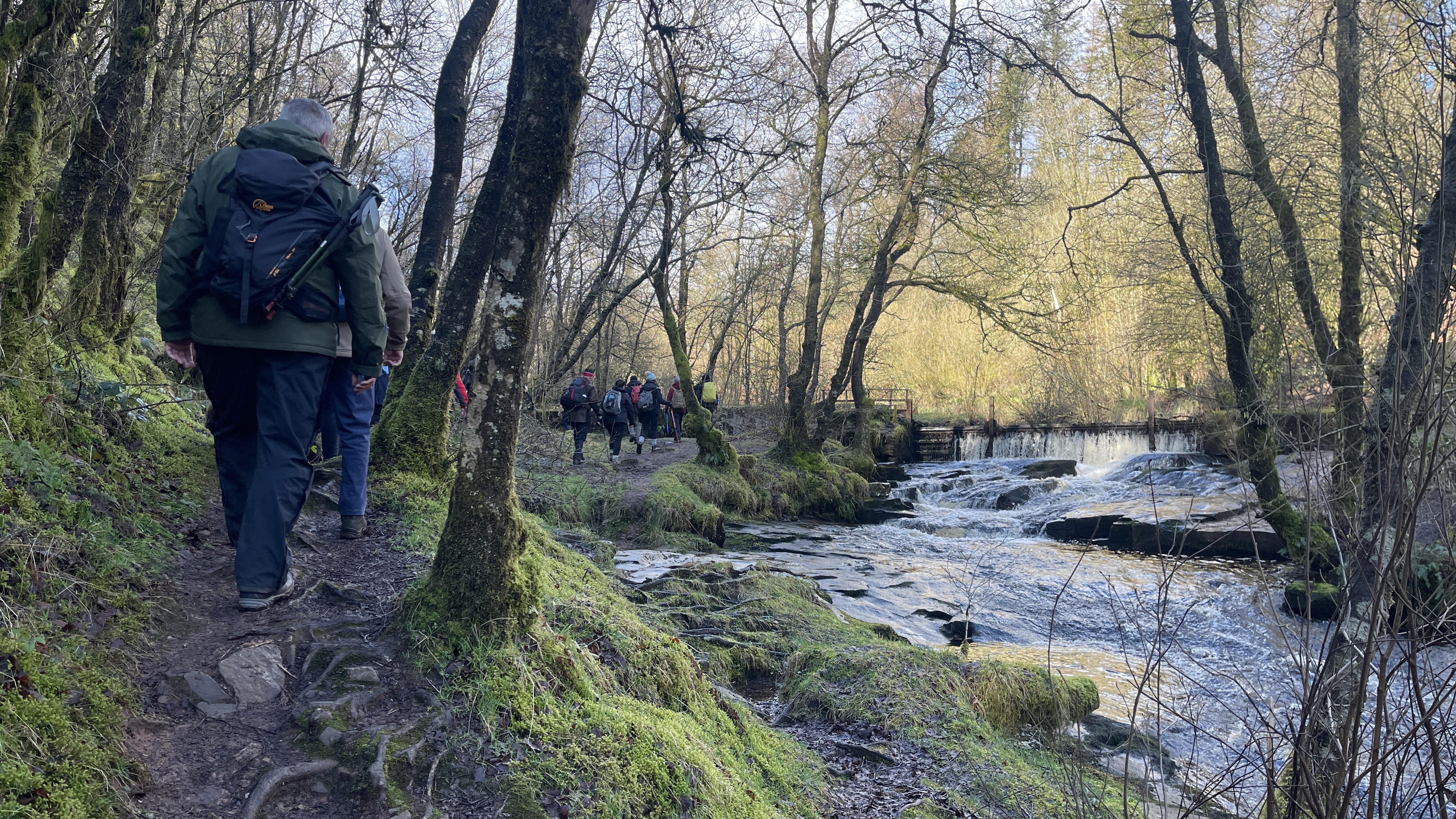 A lovely 7 mile three seasons walk today for 20 Merthyr Valley Ramblers (including welcome visitors Kathy and Helen). Rain on the way had turned to sunshine but we weren’t fooled and stuck to wet-weather gear as we walked the path alongside to A470 to the Garwnant visitor centre. It was then inland for a while then we headed South and had our first cuppa in the woods. We then followed the path westerly to Sycamore grove and lunch, following which we headed east through a slight hailstorm to Nant Sychbant. It was downhill and sunshine all the way from then on, dropping down to the dam and alongside the res back to the start. A big thanks to Hilda for a cracking fresh walk and to all for the great company.