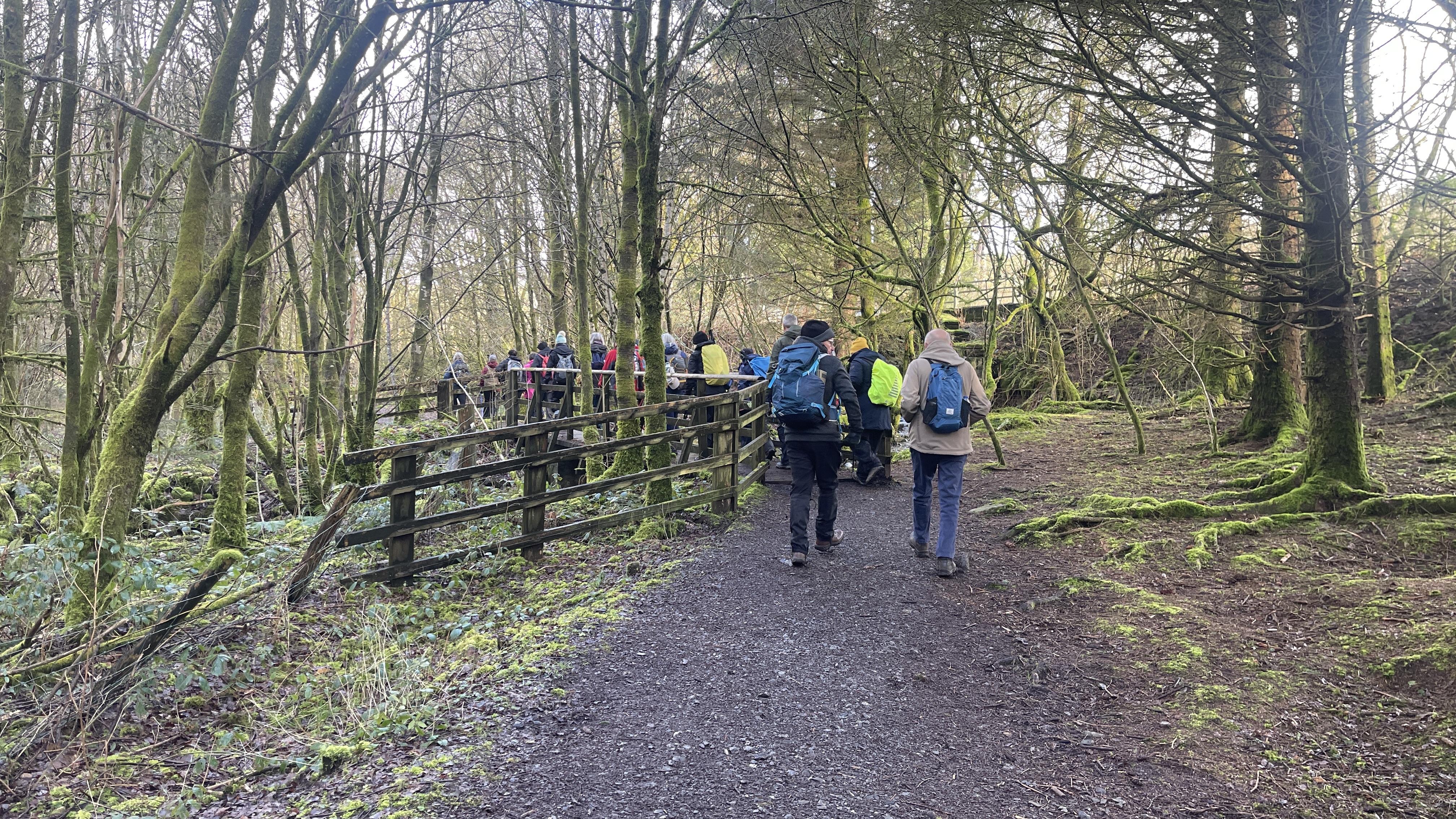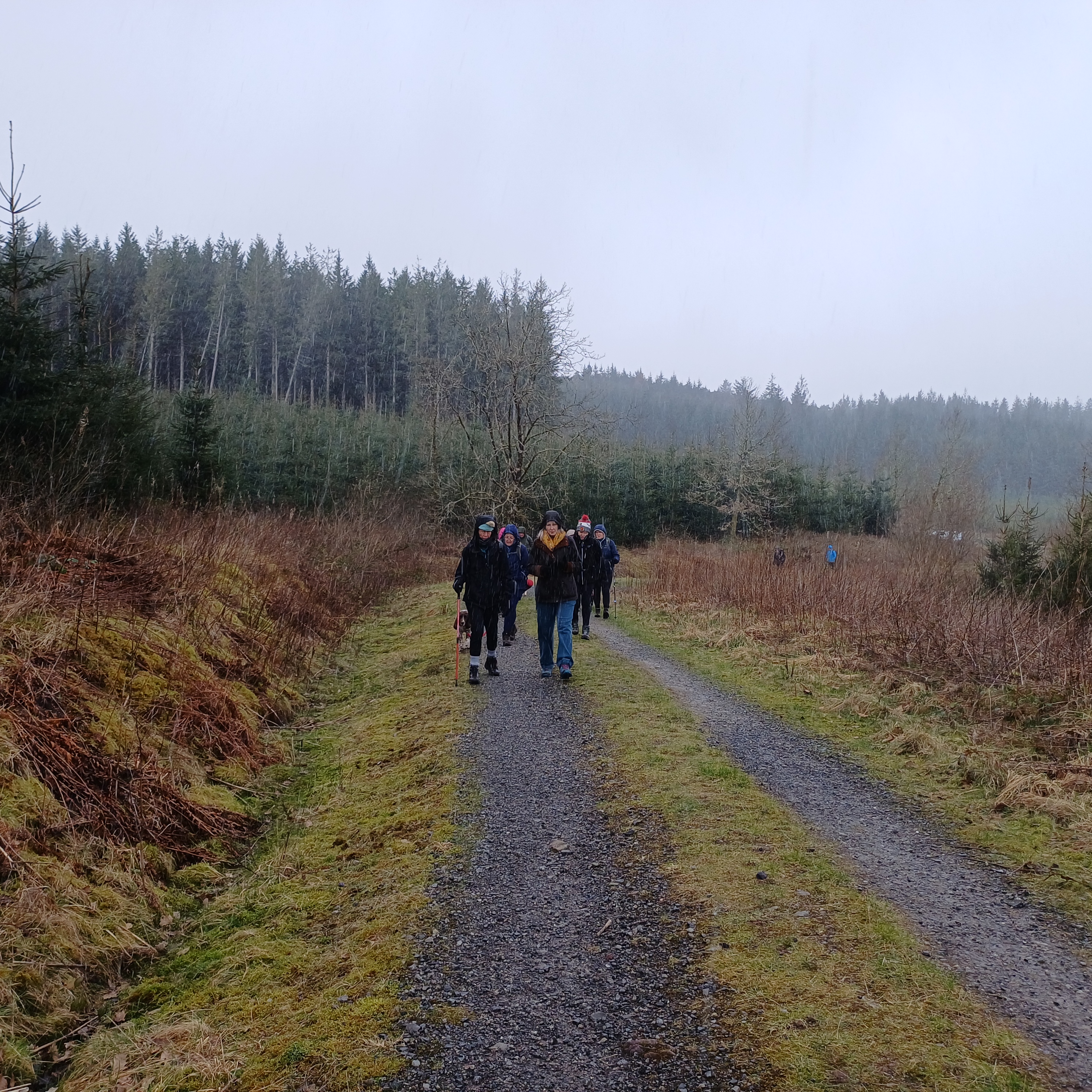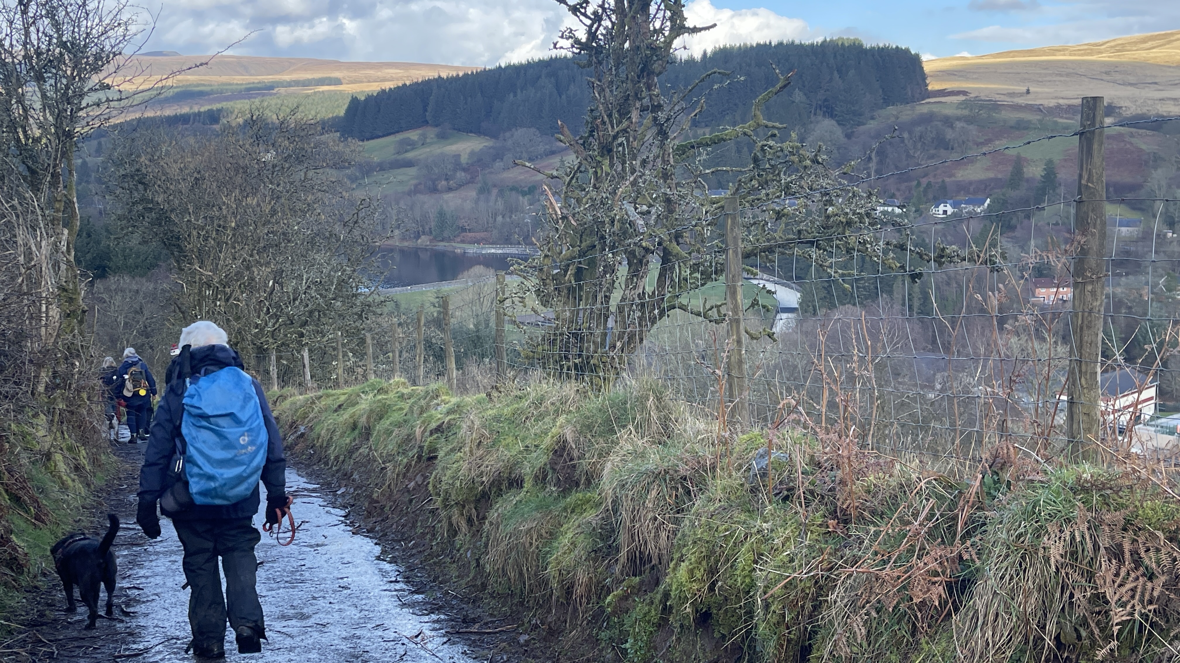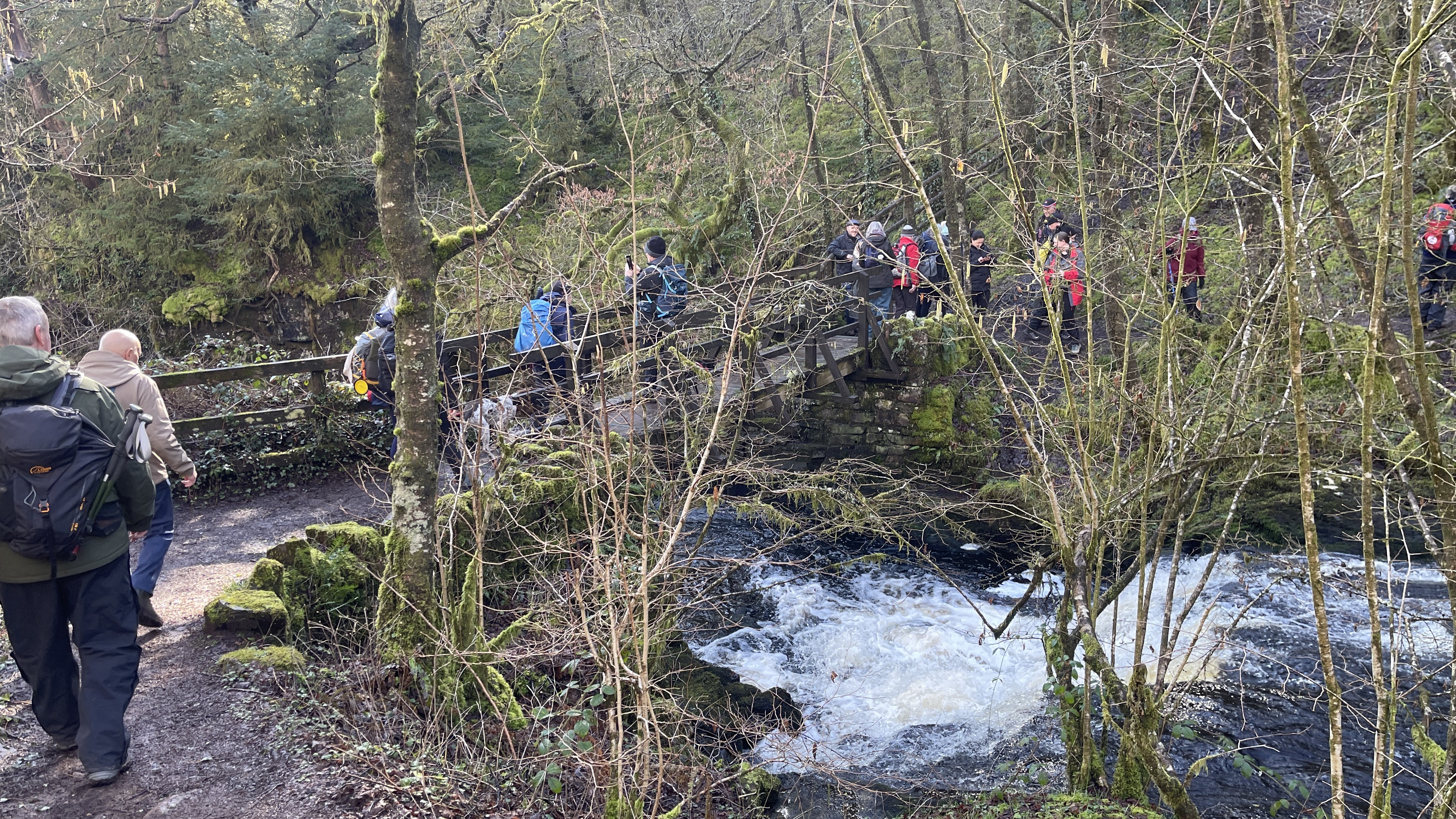 A lovely 7 mile three seasons walk today for 20 Merthyr Valley Ramblers (including welcome visitors Kathy and Helen). Rain on the way had turned to sunshine but we weren’t fooled and stuck to wet-weather gear as we walked the path alongside to A470 to the Garwnant visitor centre. It was then inland for a while then we headed South and had our first cuppa in the woods. We then followed the path westerly to Sycamore grove and lunch, following which we headed east through a slight hailstorm to Nant Sychbant. It was downhill and sunshine all the way from then on, dropping down to the dam and alongside the res back to the start. A big thanks to Hilda for a cracking fresh walk and to all for the great company.
