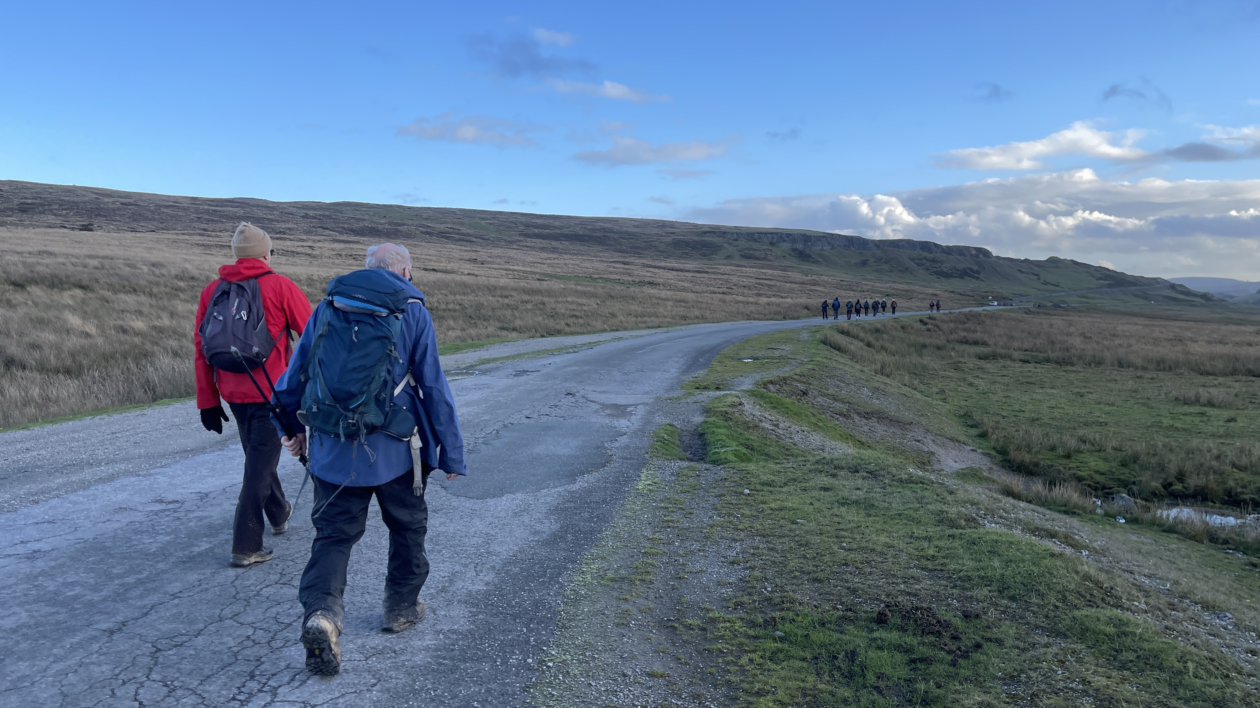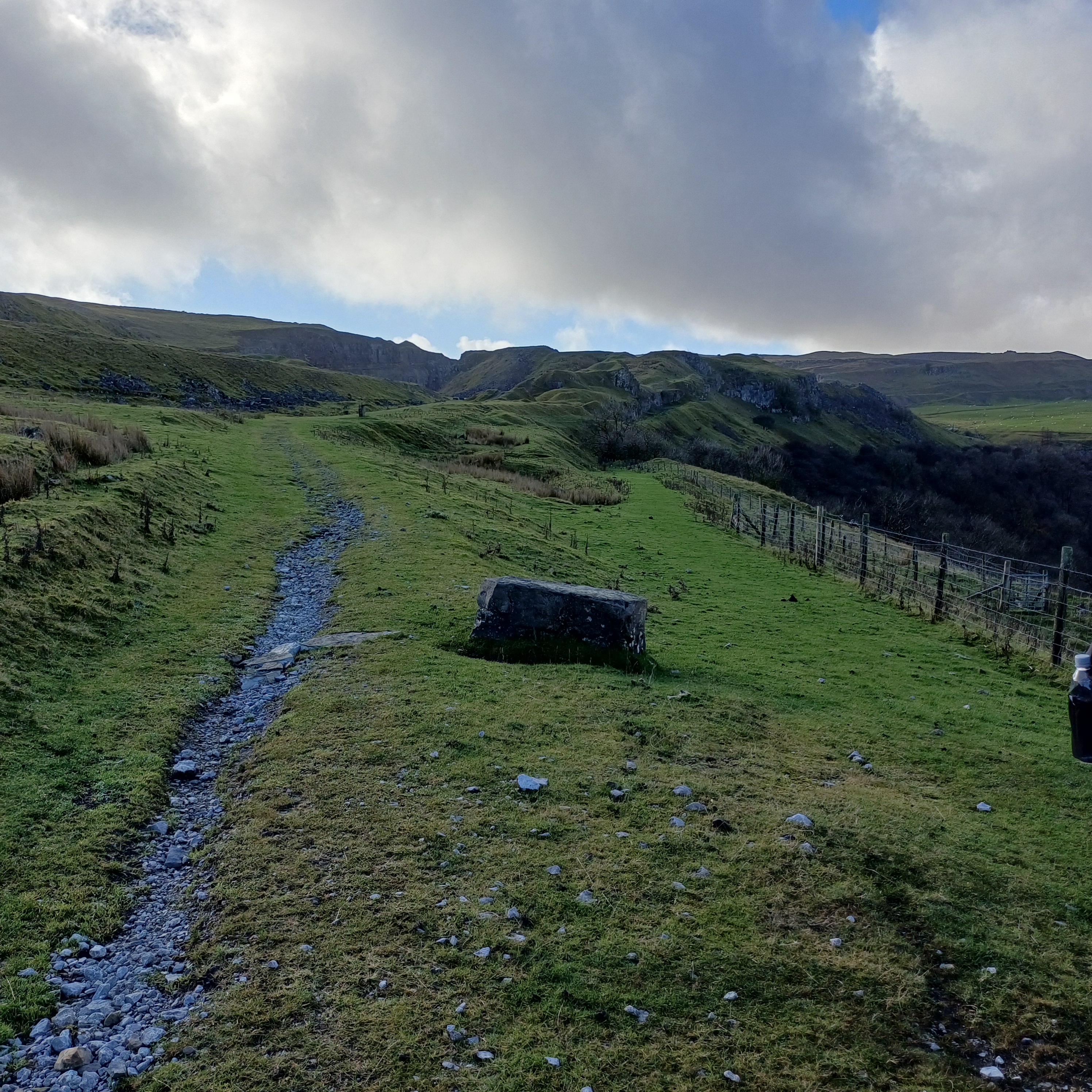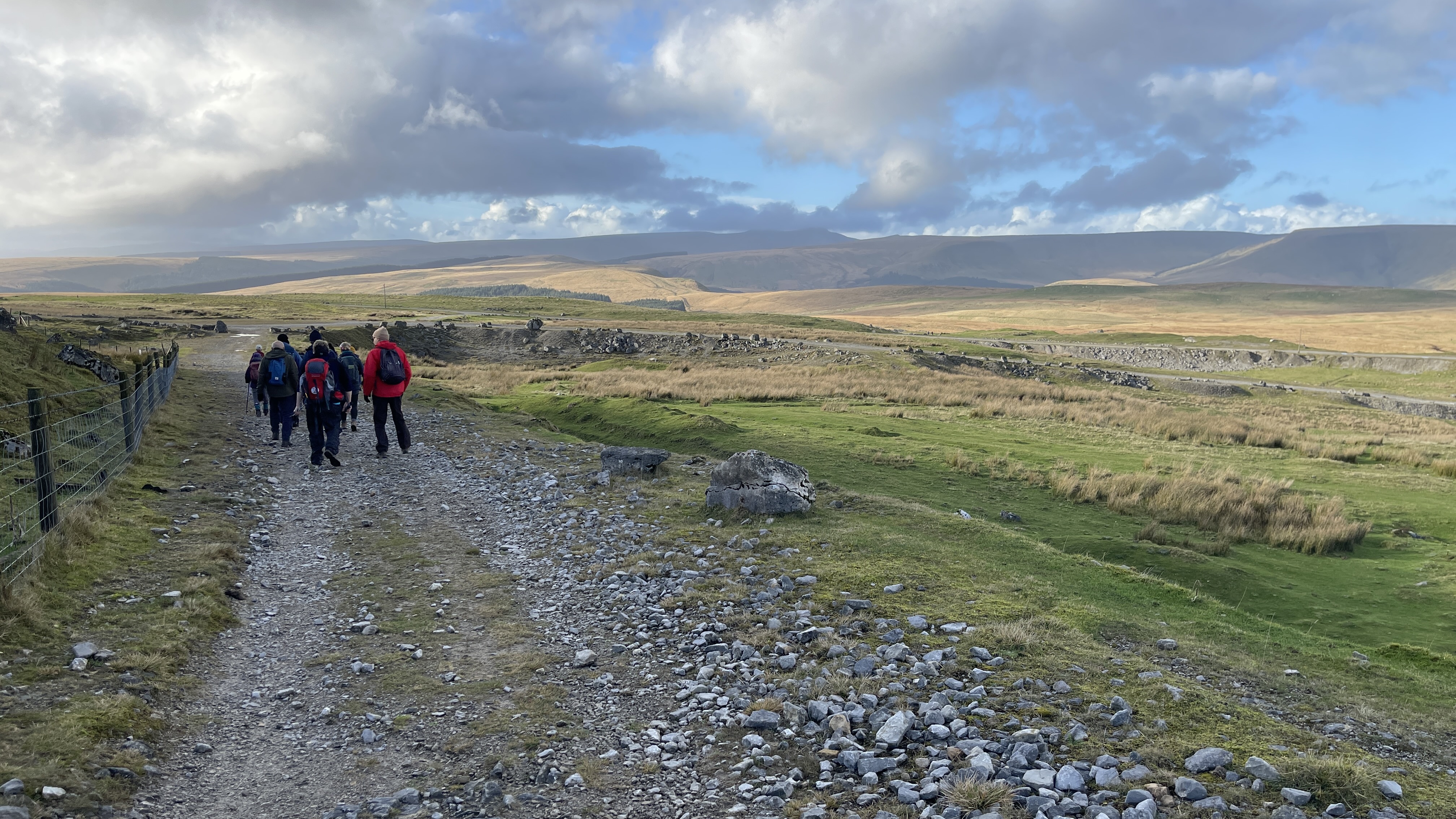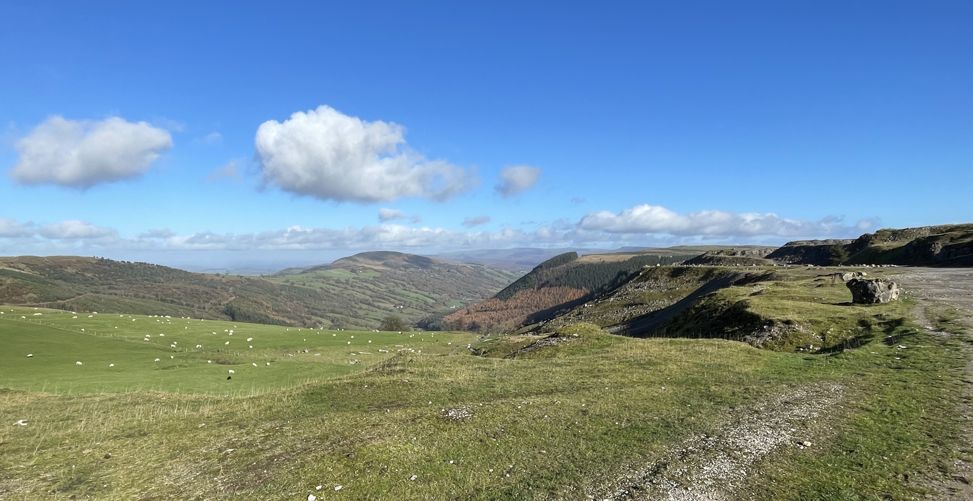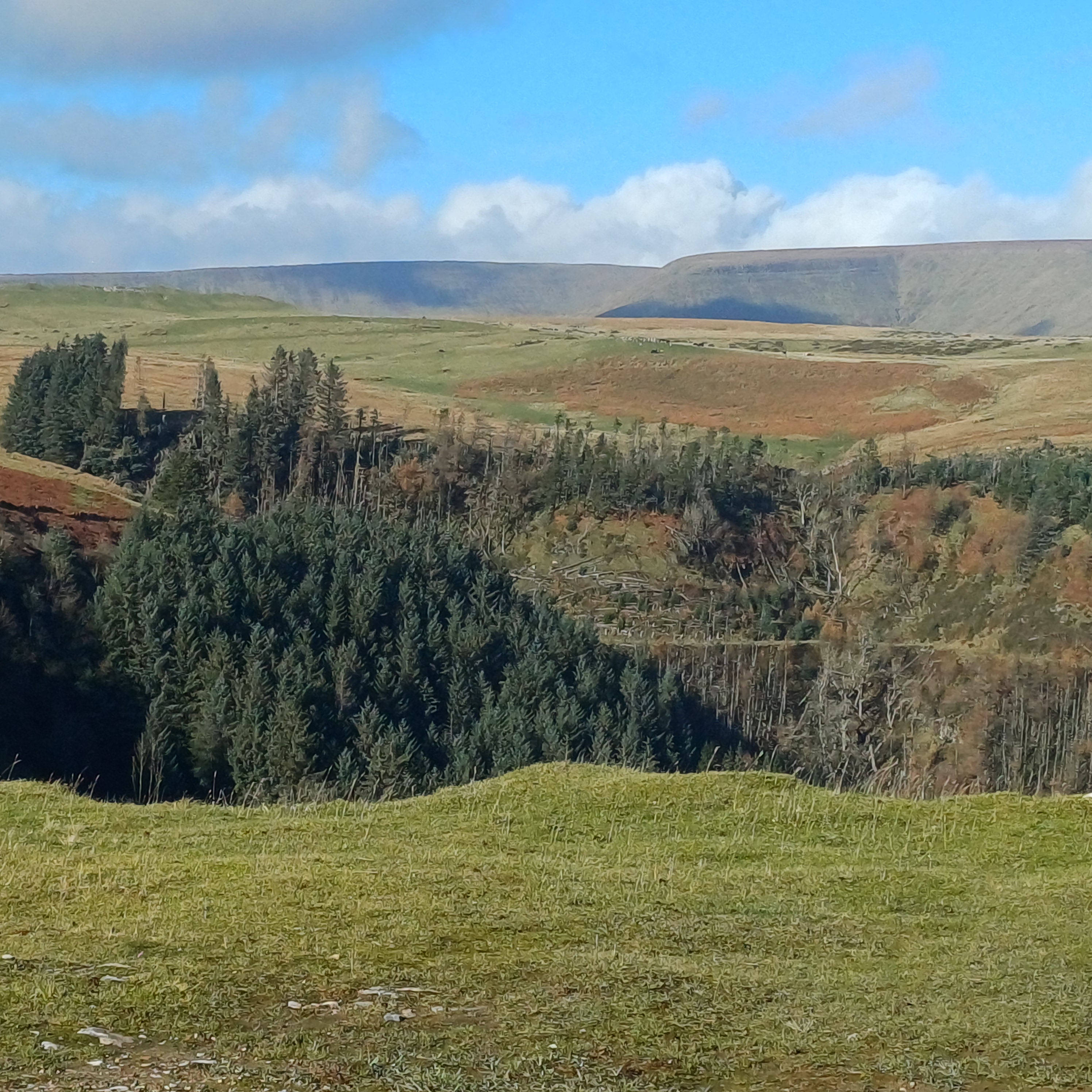 Despite the chill westerly breeze, 15 lucky ramblers (including welcome visitors Karen, John and newest Merthyr Valley Ramblers member Elaine) met in bright sunshine and blue skies at the start of our 9 1/4mile walk in Trefil today. Also waiting at Trefil was the annual memorial trip to the bomber site organised by Tredegar council. We set off up the road at a good pace passing the duke’s table and swung round by the woods to have our first cuppa. It was then through the quarried road and more tracks, finally going cross-country to the bomber memorial. We held a simple service there and laid a wreath (donated by Maureen), then had lunch. Despite the magnificent views and still bright sunshine, it was too cold to hang around so we made our back the same way to Trefil. A marvellous walk led by Morfedd and Rob, magnificent views of Pen Y Fan and the sugarloaf and great company which was the icing on the cake. And to cap it all, it poured down on the way home!! Thanks all!