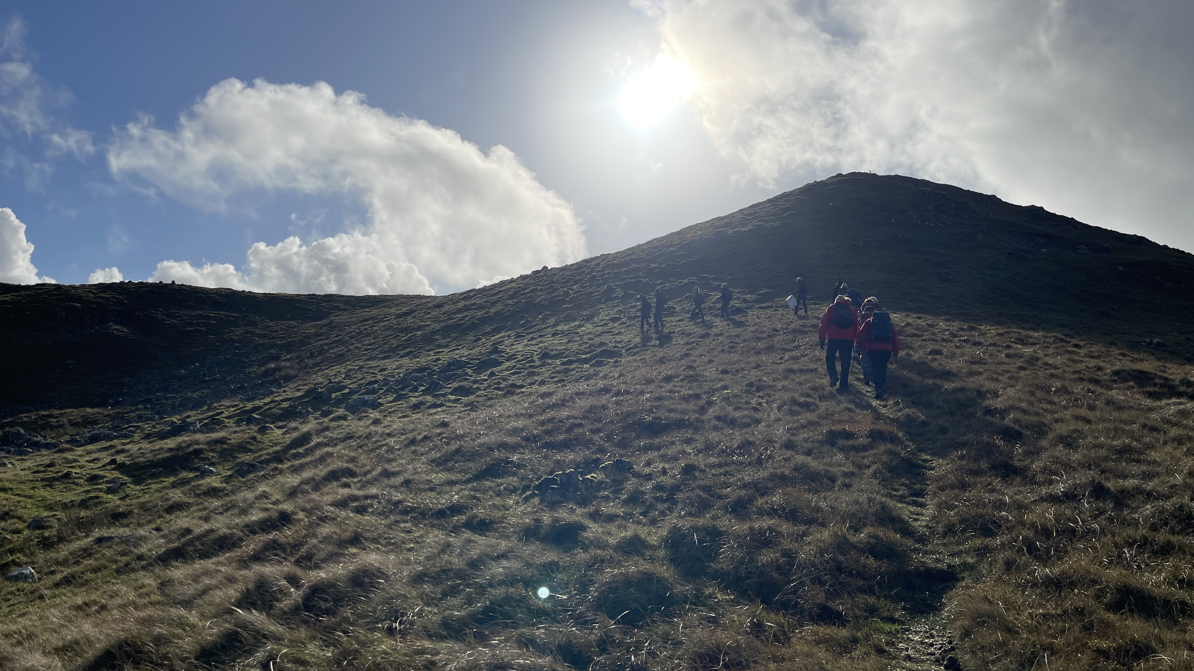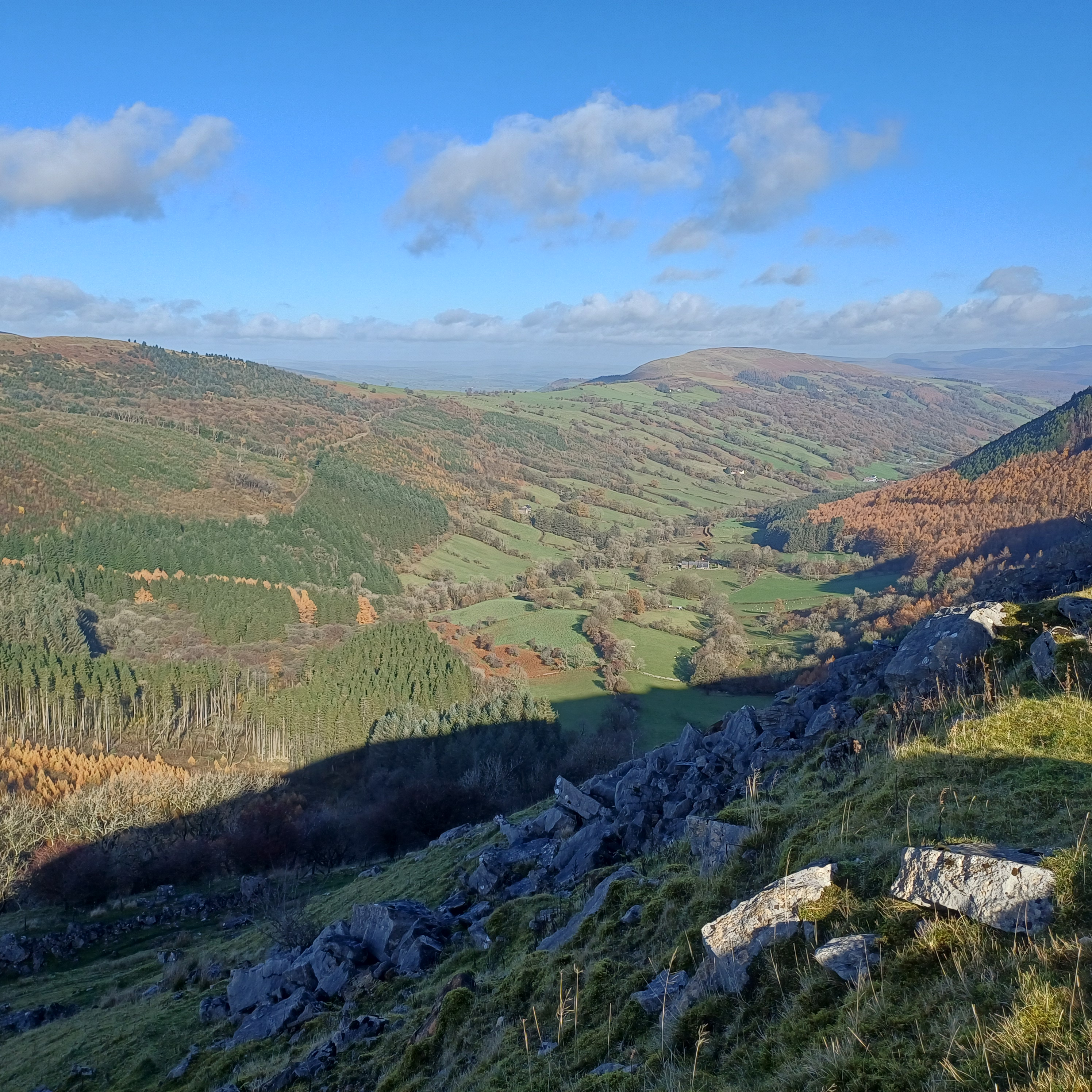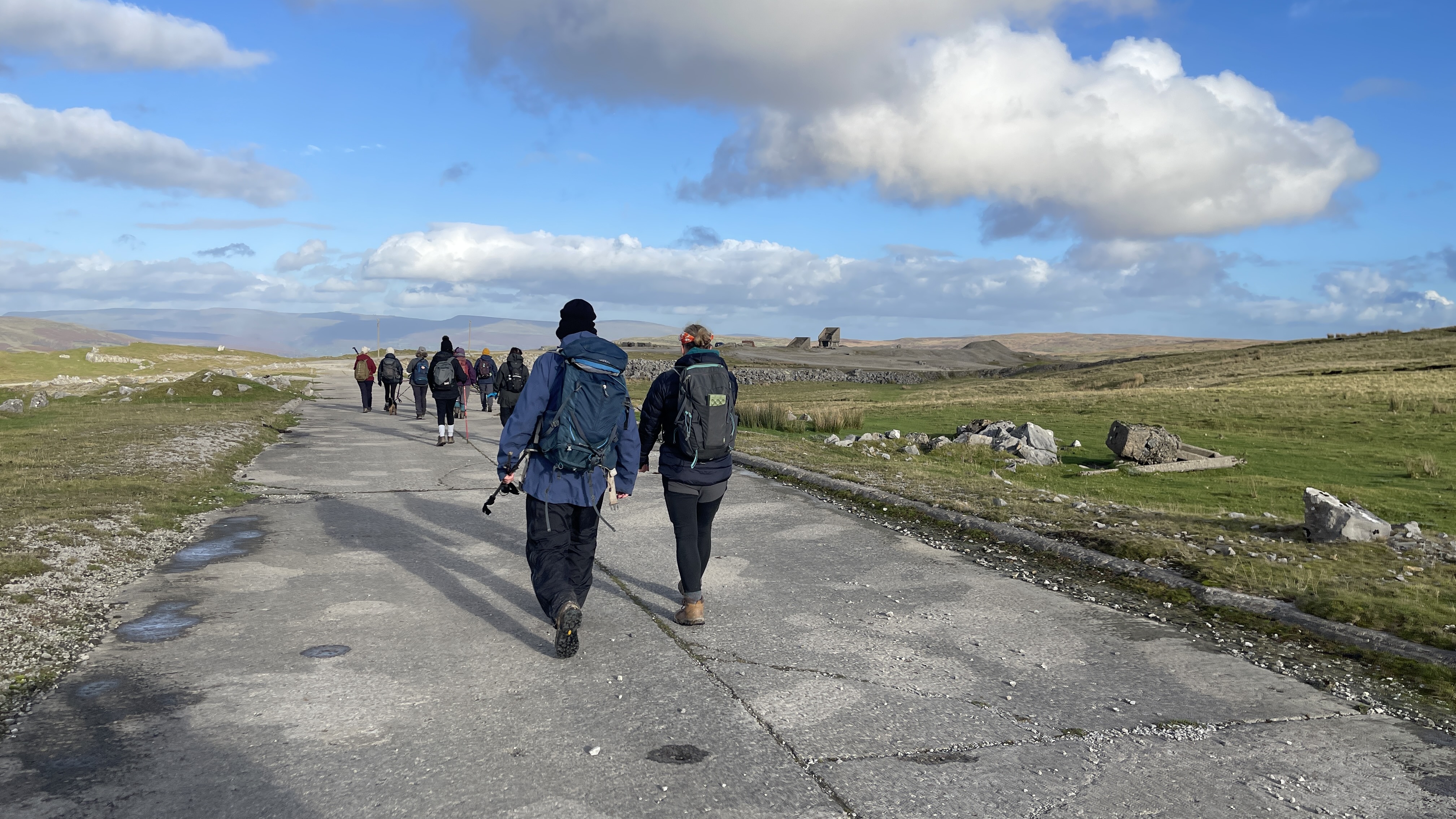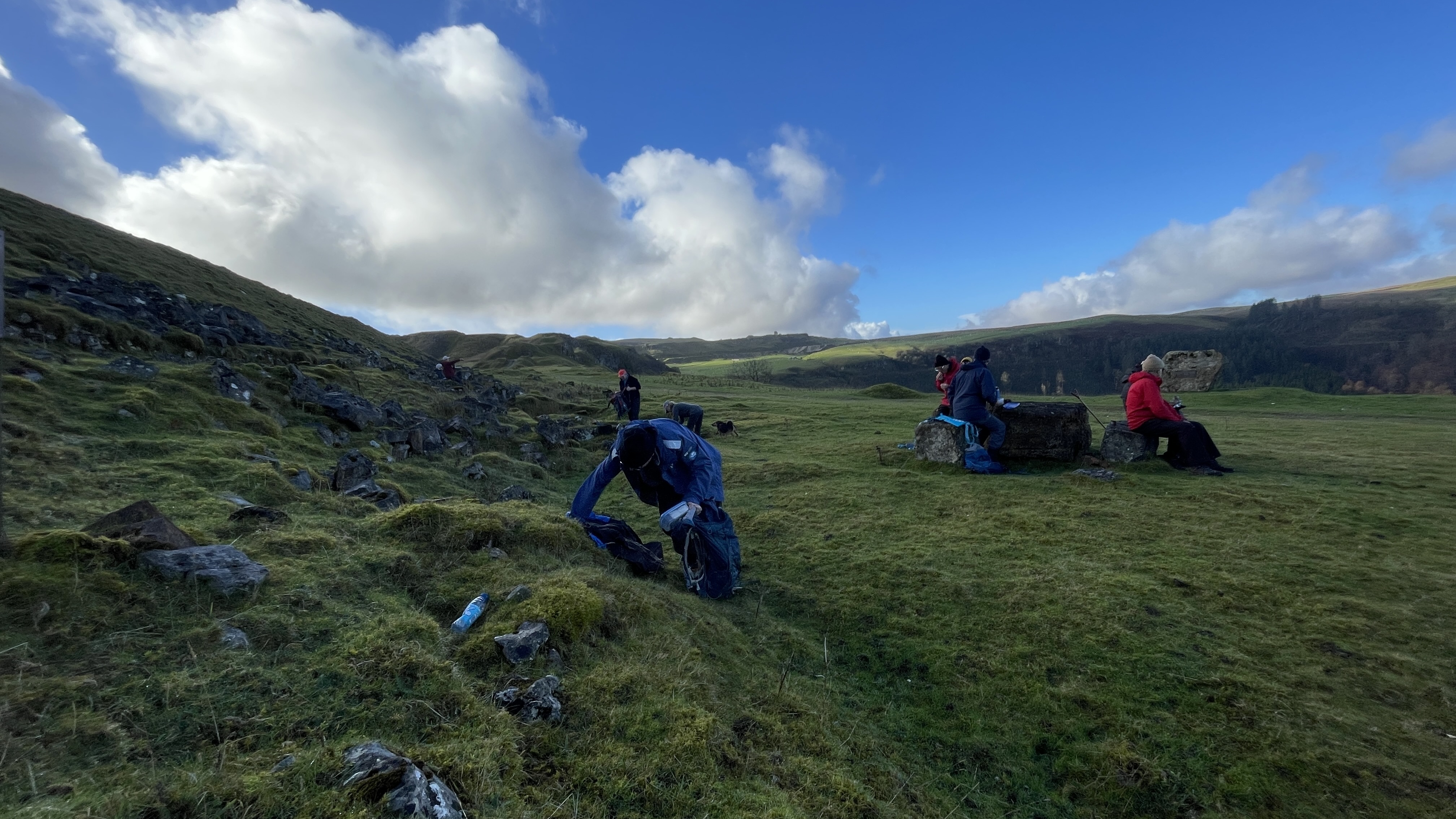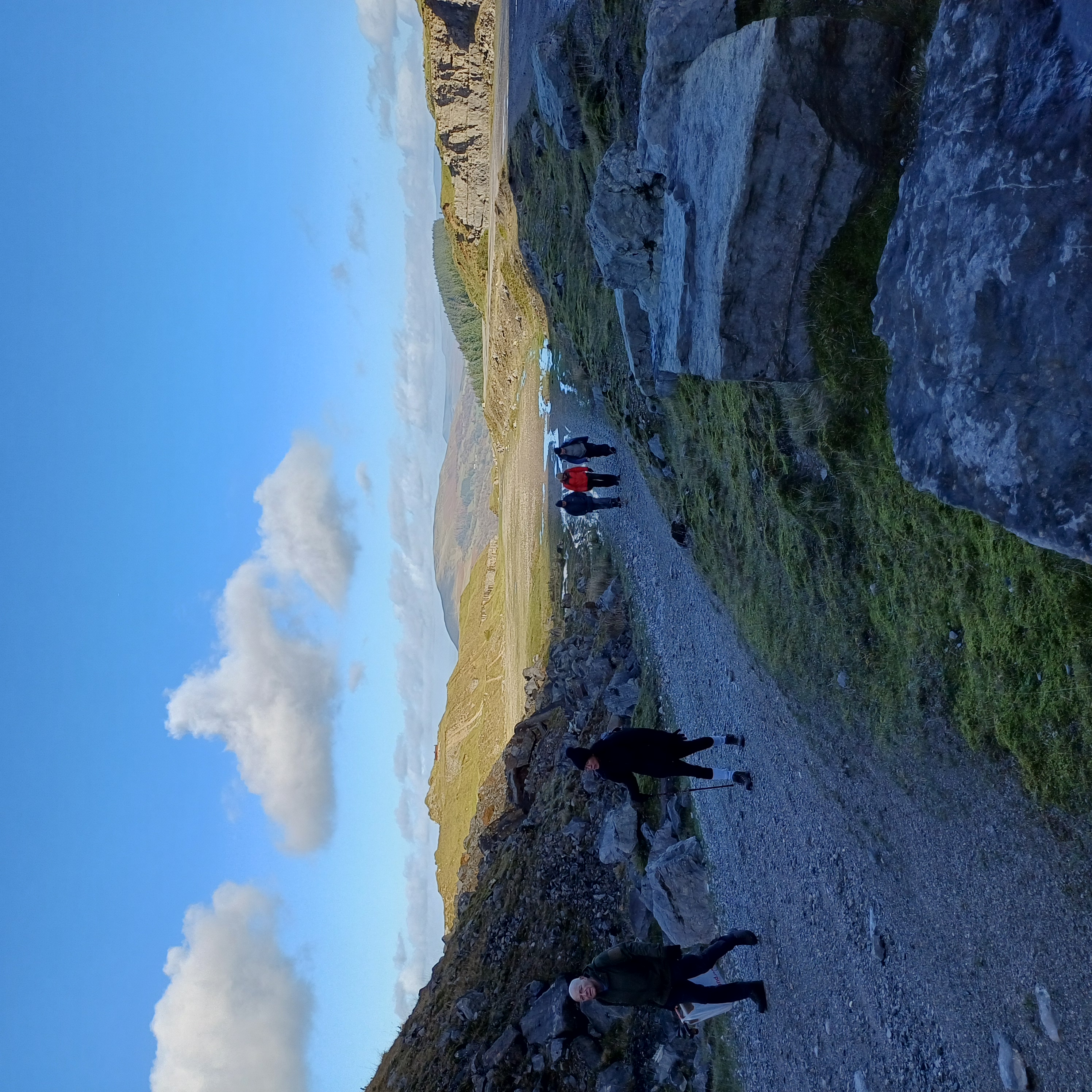 Despite the chill westerly breeze, 15 lucky ramblers (including welcome visitors Karen, John and newest Merthyr Valley Ramblers member Elaine) met in bright sunshine and blue skies at the start of our 9 1/4mile walk in Trefil today. Also waiting at Trefil was the annual memorial trip to the bomber site organised by Tredegar council. We set off up the road at a good pace passing the duke’s table and swung round by the woods to have our first cuppa. It was then through the quarried road and more tracks, finally going cross-country to the bomber memorial. We held a simple service there and laid a wreath (donated by Maureen), then had lunch. Despite the magnificent views and still bright sunshine, it was too cold to hang around so we made our back the same way to Trefil. A marvellous walk led by Morfedd and Rob, magnificent views of Pen Y Fan and the sugarloaf and great company which was the icing on the cake. And to cap it all, it poured down on the way home!! Thanks all!