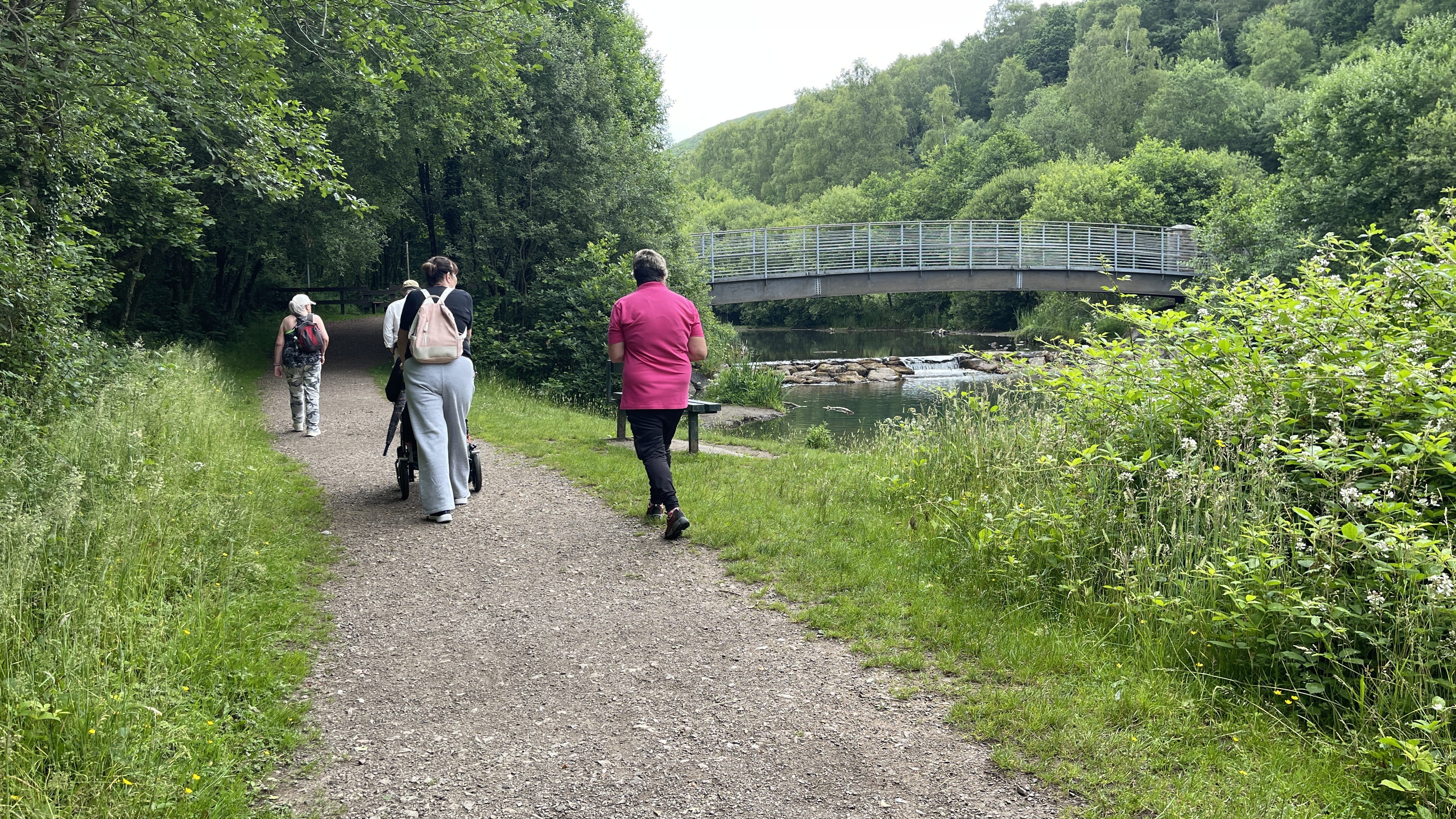 Eight intrepid walkers attended the three mile stroll from Park Taff Bargoed to the Rock Climbing Centre and back today. It was good to see Andrew back in the fold and new friends Vera and Chris made the group complete. Despite the muggy weather, we made a good start and the occasional warm raindrops did nothing to dispel the chat and good humour. We also had experts in plants, insects and birdsong so we learned as we walked. The climbing centre soon came into view and tea, coffee and snacks in the outstanding restaurant were soon consumed. All too soon, it was time to walk back on the other side of the filter beds and back to the carpark. A lovely walk with lovely people, thanks all!