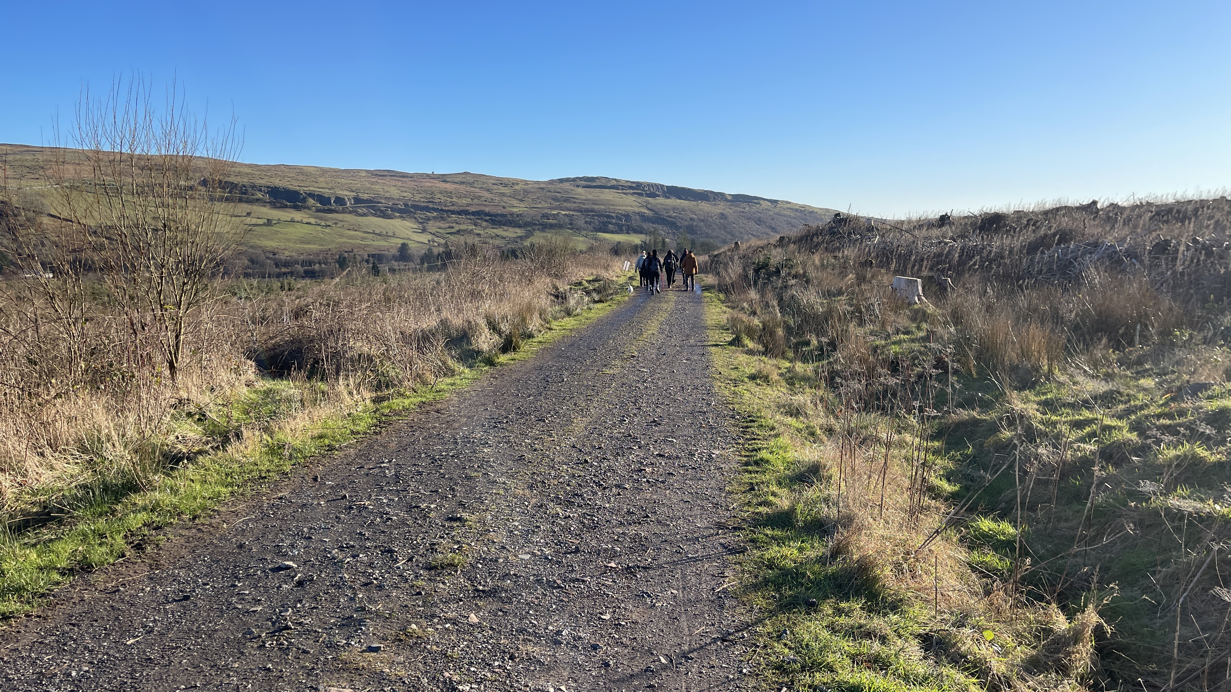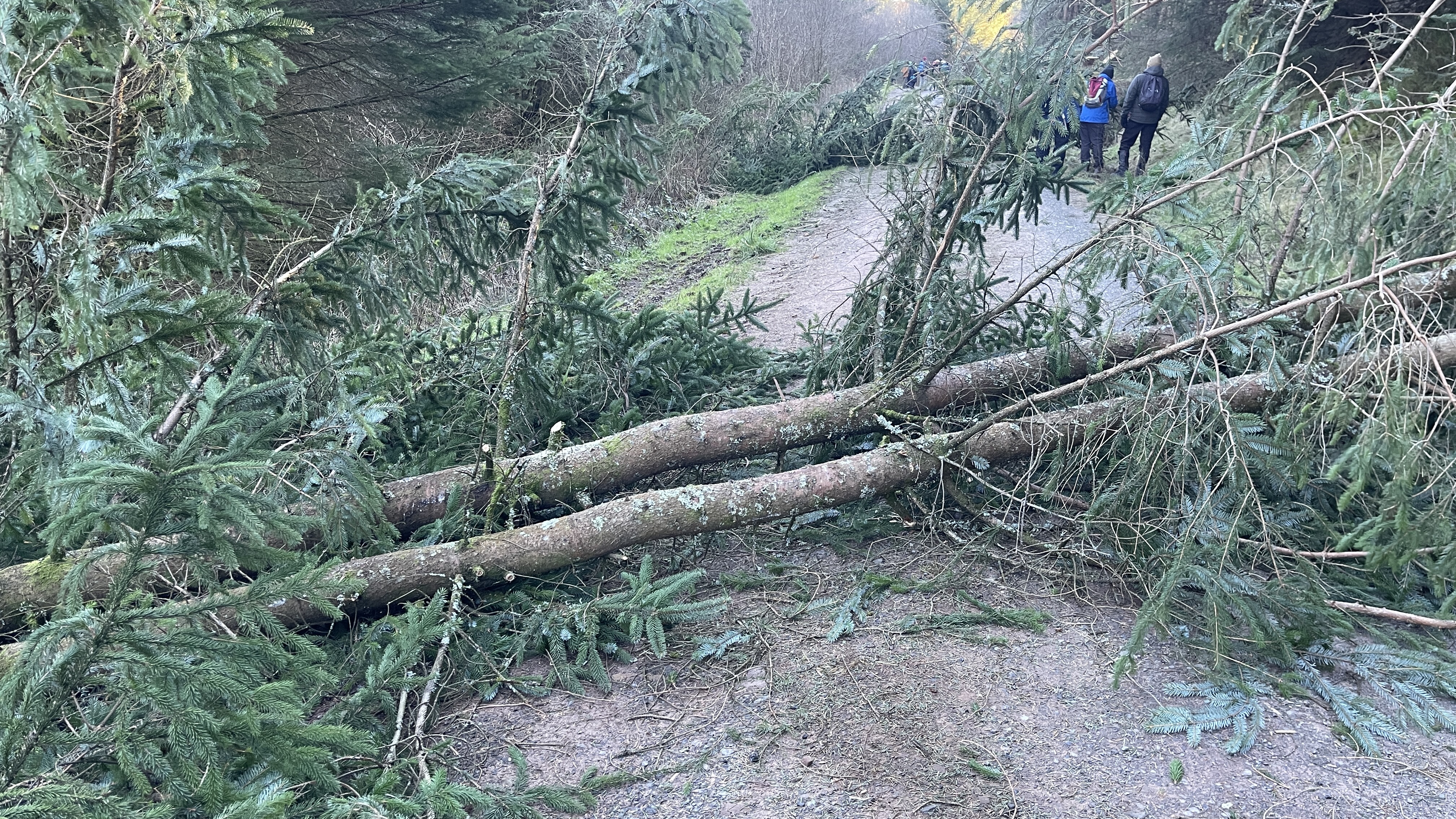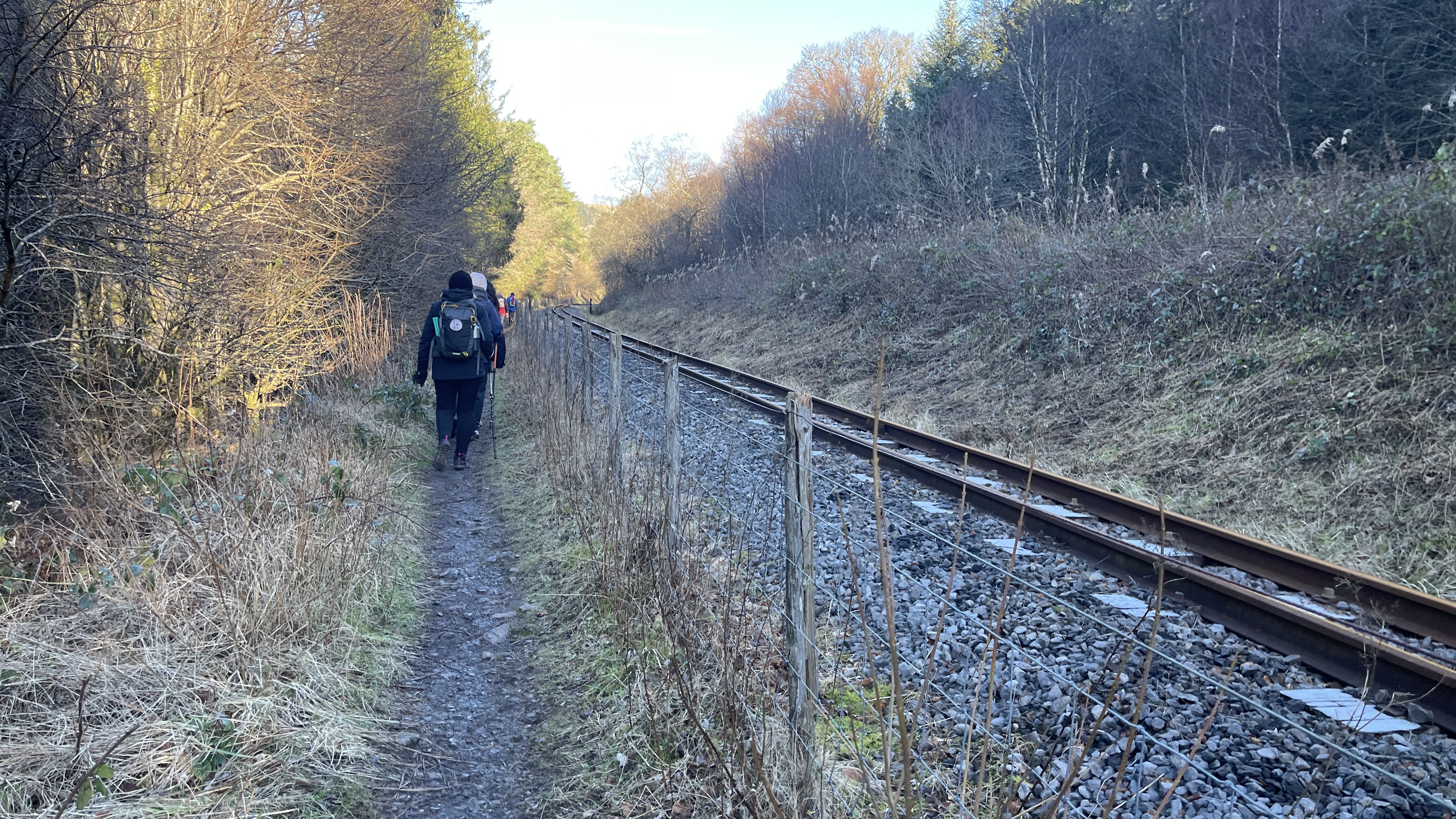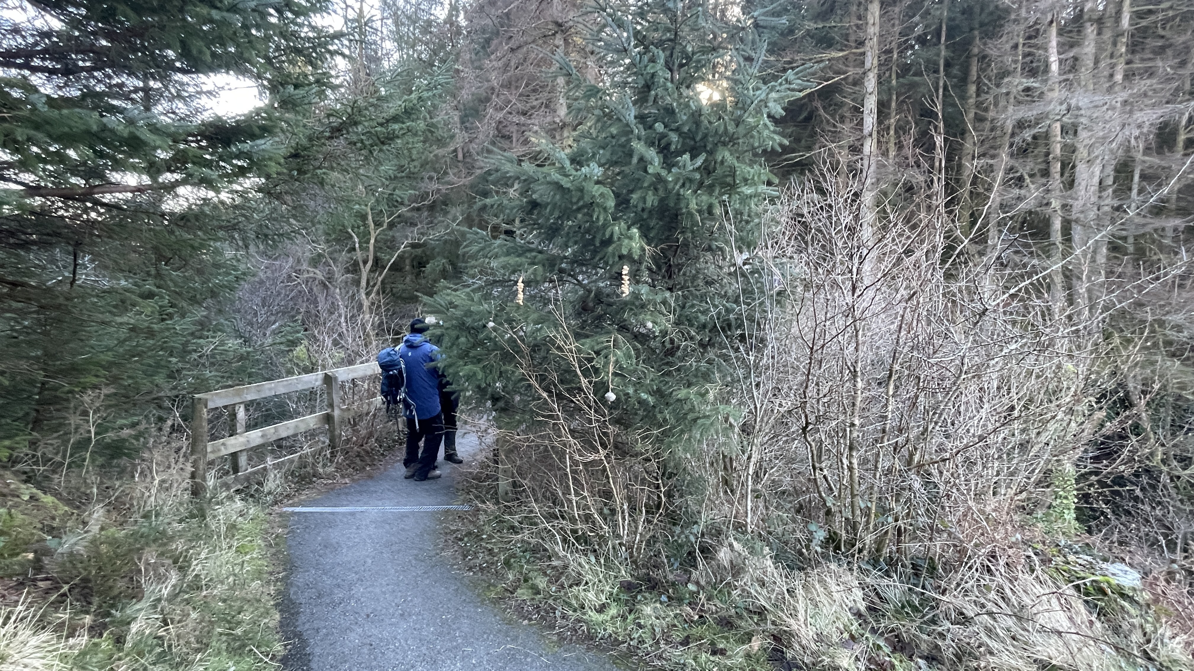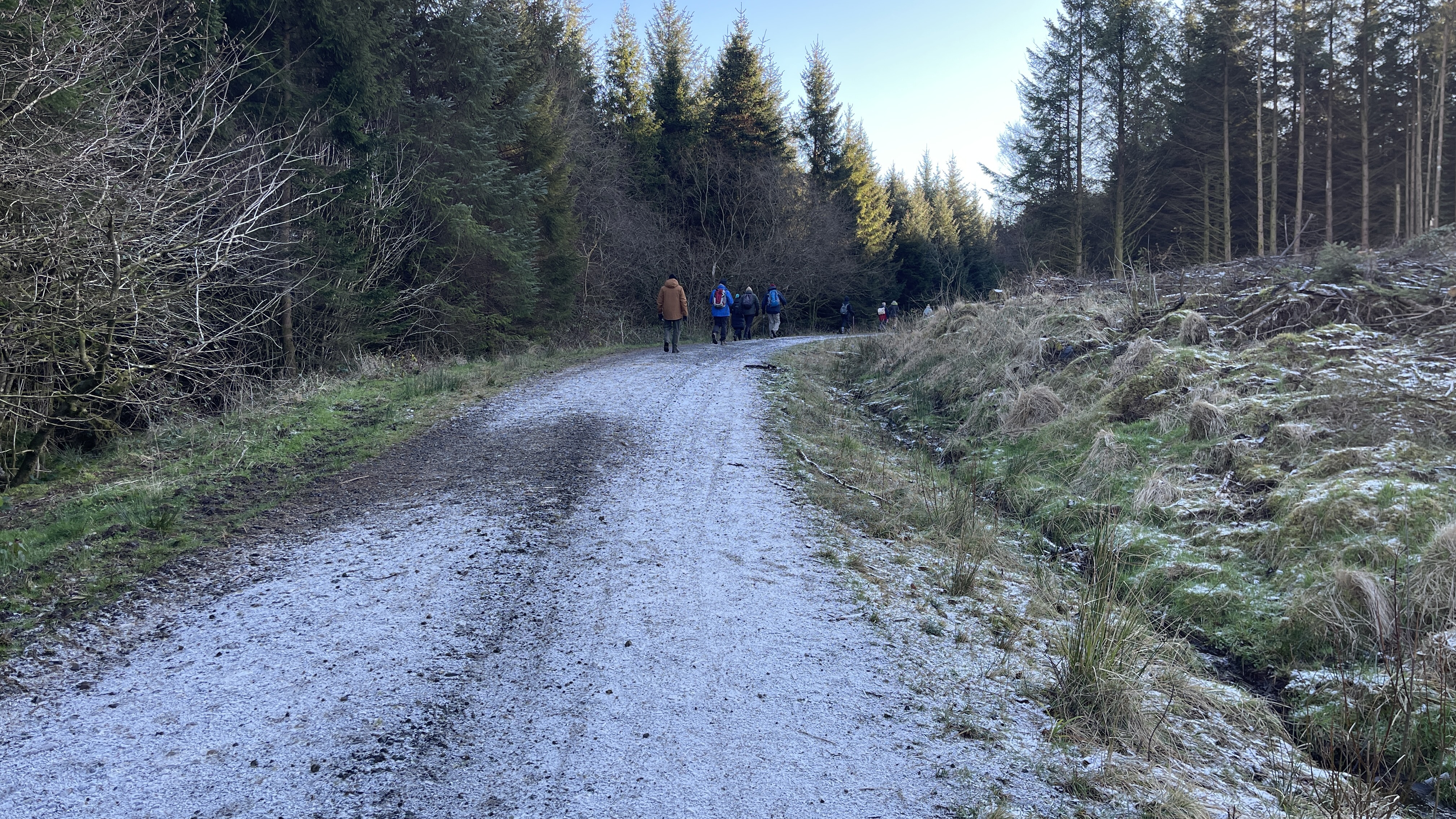 Bright sunshine and blue skies greeted eighteen lucky Merthyr Valley Ramblers which started their 5 1/2 mile walk from Pontsticill dam today. We walked alongside the east border of the reservoir to Dolygaer, crossed the dividing bridge between the two reservoirs and had a cuppa at the entrance to the forestry. We then made our way to the wooden bridge where we decorated the Christmas tree with bird treats. Further on, we came across a couple of trees that had fallen across the path. Thanks to a post on the Pontsticill Facebook page, we knew about them and had brought along a woodsaw which soon cut a path through the branches. Then, it was on to the Red The Red Cow Pontsticil for a fine meal and a warm by a real log fire. Lovely company made this a special walk - thanks all!