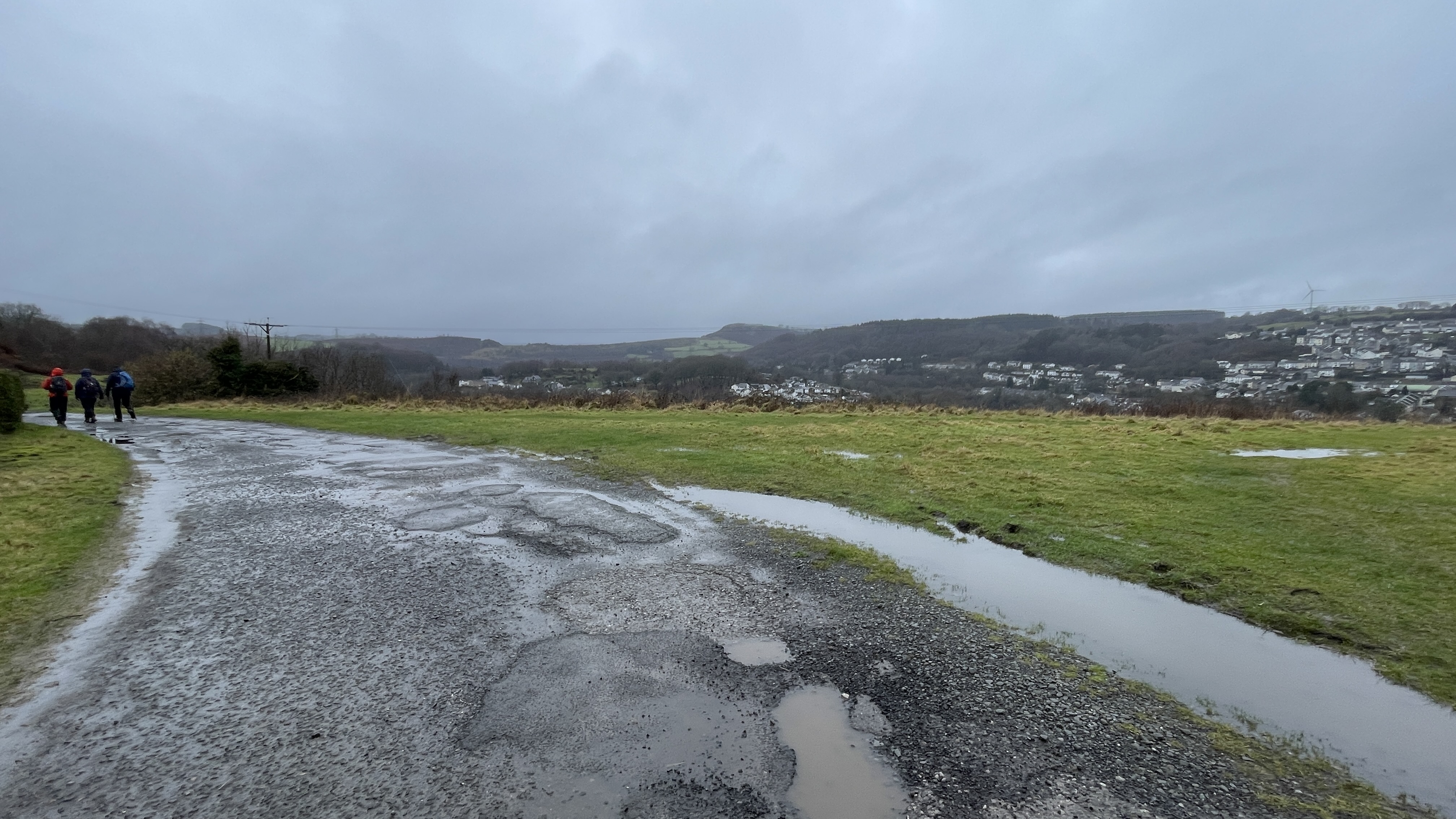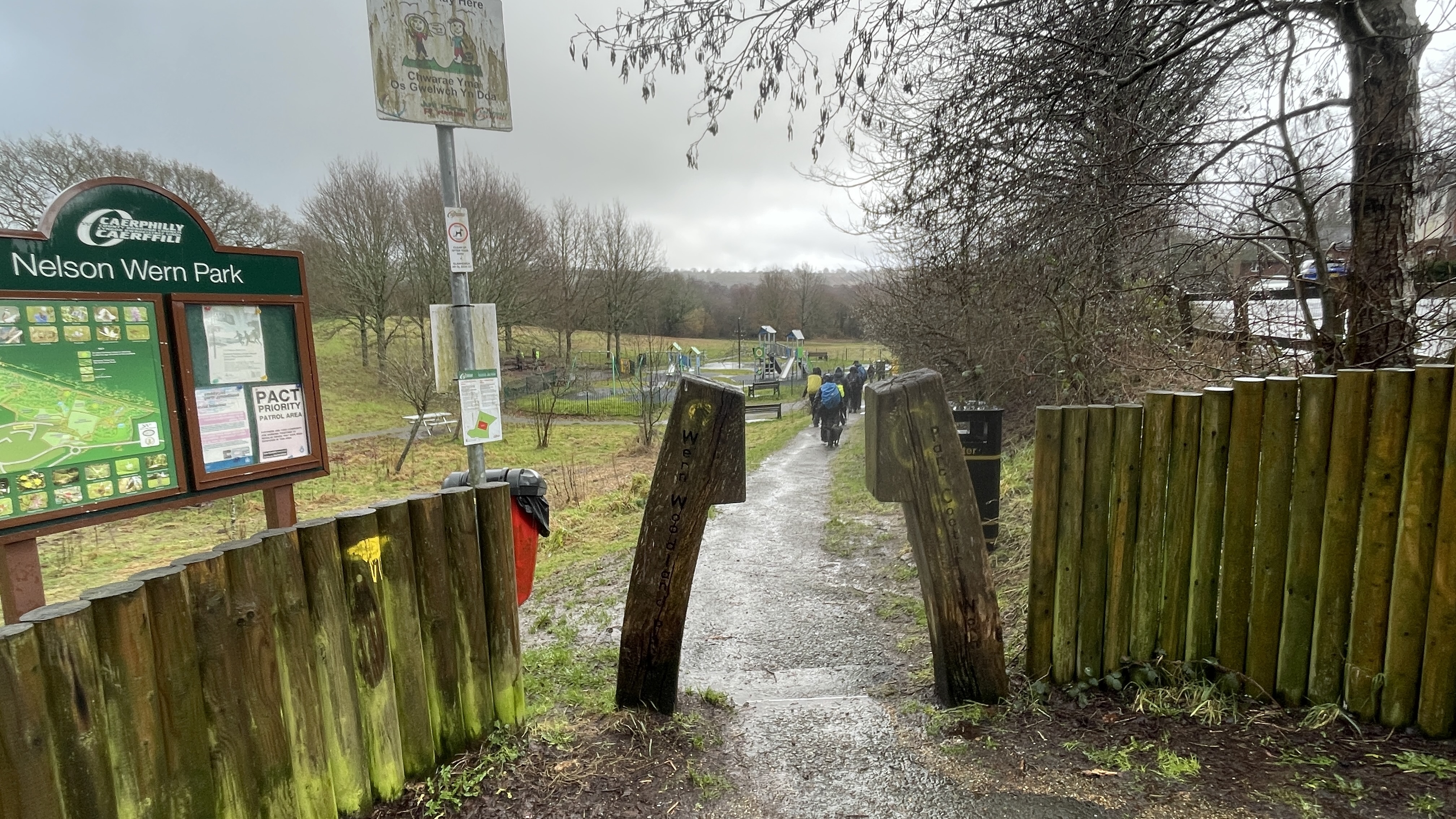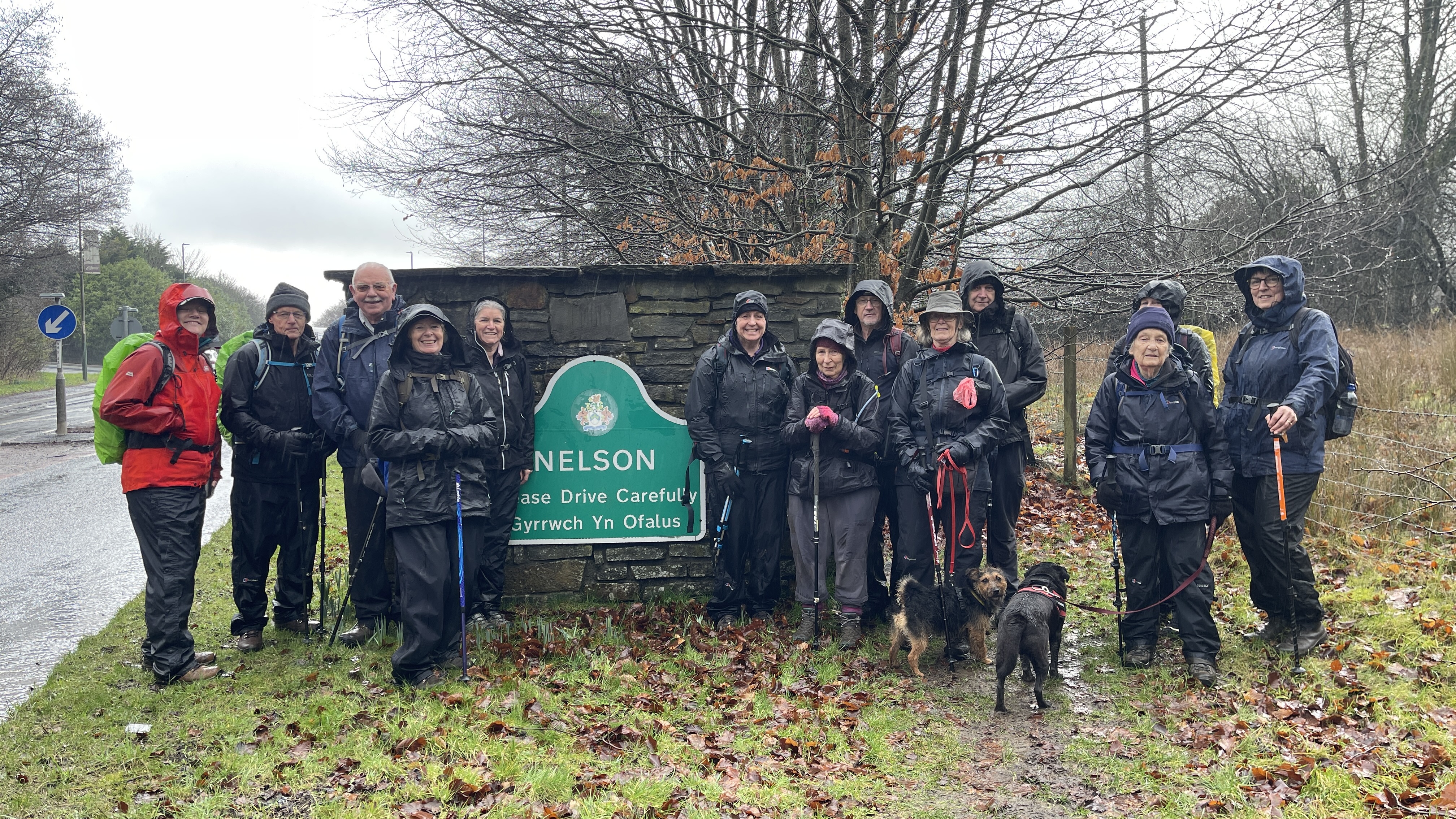 Incessant rain (or what we call “picking” in Merthyr) greeted the 15 well-waterproofed ramblers in Nelson today. Starting from the waterworks, we began by walking towards Quakers Yard. We then turned west and came to the fiddlers elbow roundabout. Crossing the road, we climbed up to the cemetery and followed the tramway to the Railway inn at Nelson, having a quick cuppa on the way. We then turned South past Tae’r-heol then east and picked up the Rhymney valley ridgeway walk back into Nelson. After lunch in the playground, we headed east to Parc Penallta and followed the railway to Quakers Yard then returned to the waterworks. Then the sun came out. Big thanks to visitors Jen and Steve, Peter for the walk and all for the great company.