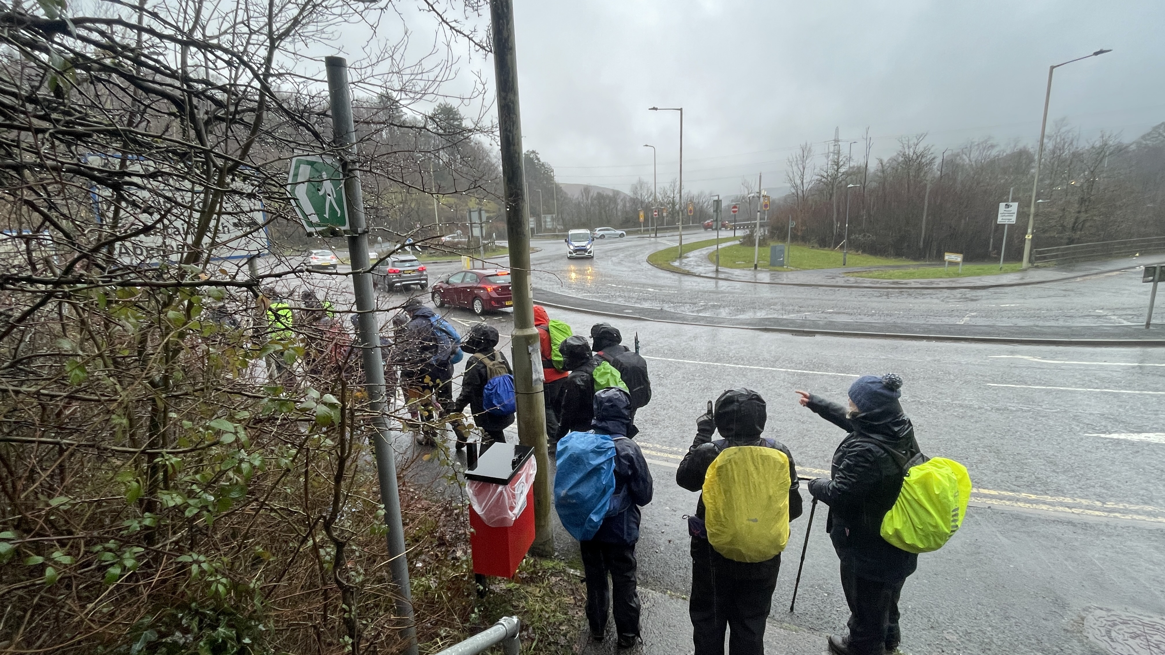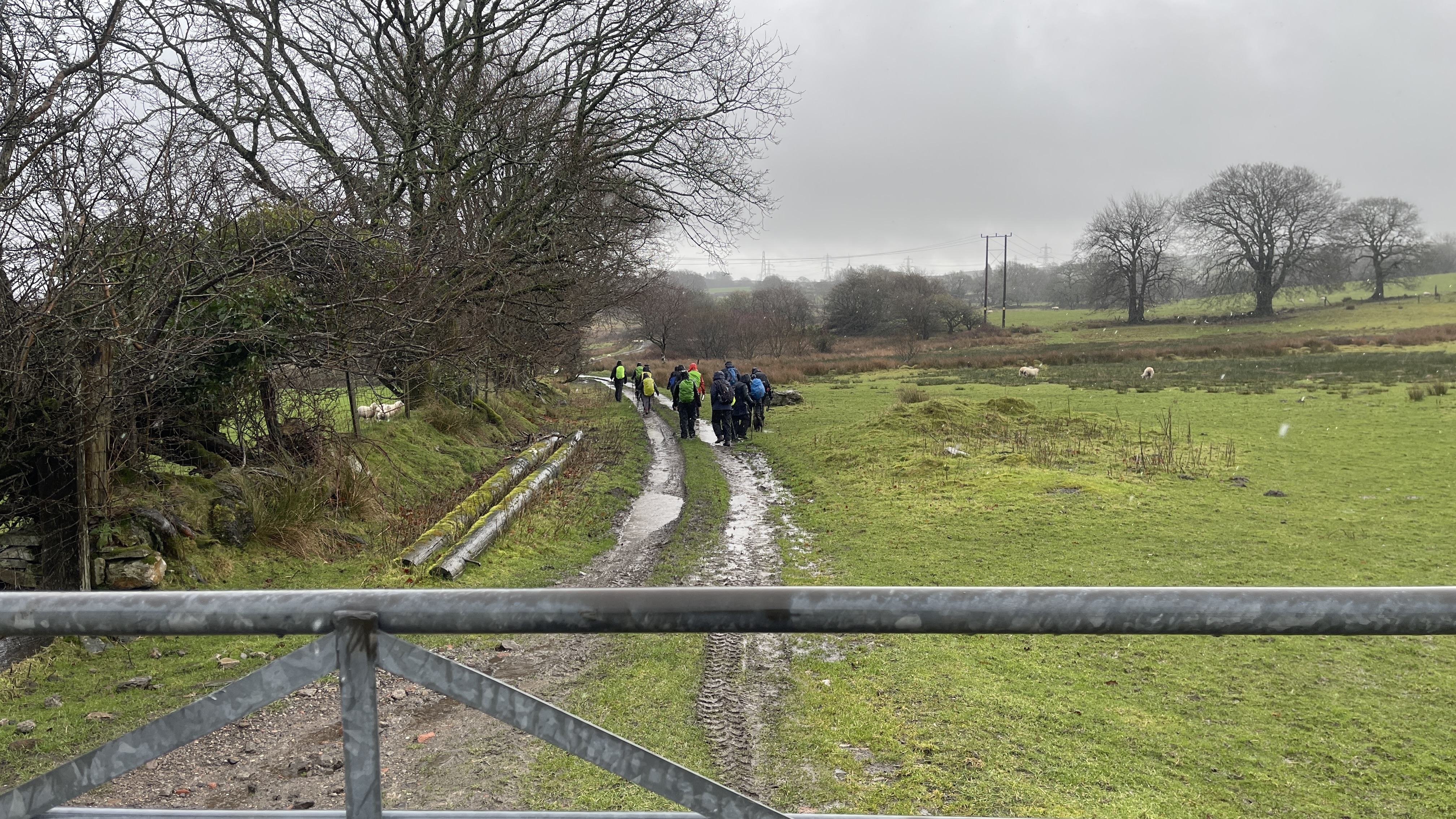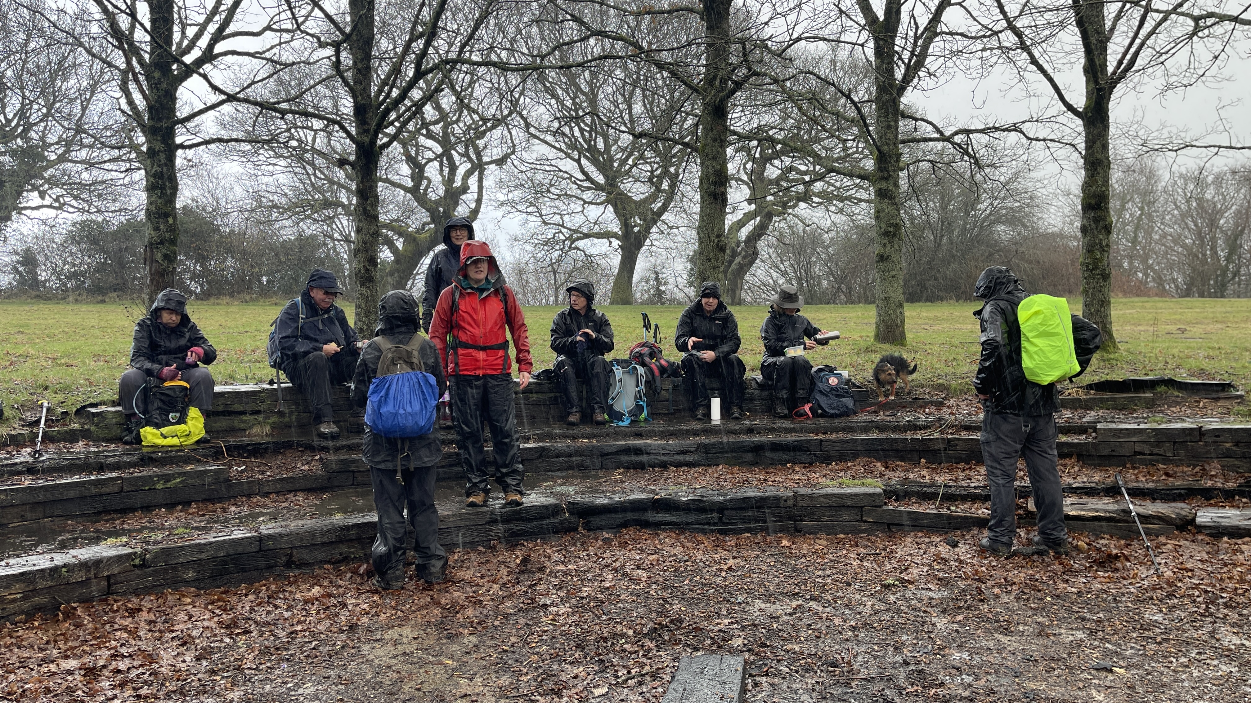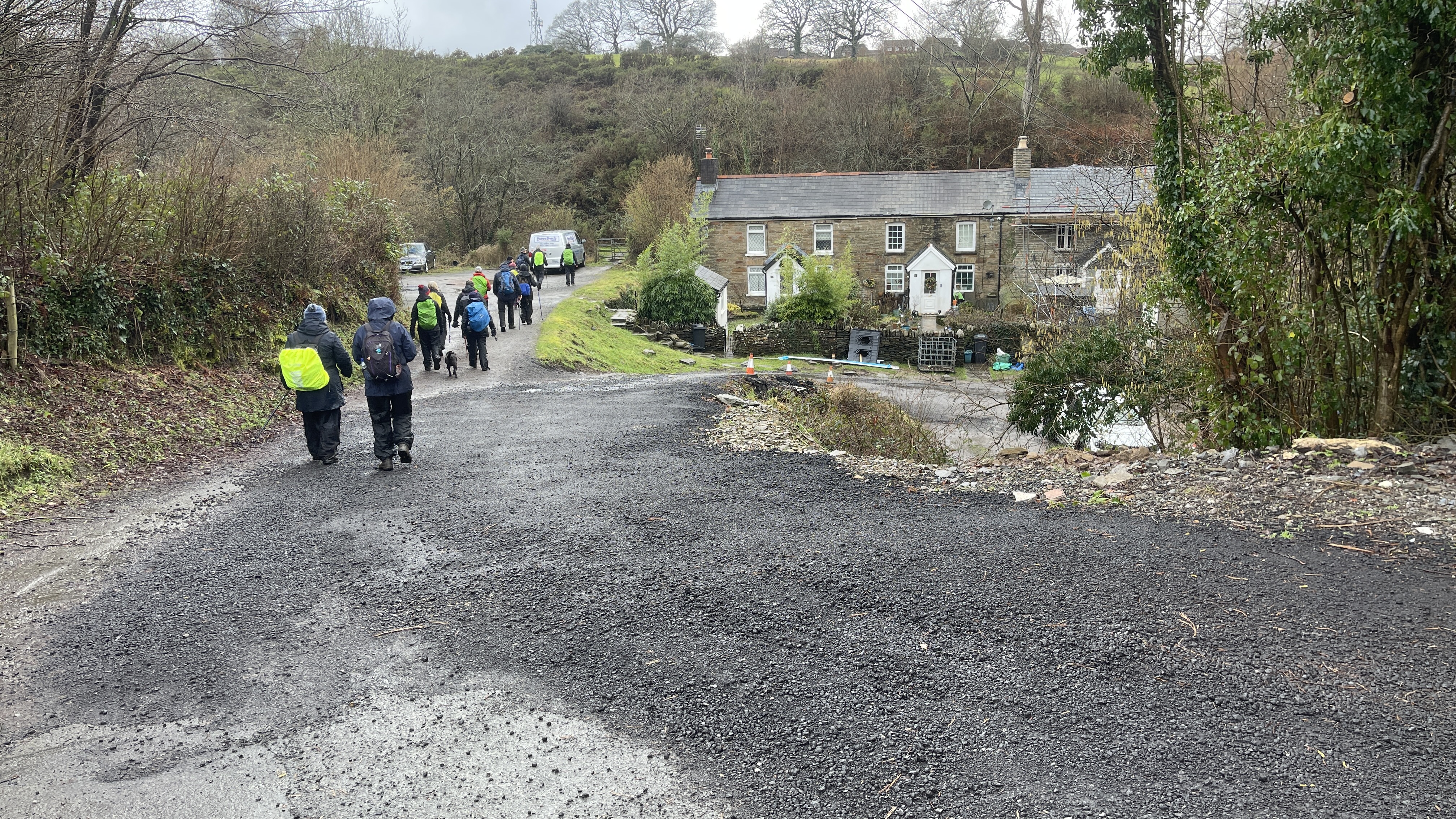 Incessant rain (or what we call “picking” in Merthyr) greeted the 15 well-waterproofed ramblers in Nelson today. Starting from the waterworks, we began by walking towards Quakers Yard. We then turned west and came to the fiddlers elbow roundabout. Crossing the road, we climbed up to the cemetery and followed the tramway to the Railway inn at Nelson, having a quick cuppa on the way. We then turned South past Tae’r-heol then east and picked up the Rhymney valley ridgeway walk back into Nelson. After lunch in the playground, we headed east to Parc Penallta and followed the railway to Quakers Yard then returned to the waterworks. Then the sun came out. Big thanks to visitors Jen and Steve, Peter for the walk and all for the great company.