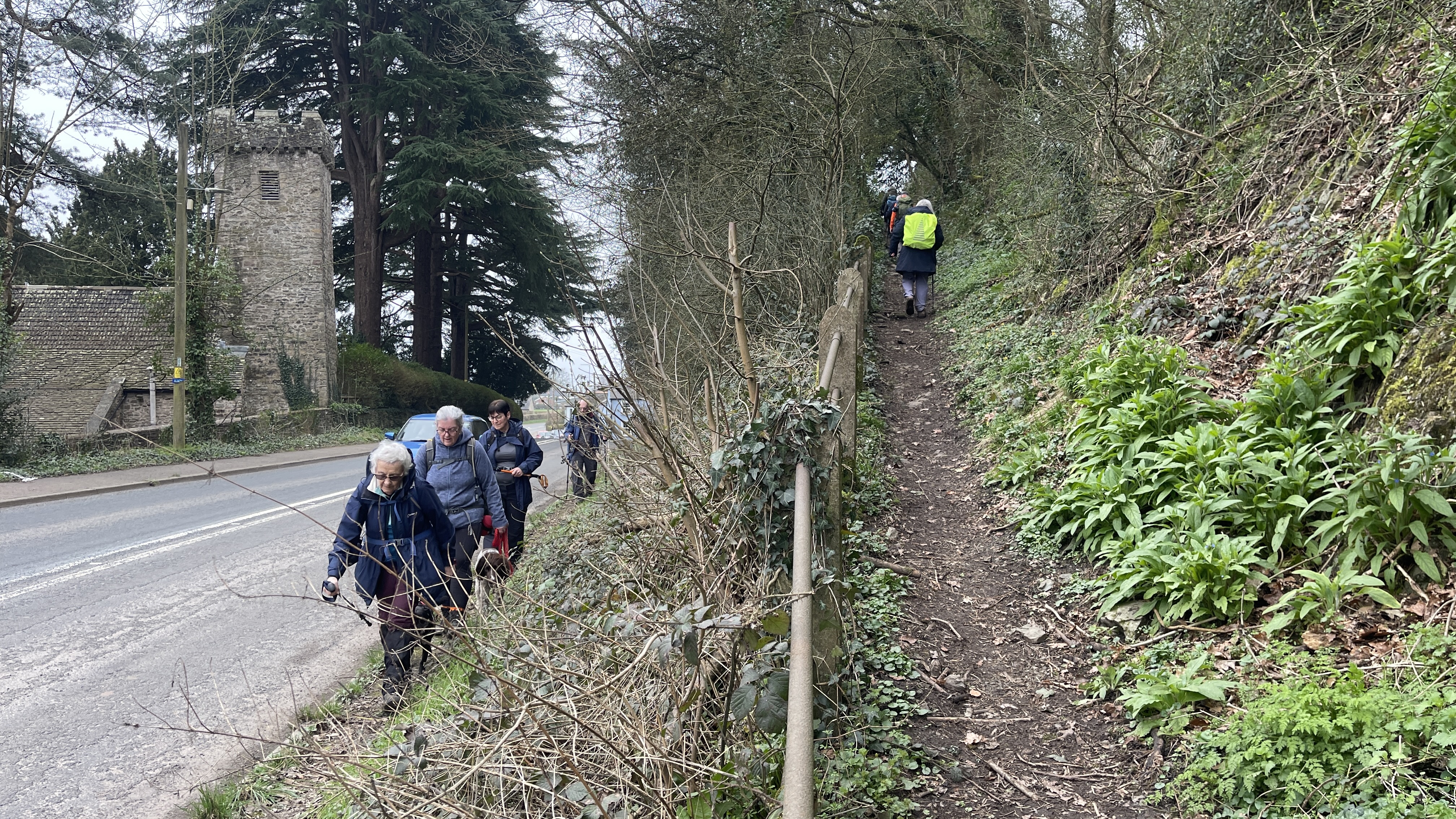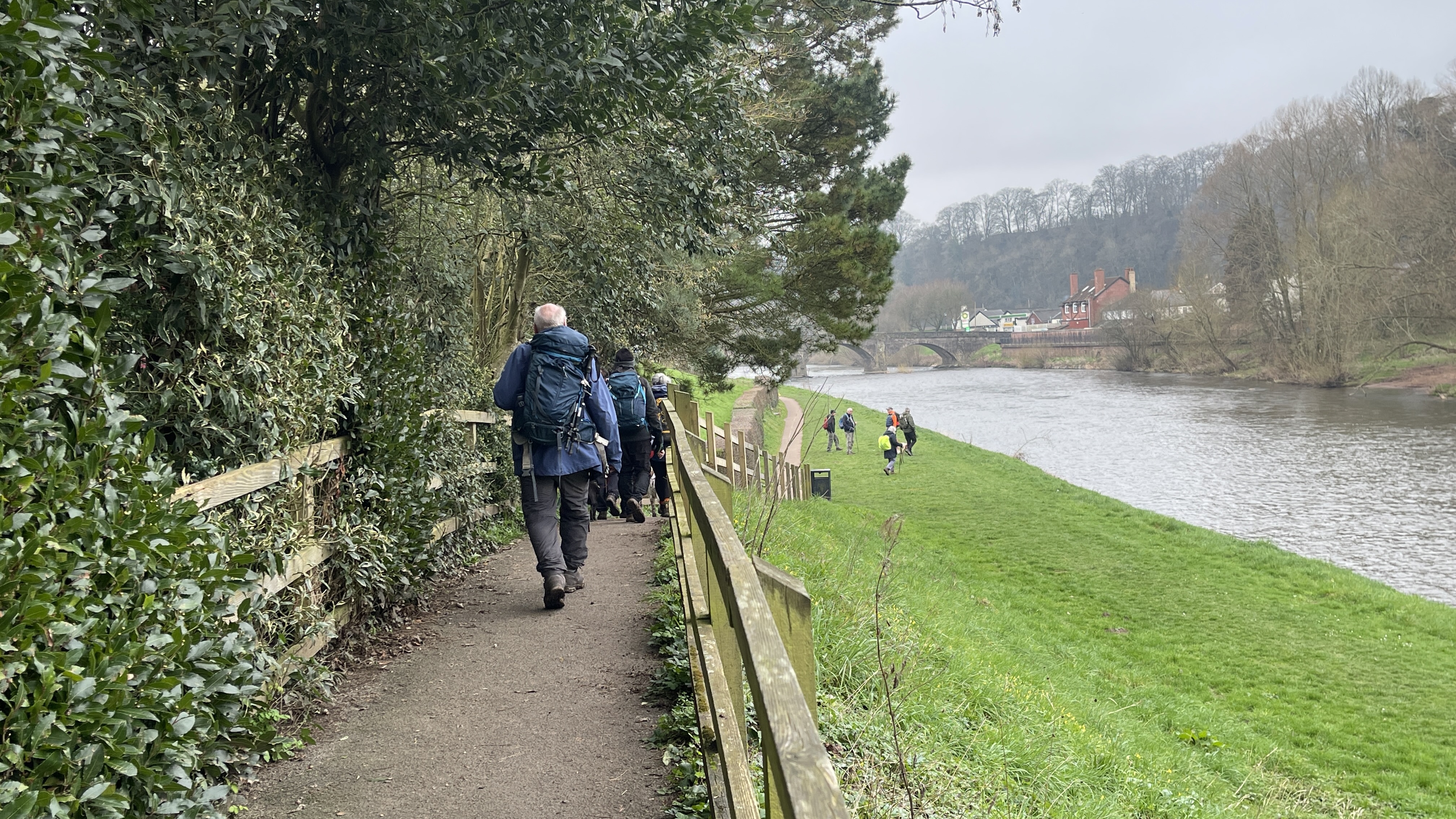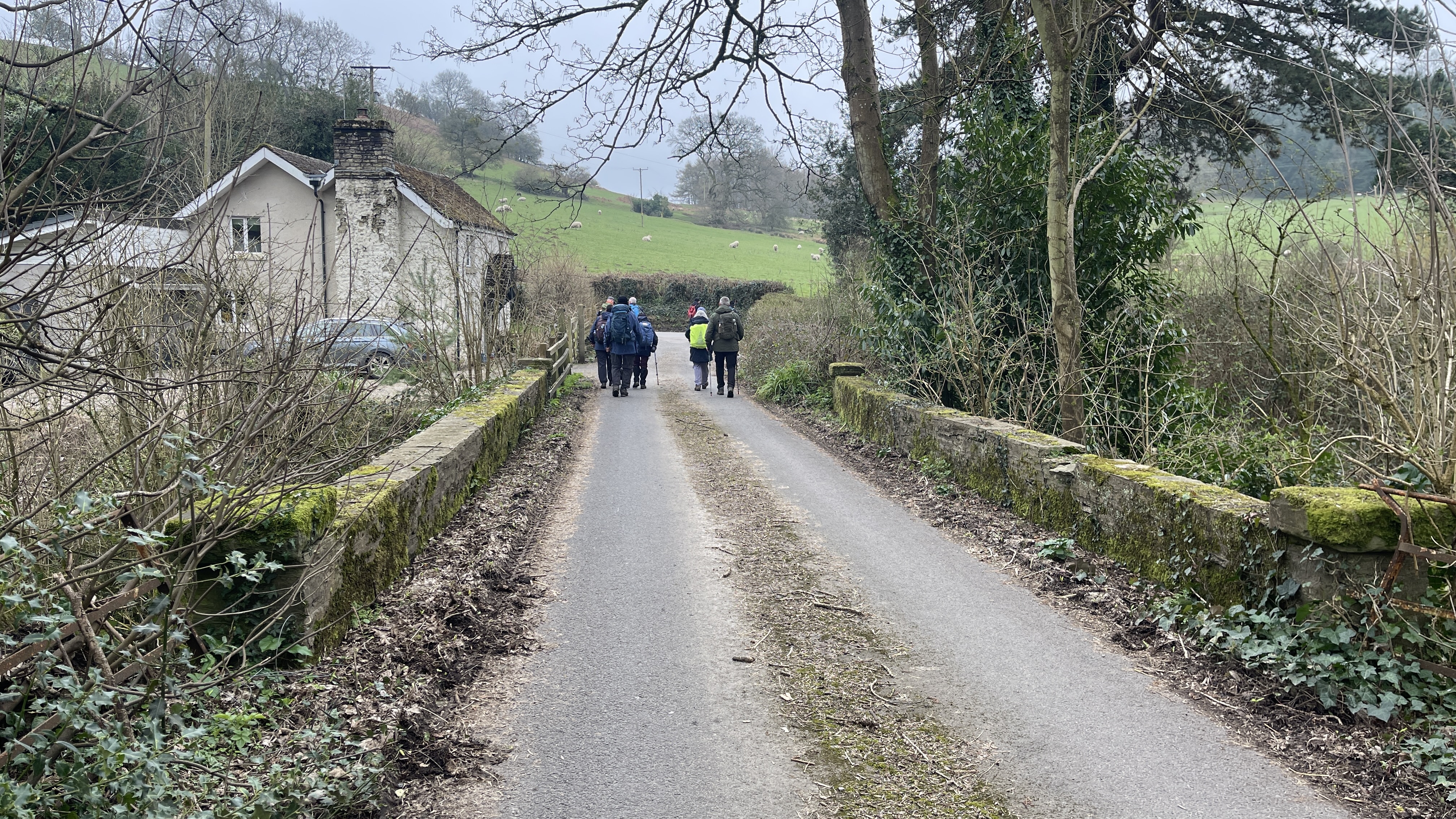 Yesterday, 11 of us enjoyed a lovely day out on Derek’s “Usk Figure of Eight Walk”. Starting from the attractive town of Usk, we set off from a place with a fascinating past. Usk has roots going all the way back to Roman times, later becoming an important Norman market town, and it still has that wonderful blend of history, charm and countryside that makes it such a great place to begin a walk. We began by heading northwards, soon stopping to admire the impressive gates of Usk Castle. The castle dates back to the Norman period, with the first castle at Usk likely built in the 1070s, and much of the later stone stronghold developed over the following centuries. It was also the setting for one of the darker tales in local history, as prisoners captured after the nearby Battle of Pwll Melyn in 1405 were reportedly executed near the castle. Continuing on, we passed the area associated with the Battle of Pwll Melyn, fought on 5 May 1405 during Owain Glyndŵr’s revolt. The battle took place just north of Usk Castle and ended in a significant defeat for the Welsh forces led by Glyndŵr’s son, Gruffydd. It was a key moment in the uprising and one that still casts a long historical shadow over the landscape around Usk today. From there we made our way through Lady Hill Wood and Park Wood, where Derek had found us an absolutely first-class tea break stop — a pheasant shooters’ shelter complete with plenty of picnic benches. It was a perfect place to pause, chat and refuel. We then headed east, following the Cayo Brook, passing Cwmcayo Farm, before reaching the banks of the River Usk itself. Lunch was enjoyed there with yet more benches on hand, always appreciated, and with a lovely backdrop of the river and Usk Bridge to complete the scene. The weather stayed grey and misty throughout, which meant that the fantastic views from the higher ground were hidden from us this time. Even so, the rain held off all day, and that felt like a real bonus. After lunch we set off on the second loop of the figure of eight, heading south-west as we skirted around and then through Pan-y-cwcw Wood, before turning north again and making our way back into Usk and to the waiting cars. All in all, it was a great day in good company, with a mix of woodland, riverbank walking, local history and plenty of chat along the way. A big thank you to Derek for leading the walk, and to everyone who came along. We hope this gives those who could not make it a flavour of the day and perhaps encourages a few new faces to come and join us on a future walk too. Keep an eye out for details of next Saturday’s walk, which will be published soon.